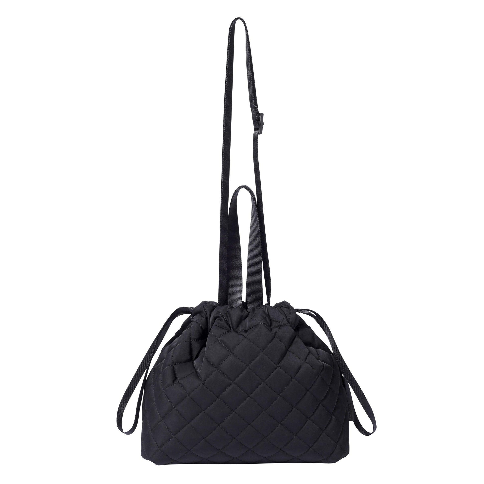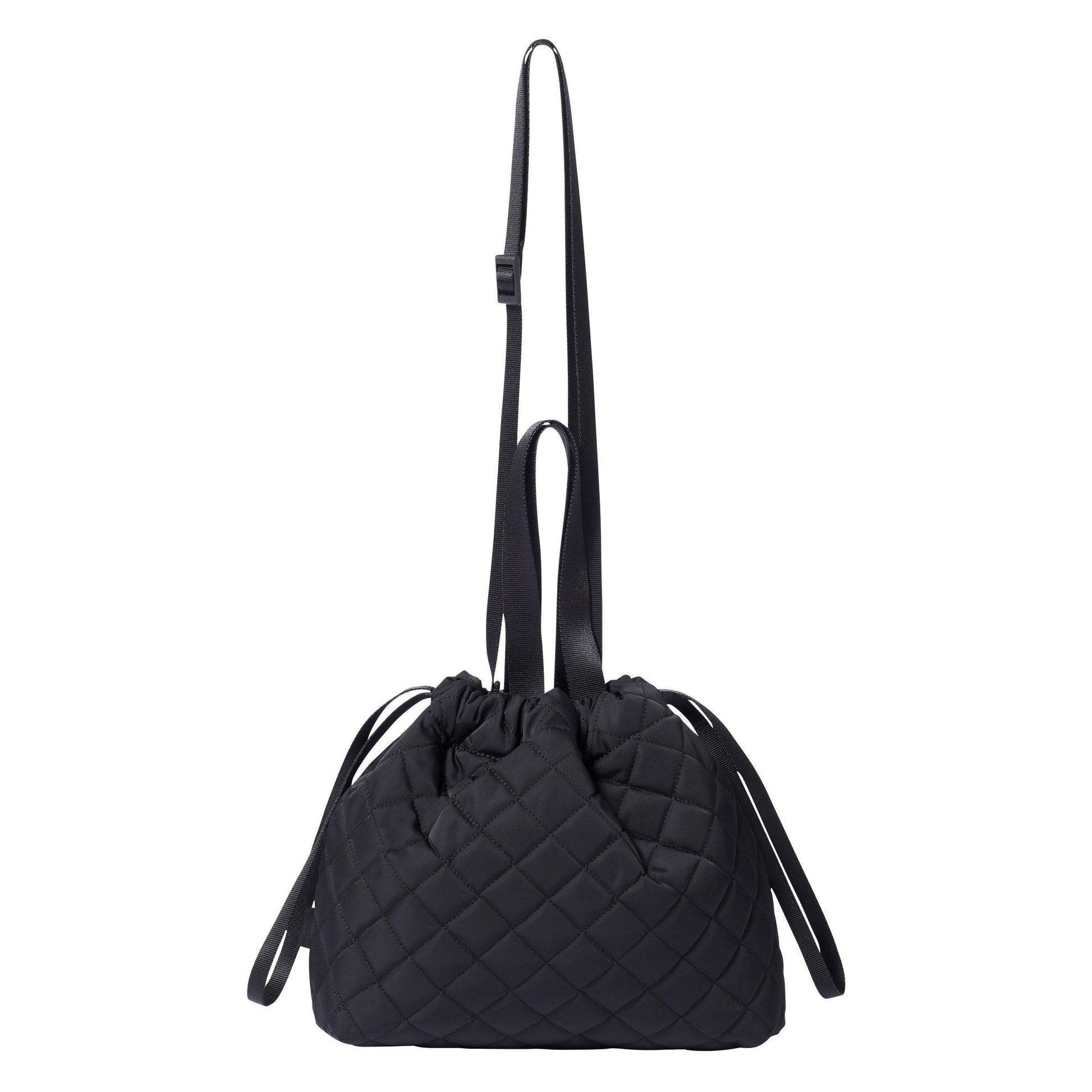 這是一款雙向包,既可作為拉繩包使用,也可通過繫上肩帶作為肩袋使用。包的大小可橫向放入一個塑料瓶或一個長錢包,適合日常使用。