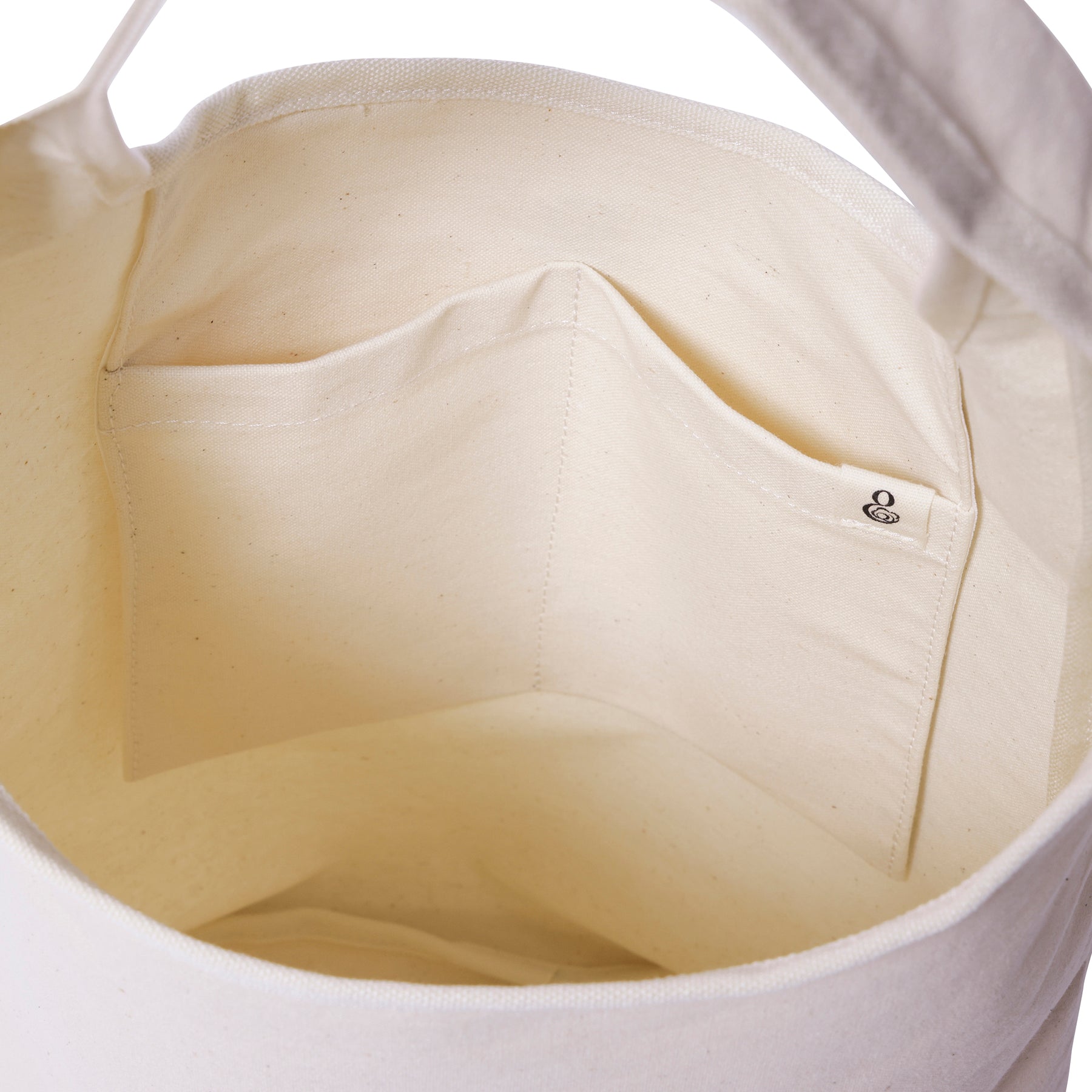 單肩包採用包身與肩帶一體化設計。可像手提包一樣單肩背。包底設計有寬闊的袋口,使其可獨立使用。背面繡有 RAMIDUS 徽標。採用前有機棉(POC)製成,前有機棉是指從開始使用無農藥有機耕作方法種植有機棉到獲得有機棉認證期間種植的棉花。