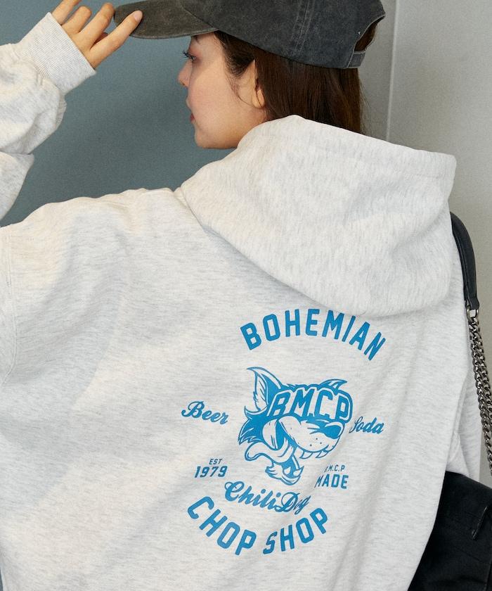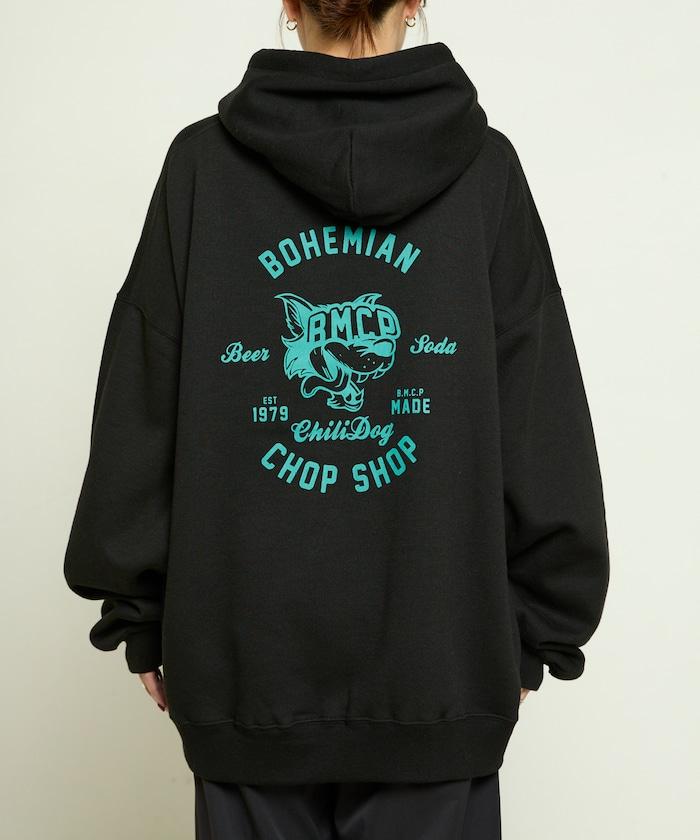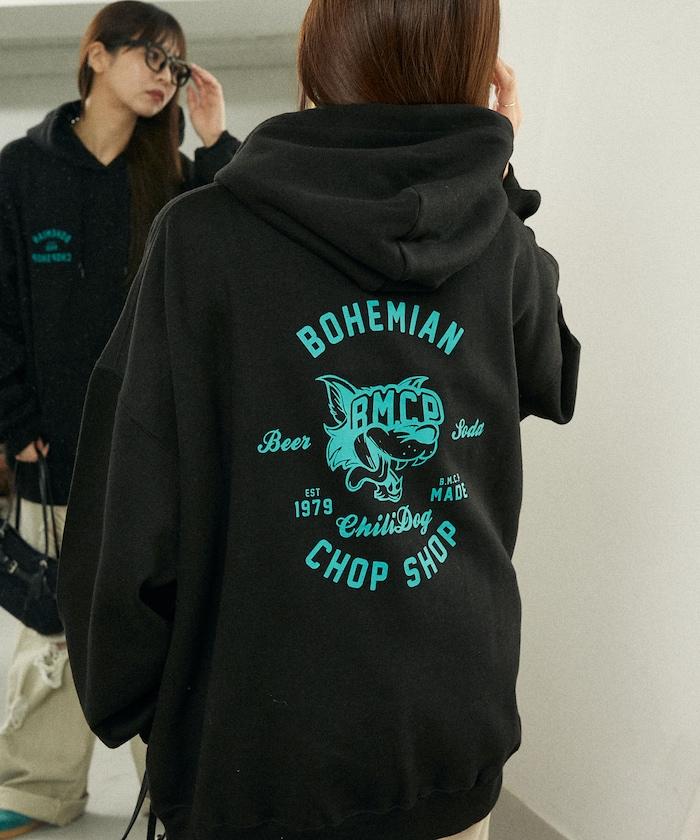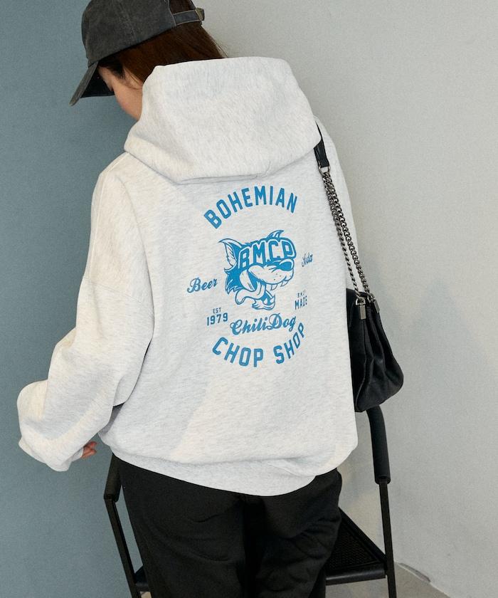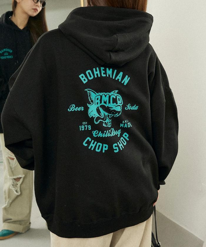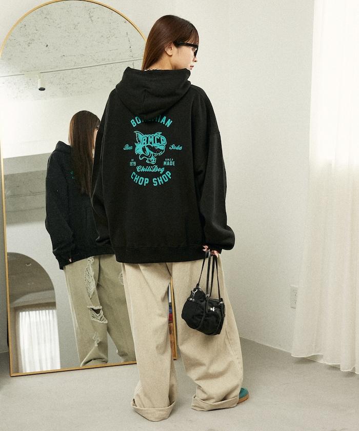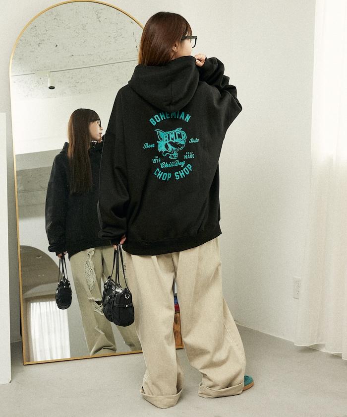 連帽衫背面的大面積狼印設計極具衝擊力。