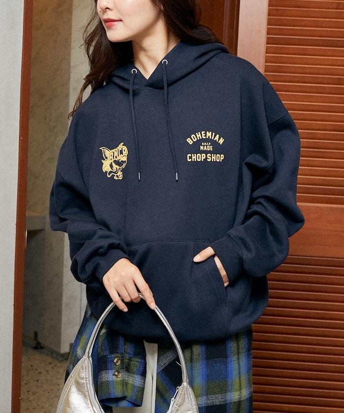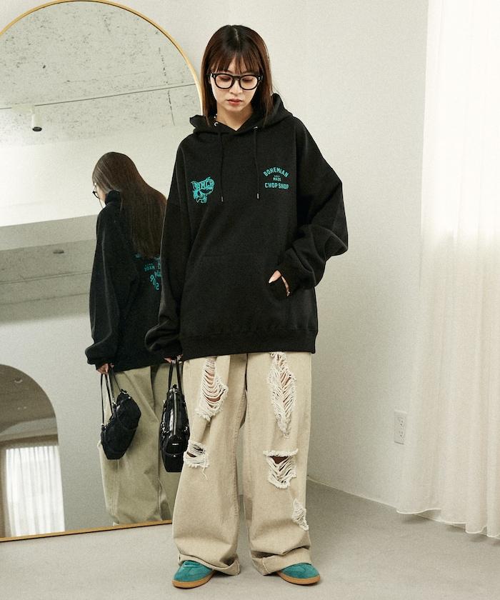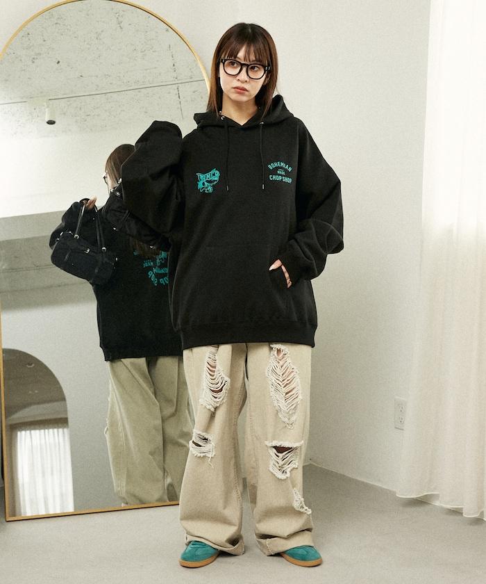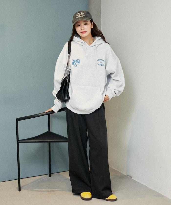 背部印花和胸前印花是設計的主要特色,因此可搭配破損的牛仔褲或貨郎褲,打造街頭感十足的休閒風格。