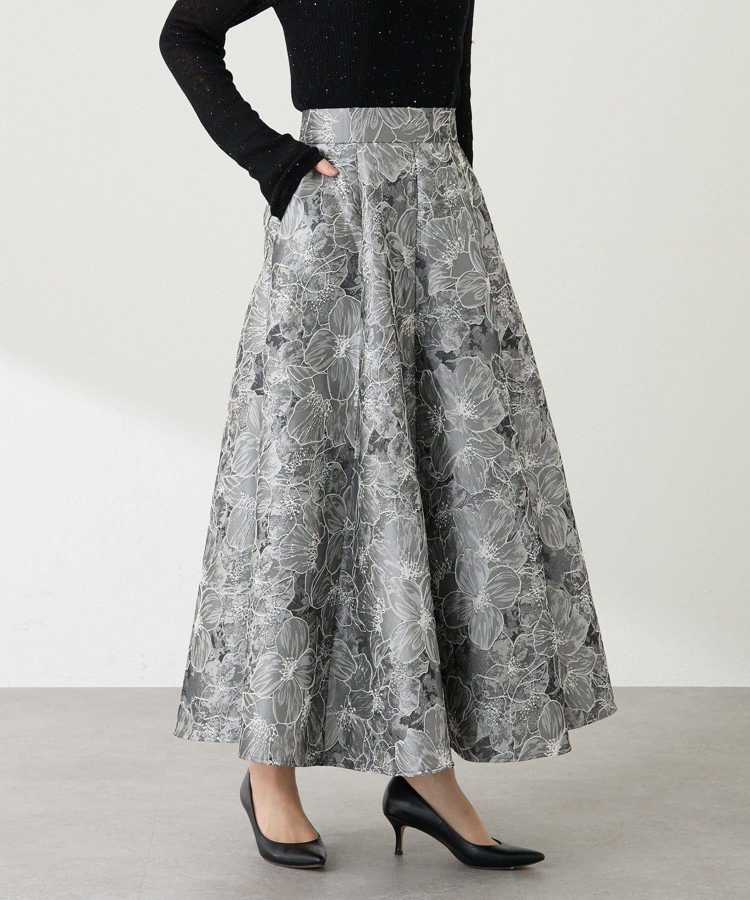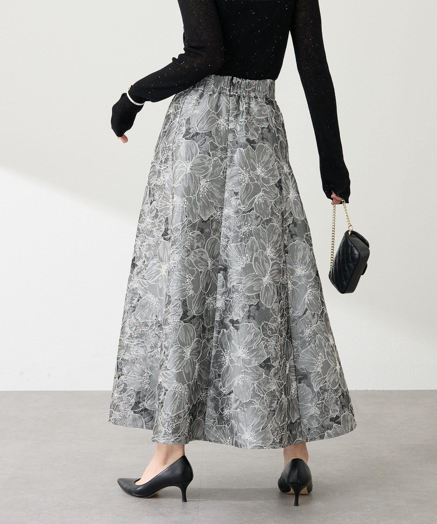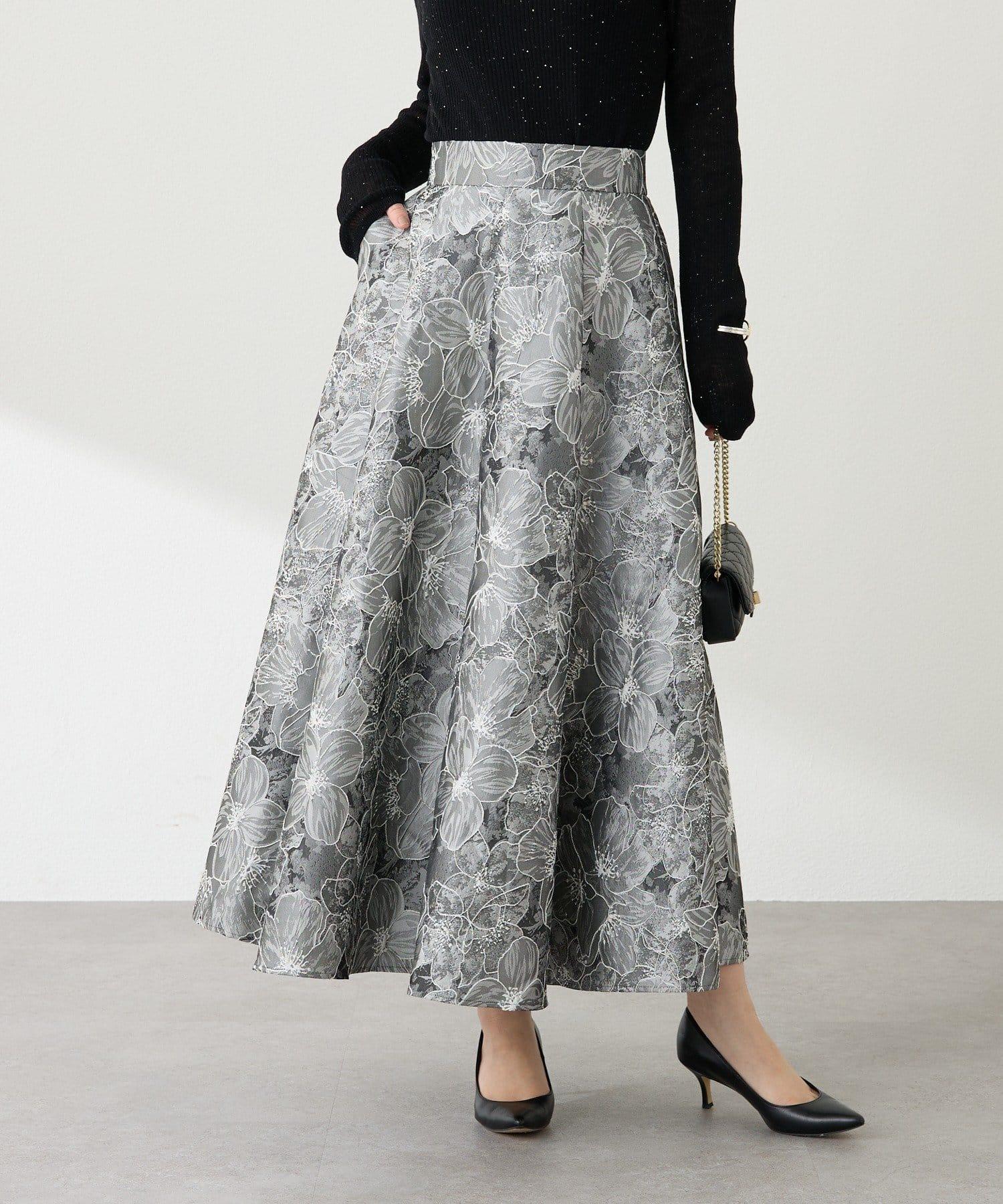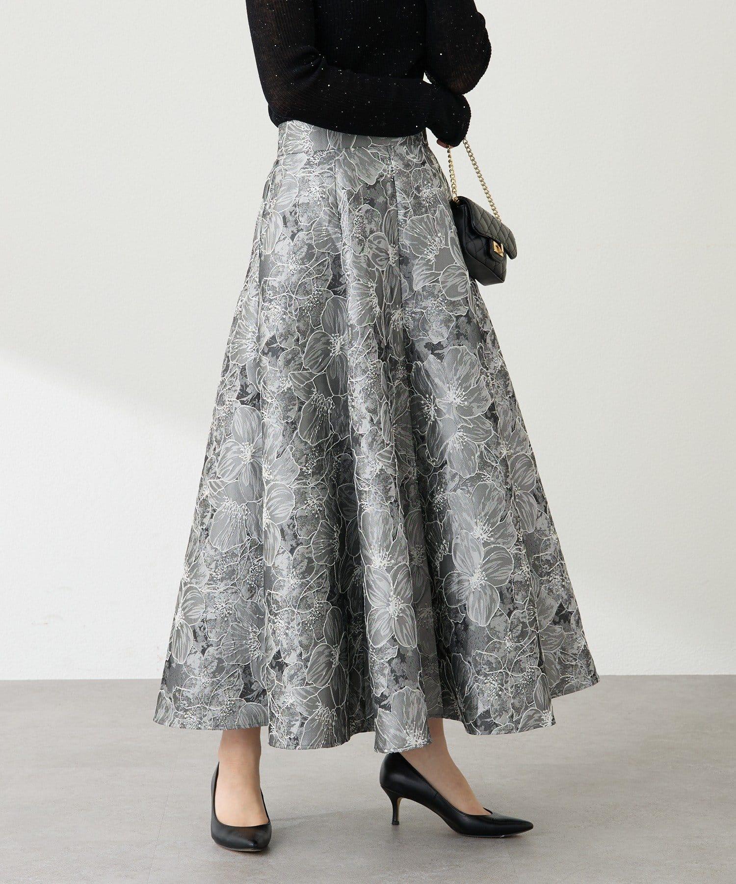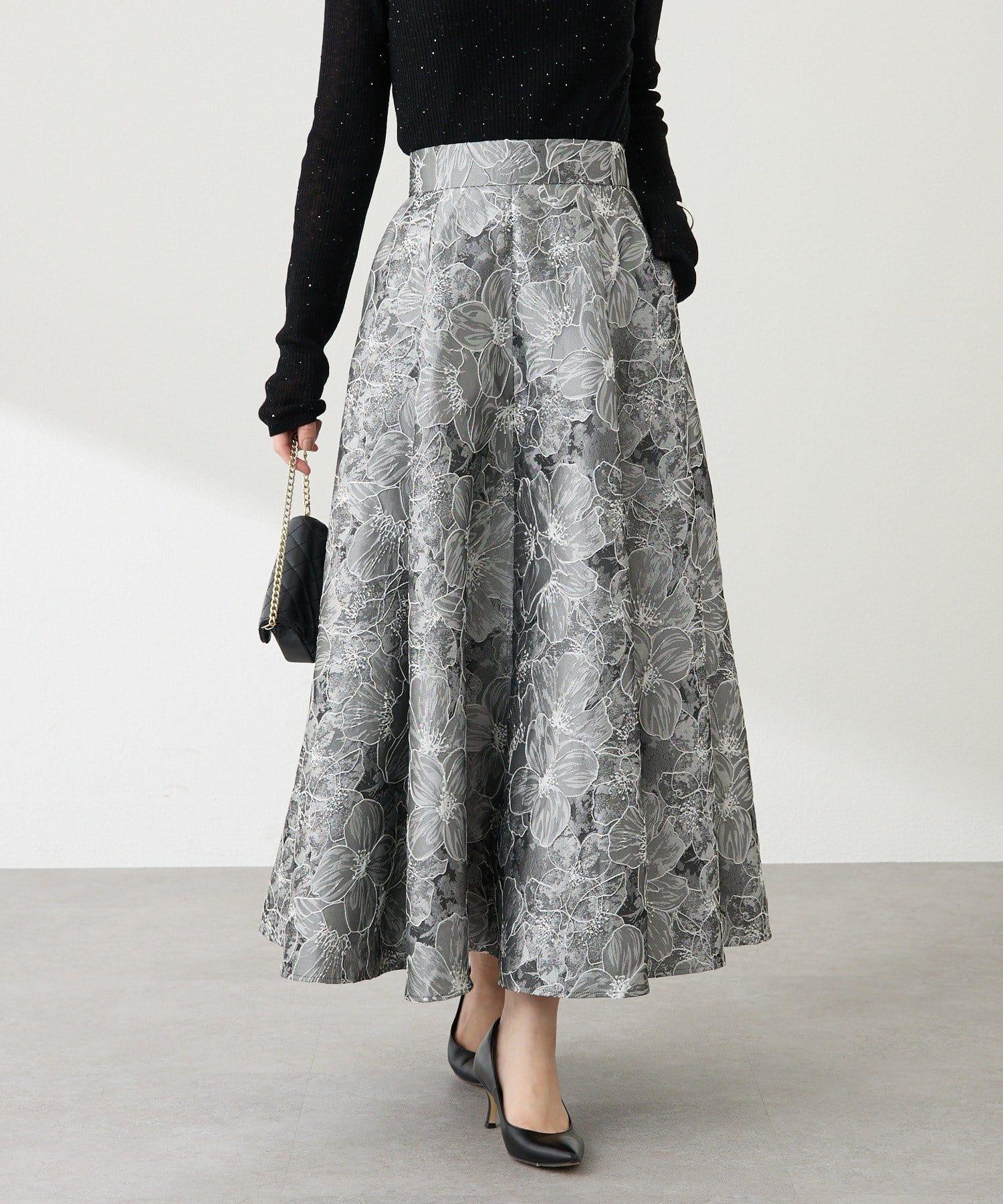 優雅的花朵提花賦予了這款喇叭裙強烈的存在感。