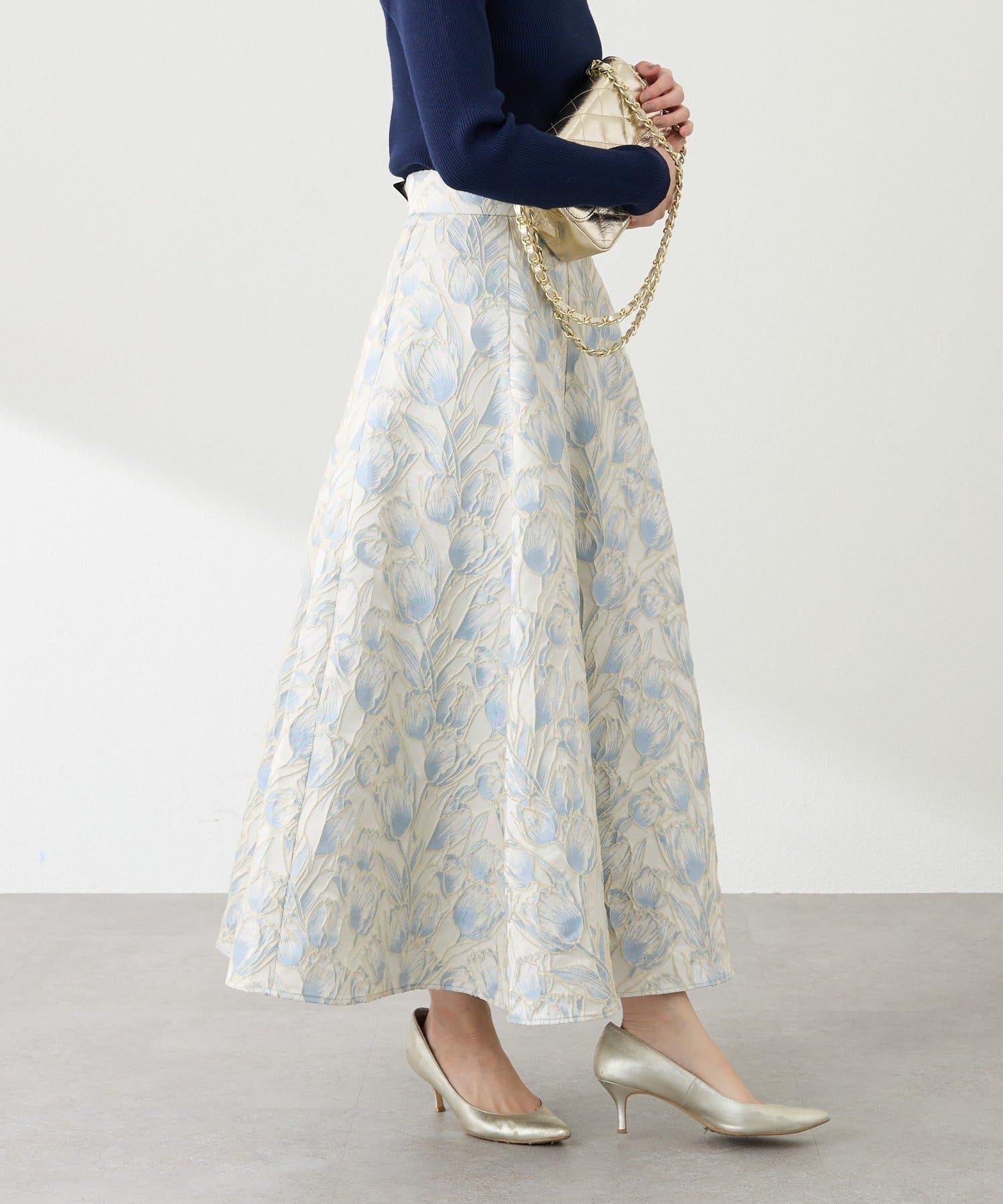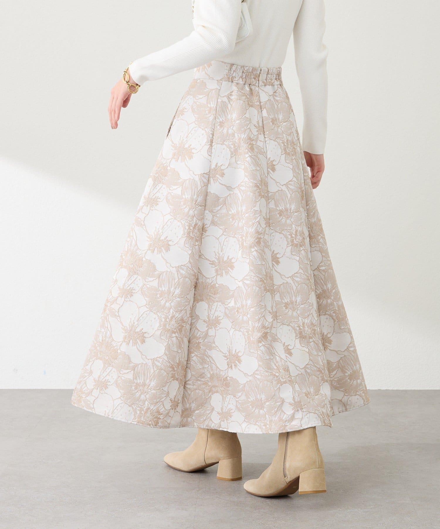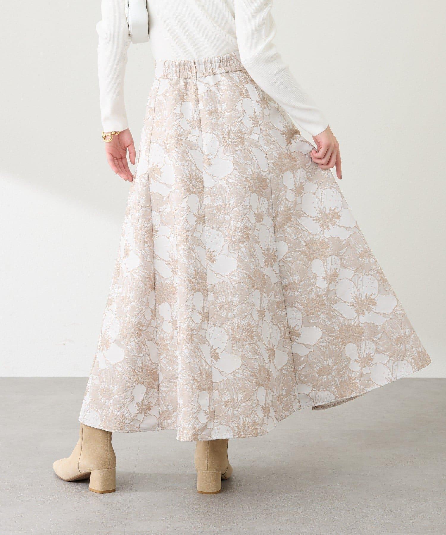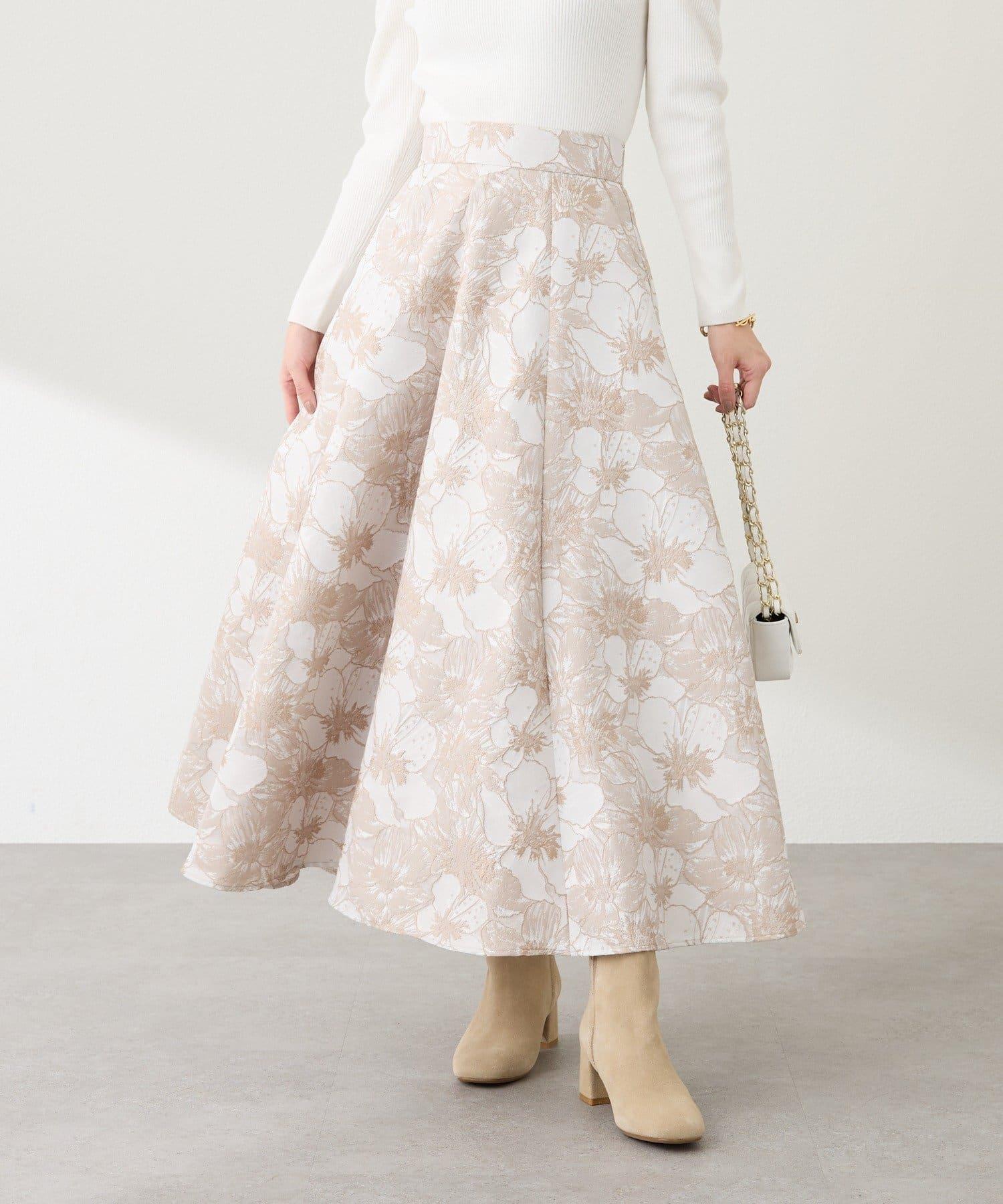 優雅的花朵提花賦予了這款喇叭裙強烈的存在感。