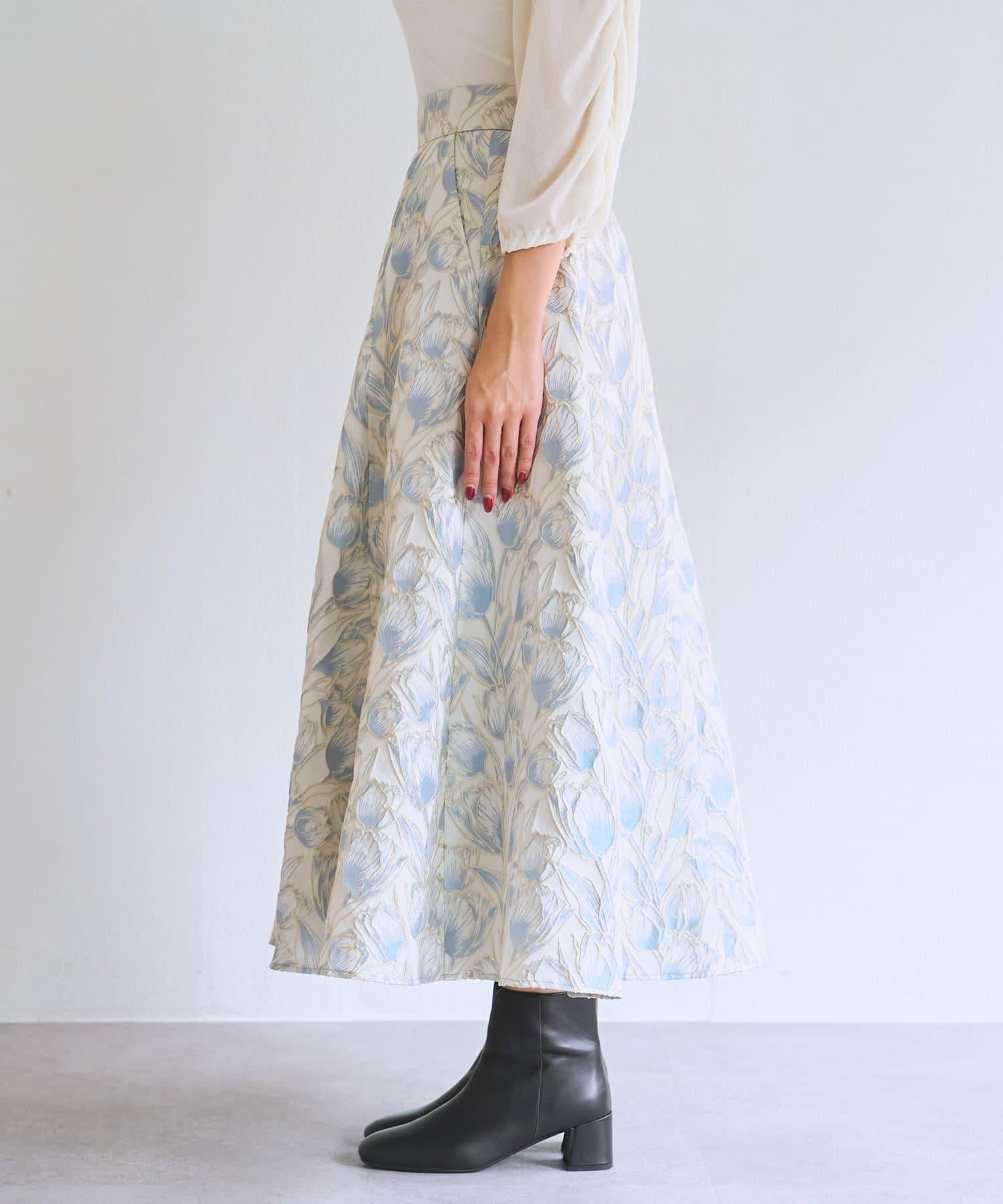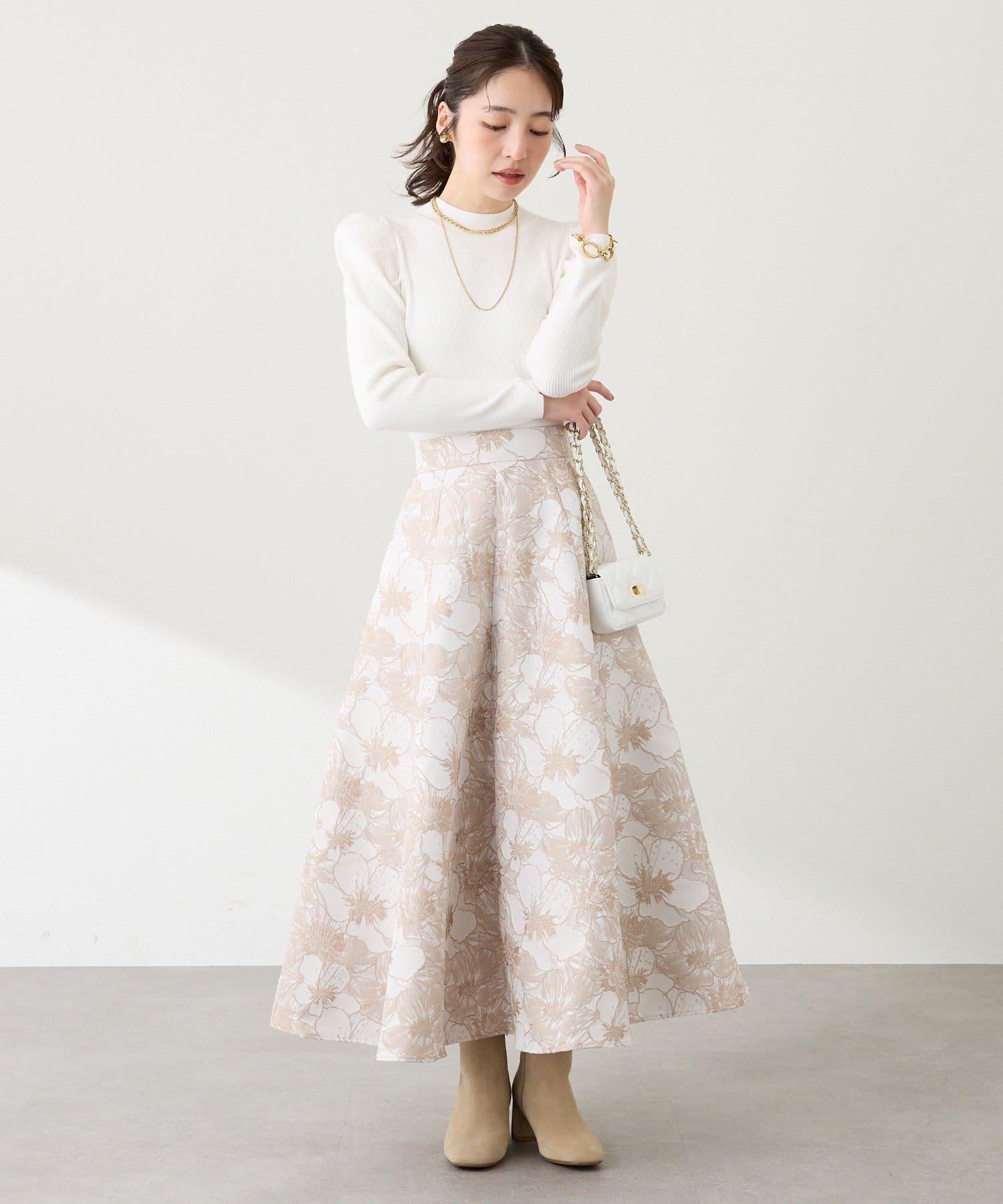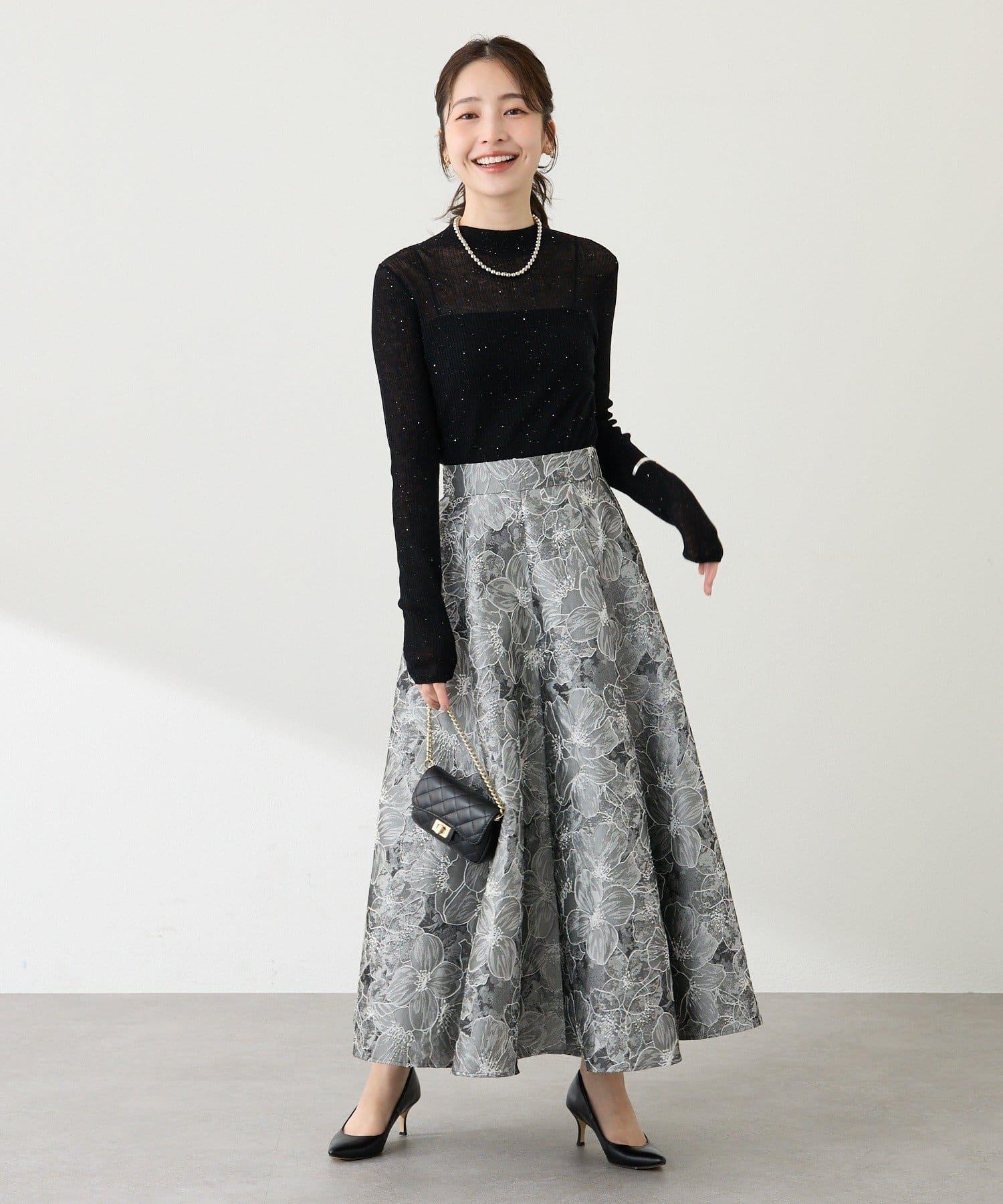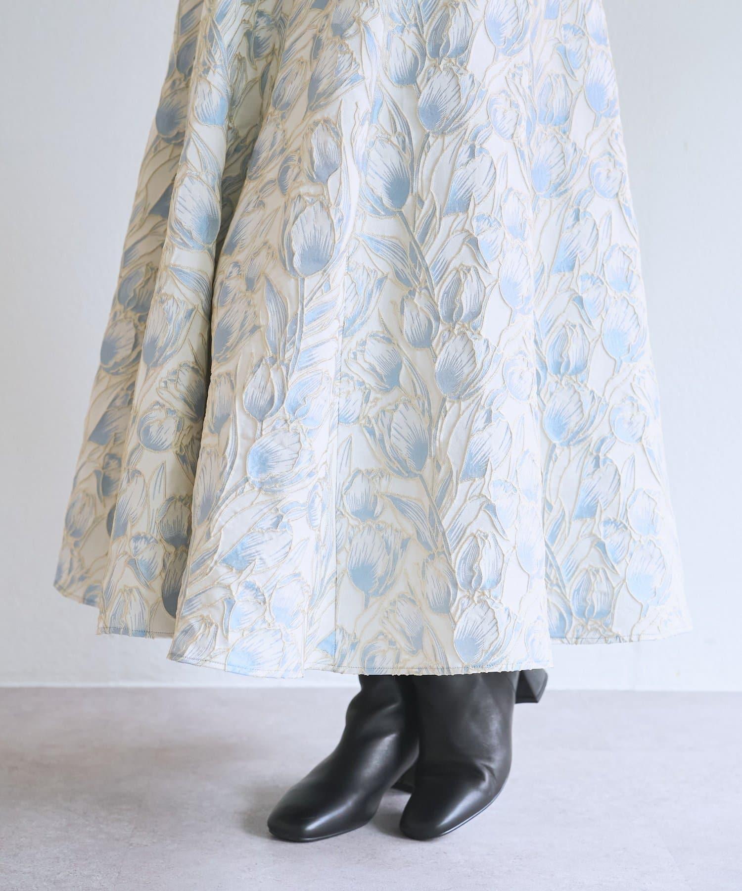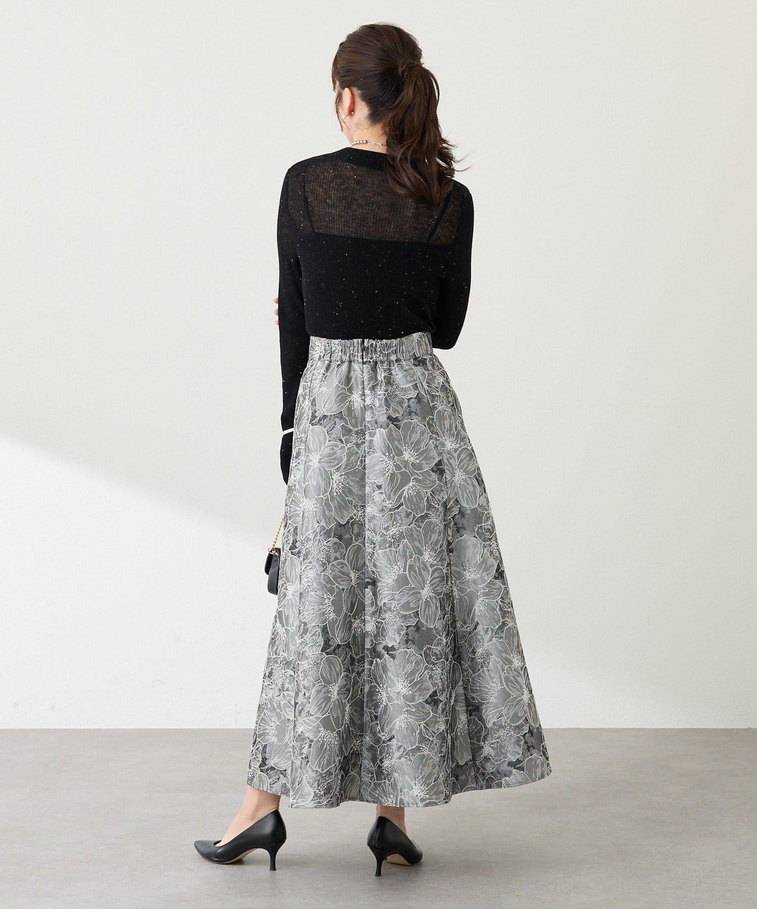 優雅的花朵提花賦予了這款喇叭裙強烈的存在感。