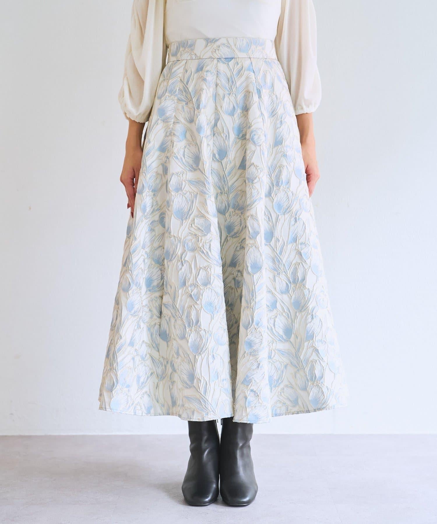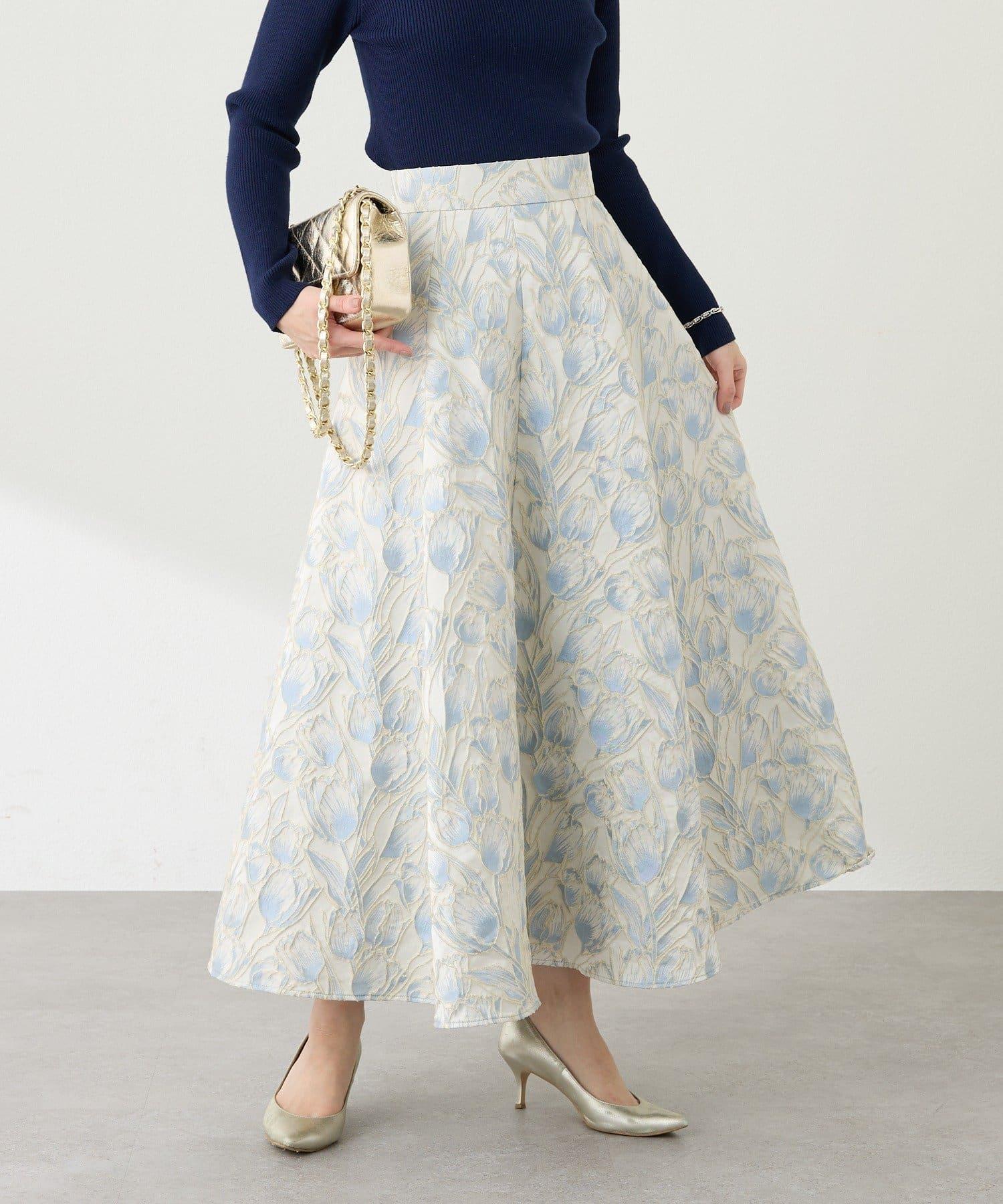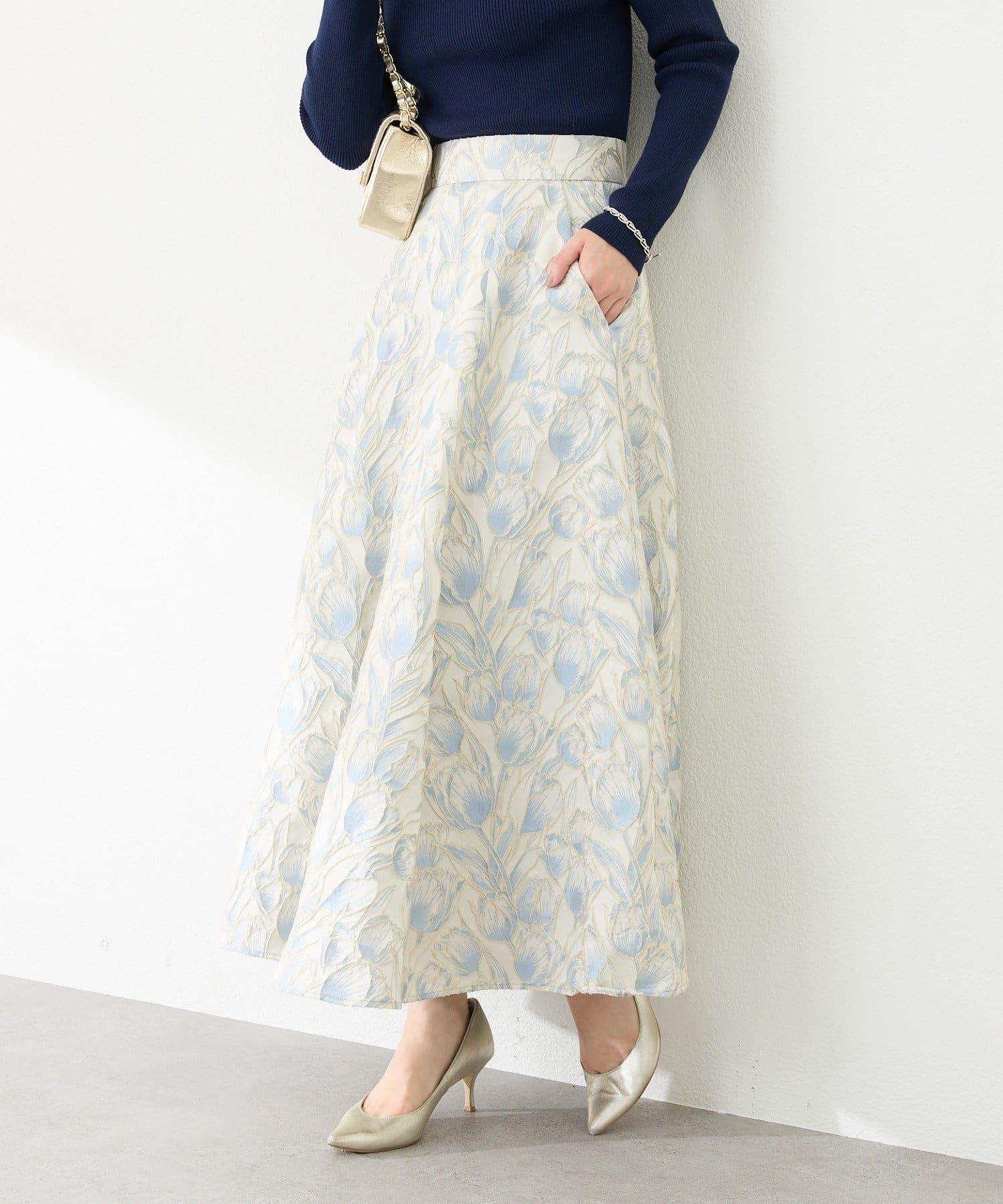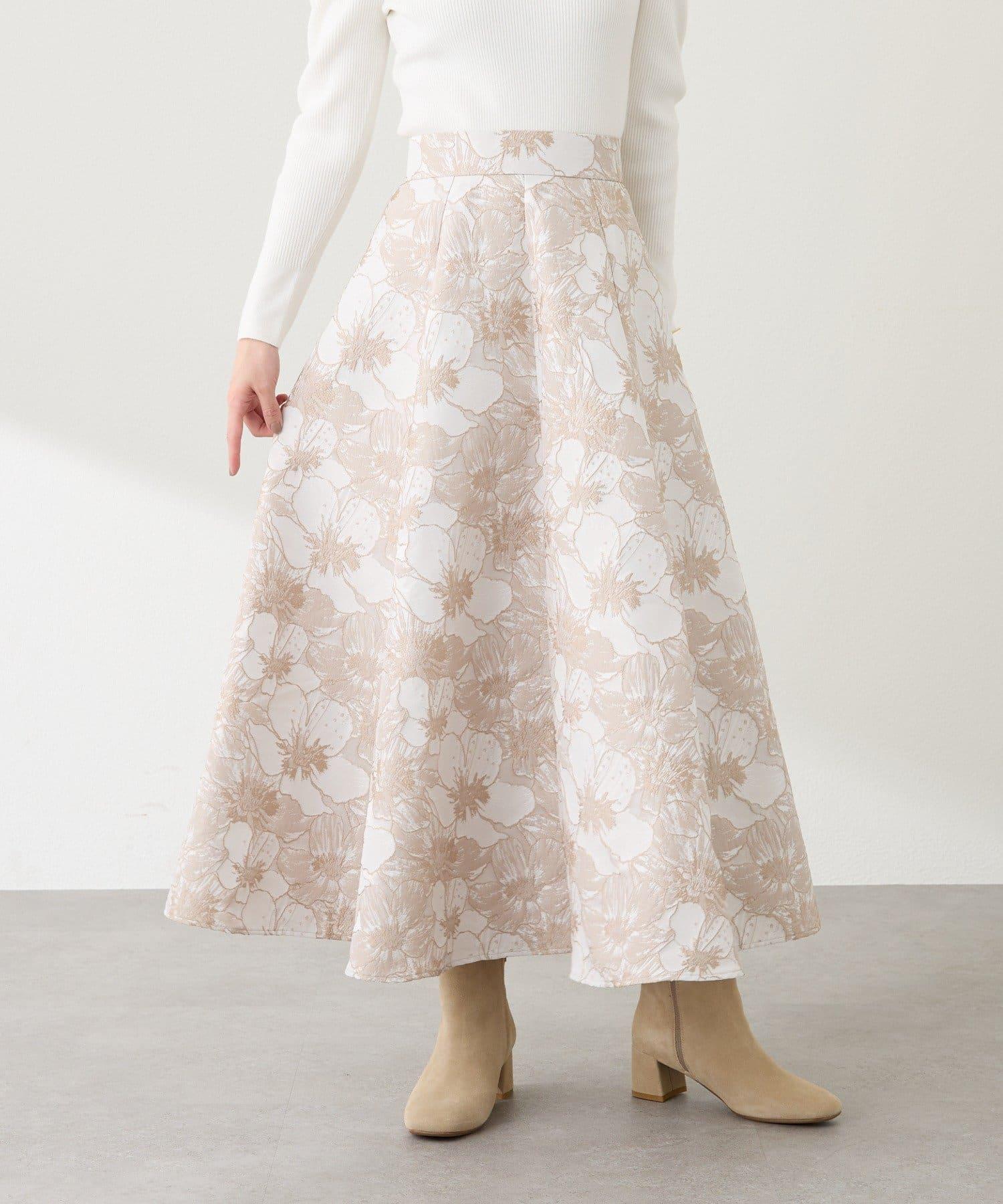 優雅的花朵提花賦予了這款喇叭裙強烈的存在感。