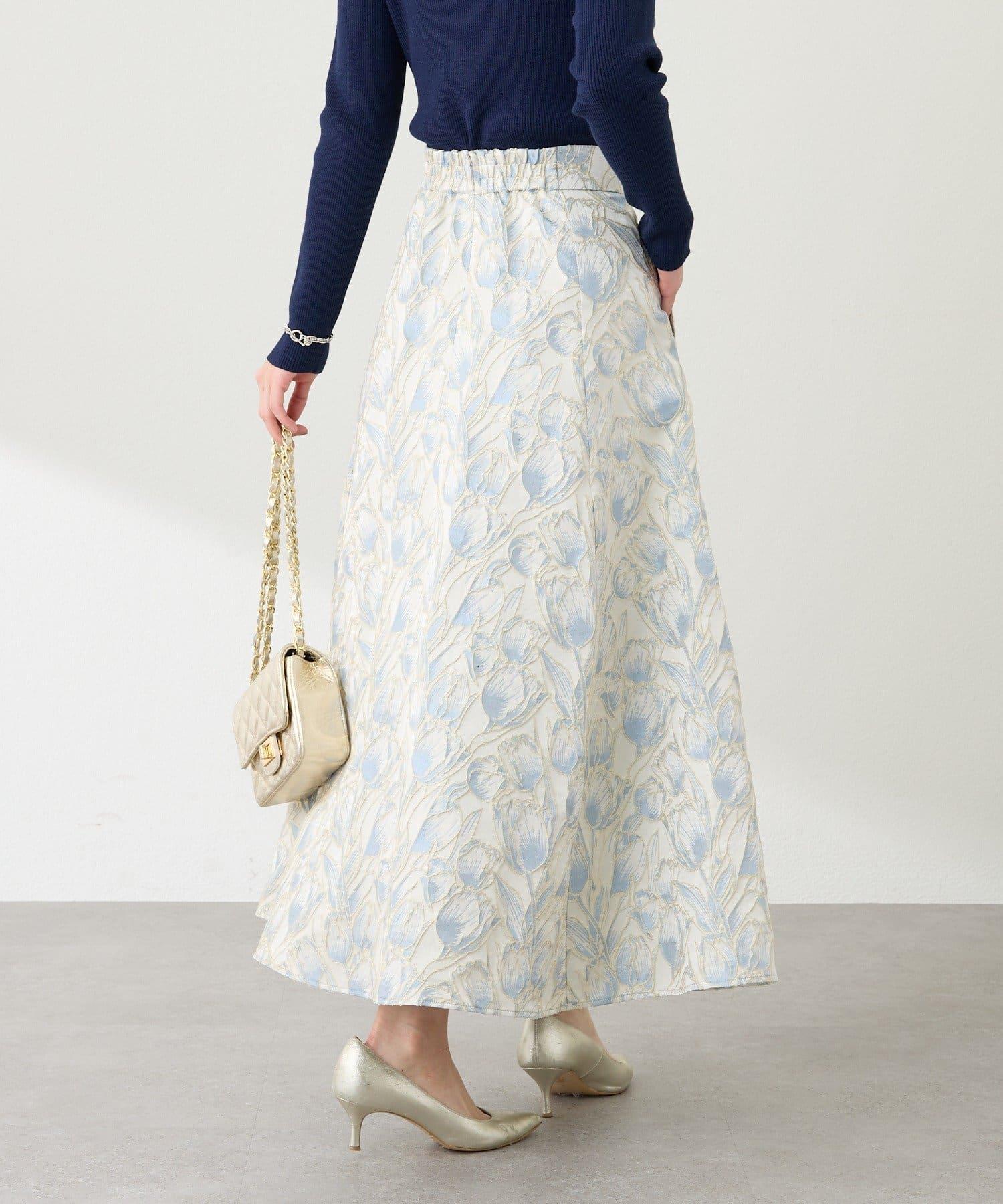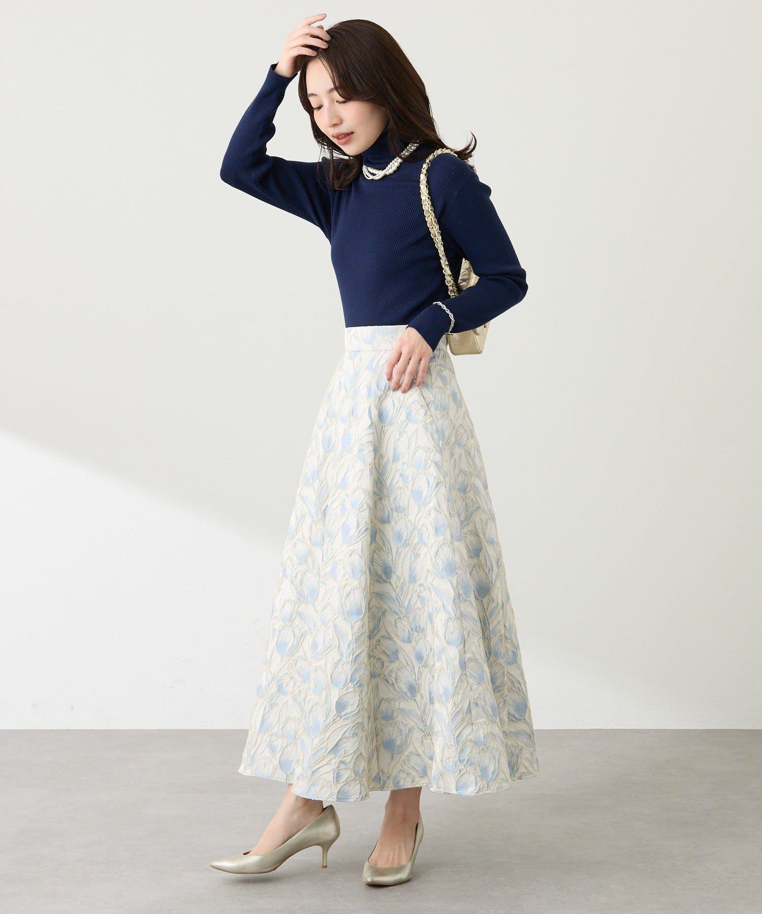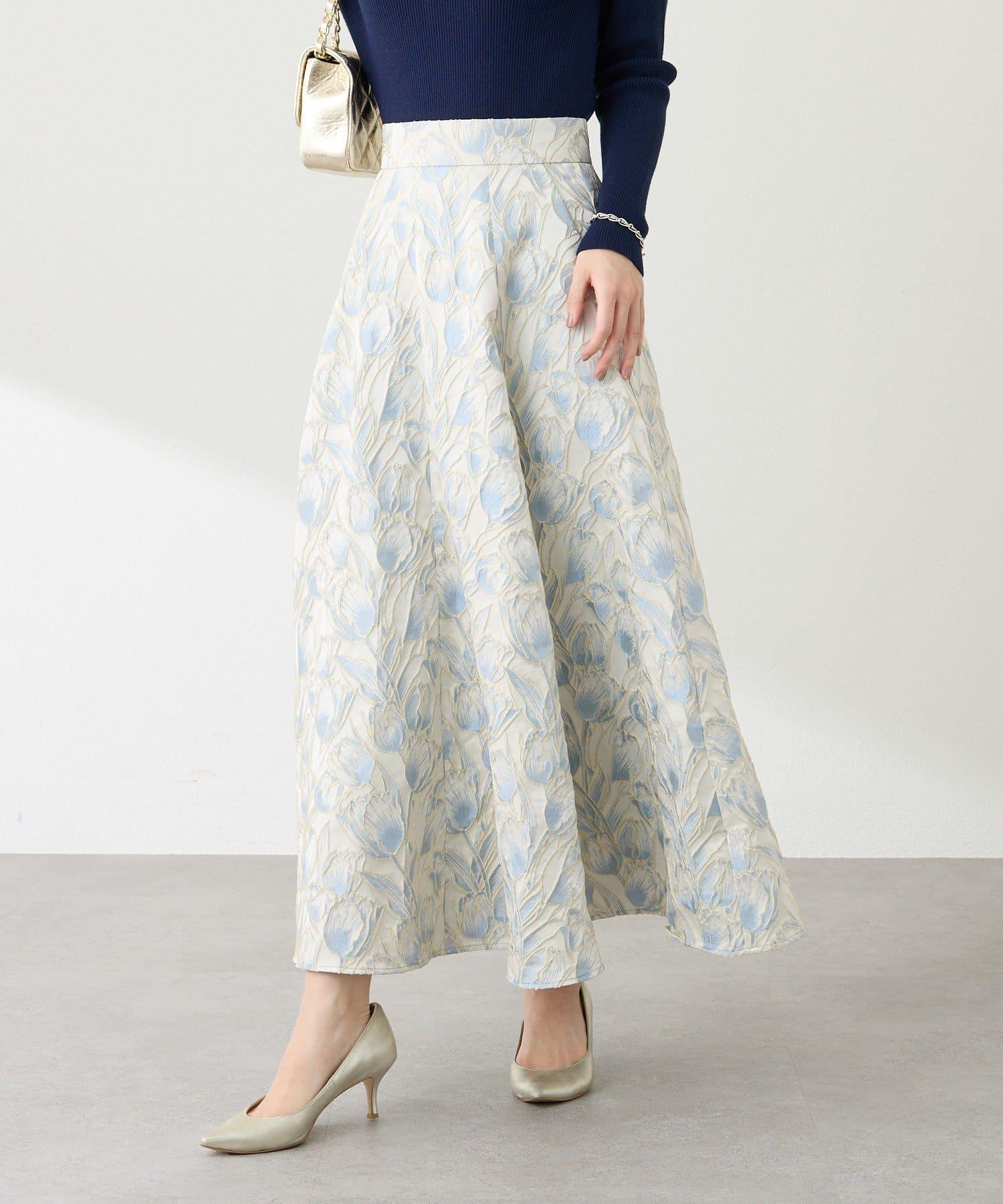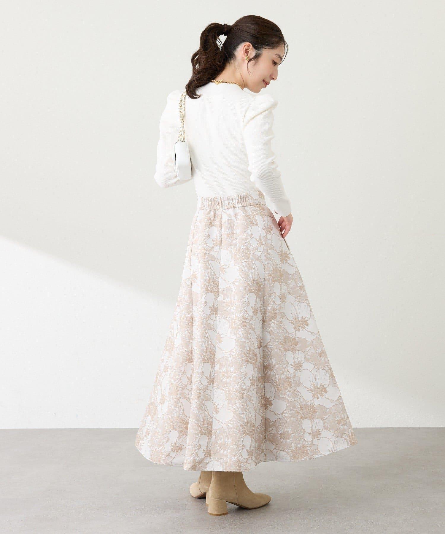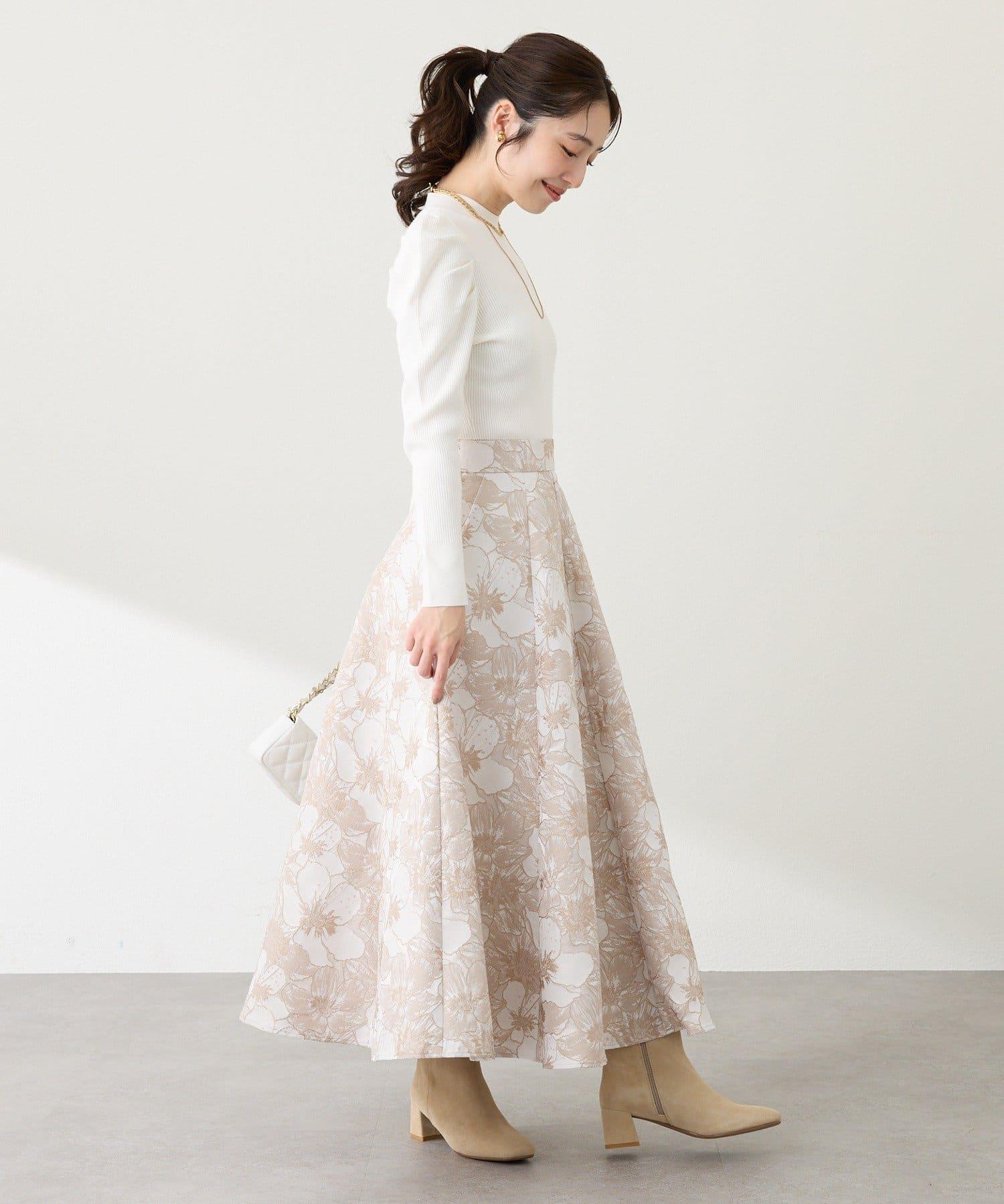 優雅的花朵提花賦予了這款喇叭裙強烈的存在感。