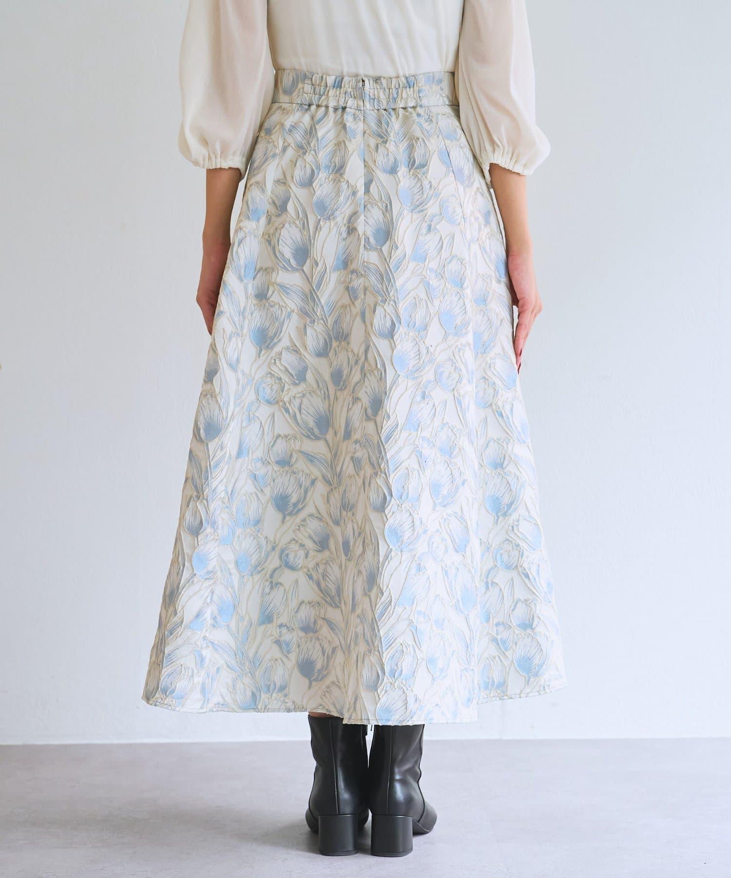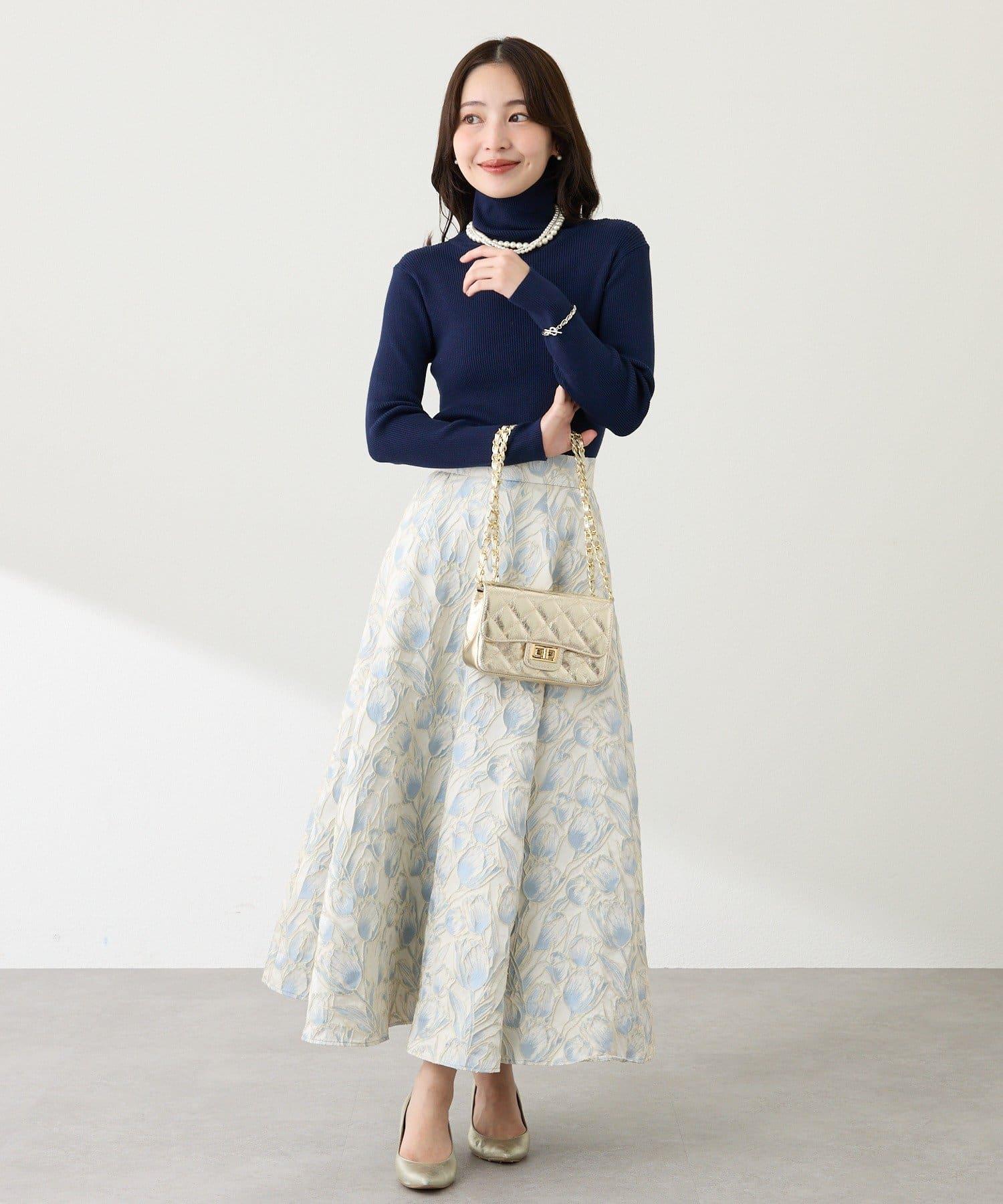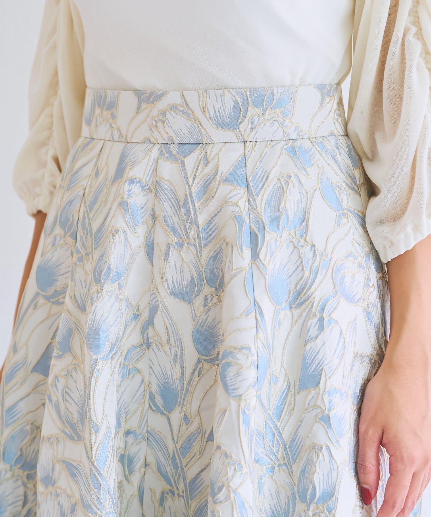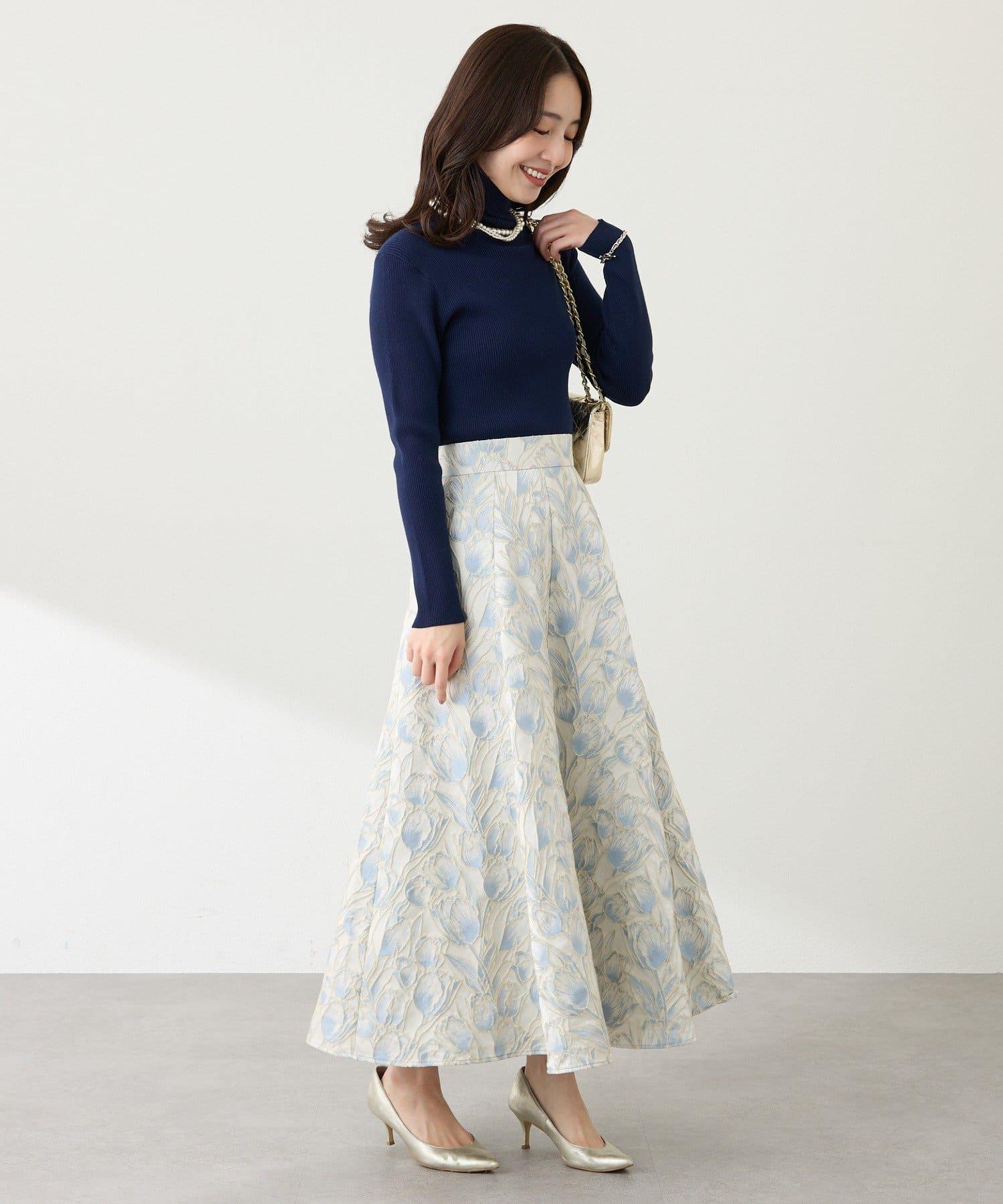 優雅的花朵提花賦予了這款喇叭裙強烈的存在感。