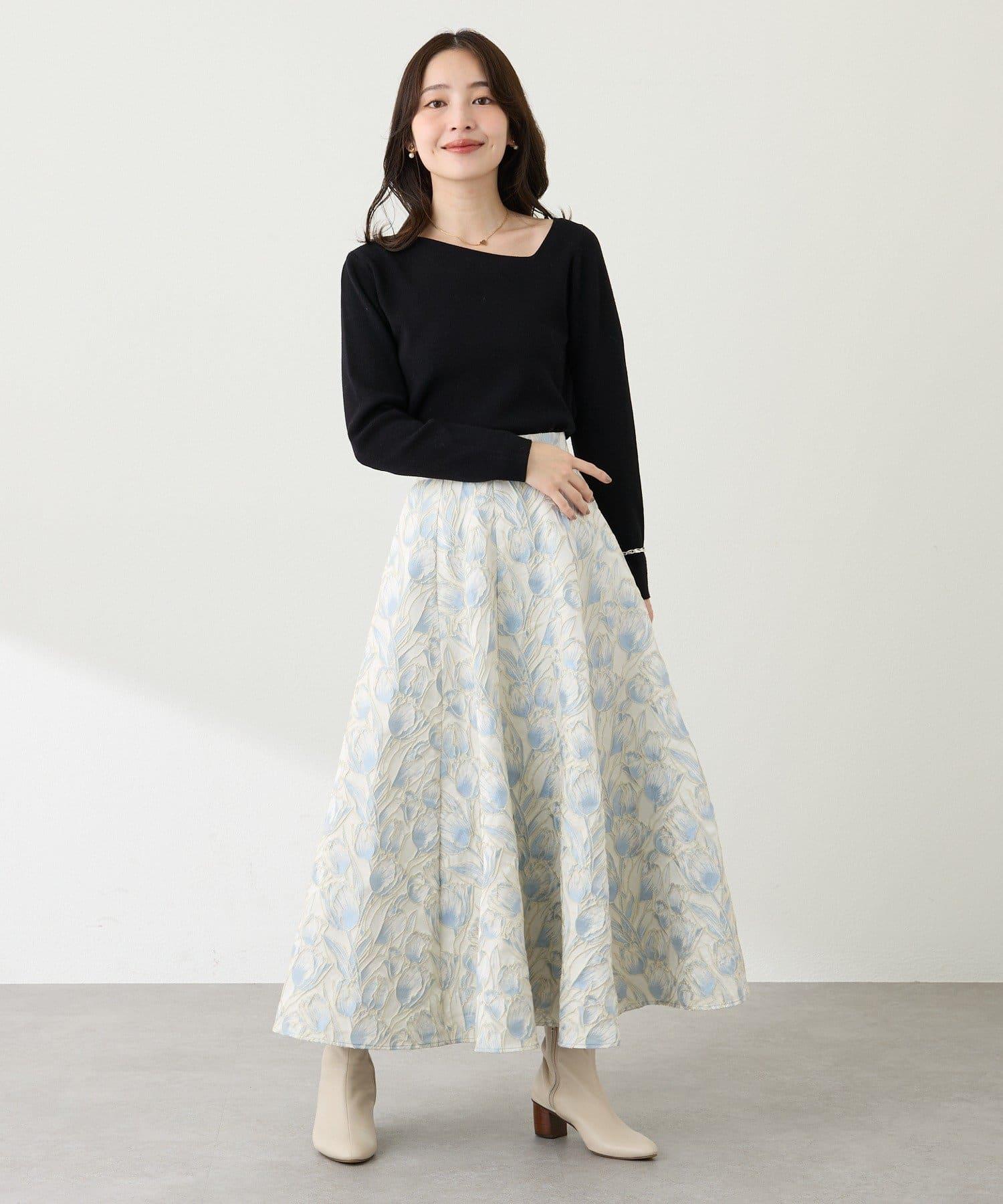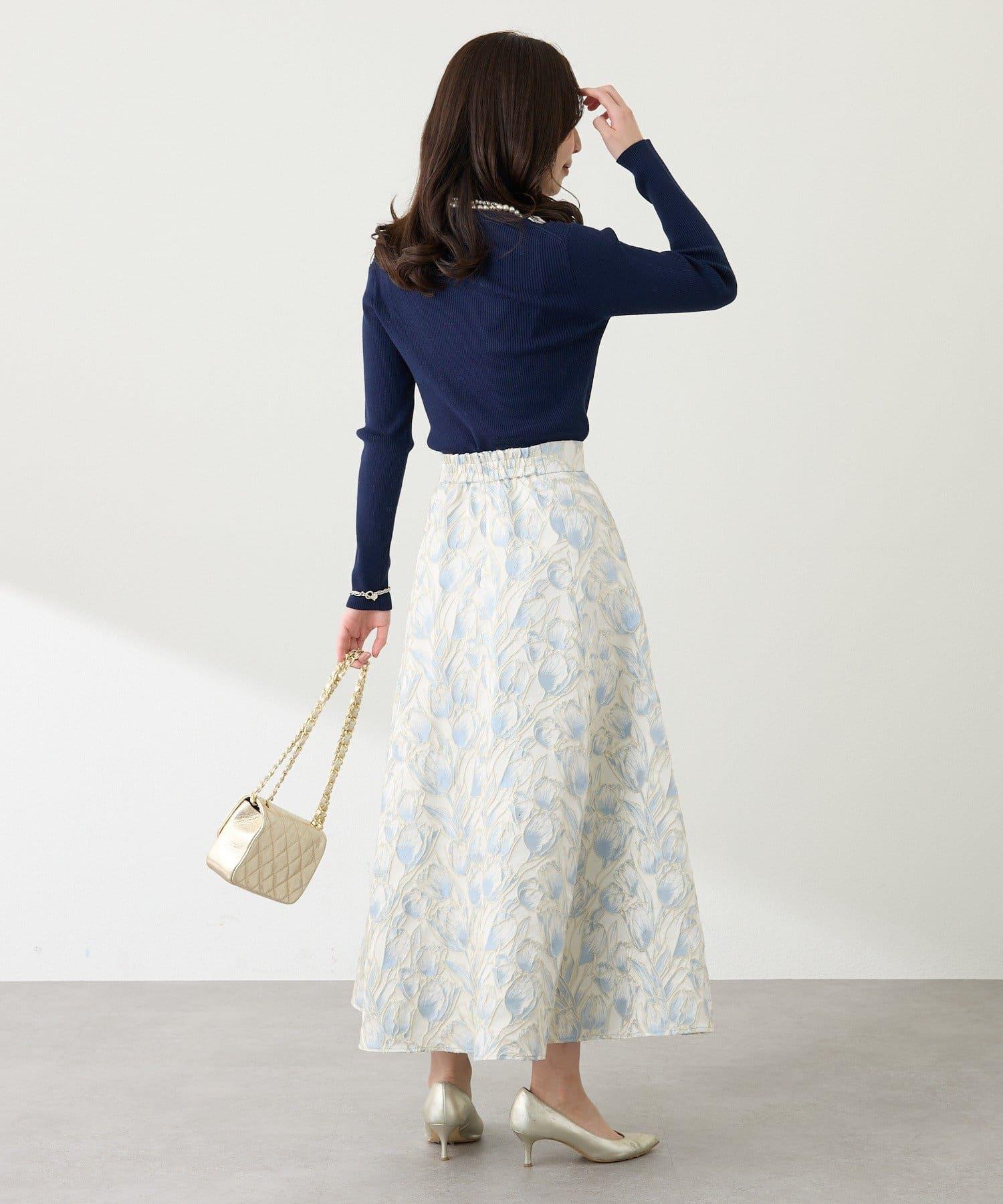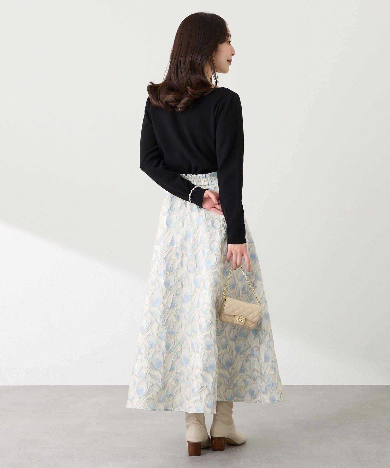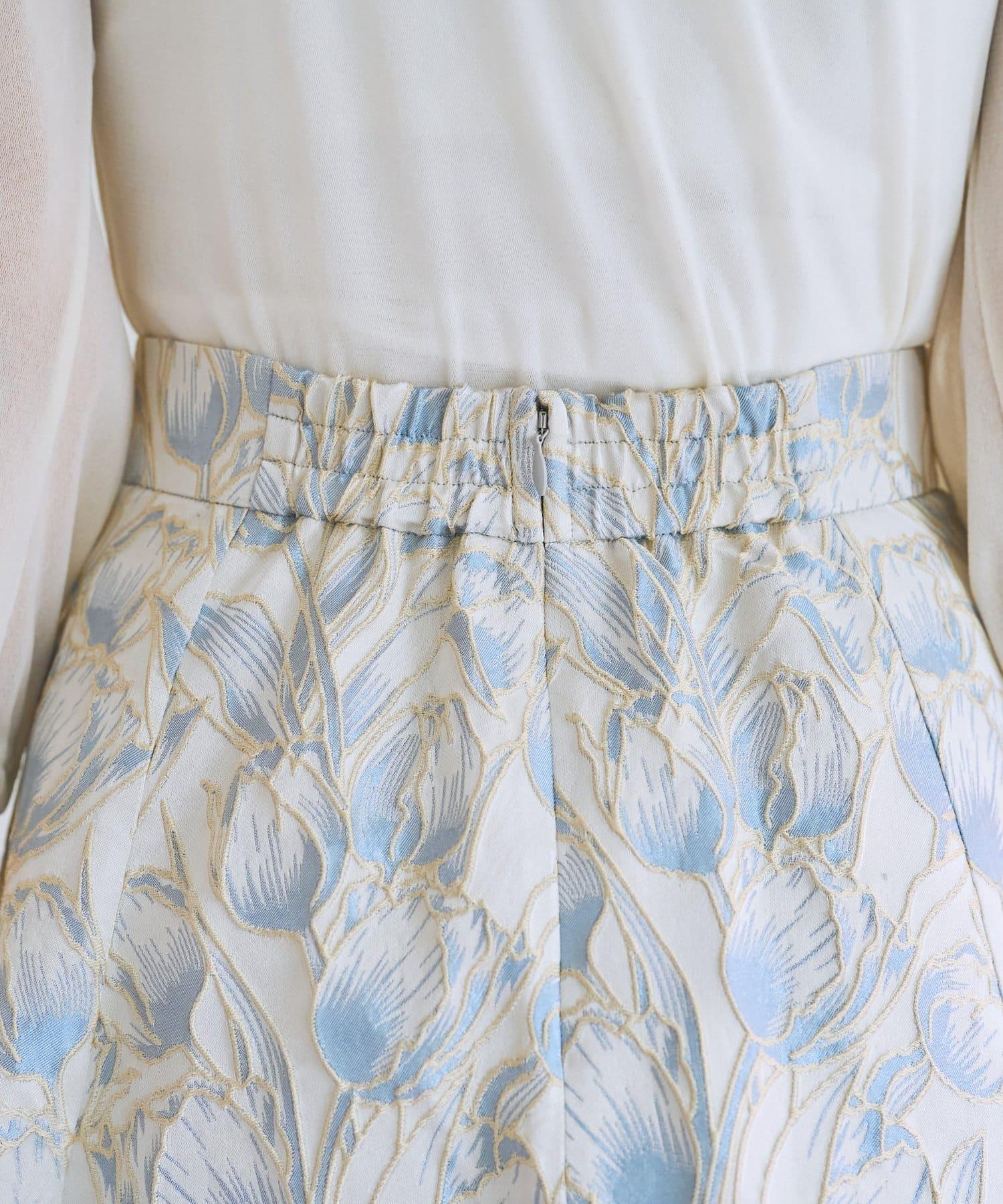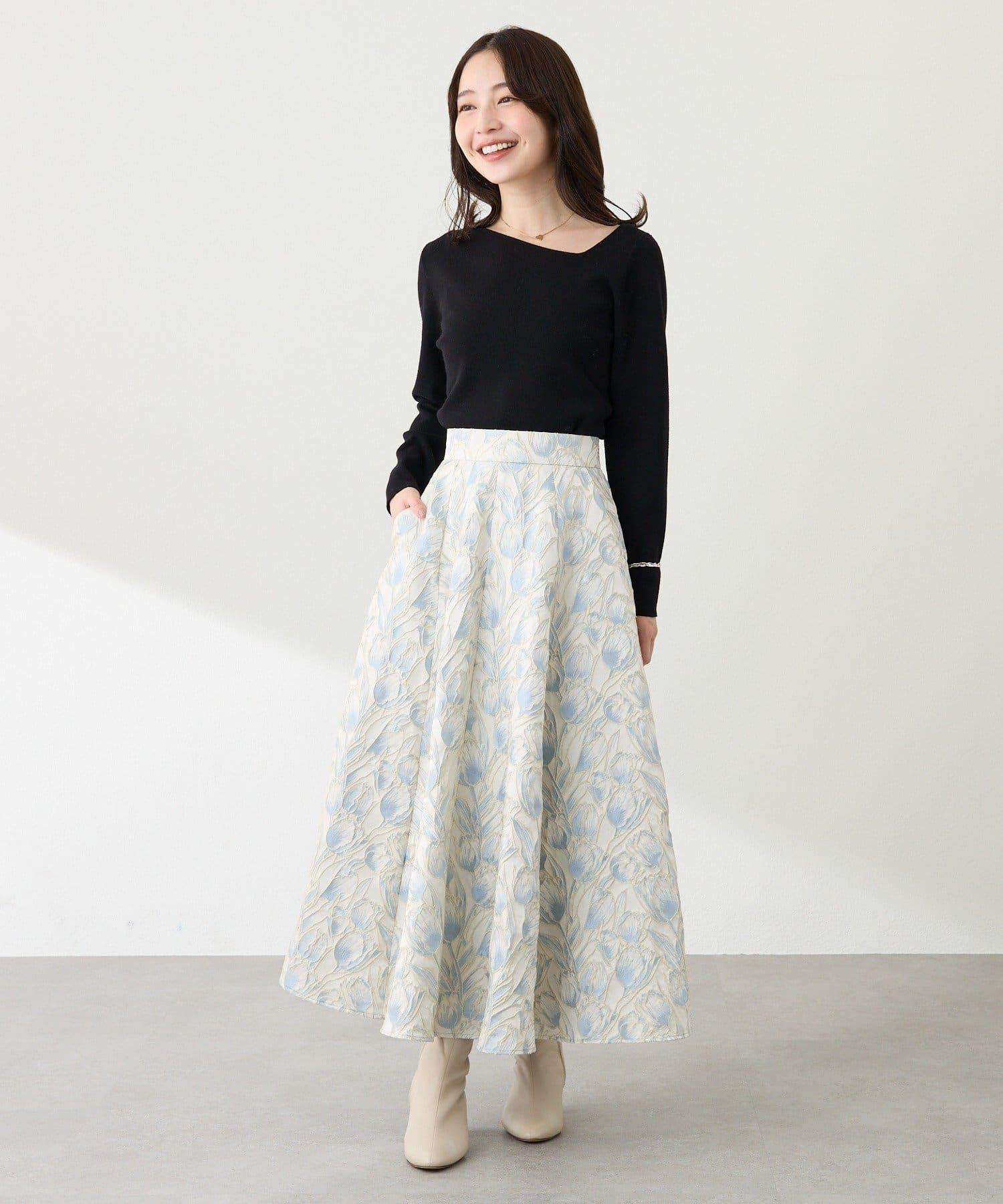 優雅的花朵提花賦予了這款喇叭裙強烈的存在感。