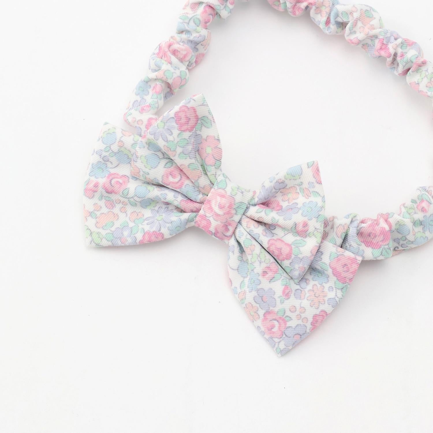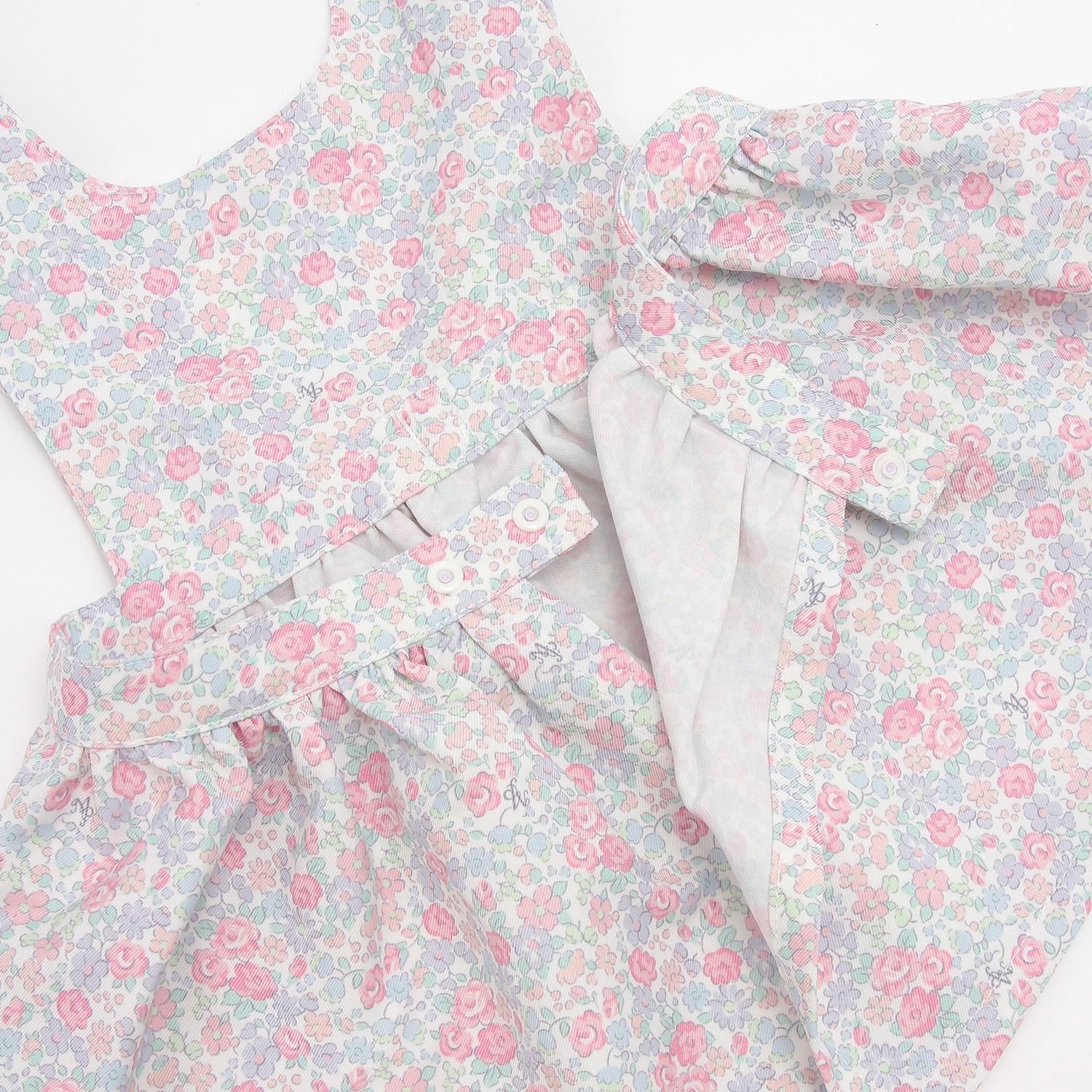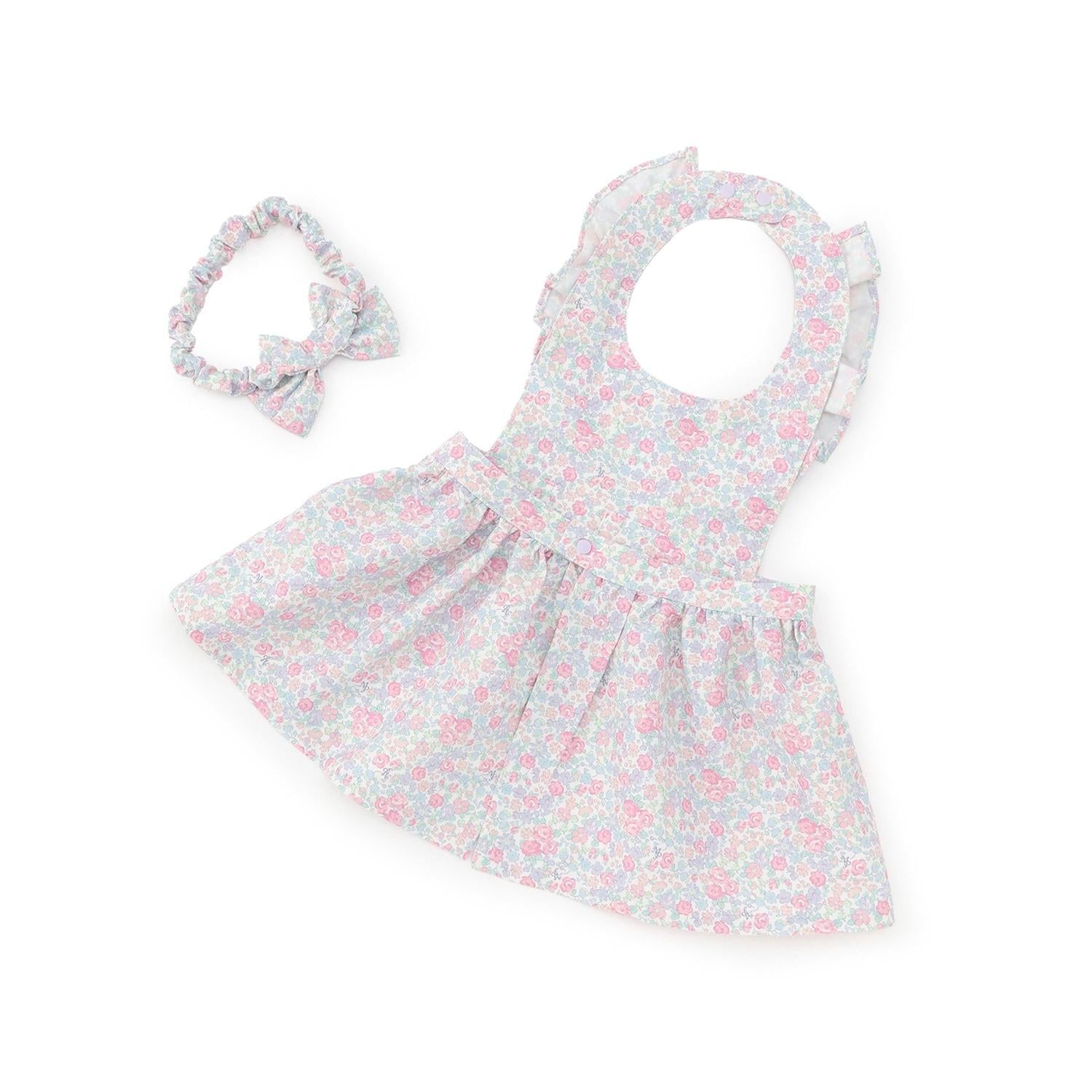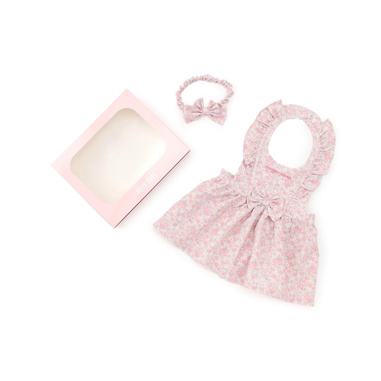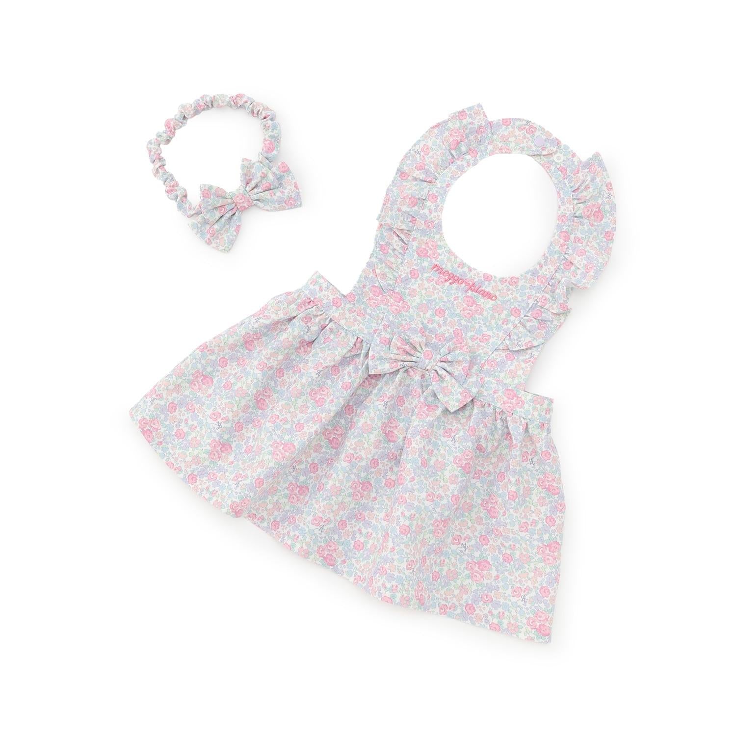 一套由 Mezzopiano 獨創的小花印花圖案拼接而成的圍裙和髮帶。