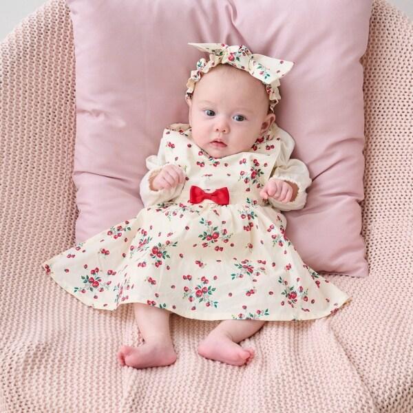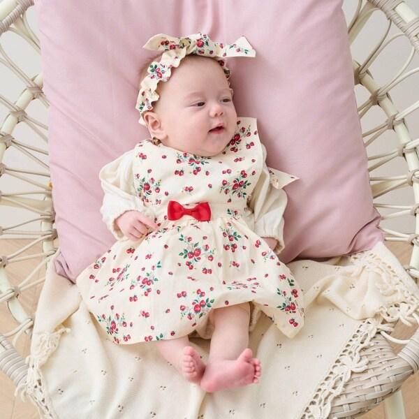 可愛的圍裙和髮箍套裝,印有野草莓圖案。