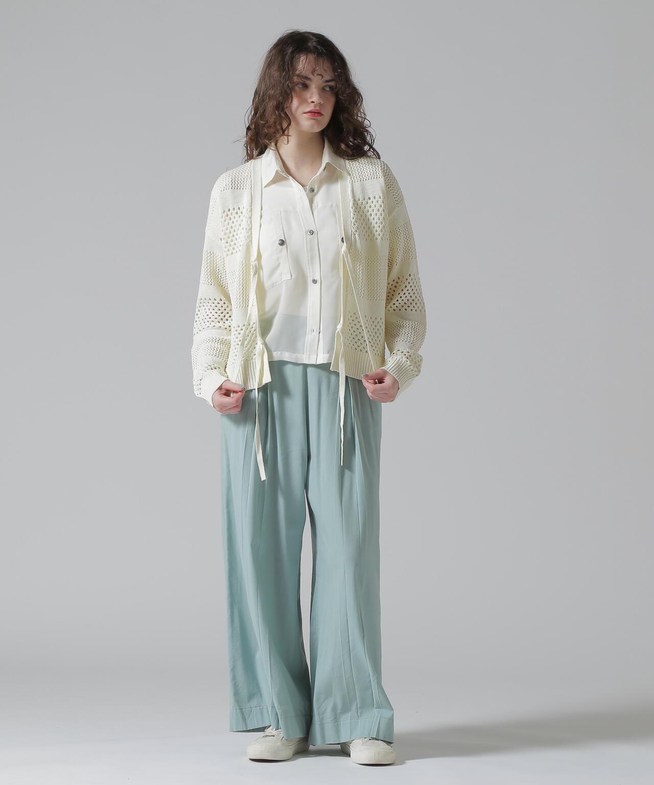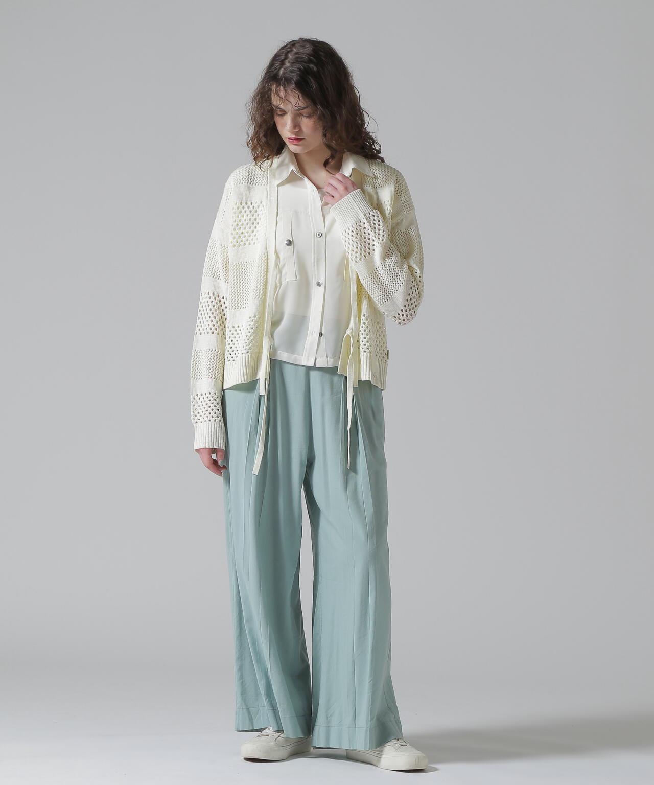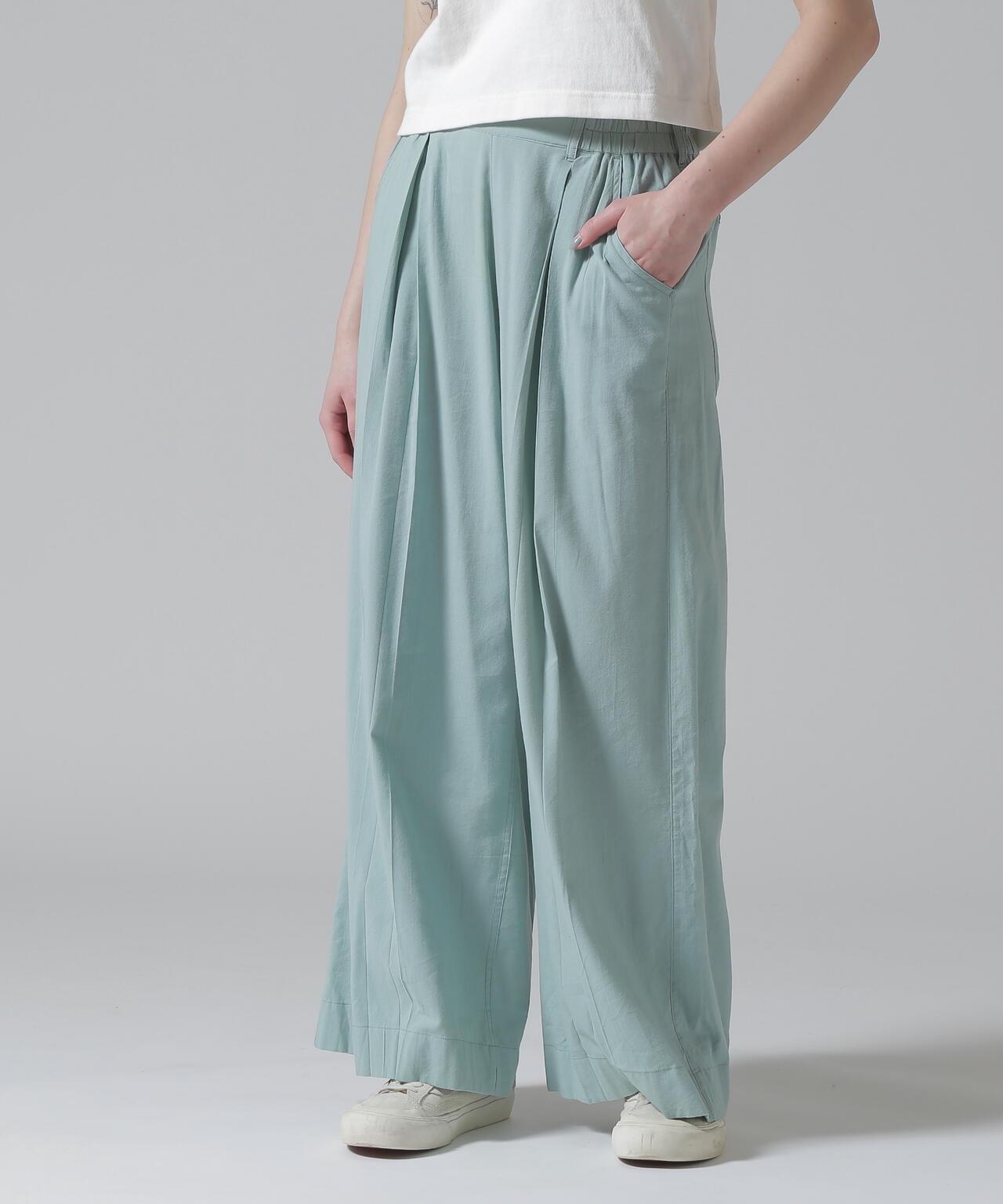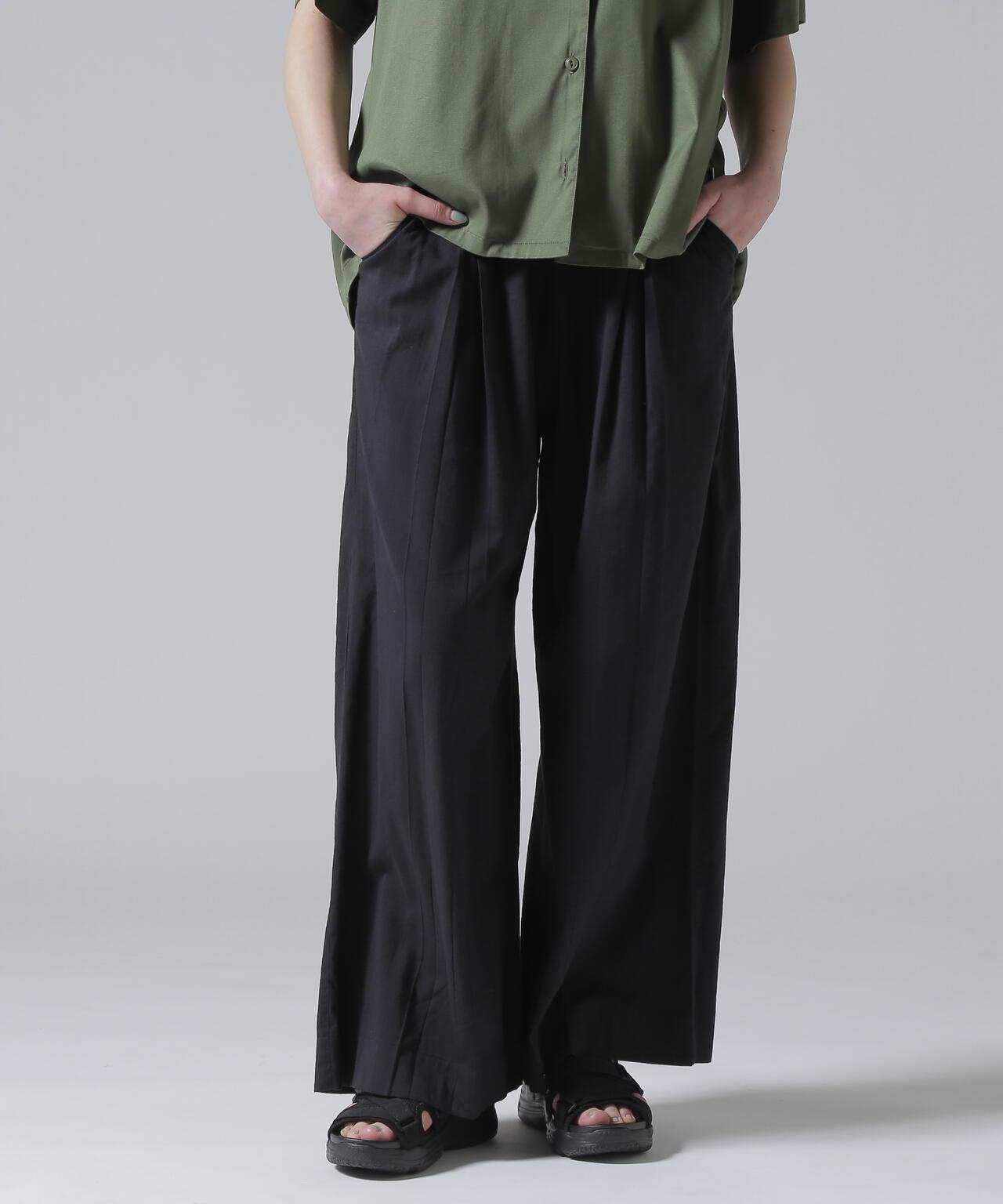 2025 春夏季單品盒褶休閒褲 - 前幅深盒褶設計,打造立體輪廓。廓形輕薄,易於活動,春夏季節穿著舒適。推薦造型寬鬆、寬大的廓形。今年推薦的造型是搭配短款上衣或廓形適中的上衣。AVIREX WOMAN] 該系列將純正軍裝的功能性和設計感投射到女性休閒裝上。該系列面向聰明、自由、好奇、端莊、活潑的成年職業女性,是一個具有個性和時代感的女裝品牌。