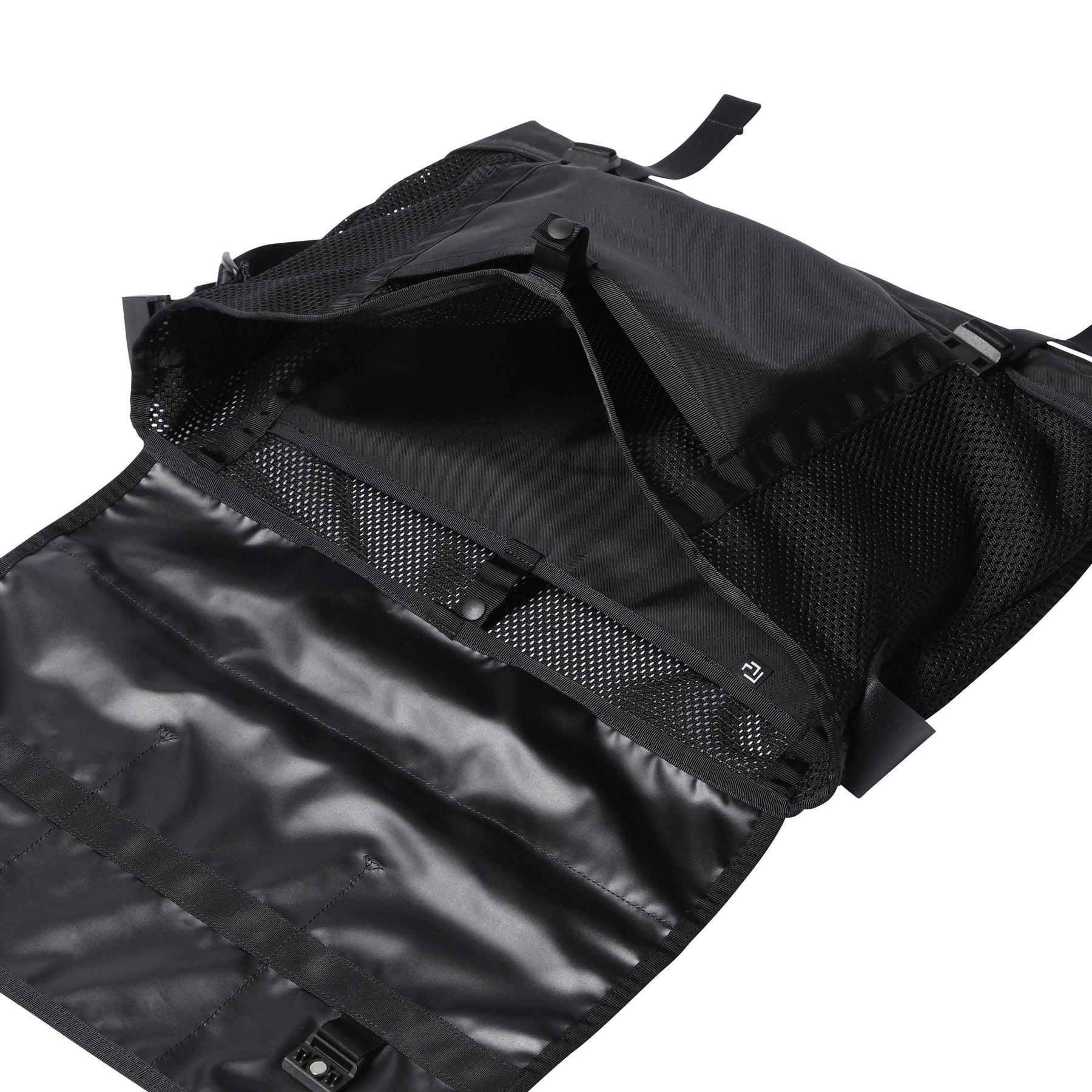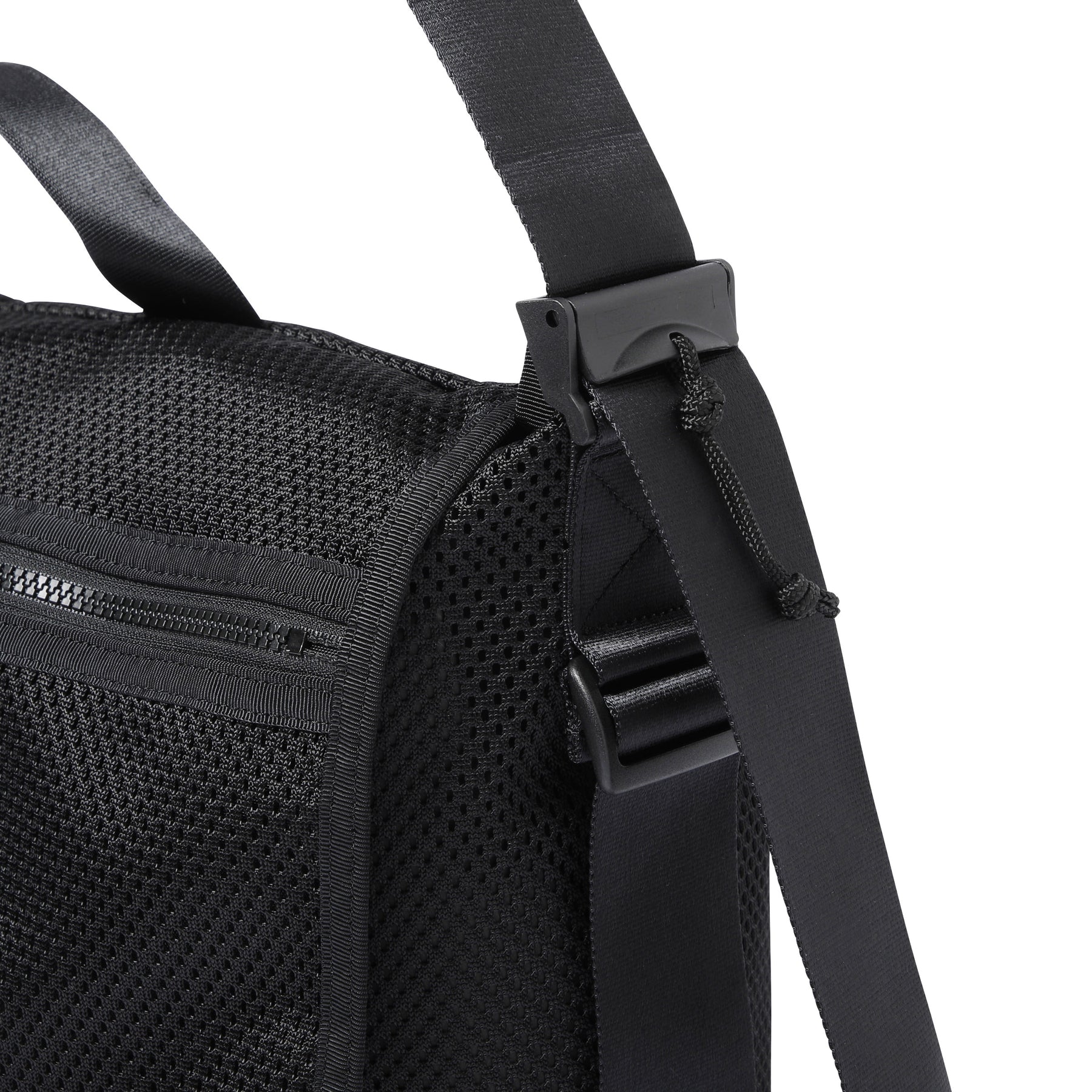 與大多數斜挎包相比,這款斜挎包略顯小巧。包蓋下方有一個磁扣,保持了簡潔的外觀。包蓋外側有一個分隔口袋,可放置經常取出的物品。與身體接觸的部分由厚重的網眼材料製成,這種聚酯材料即使直接接觸皮膚也很舒適,即使在盛夏也能穿著舒適。柔軟的網眼材料貫穿始終,而內襯則由 420d 尼龍氧化物製成,表面經過 PVC 處理,使包包具有良好的張力和質感。