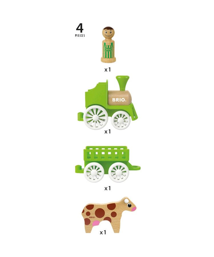 火車頭、馬車、司機和奶牛套裝。司機和奶牛可以裝載和卸載,馬車和火車頭可以連接和斷開,通過遊戲學習社交技能。