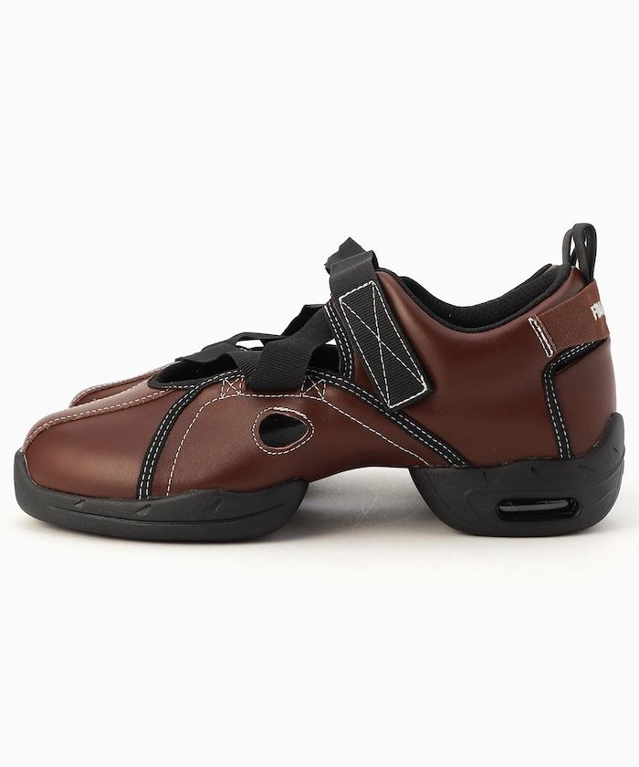 棕色皮革鞋身搭配白色線條,給人以休閒而精緻的印象。