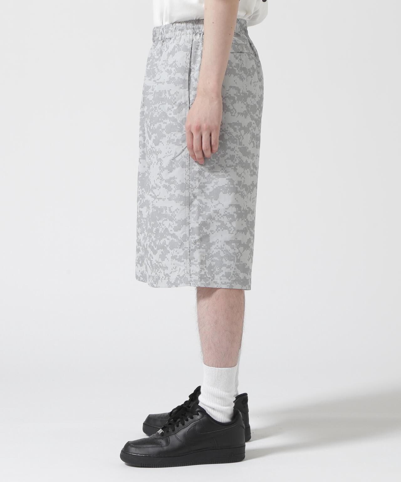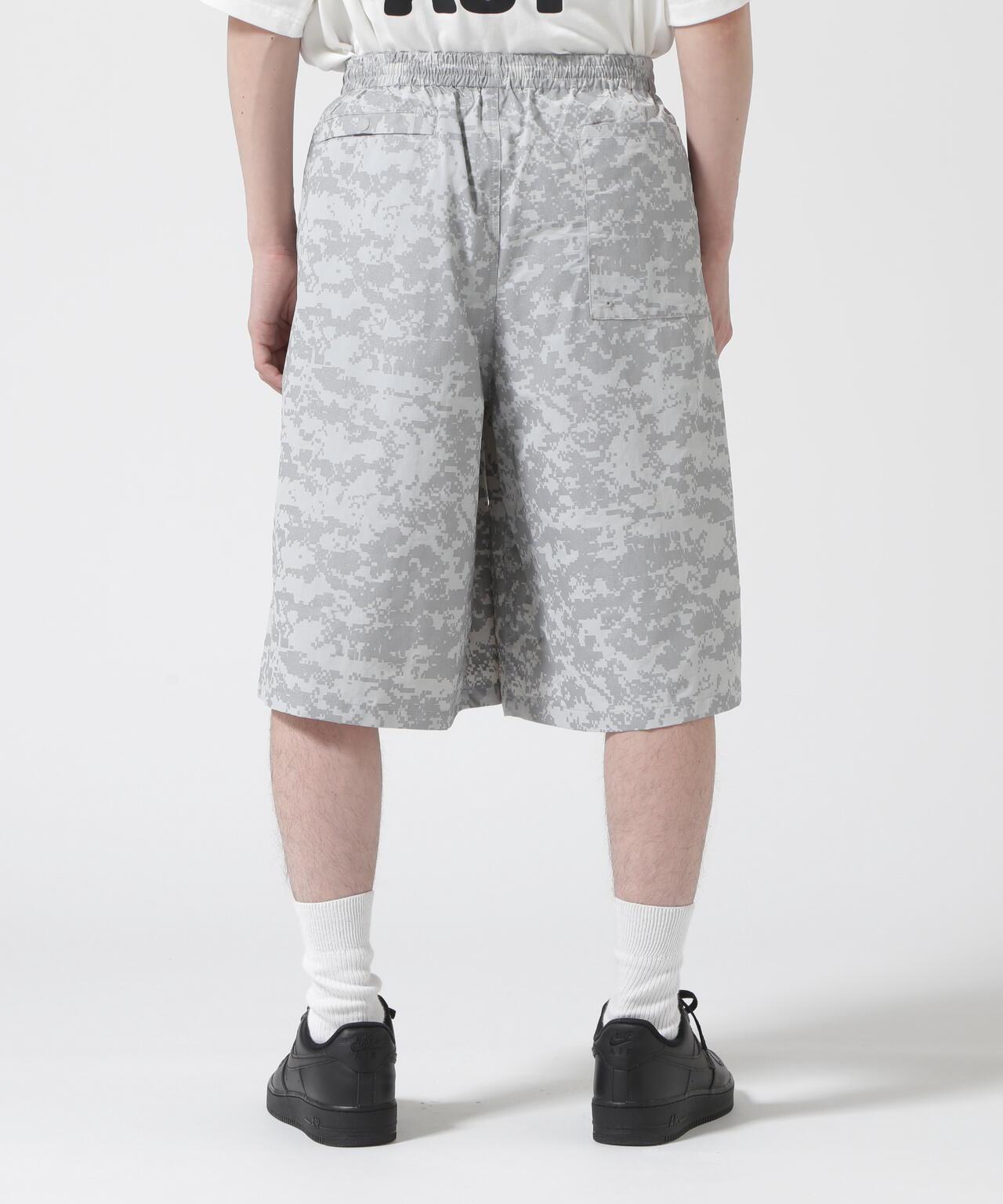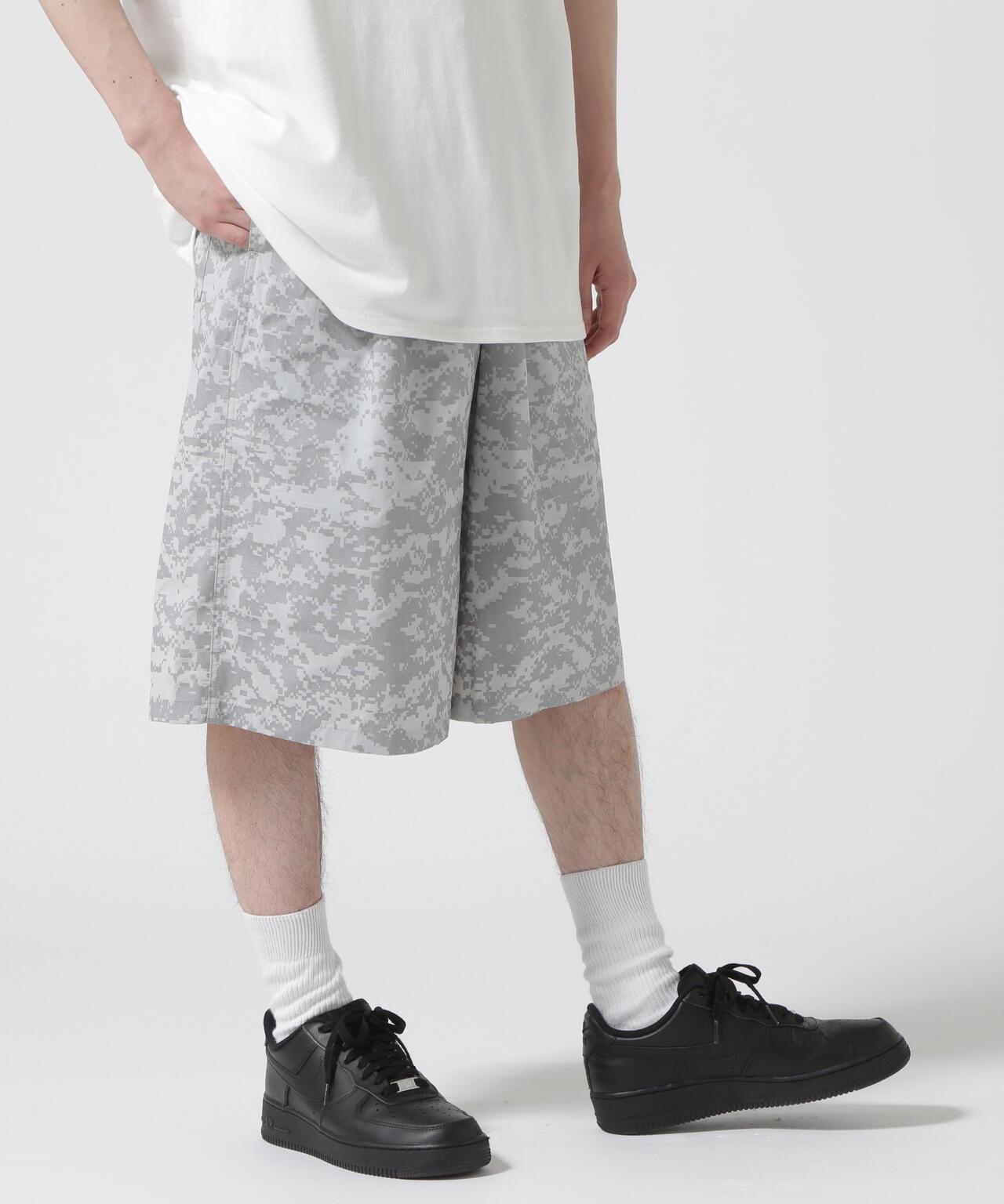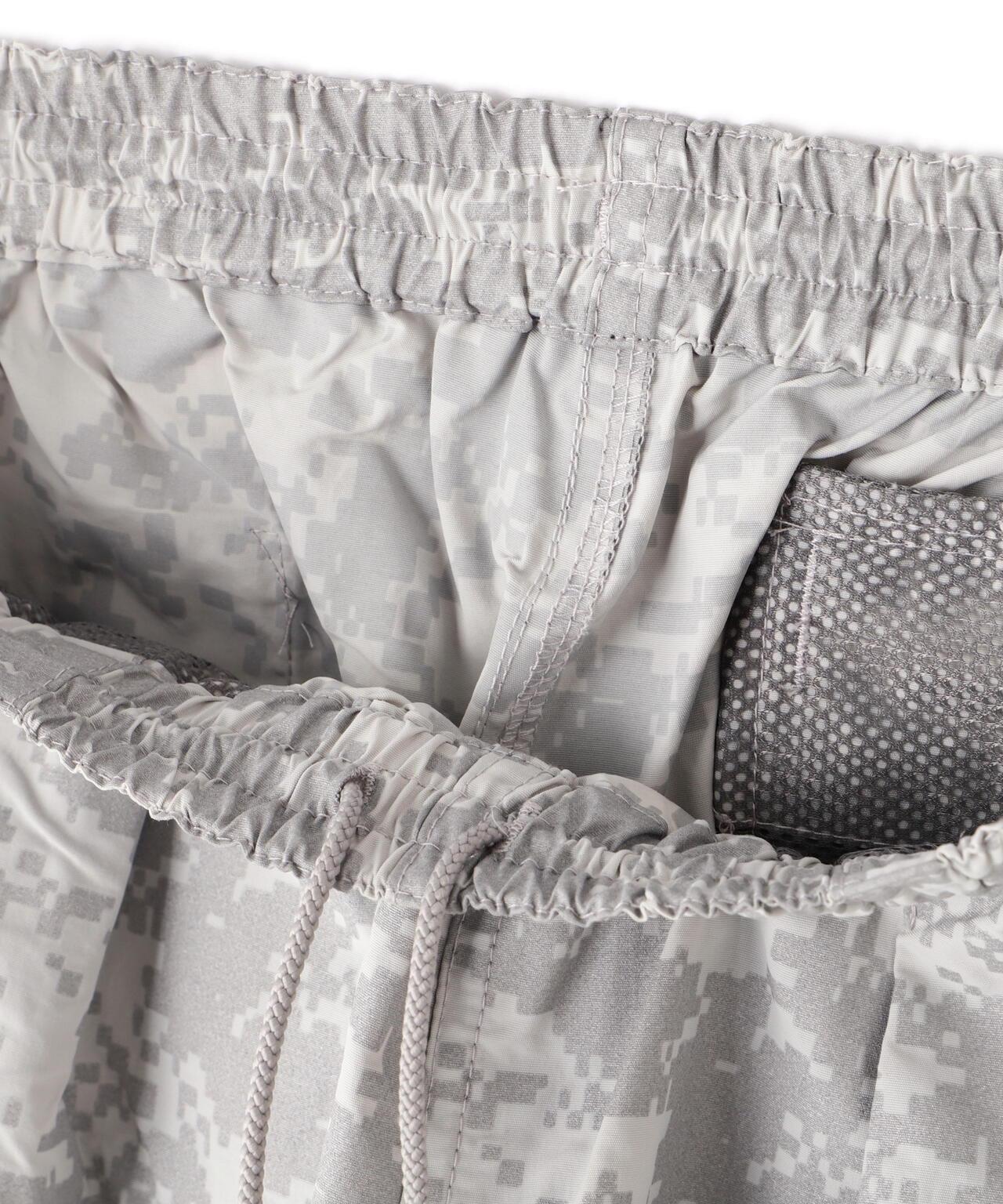 BURLAP OUTFITTER / BURLAP OUTFITTER Bespoke TRACK JAM 短褲 短褲採用快乾、抗紫外線的 Supplex 尼龍面料,印有全面的 digicamo 反光印花。有兩種顏色可供選擇:黑色配黑色,灰色配銀色反光印花。即使在天黑後外出,反光效果也很強,因此能見度極高。BURLAP OUTFITTER [BURLAP OUTFITTER] "ASK THE FABRIC"(詢問面料)是其主要理念。 它採用高功能材料,提供精心設計的日常穿著。 輕便保暖、防風防雨、柔軟舒適、易洗快乾...