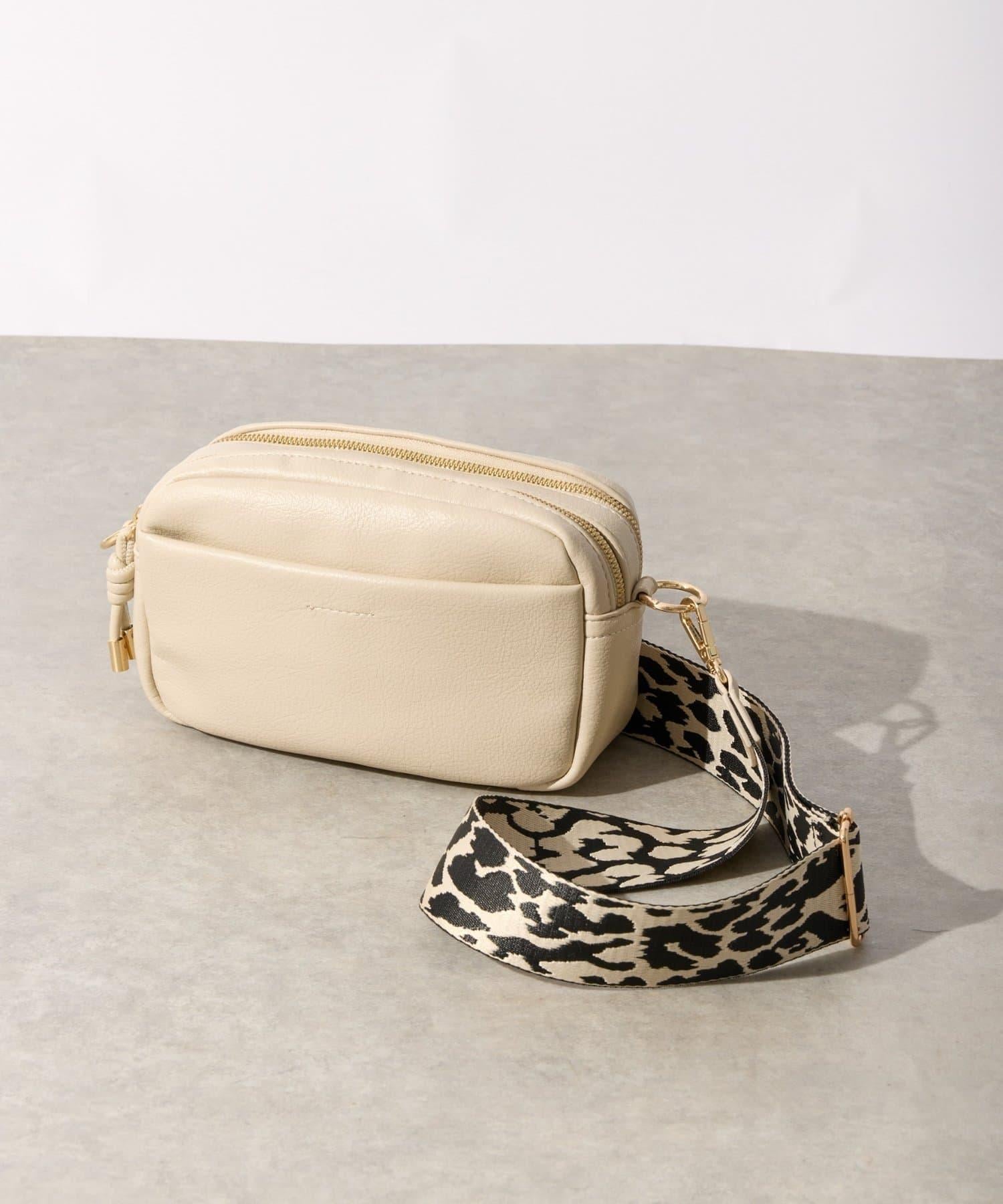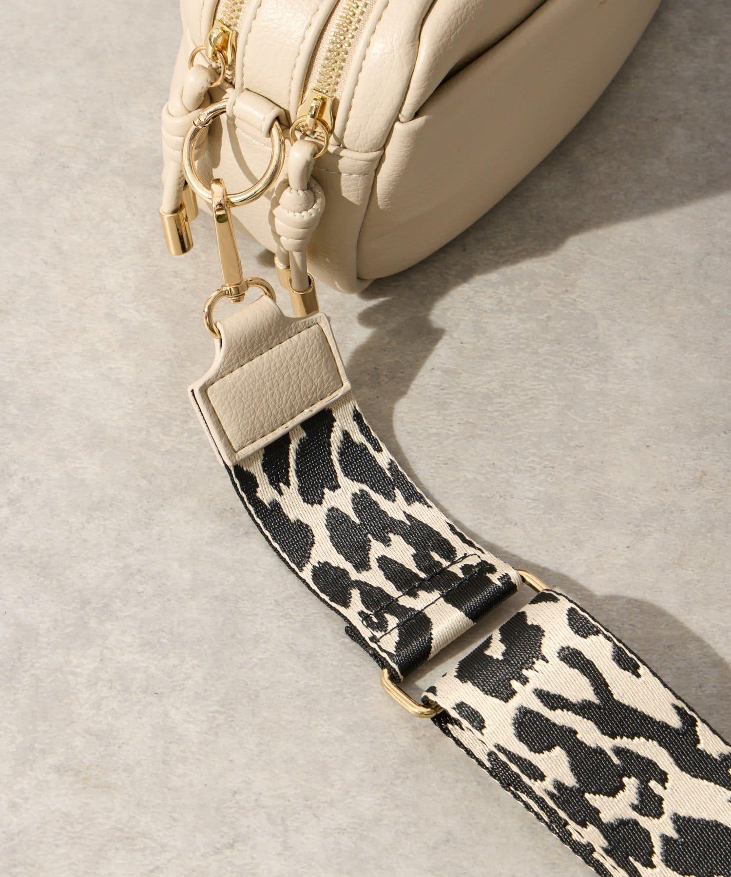 包的材質,並配有兩條豹紋肩帶,讓您在各種場合都能盡情享受!