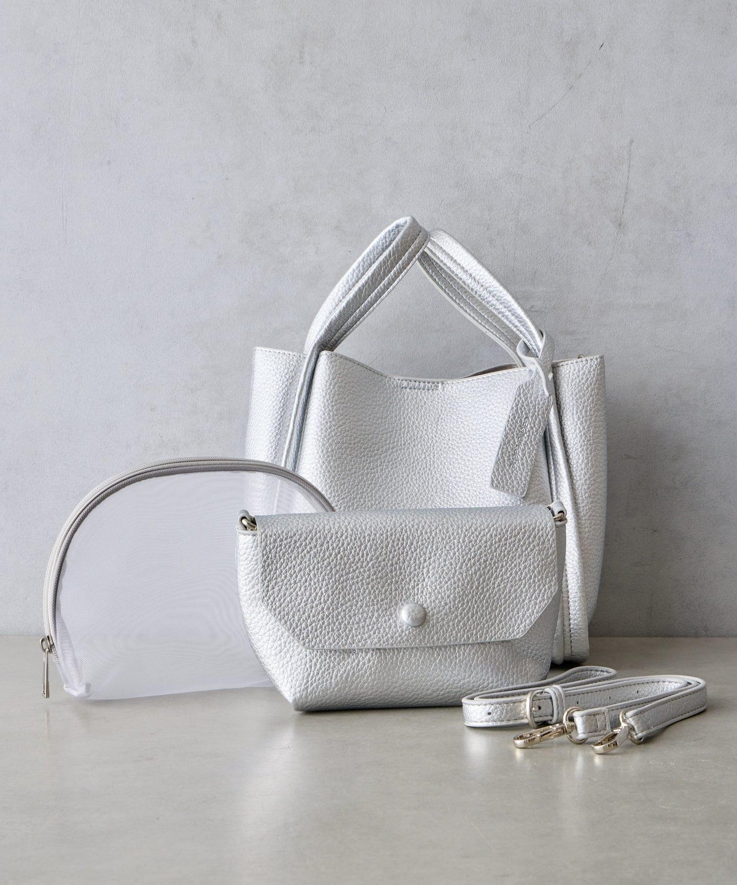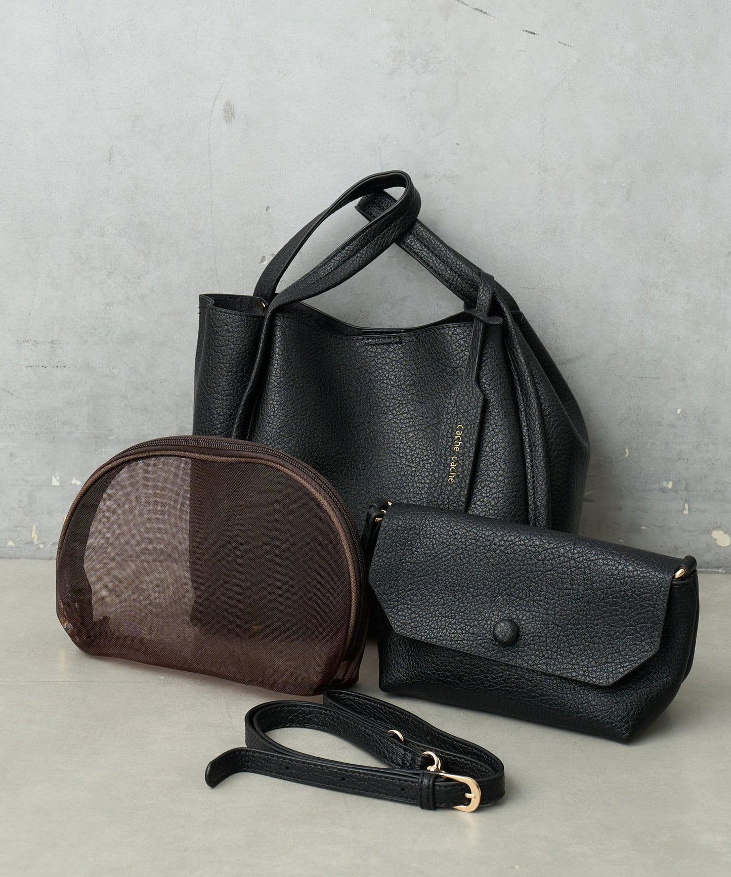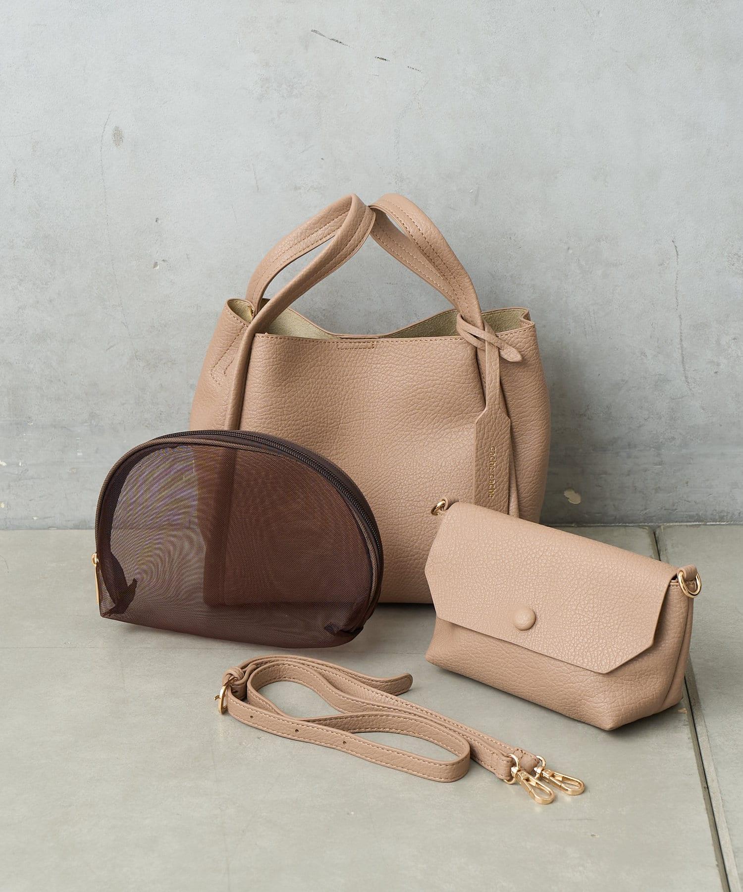 這款手提包套裝包括一個方便外出的單肩包和一個裝有奢華物品的網袋。