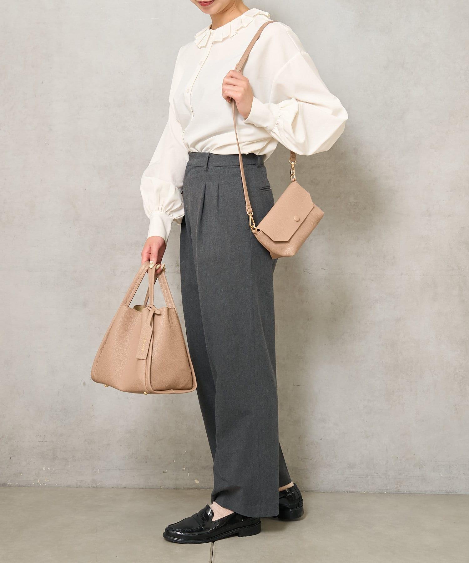 主包可作為手提包佩戴,而迷你包則可將肩帶系在迷你包上,作為兩個包來攜帶。