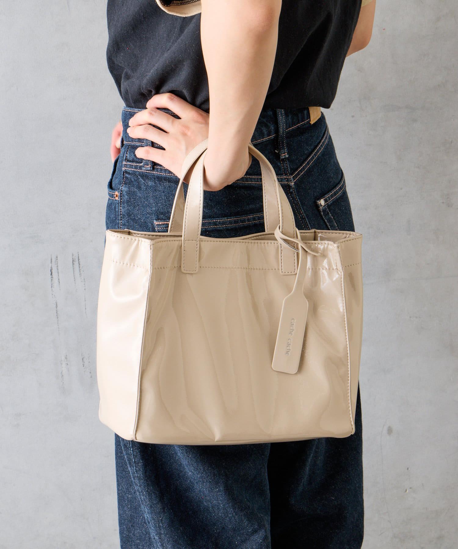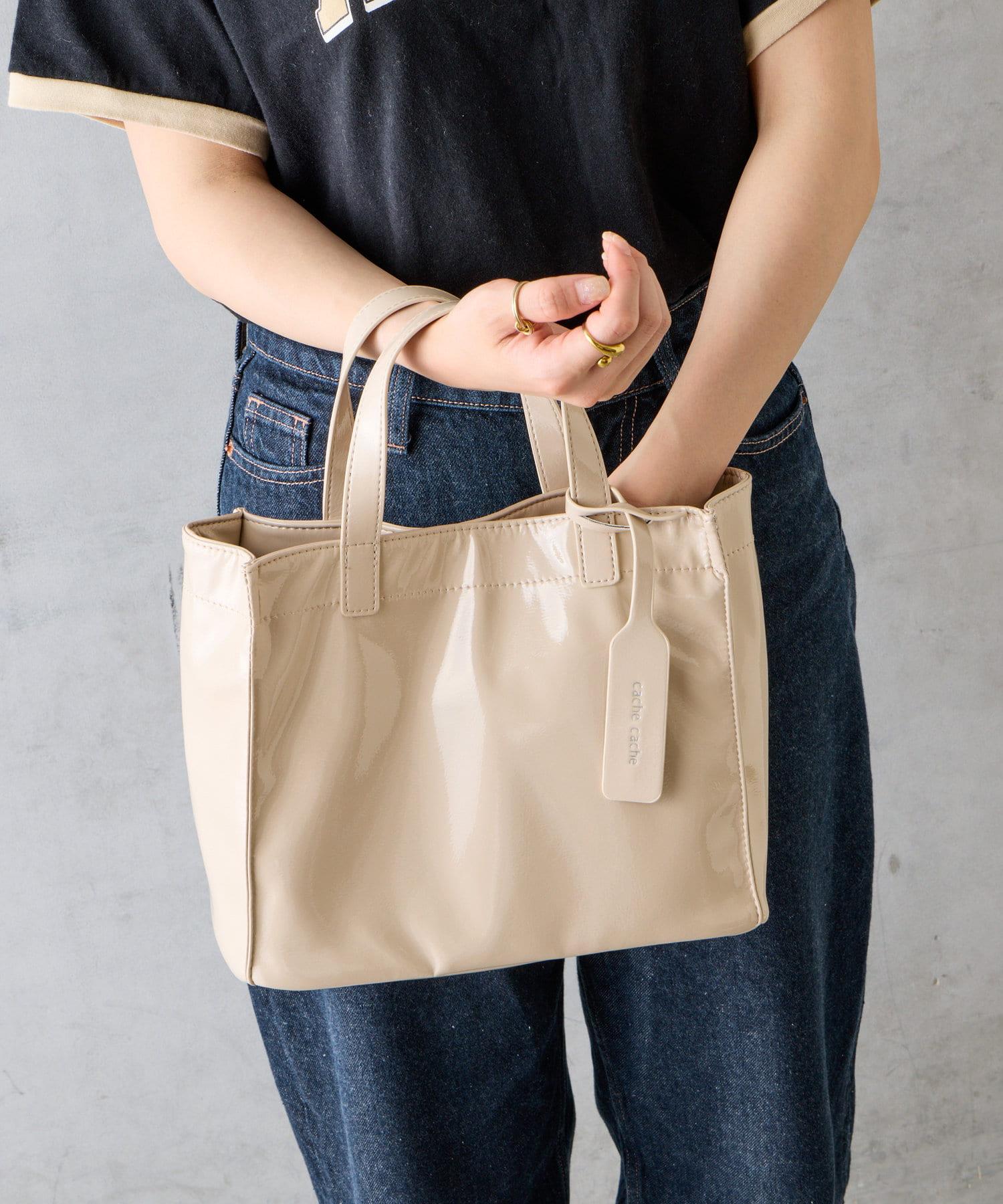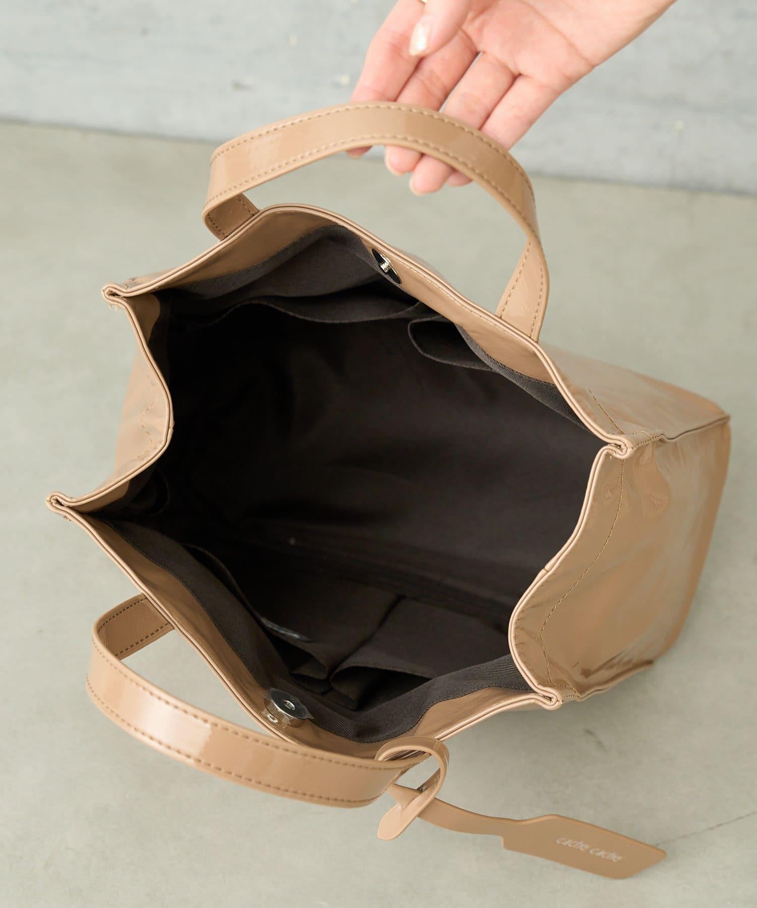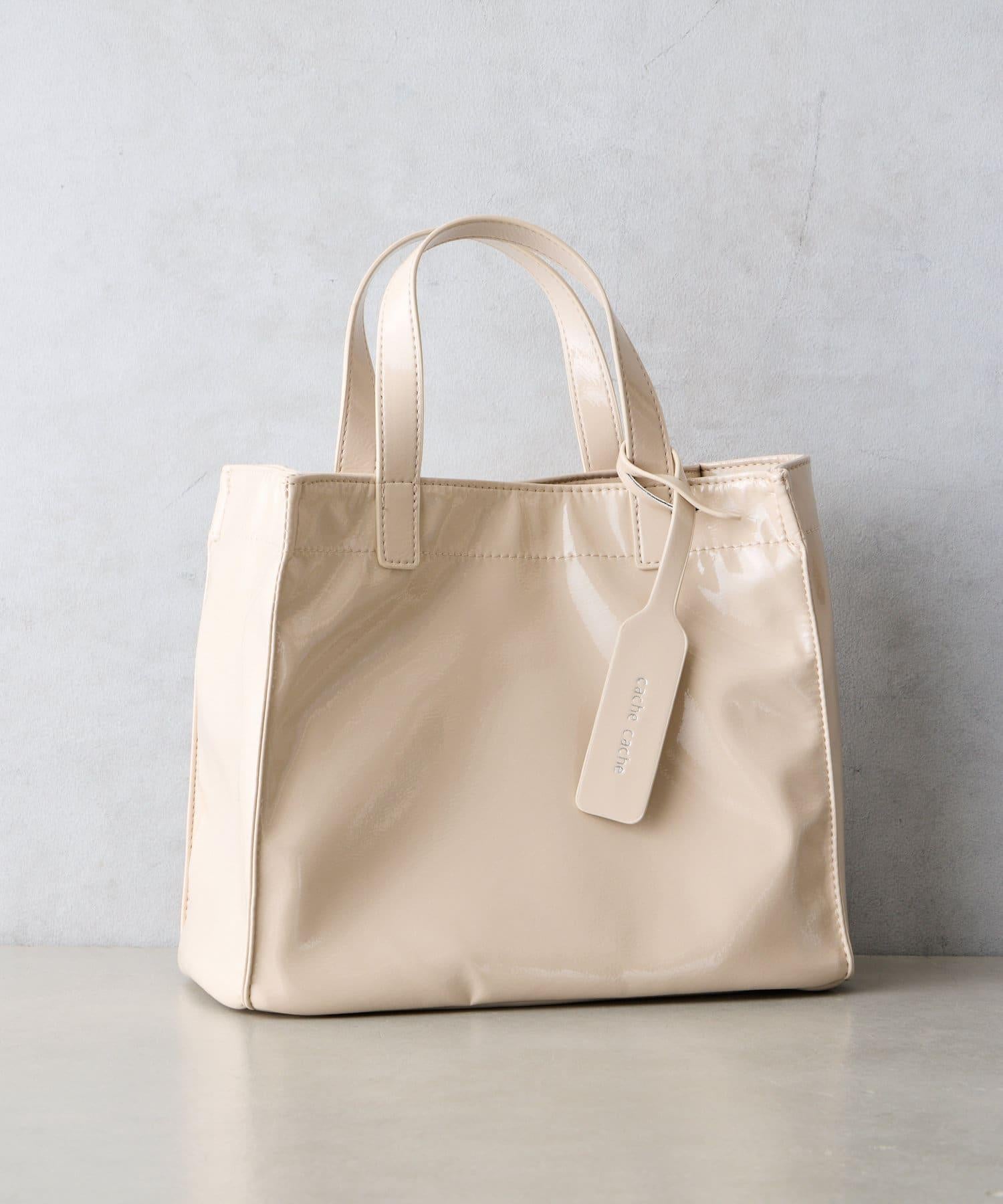 【cache cache 卡仕卡仕】仿漆皮風購物袋S尺寸