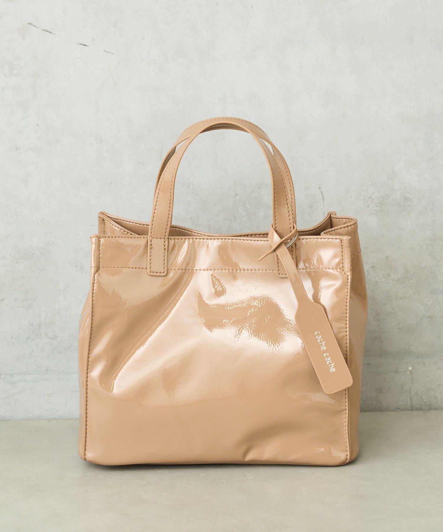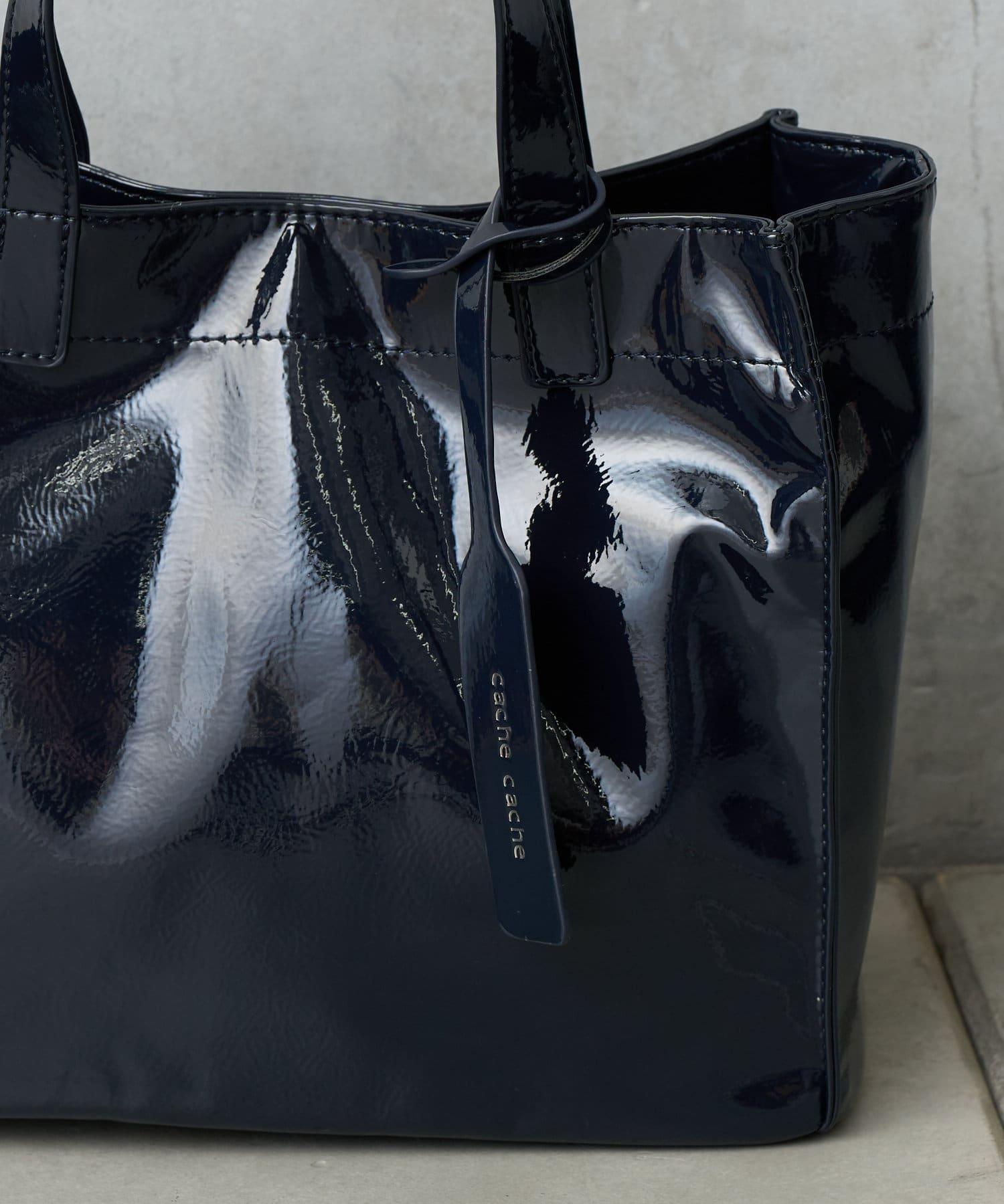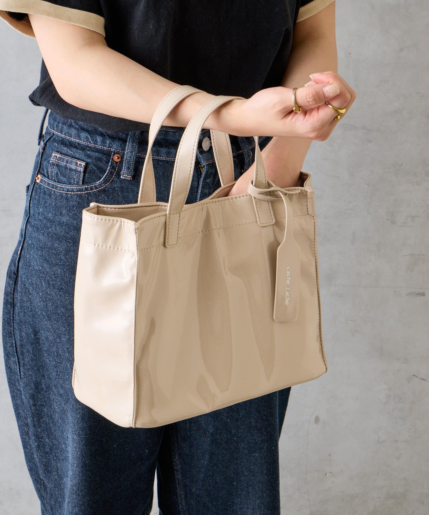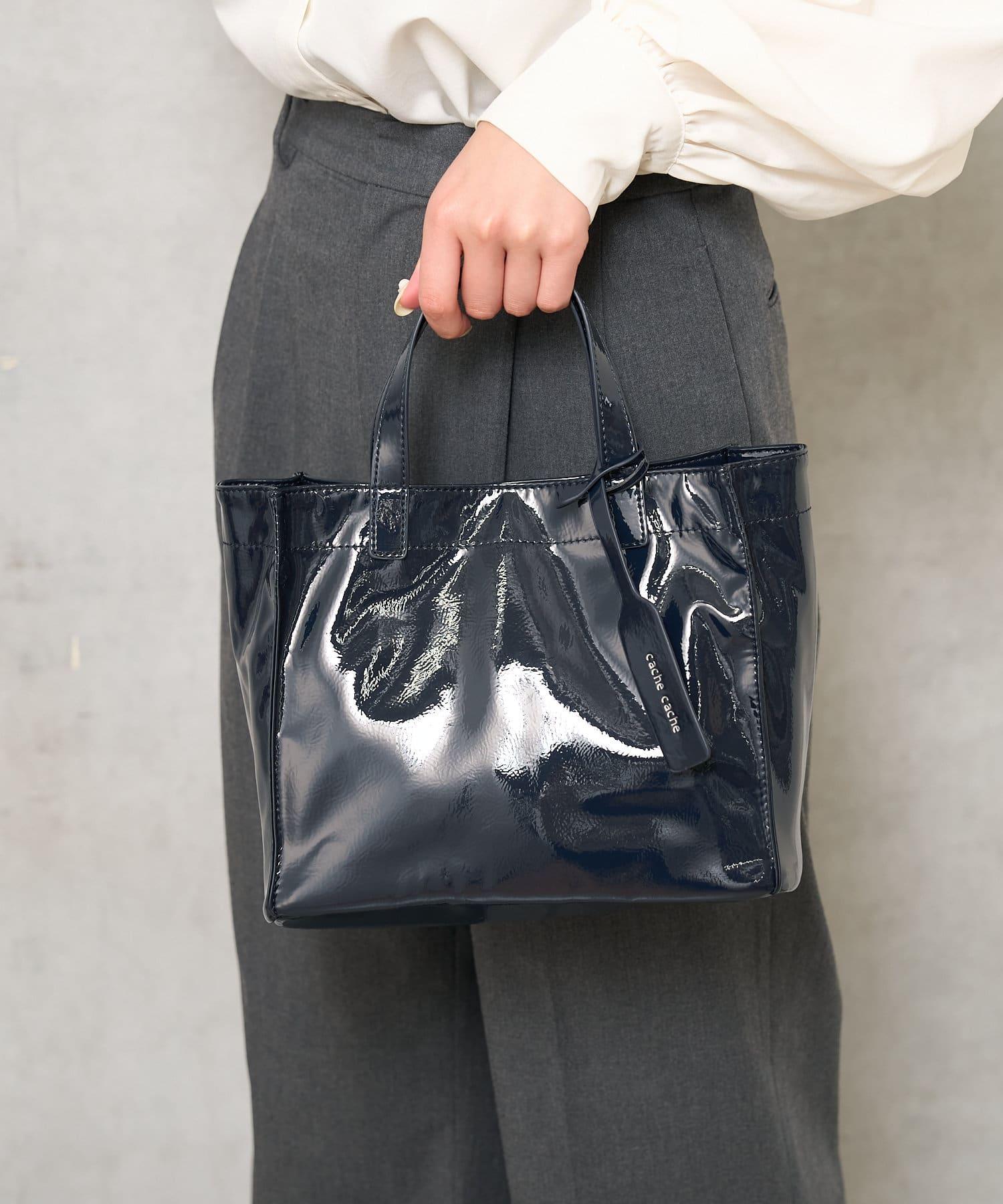 【cache cache 卡仕卡仕】仿漆皮風購物袋S尺寸