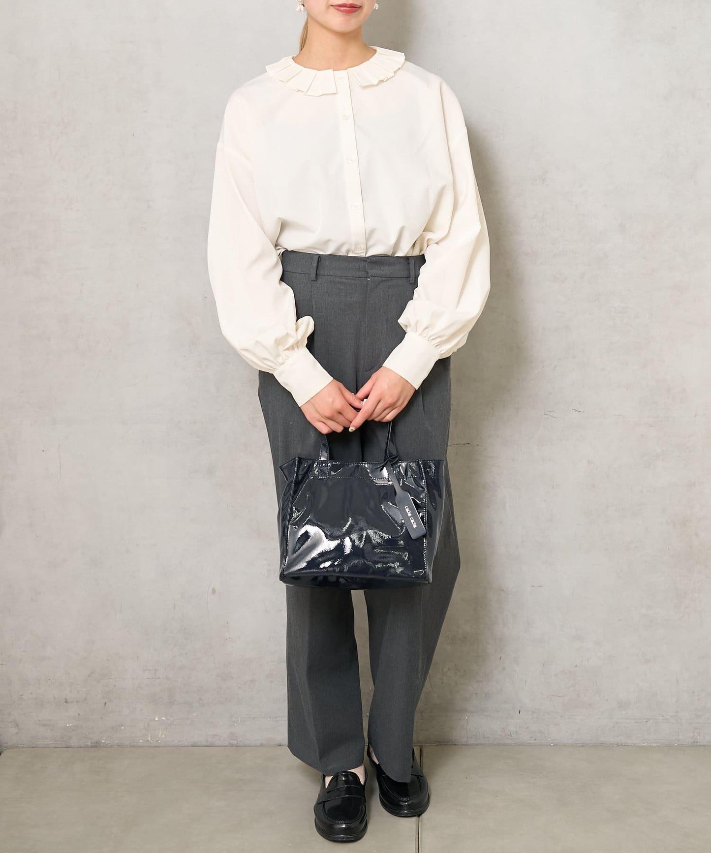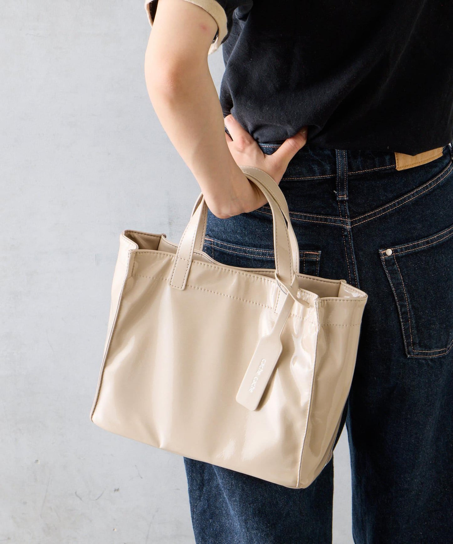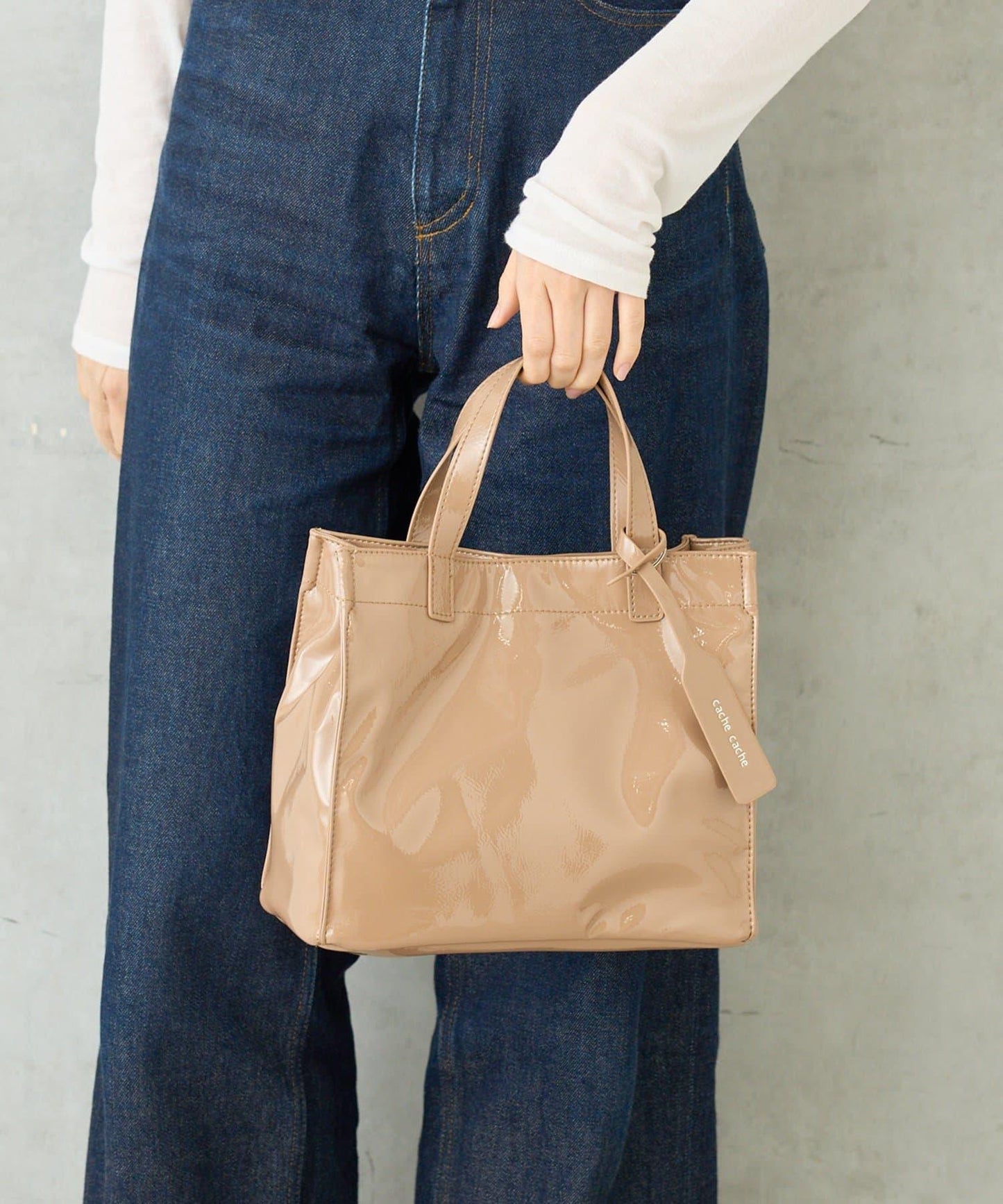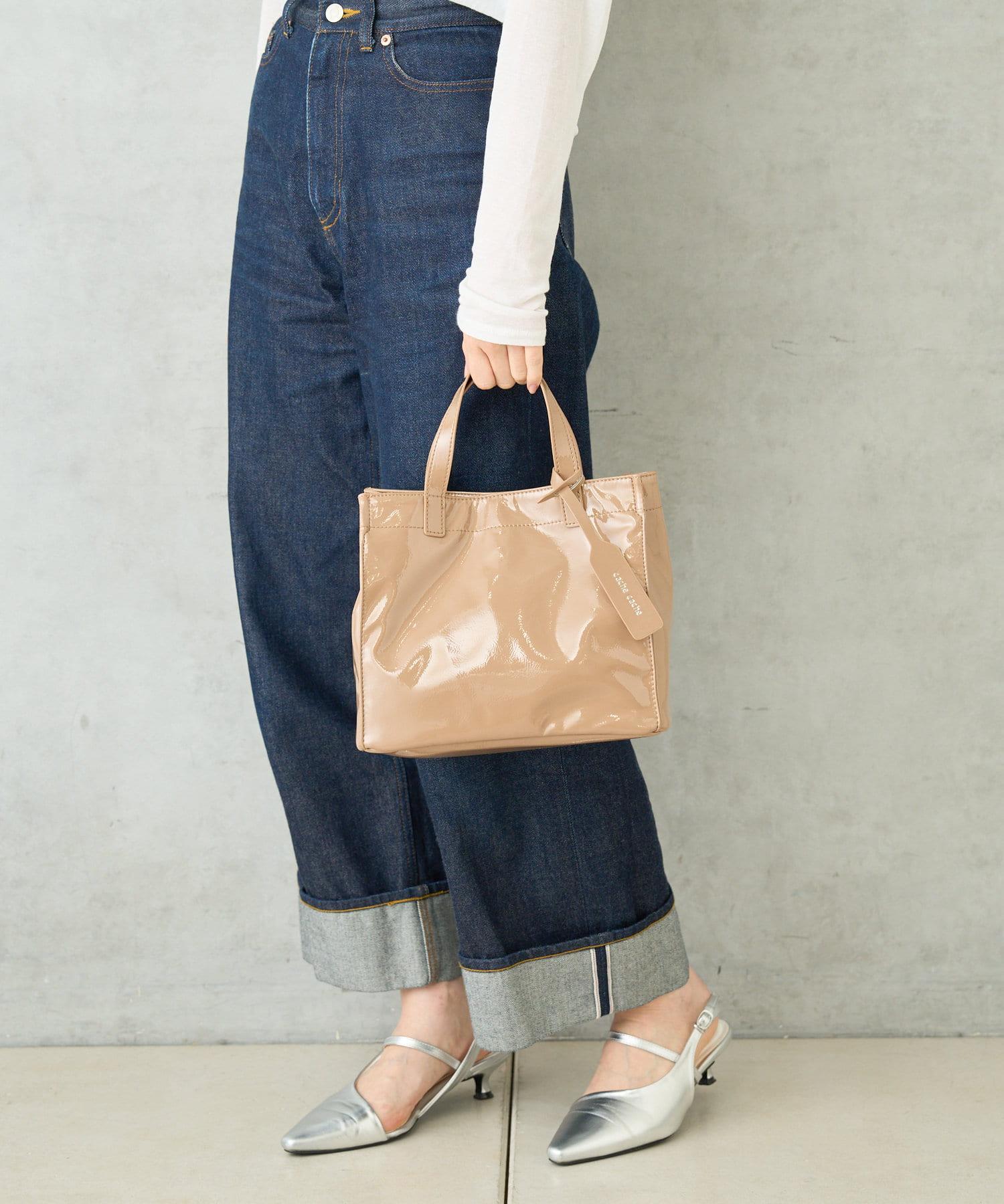 【cache cache 卡仕卡仕】仿漆皮風購物袋S尺寸