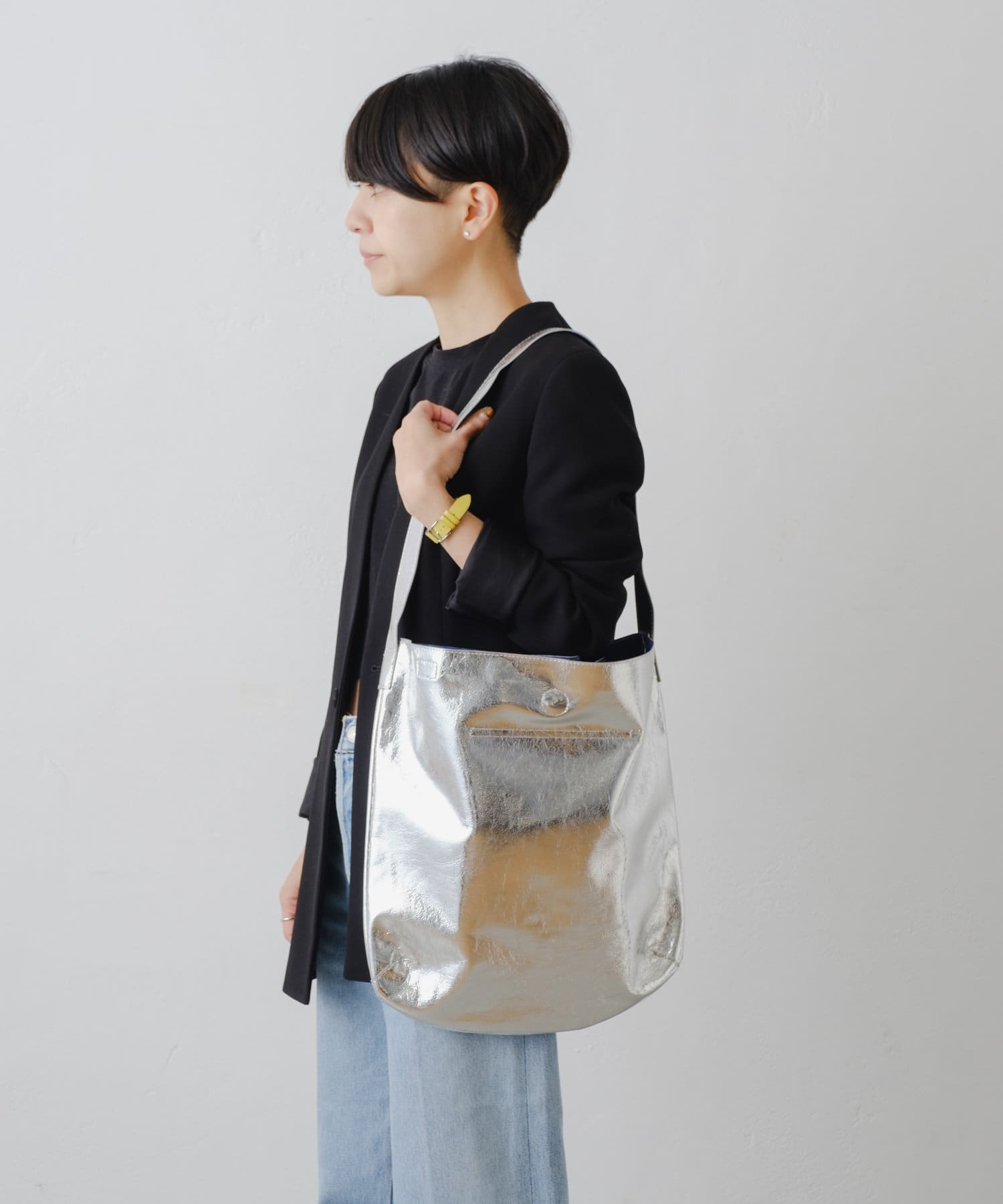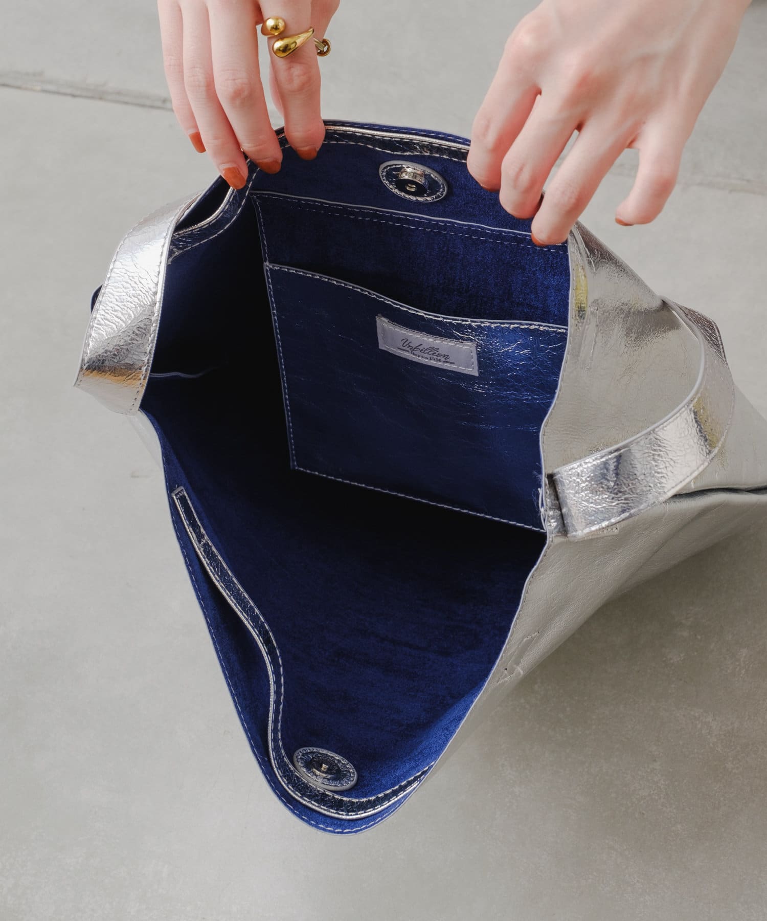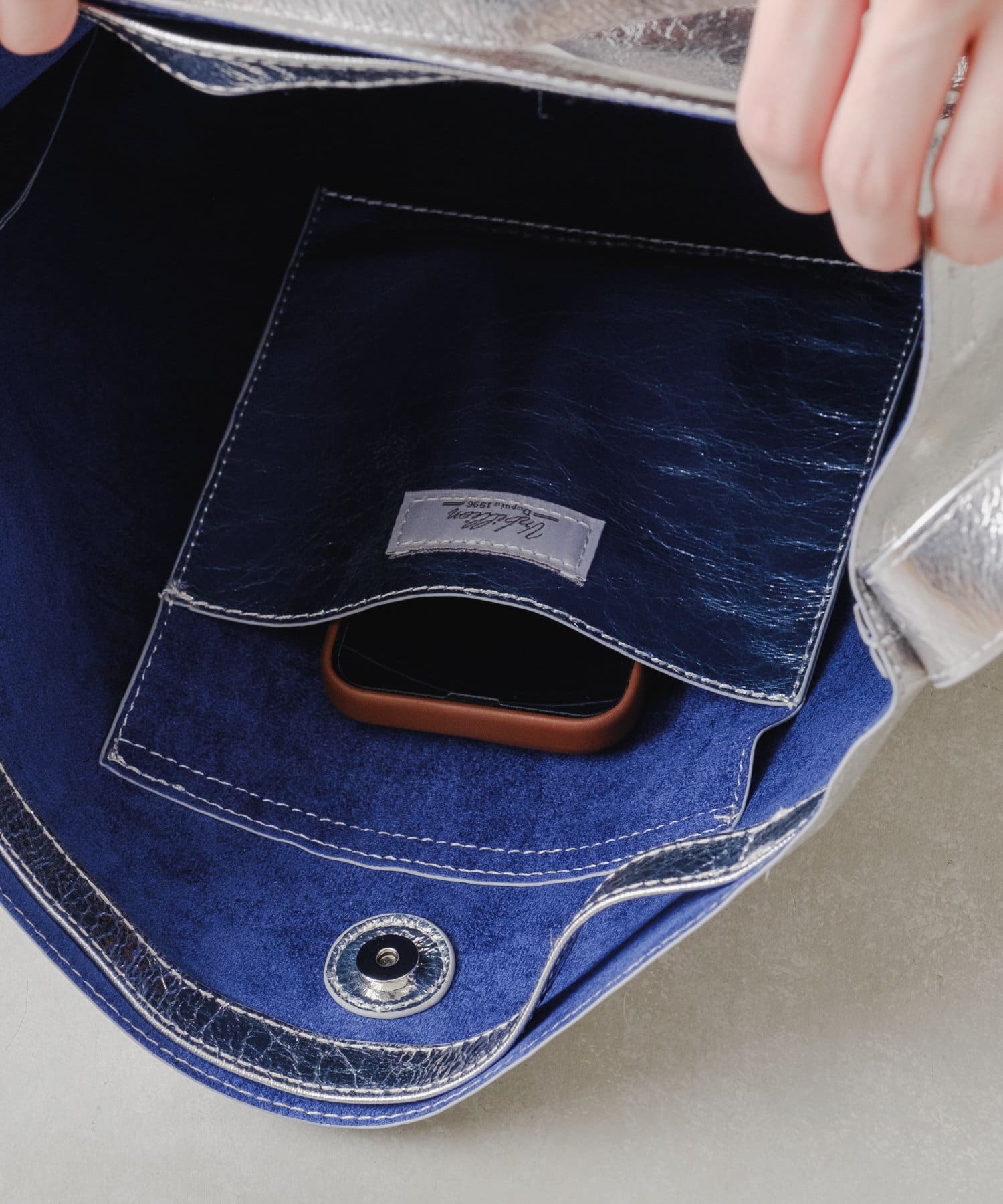 內側還有一個口袋,金屬表面的配色也是巧妙的時尚點。