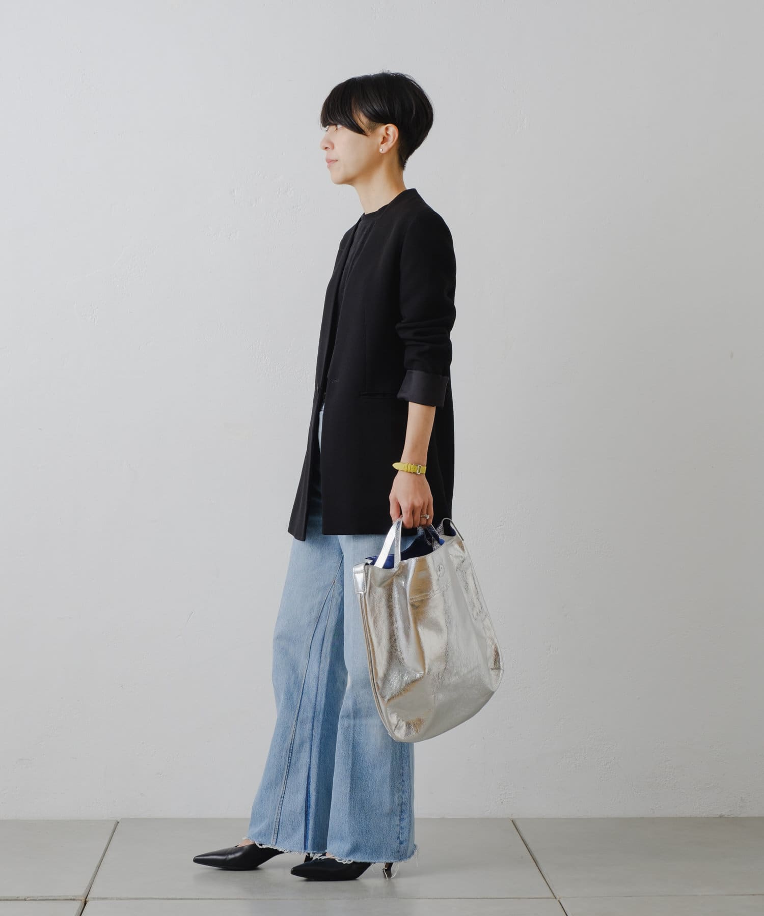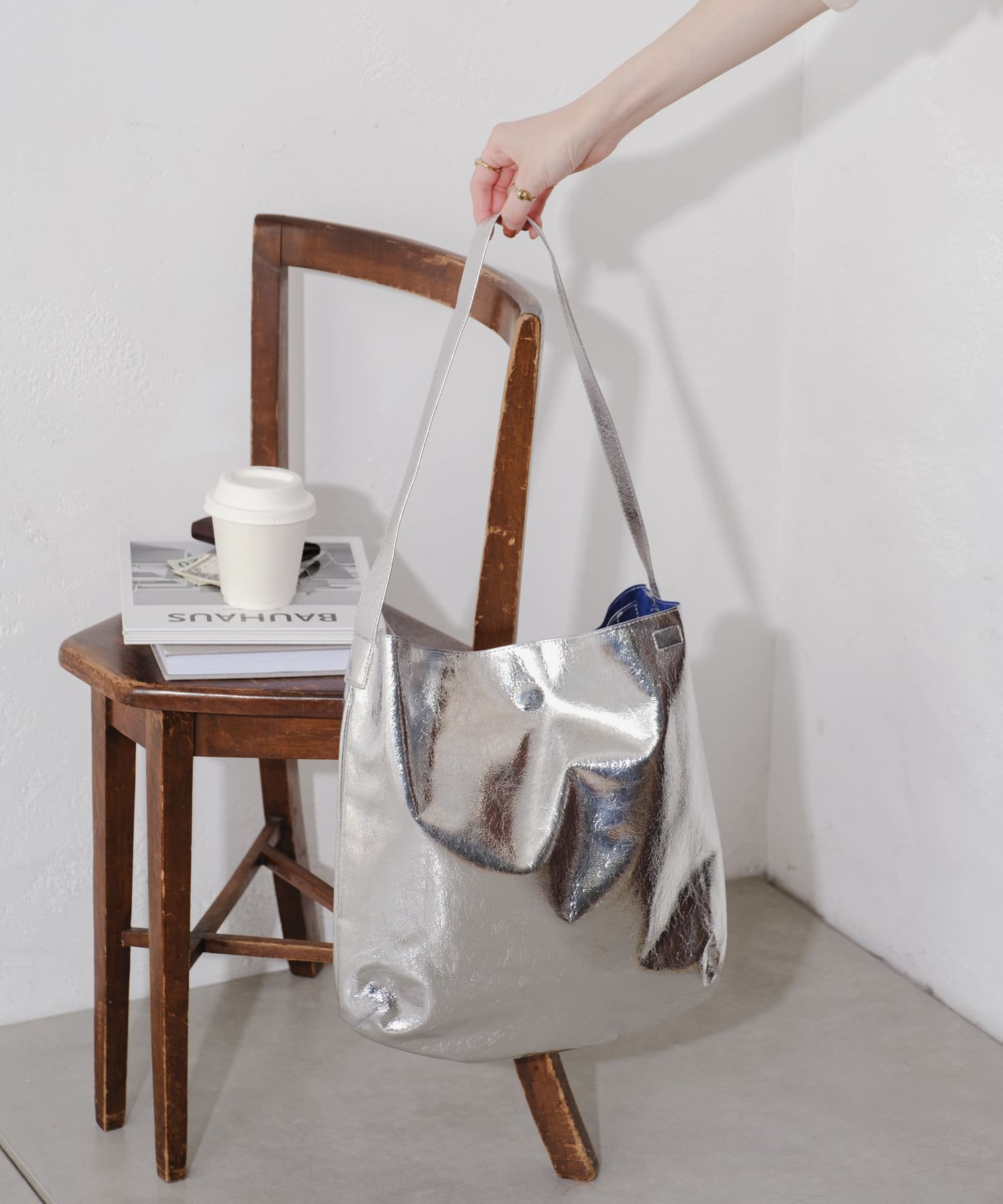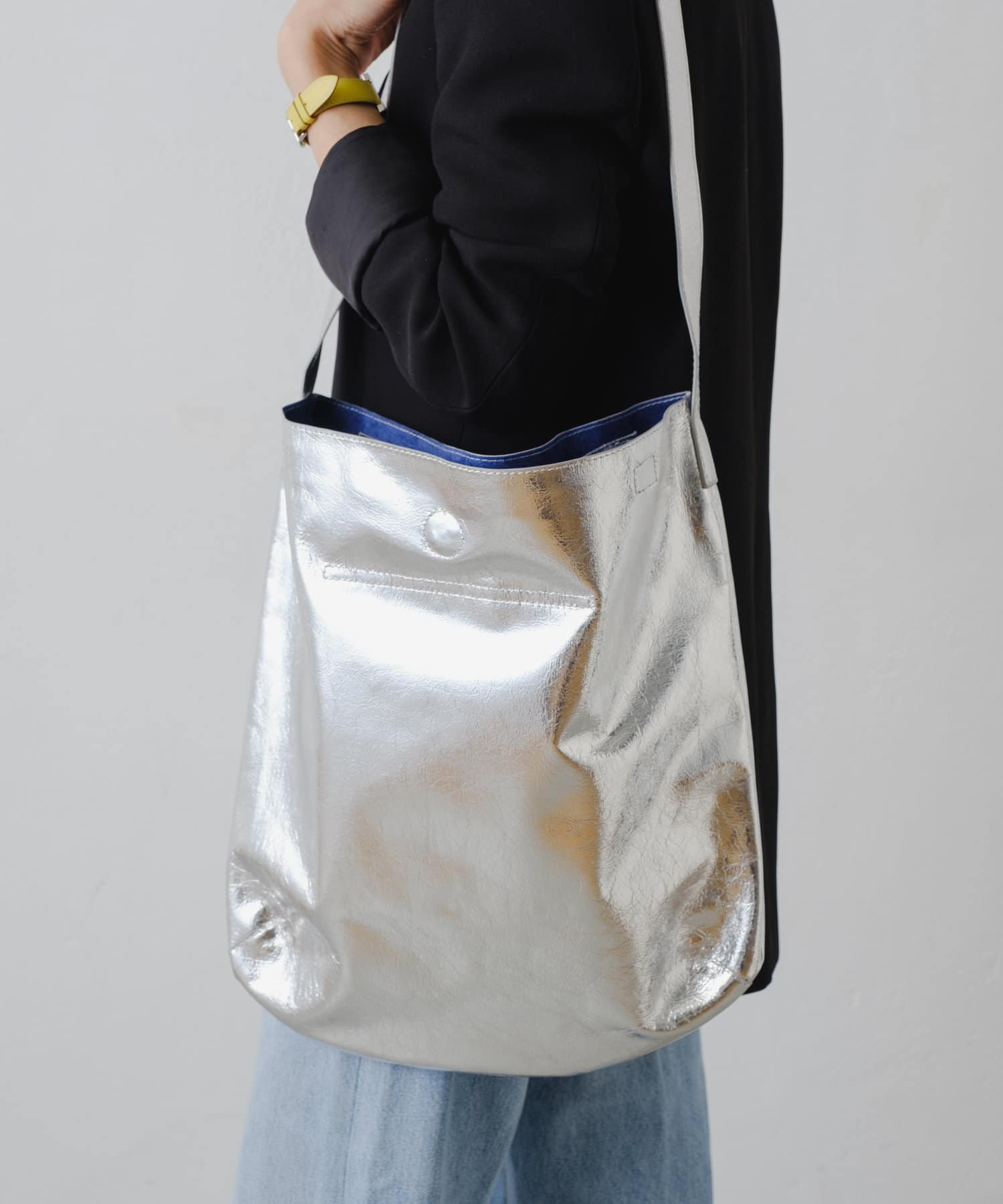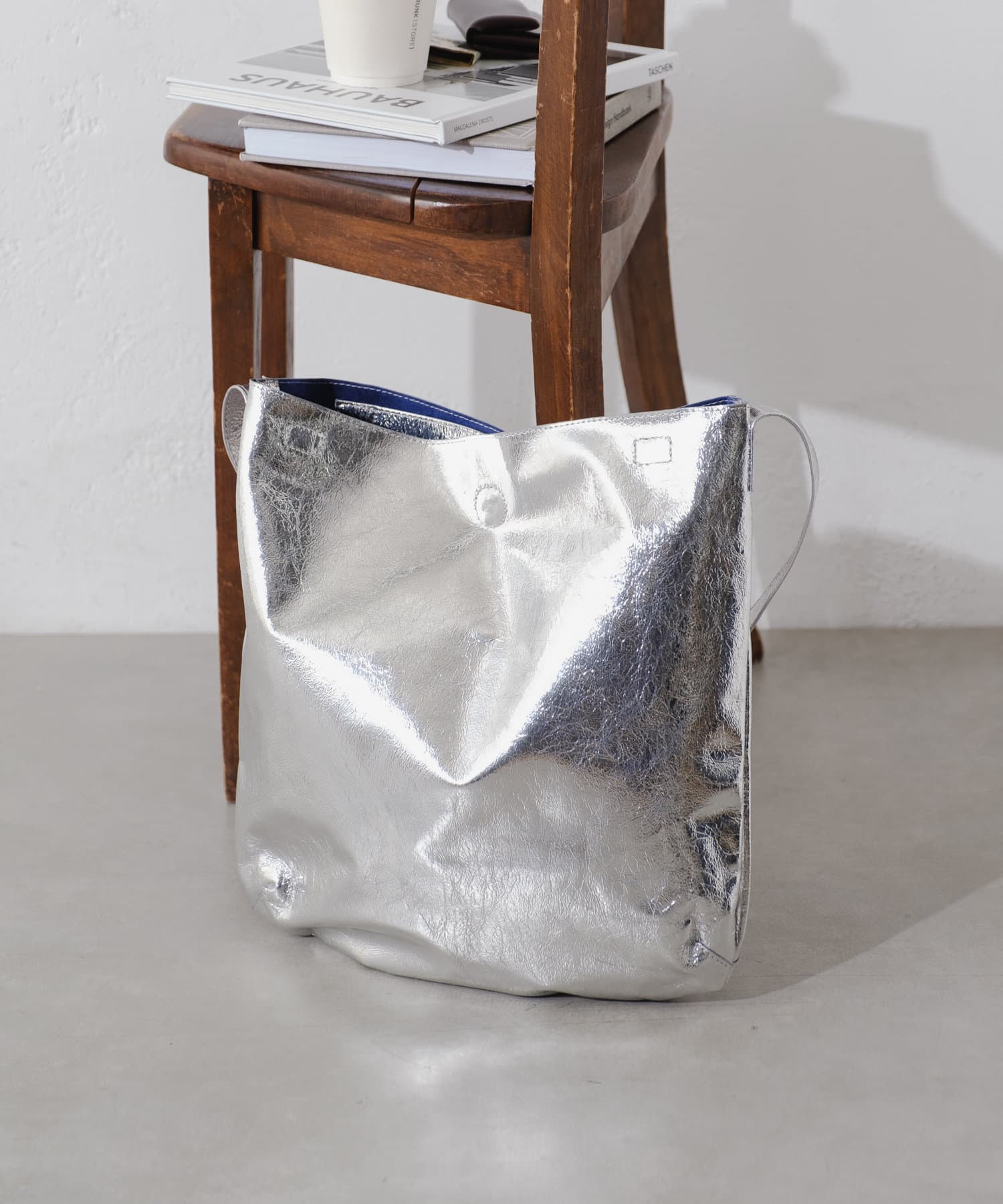 內側還有一個口袋,金屬表面的配色也是巧妙的時尚點。