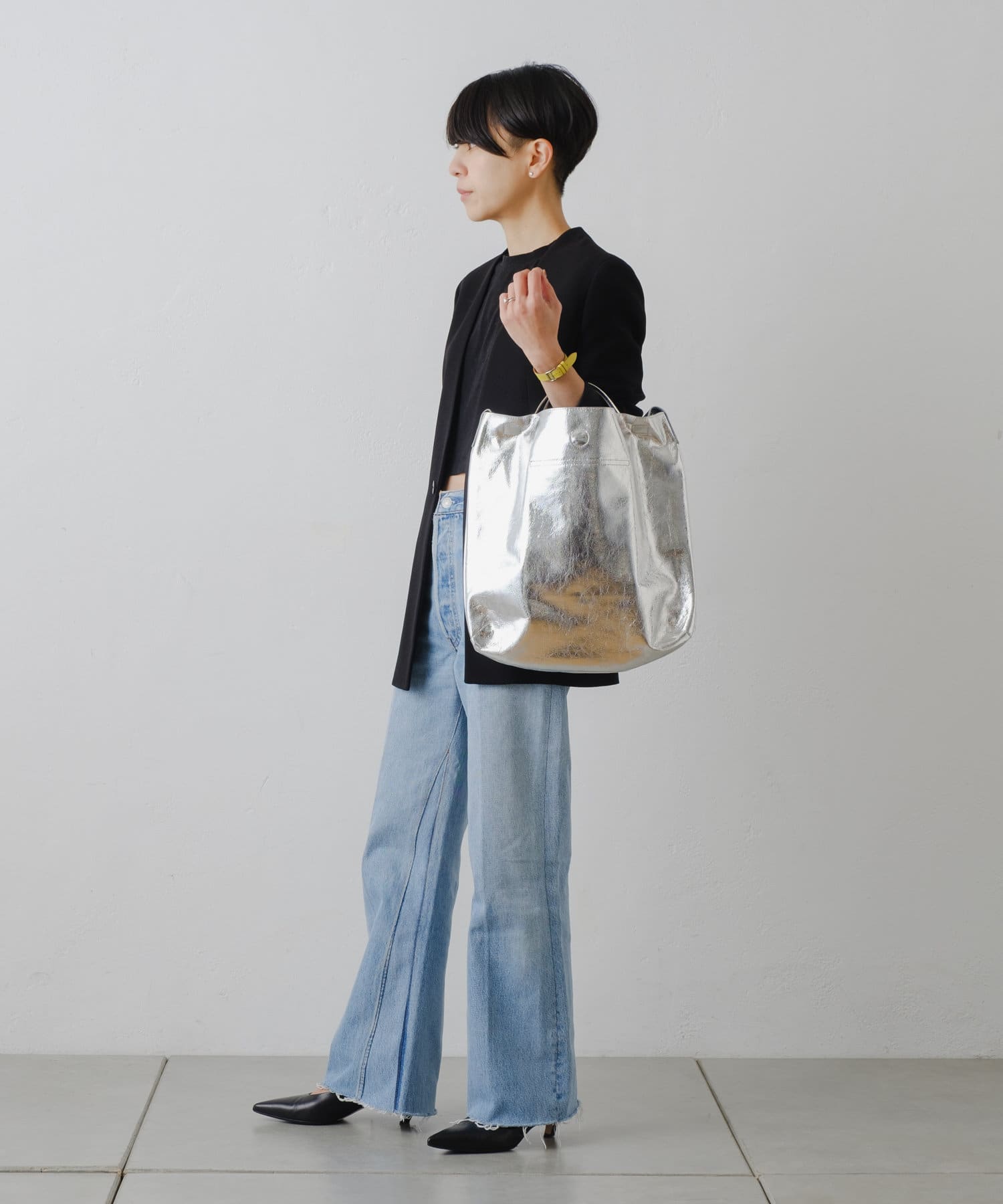 這款雙向手袋帶有恰到好處的金屬質感,增添了一絲優雅。