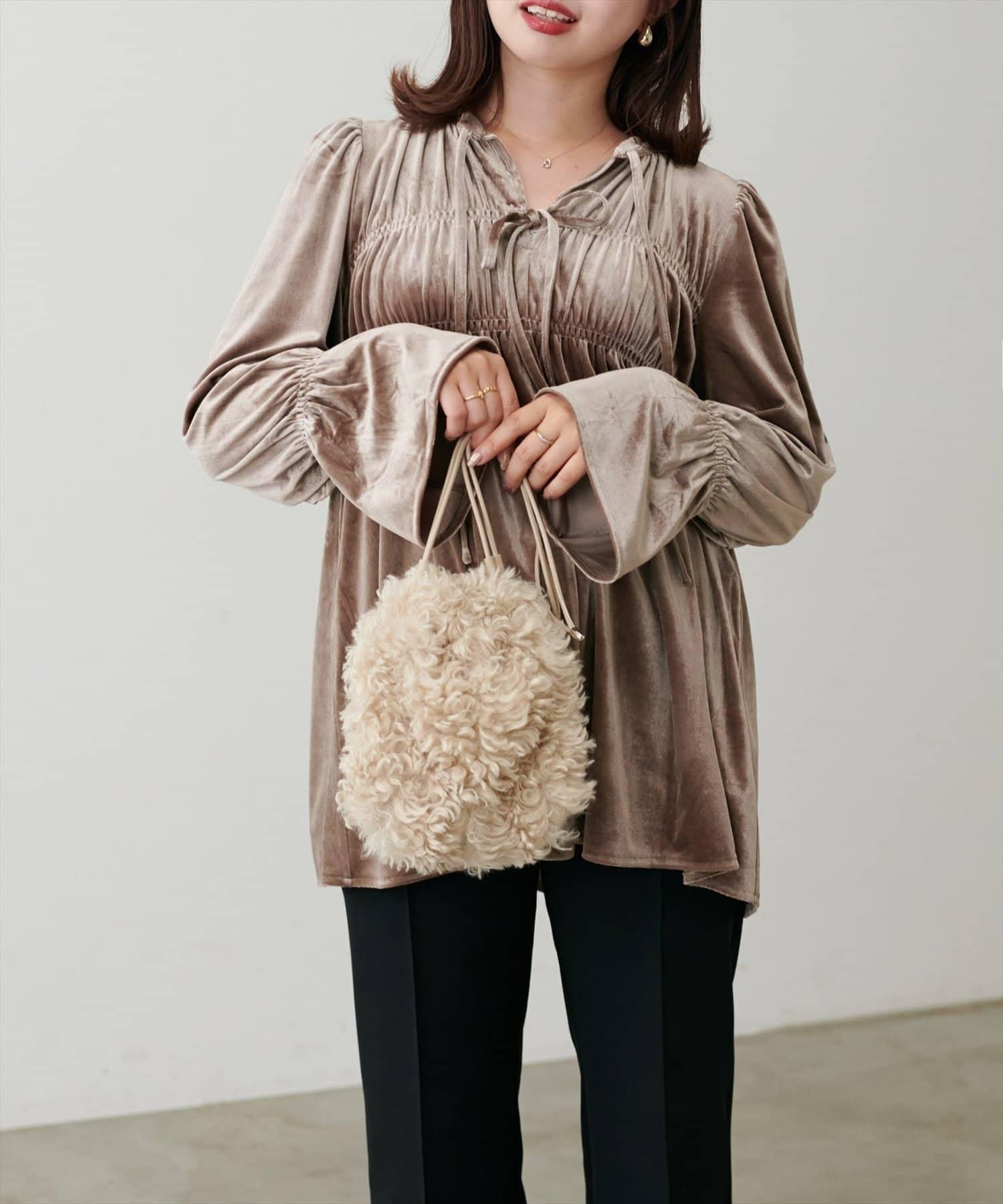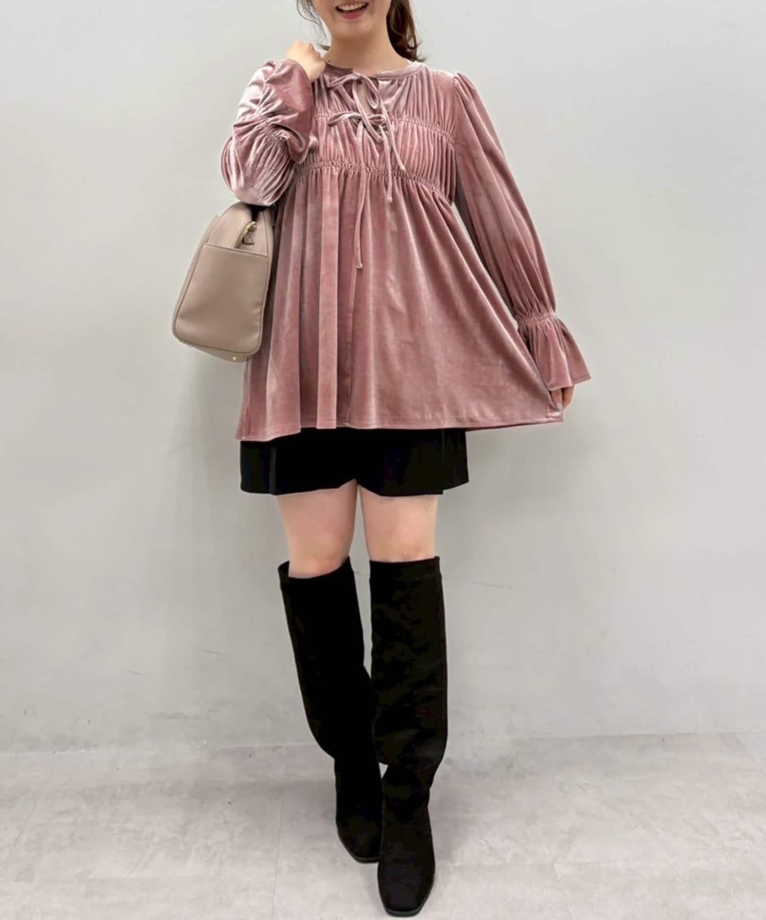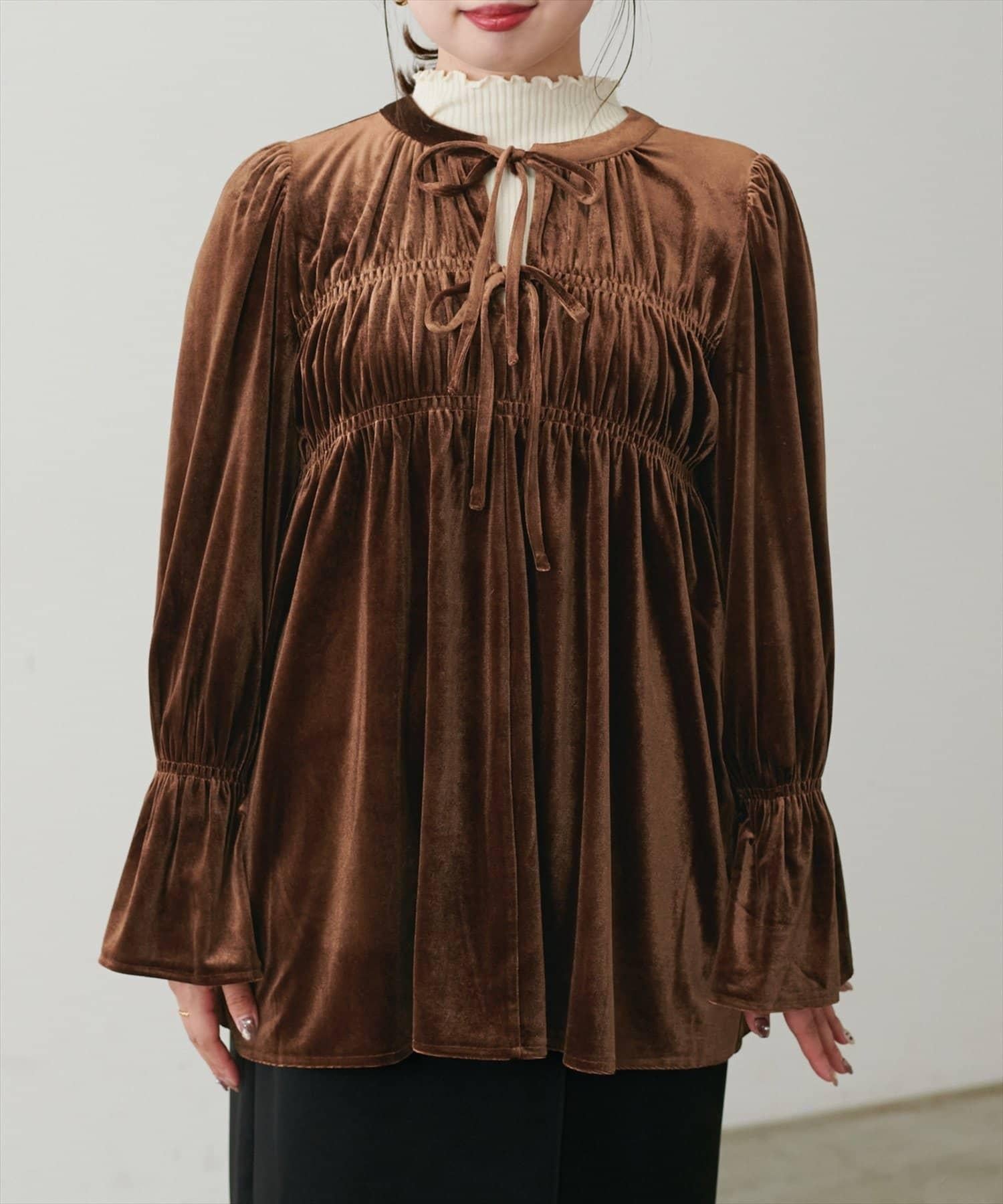 /【canami】2WAY蝴蝶結天鵝絨襯衫