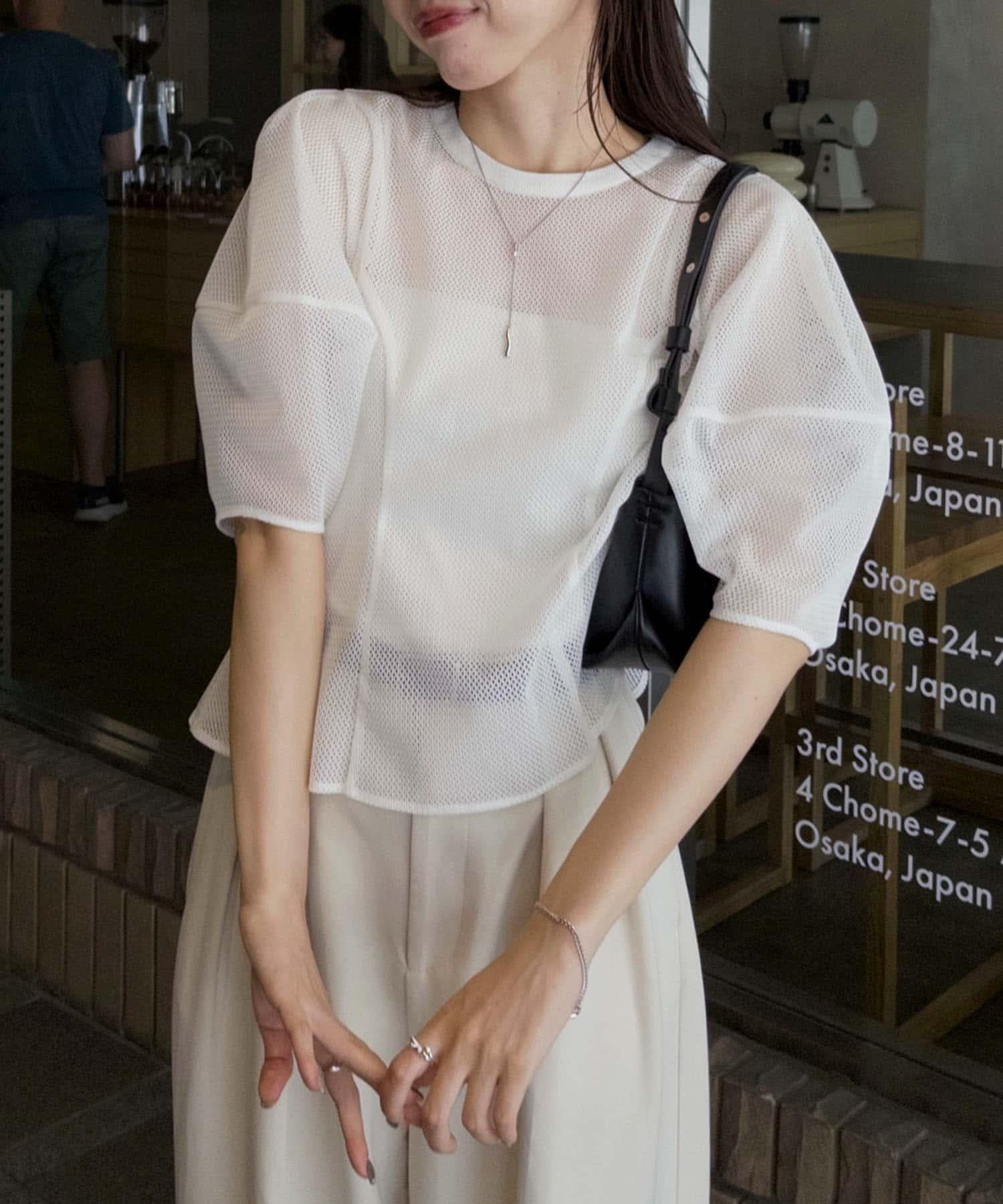 【CAPRICIEUX LE'MAGE】【yao企畫】網紗泡泡袖喇叭上衣