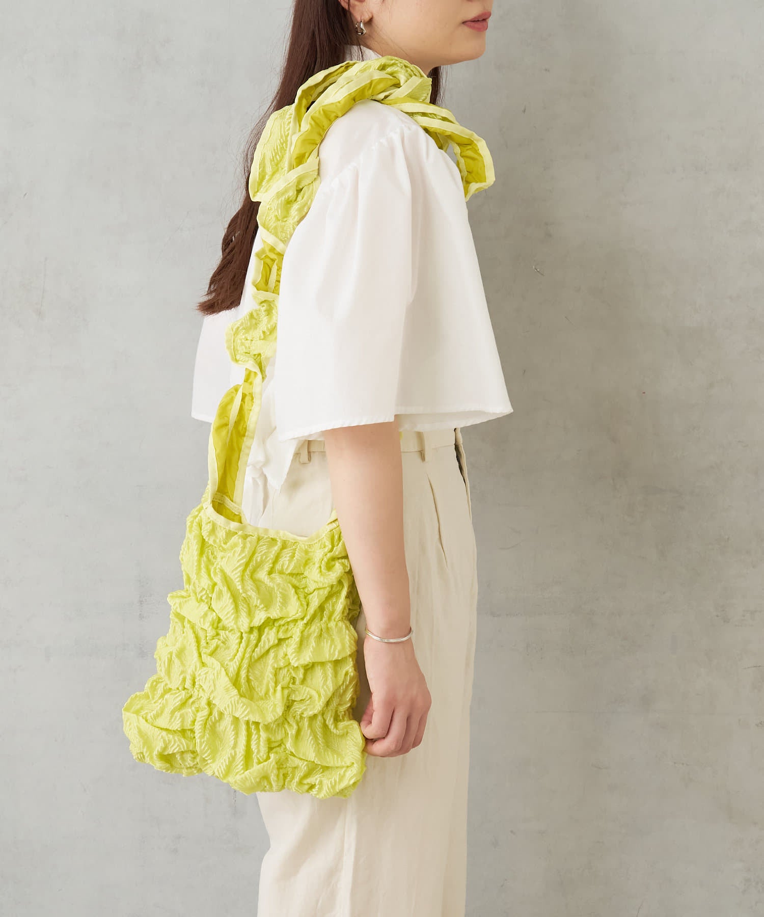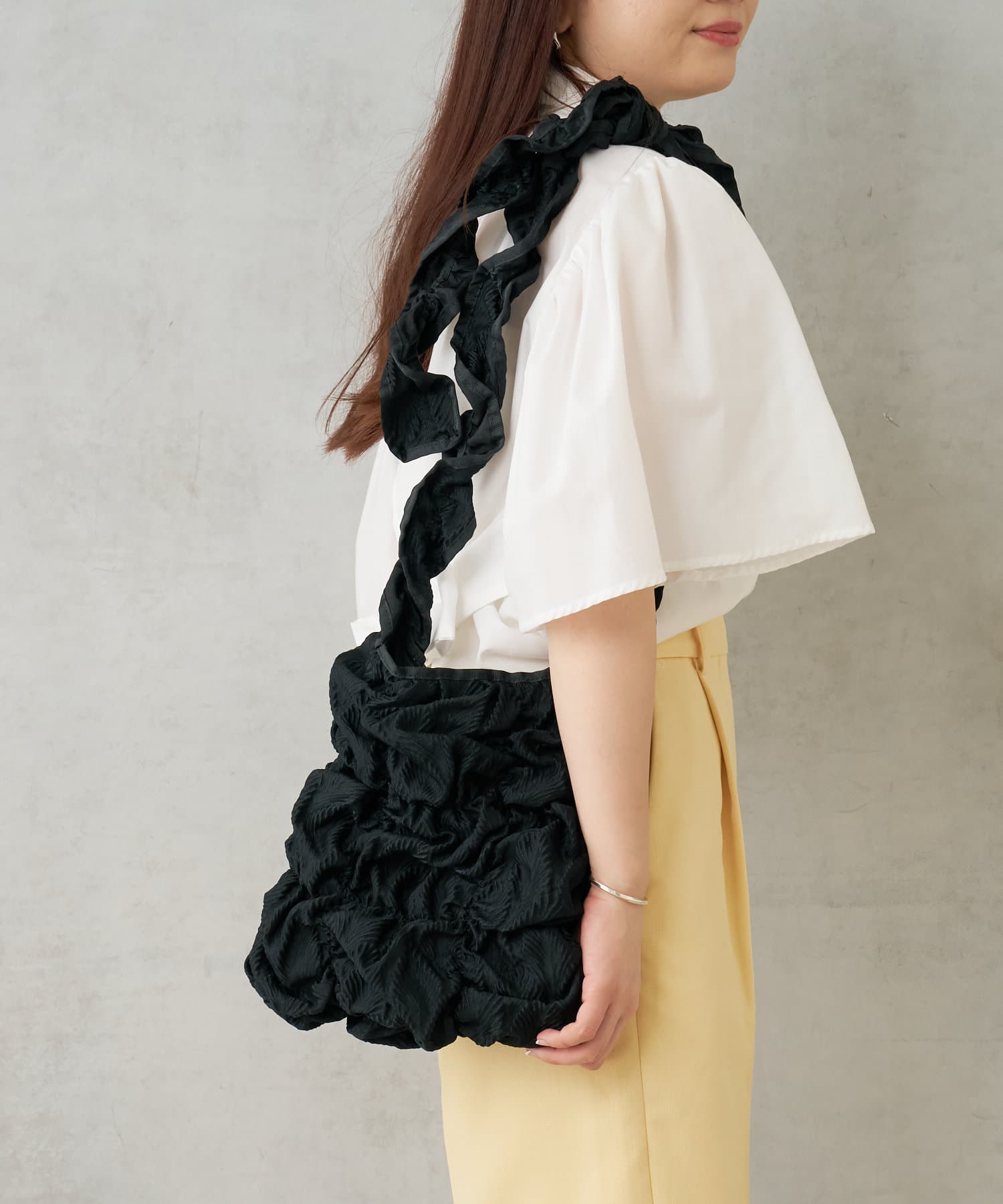這款手袋以立體聚攏材料為主要特徵,具有獨特的存在感。只需隨手一拎,就能讓你瞬間變身時尚達人。