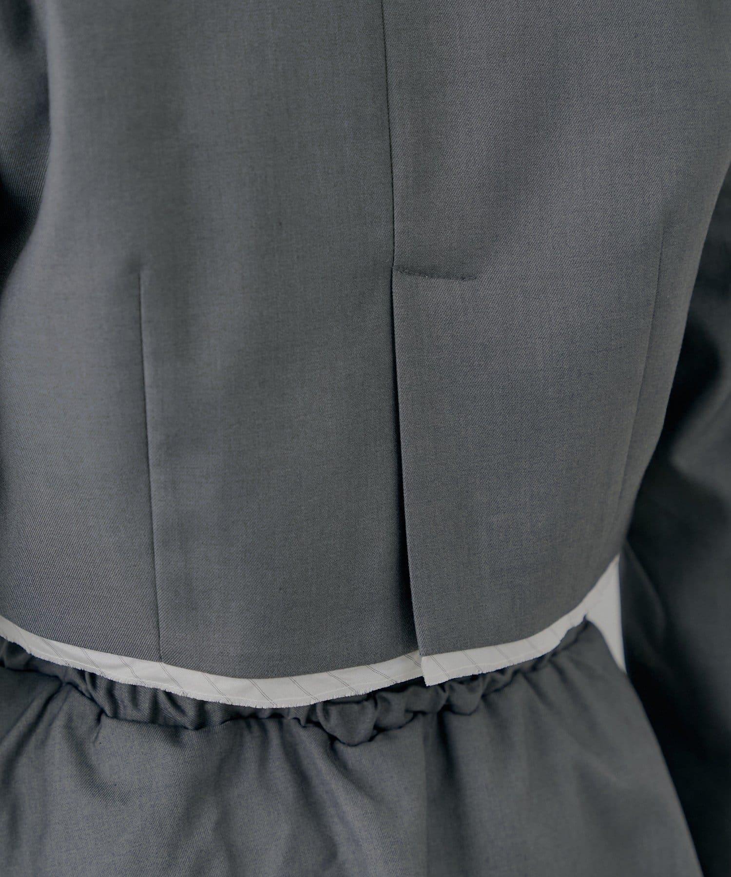 下襬的層次設計為簡單的夾克增添了層次感和休閒感。