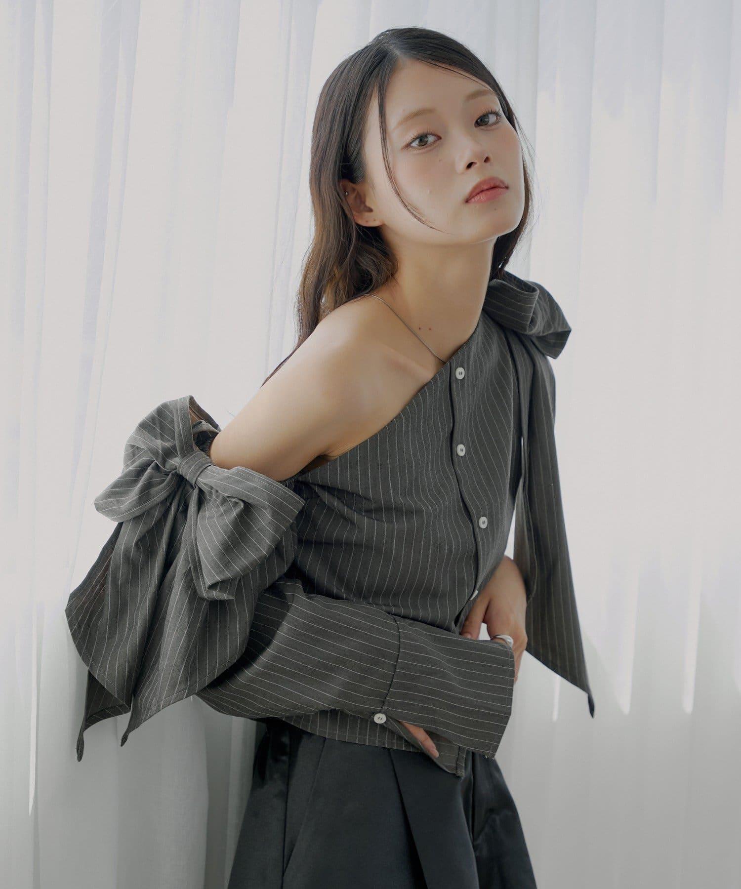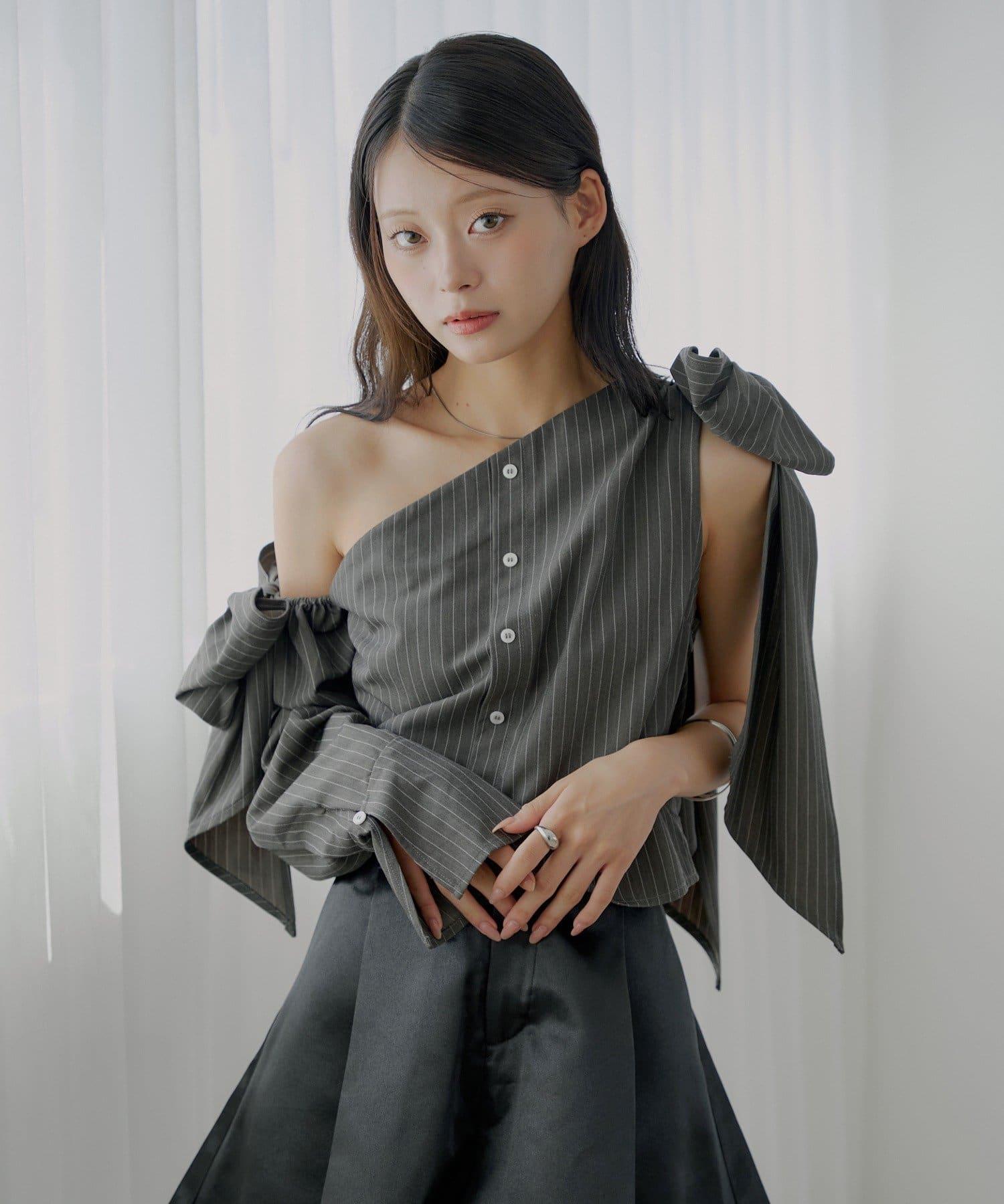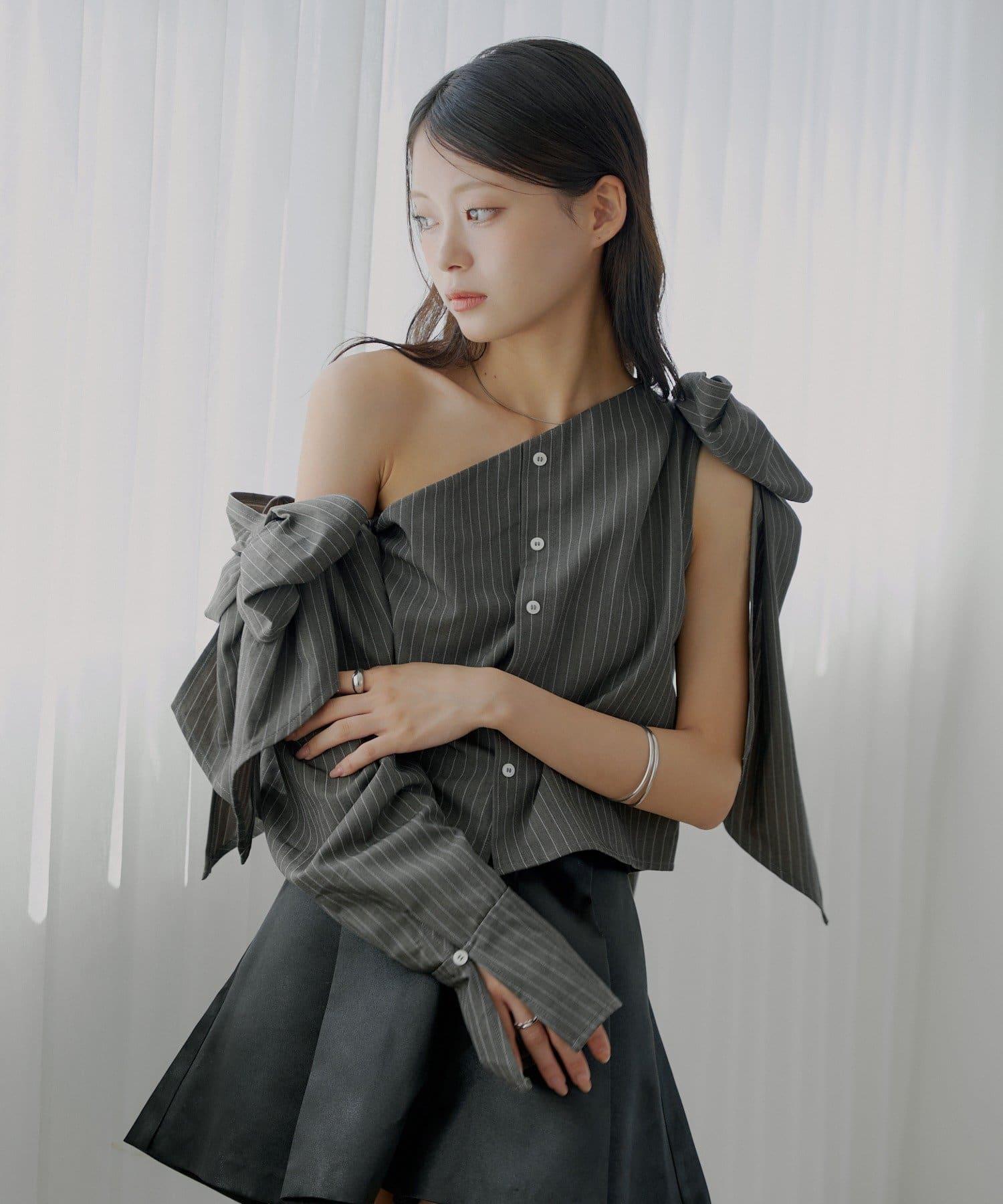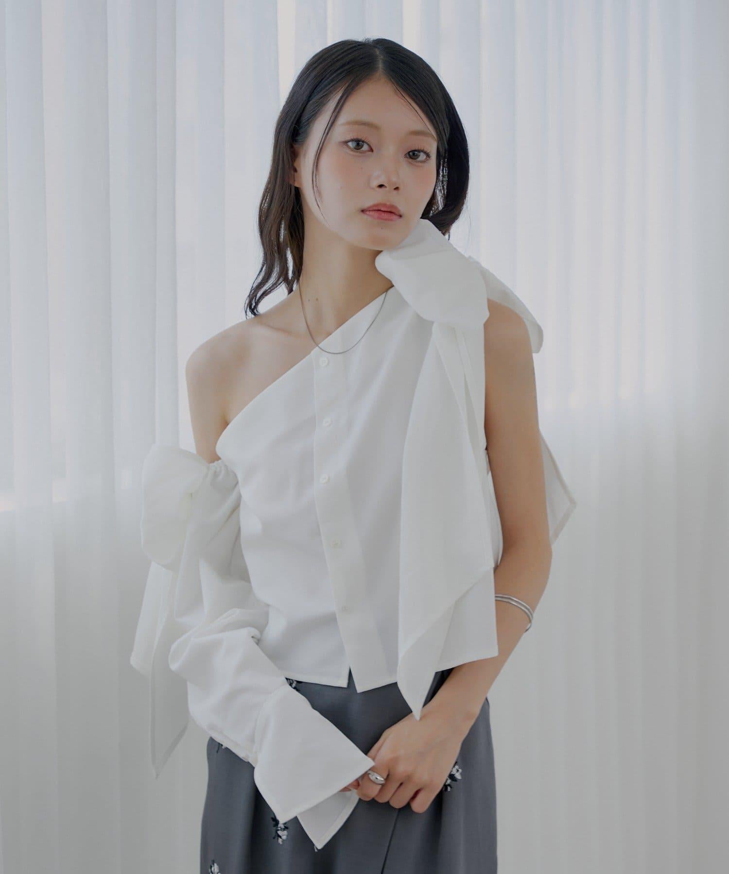 大絲帶襯衫,採用搶眼的不對稱設計!