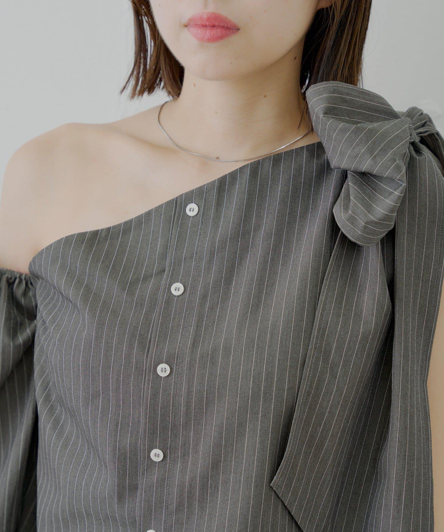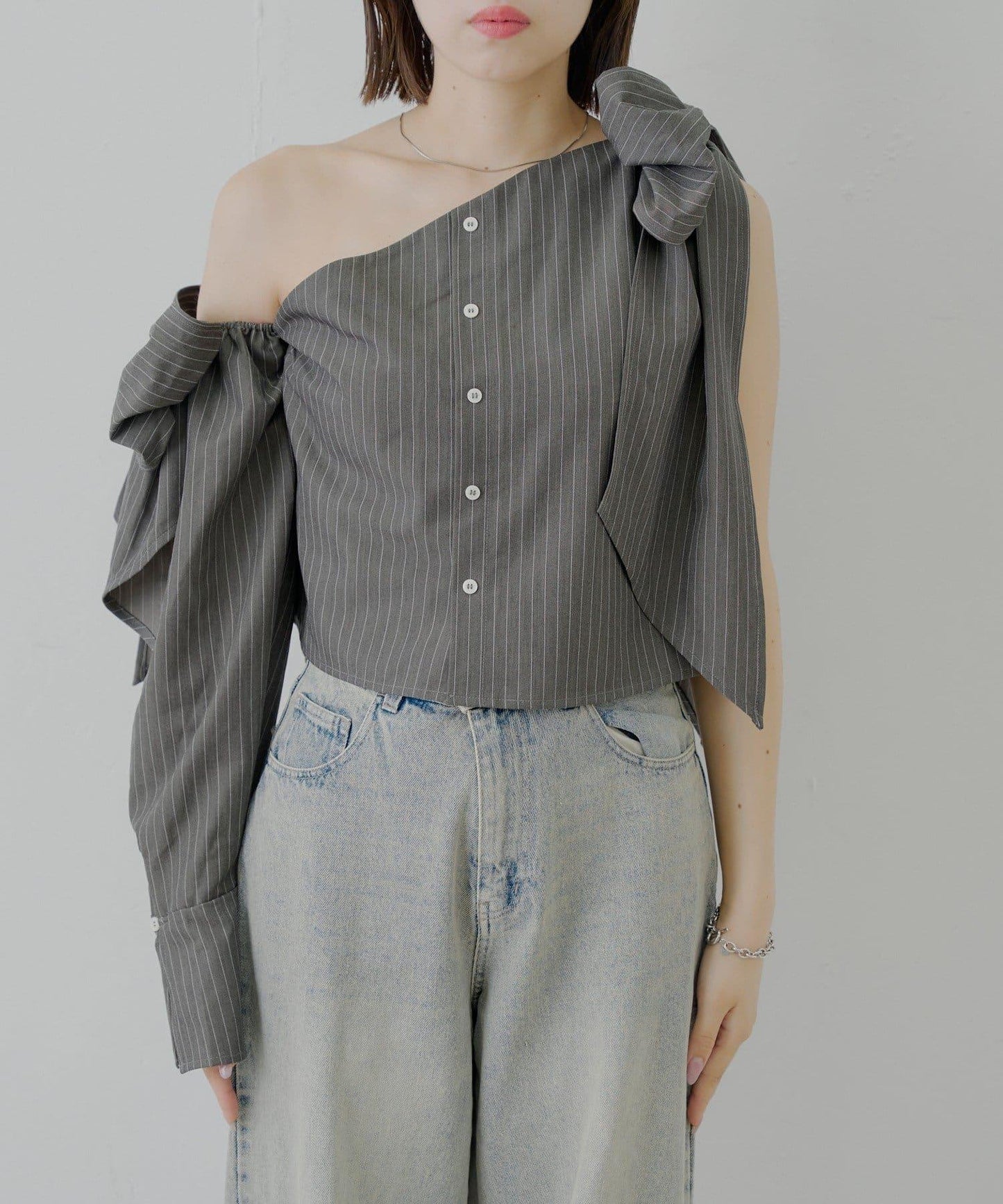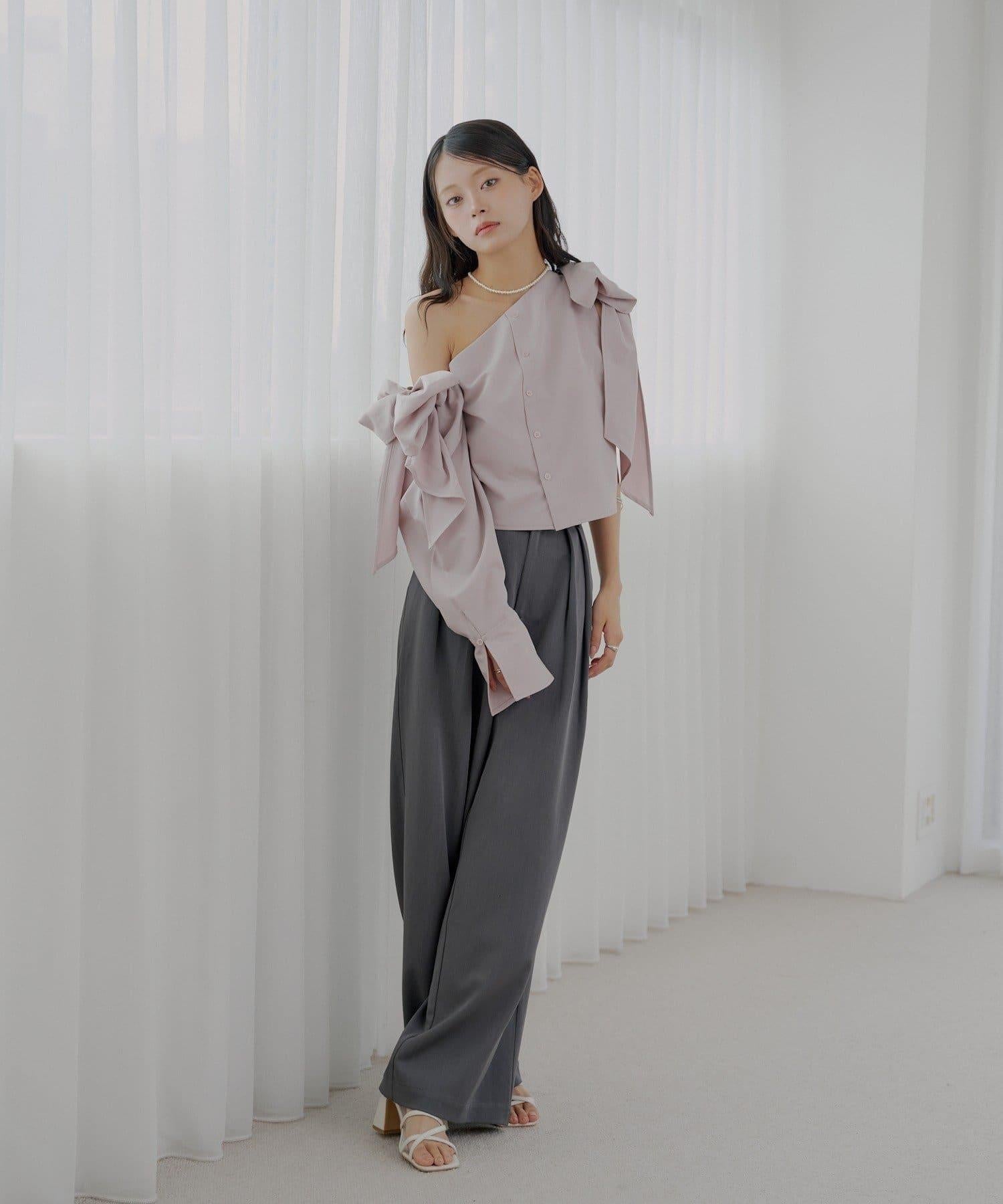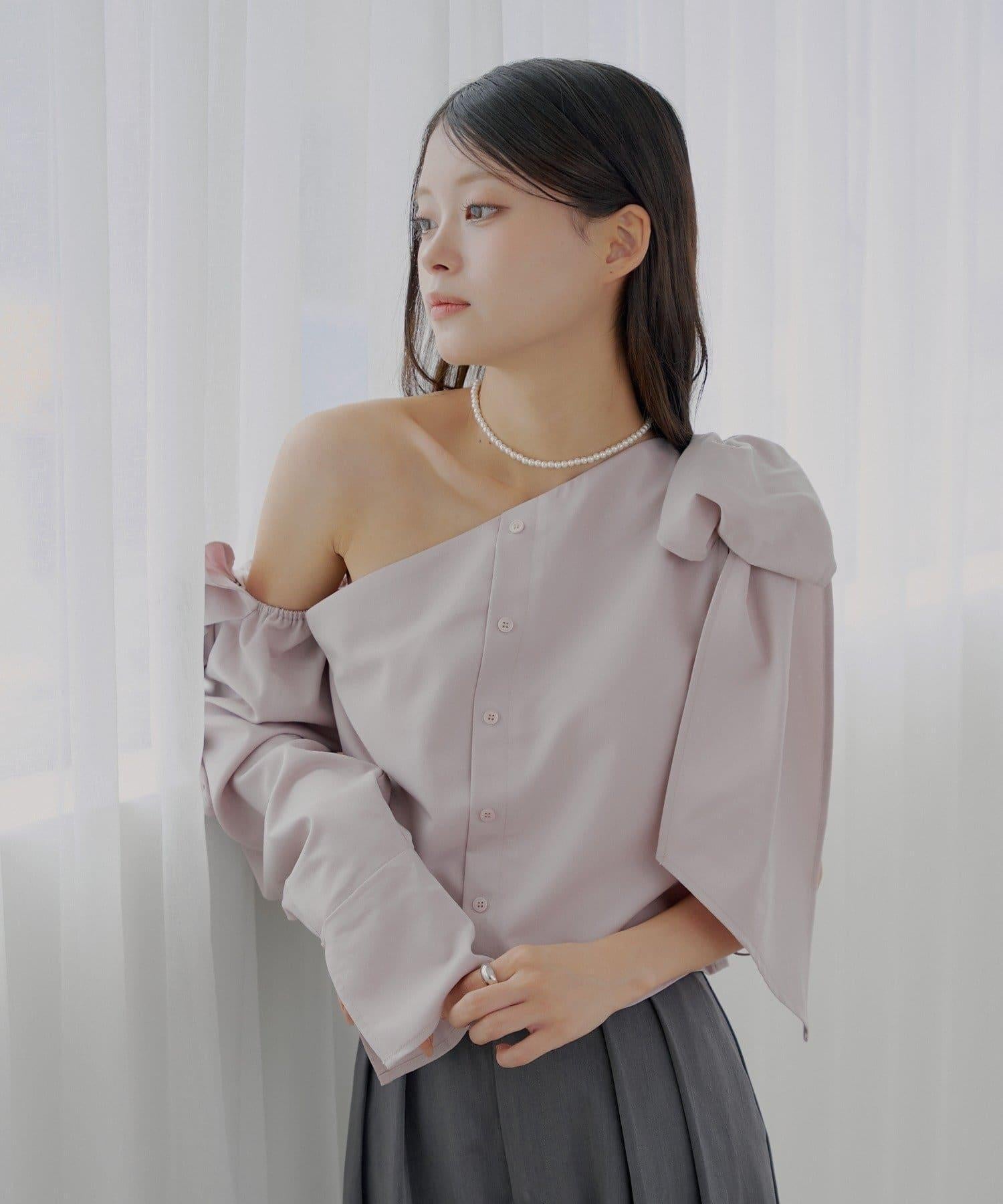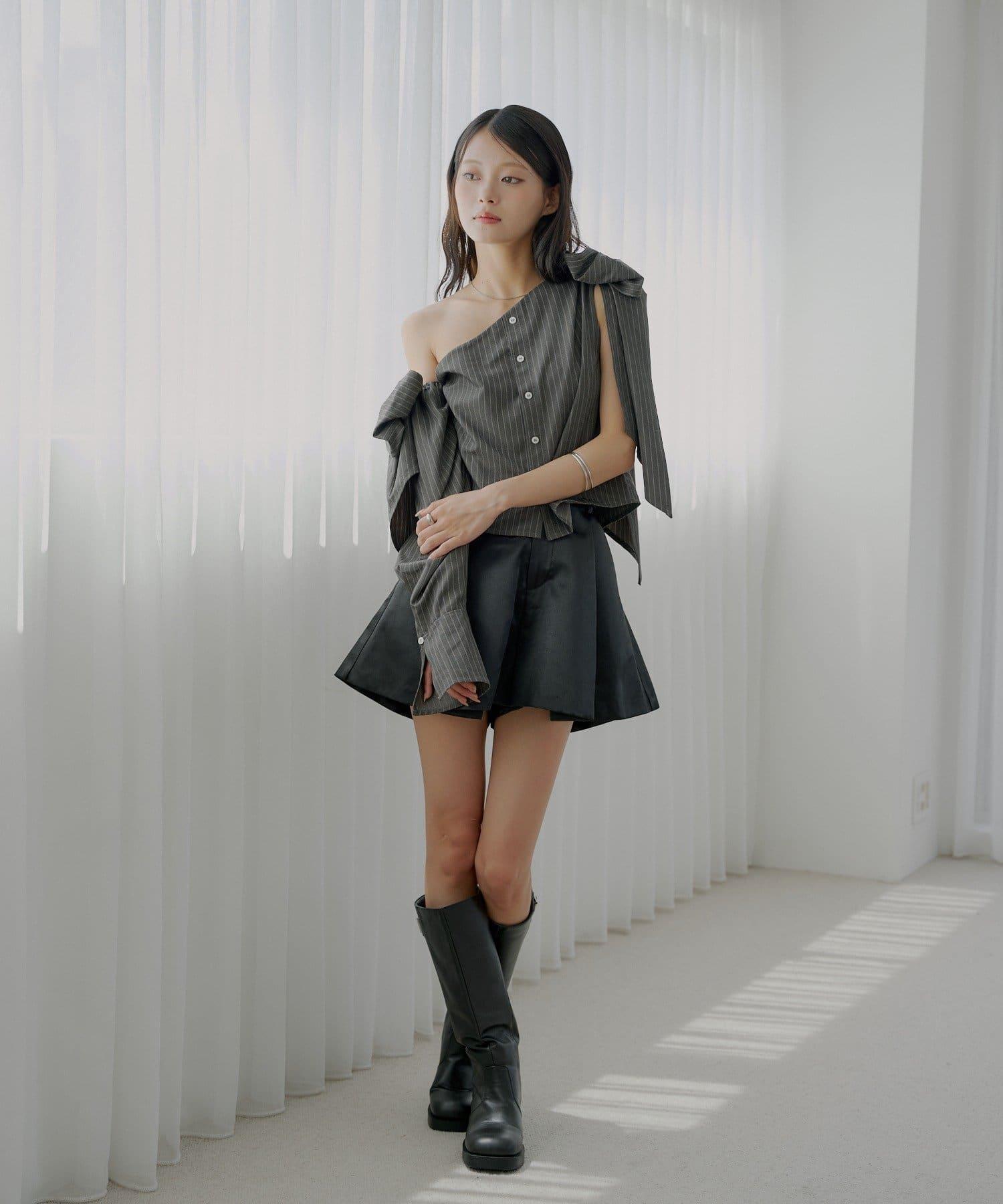 大絲帶襯衫,採用搶眼的不對稱設計!