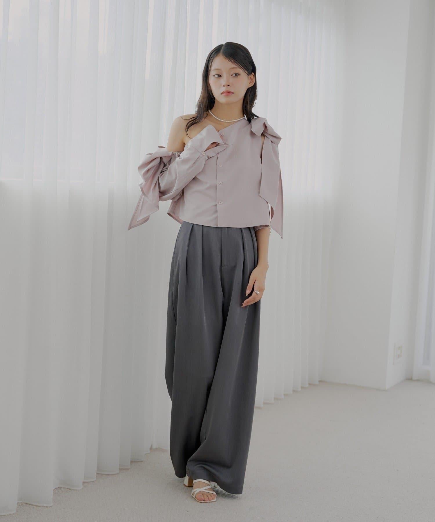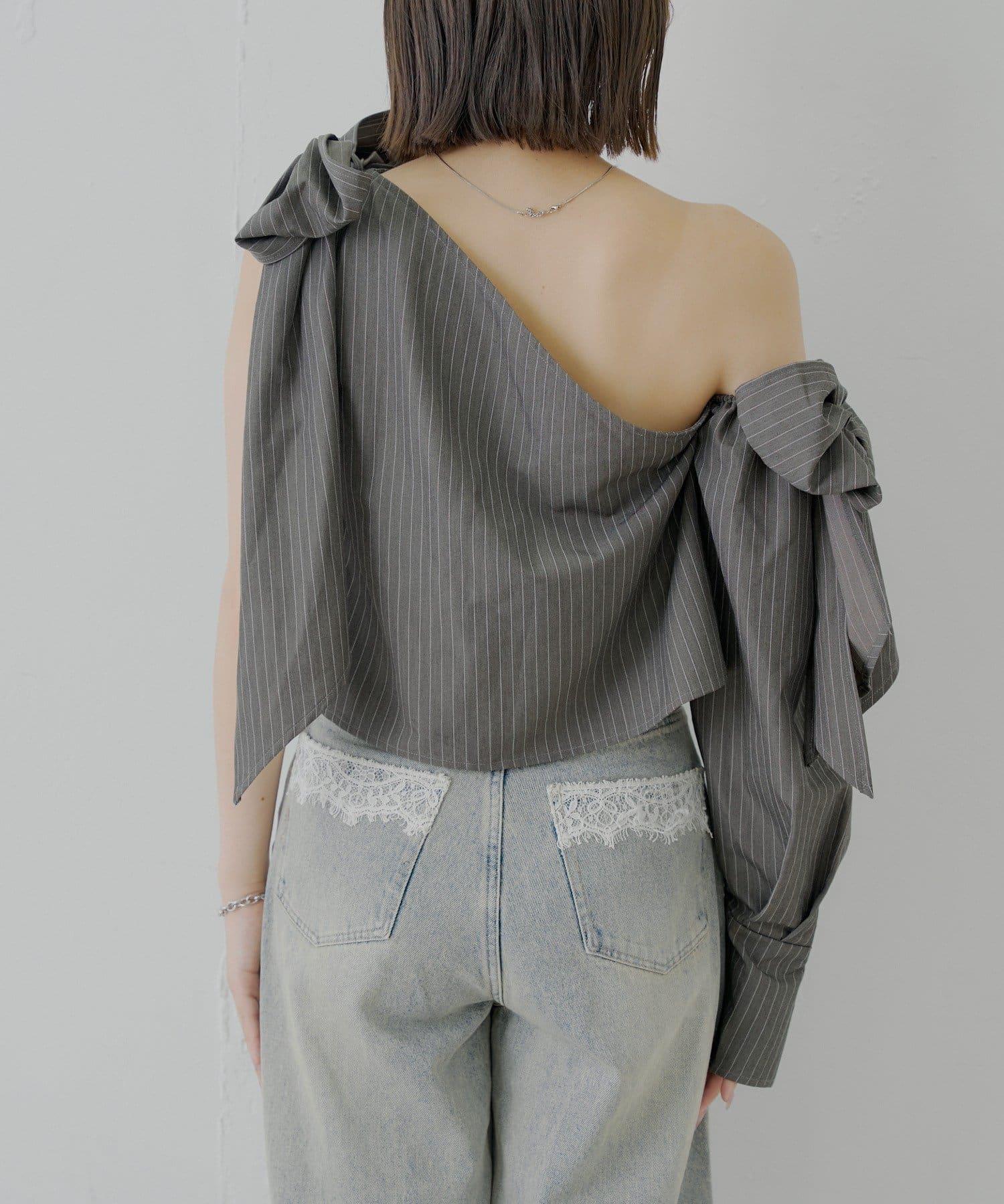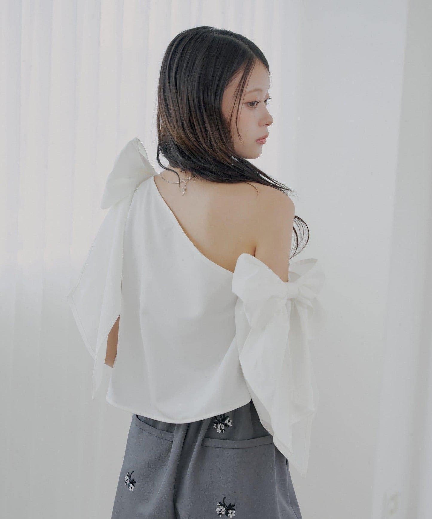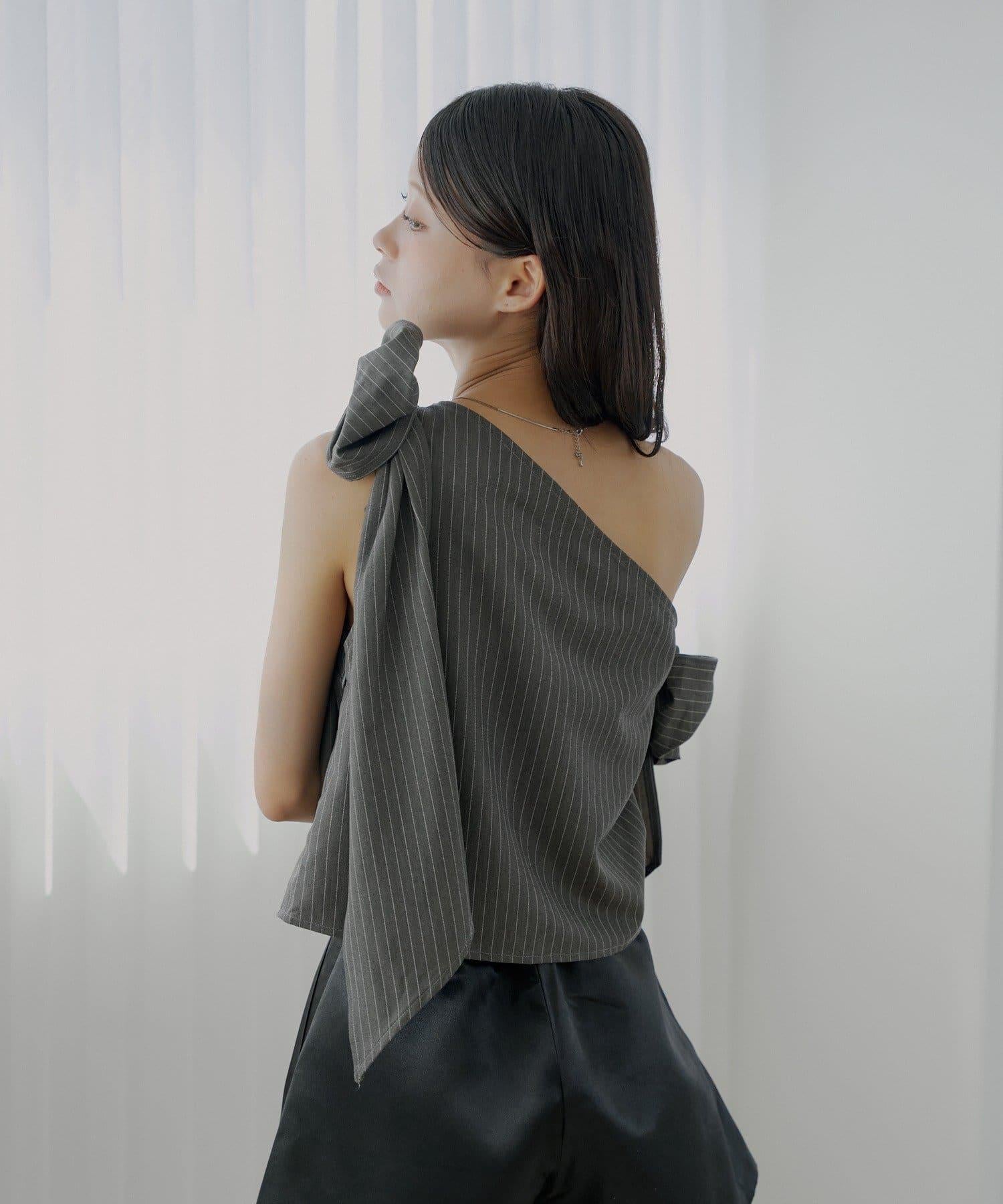 大絲帶襯衫,採用搶眼的不對稱設計!