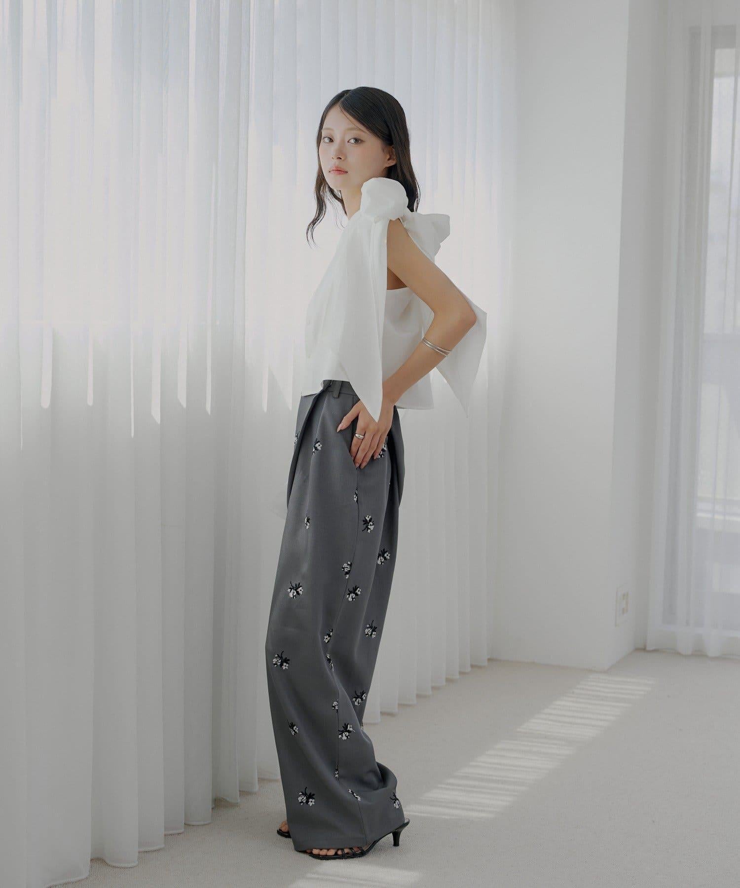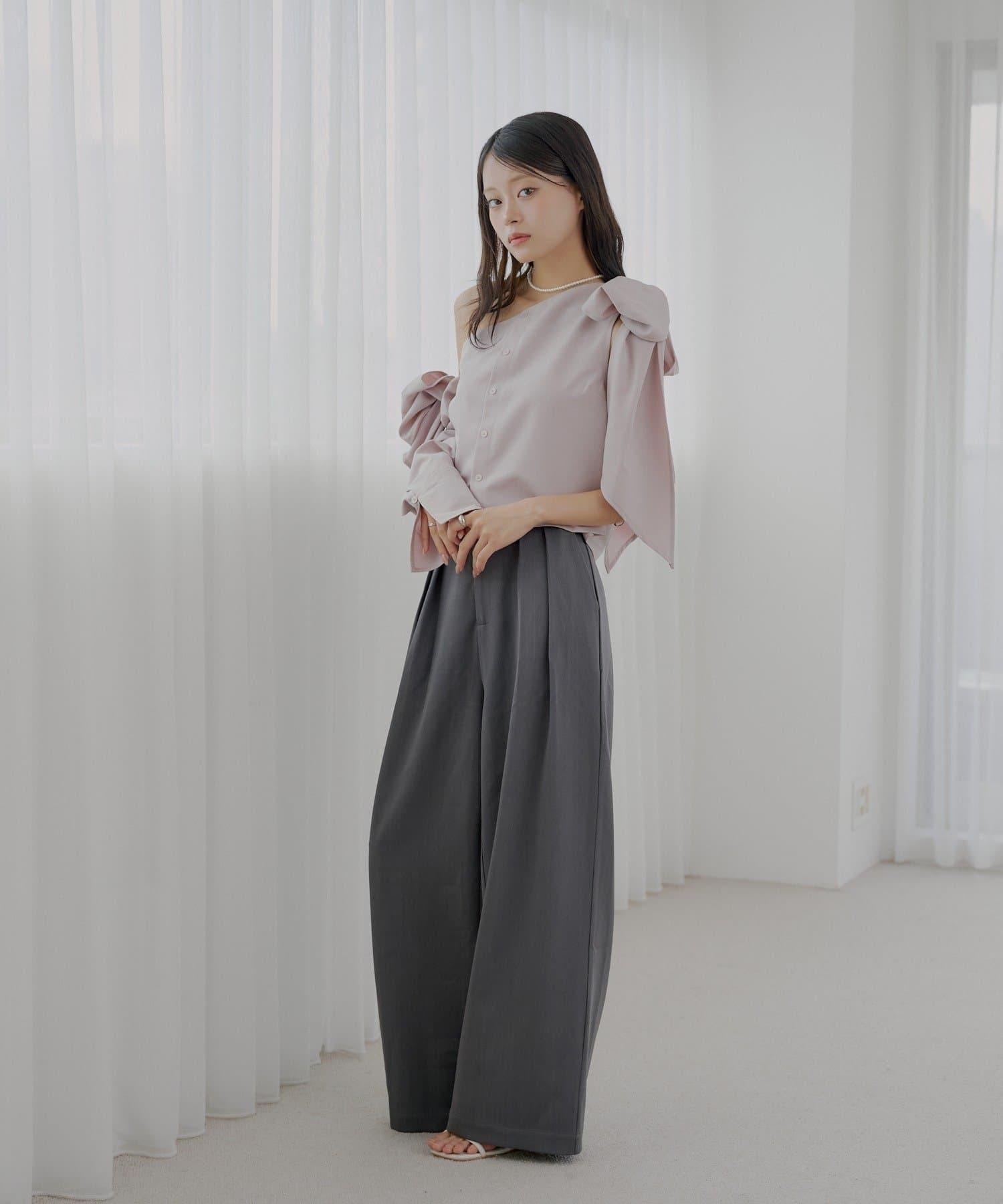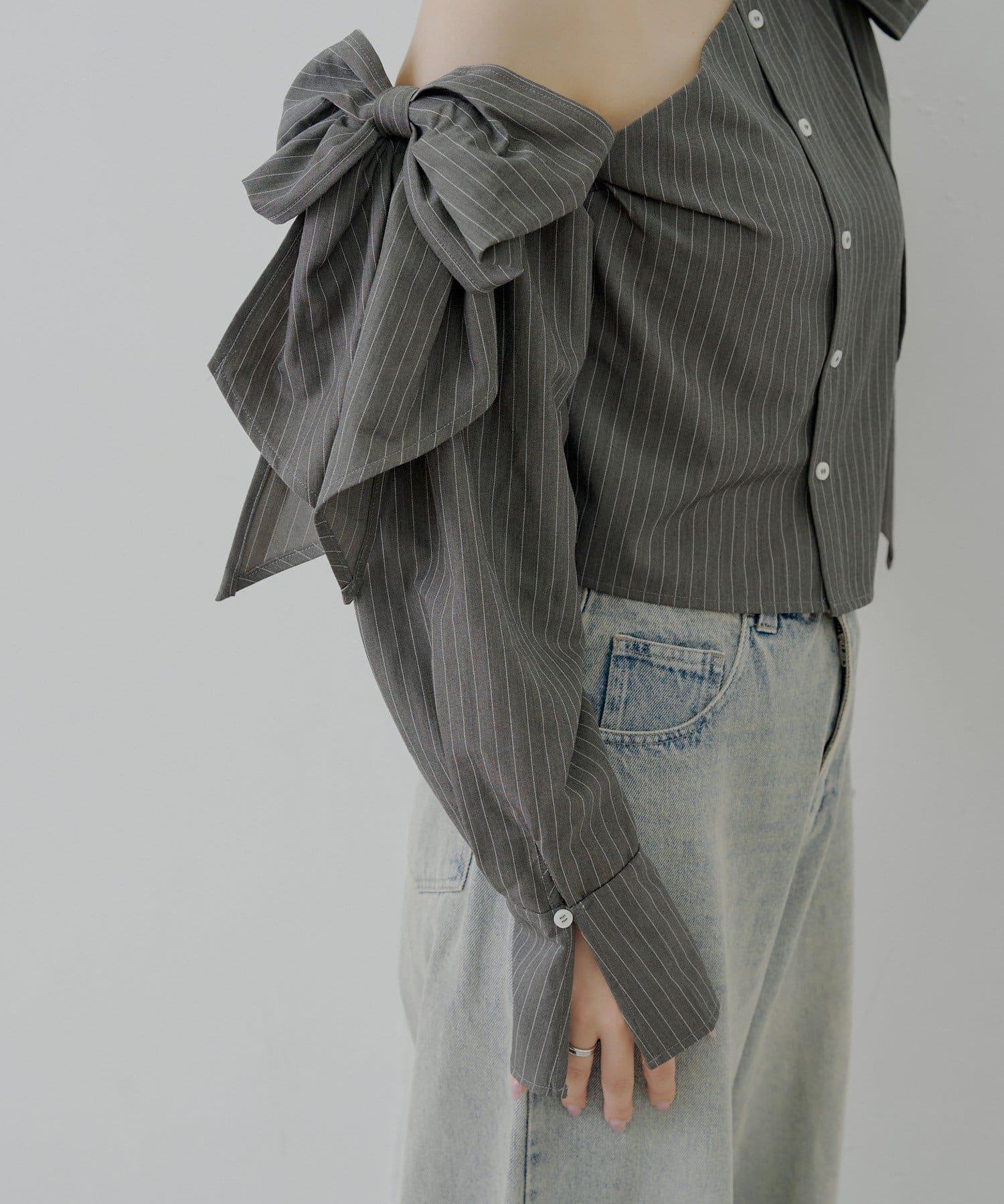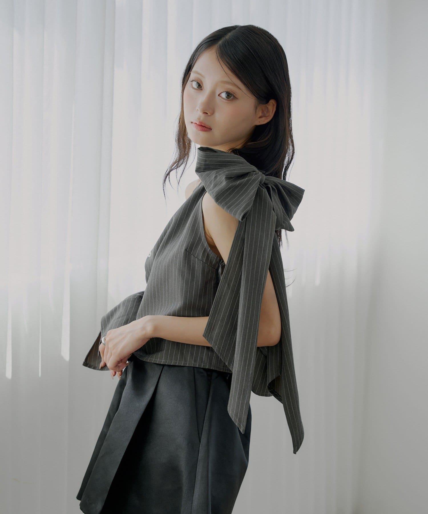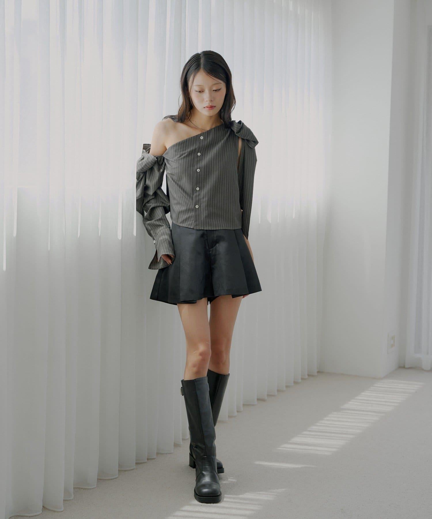 大絲帶襯衫,採用搶眼的不對稱設計!