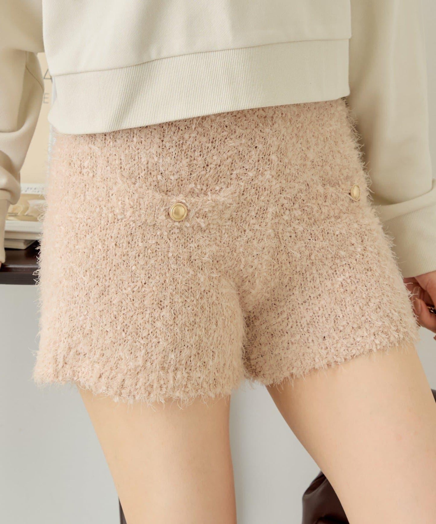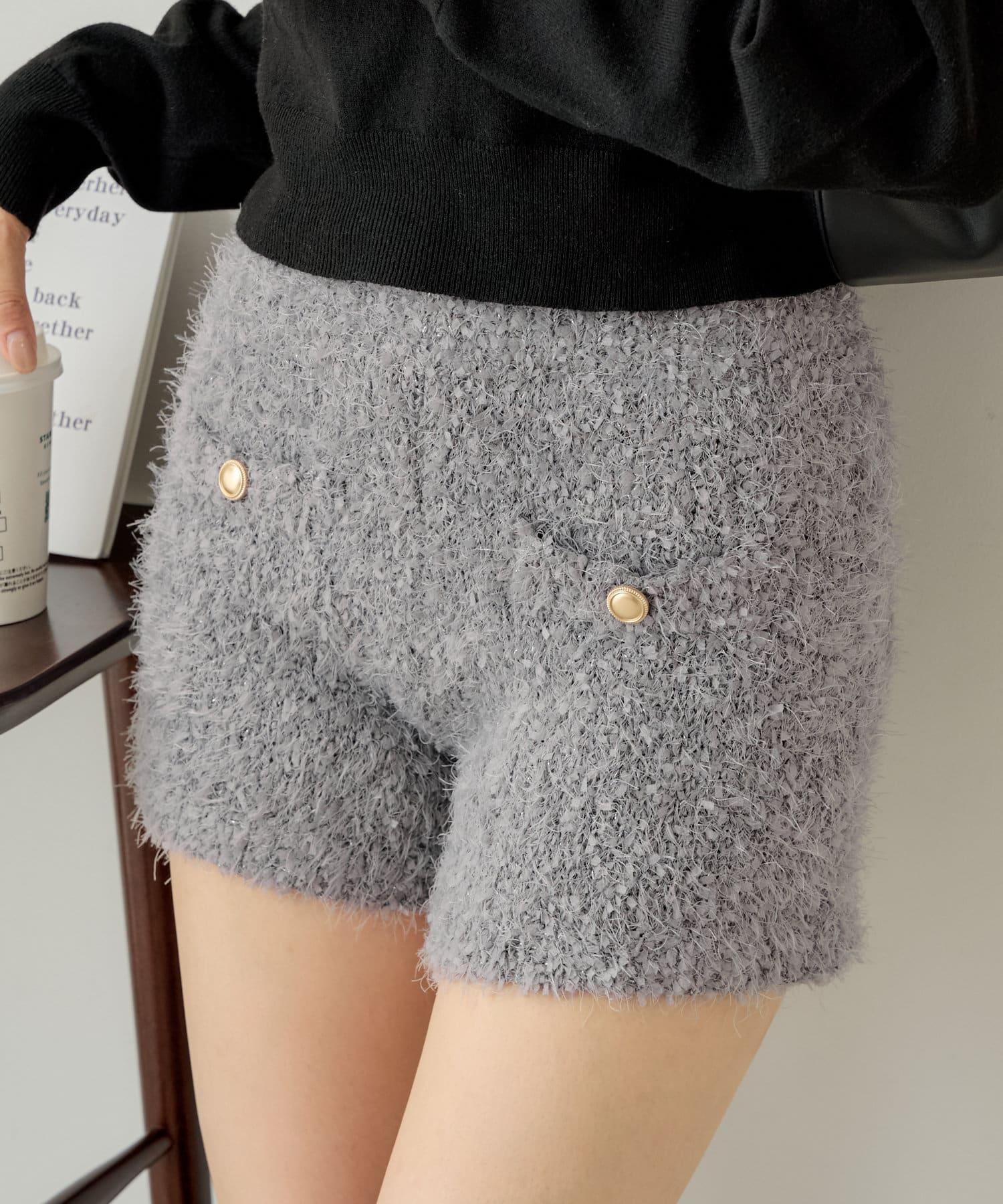 小巧的長袖開衫,飾有薄片絨毛金色紐扣。