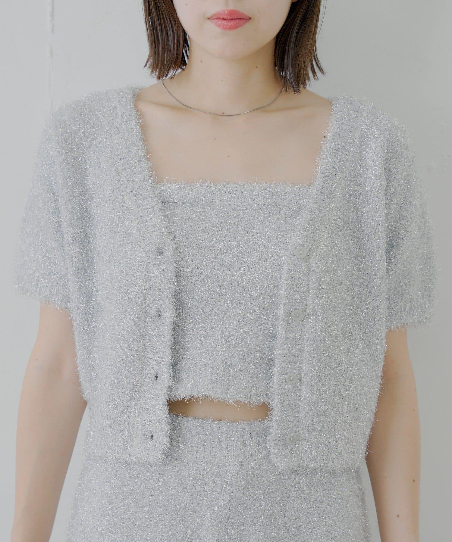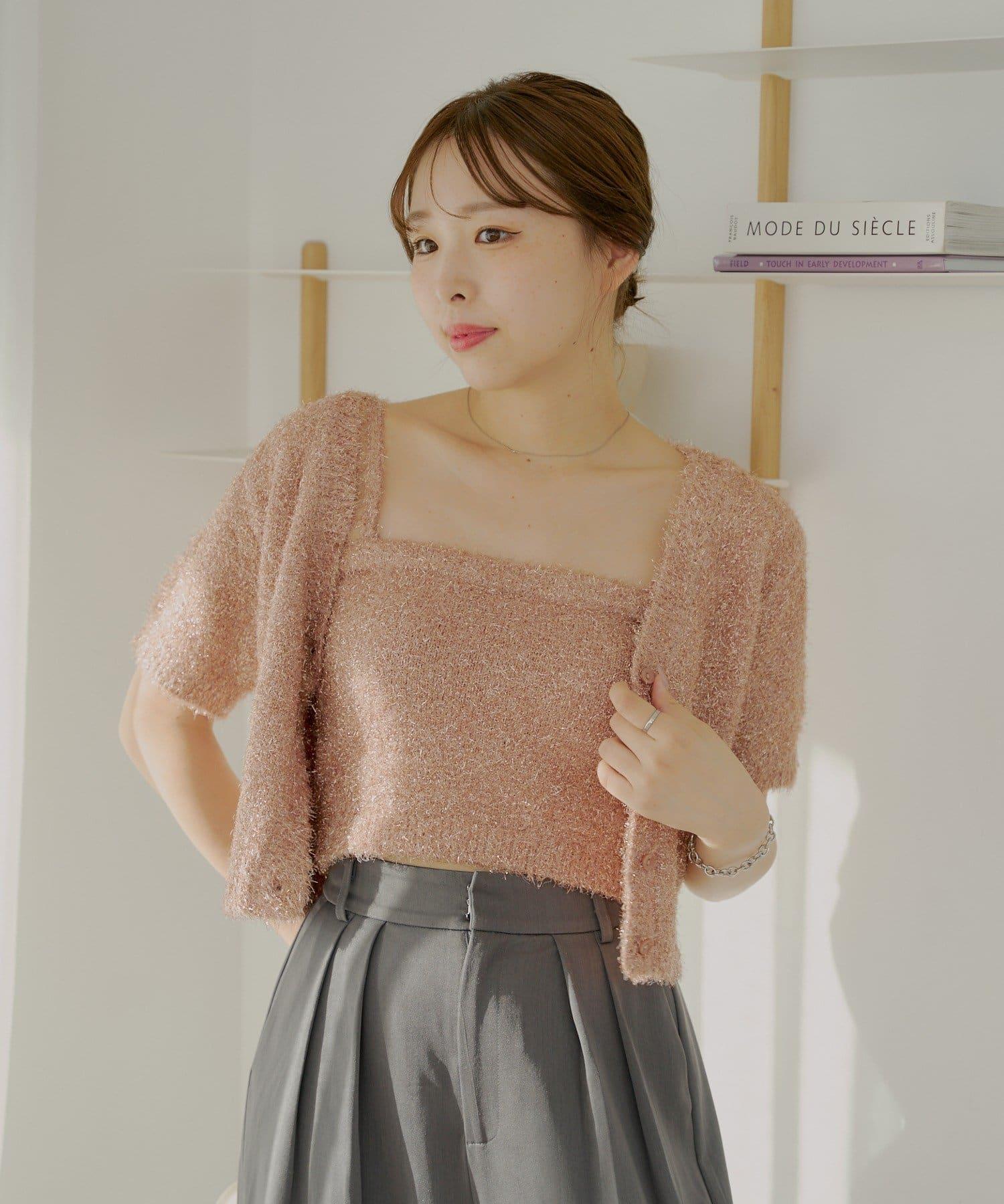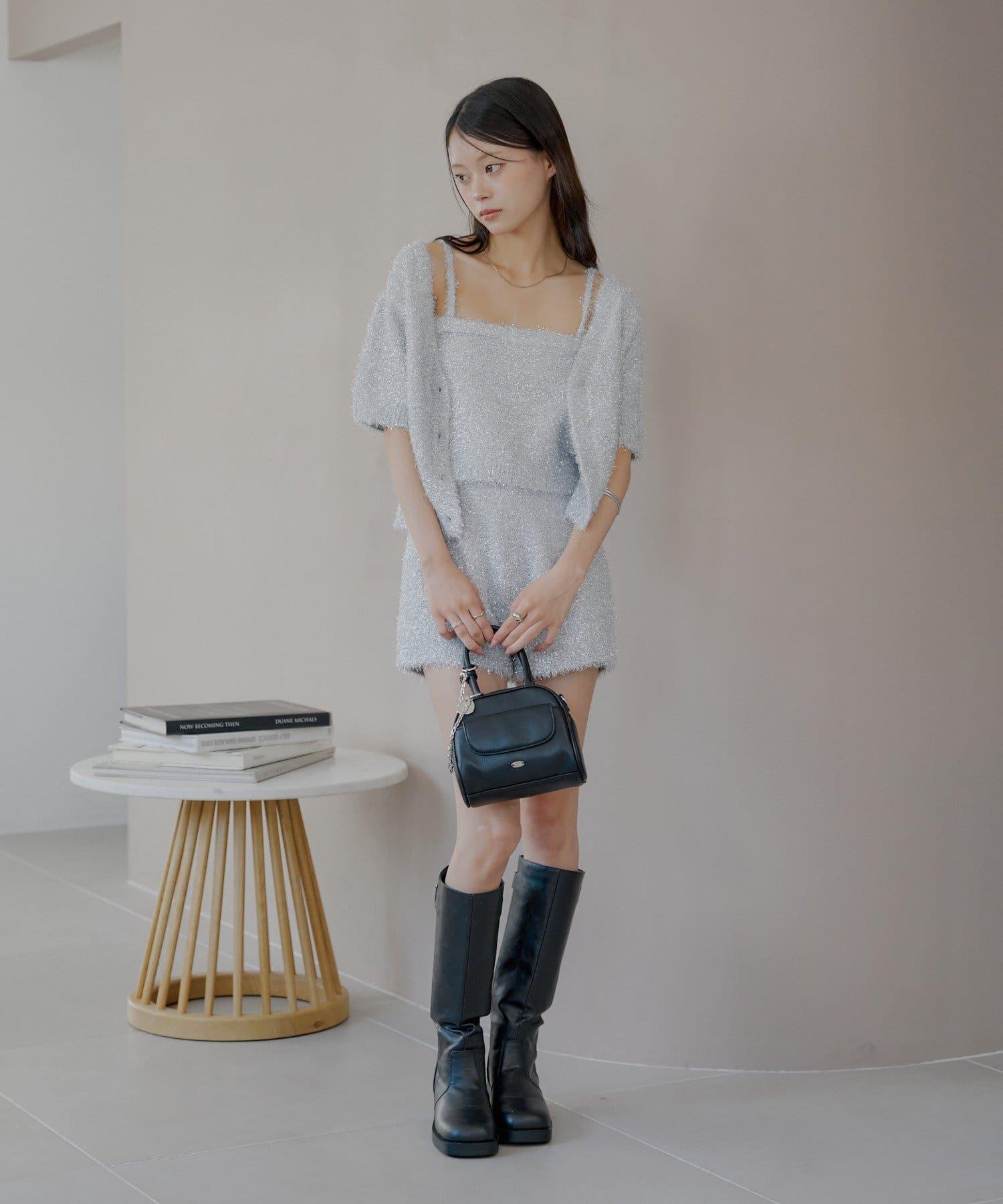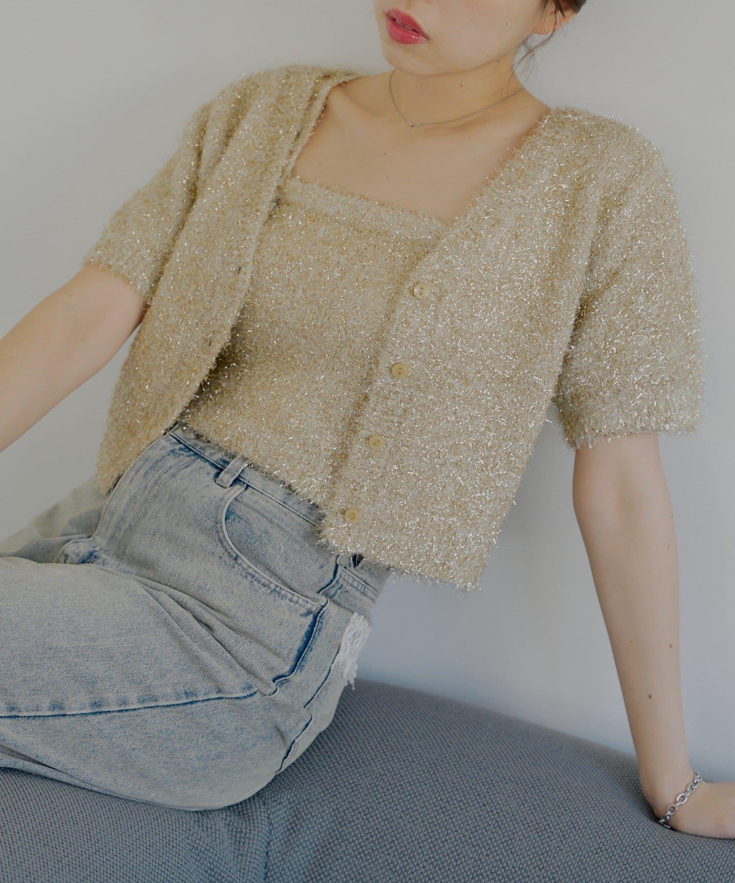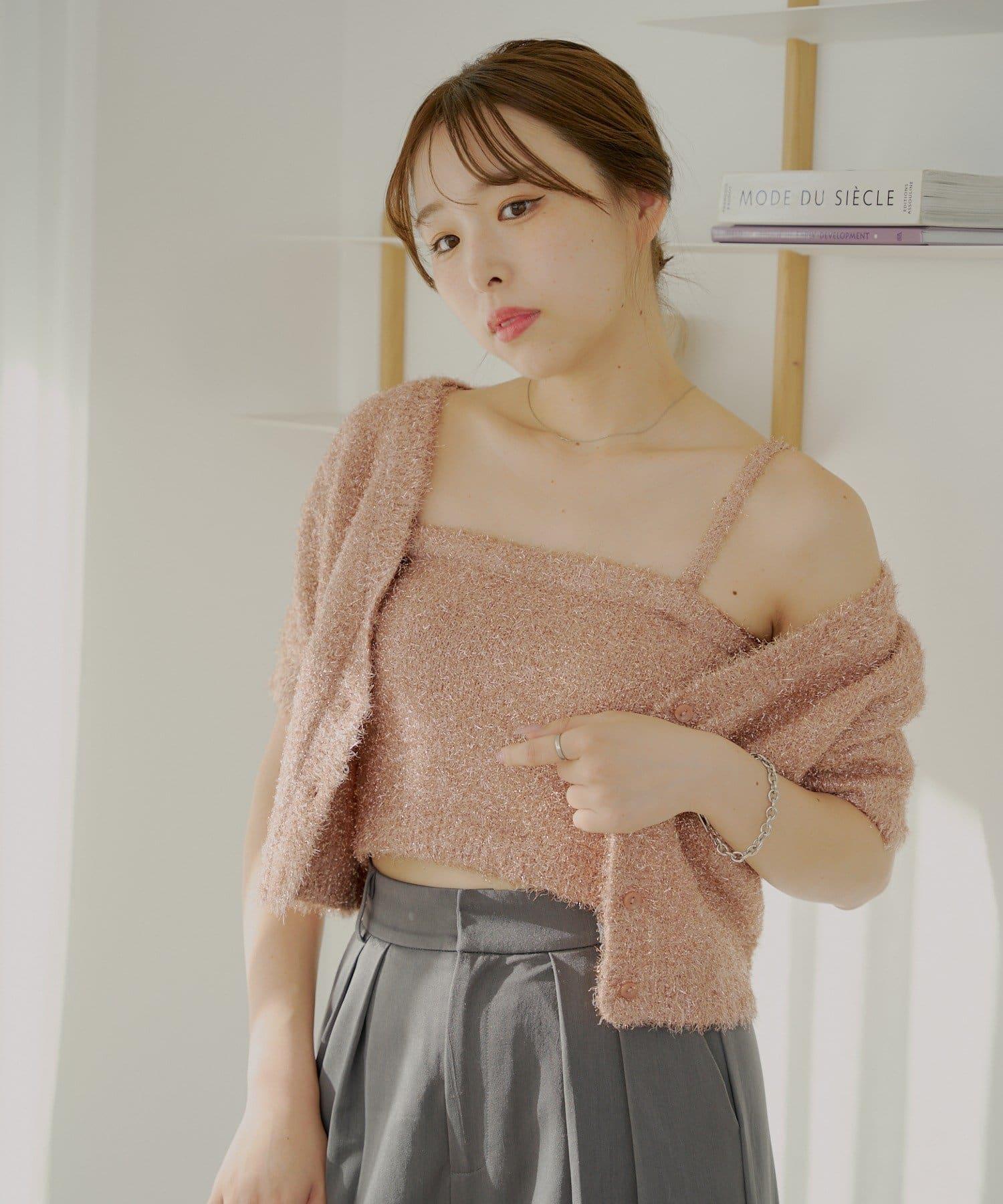 【Chico】亮片長毛針織開衫+抹胸吊帶套裝