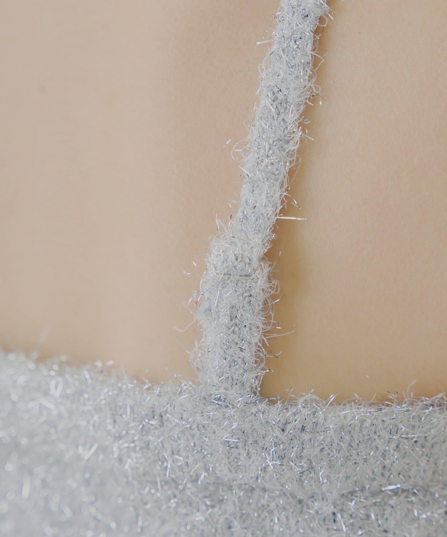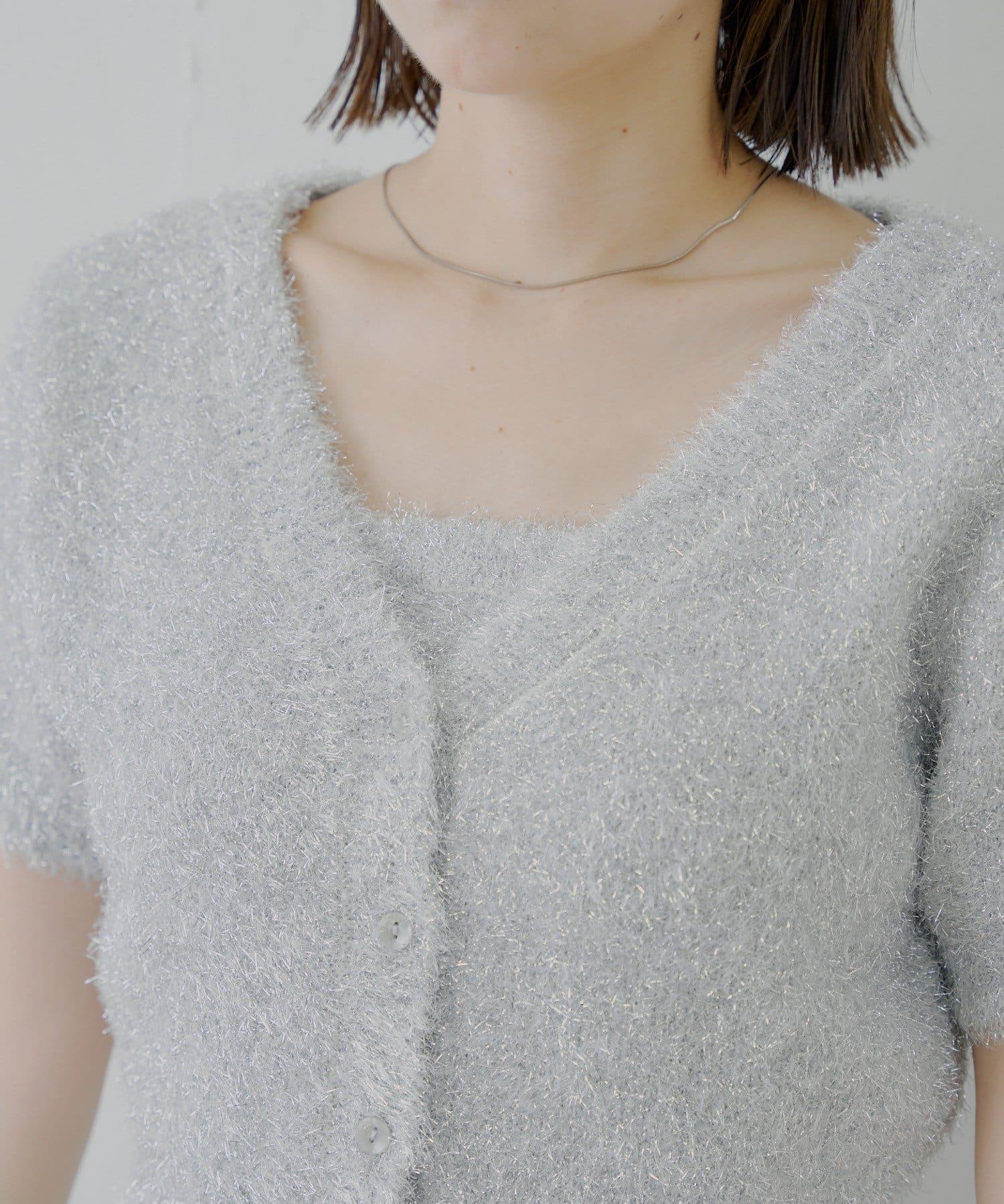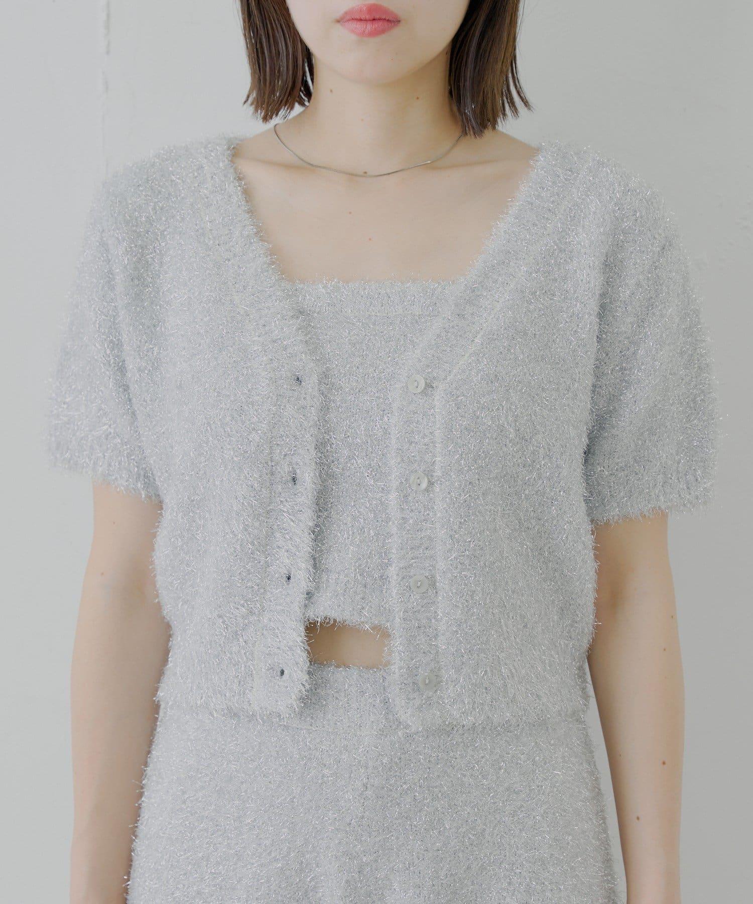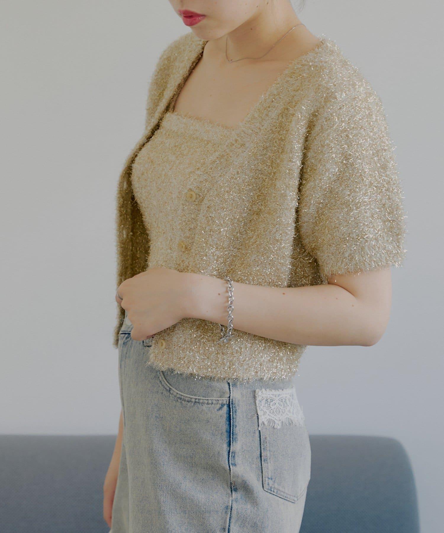【Chico】亮片長毛針織開衫+抹胸吊帶套裝