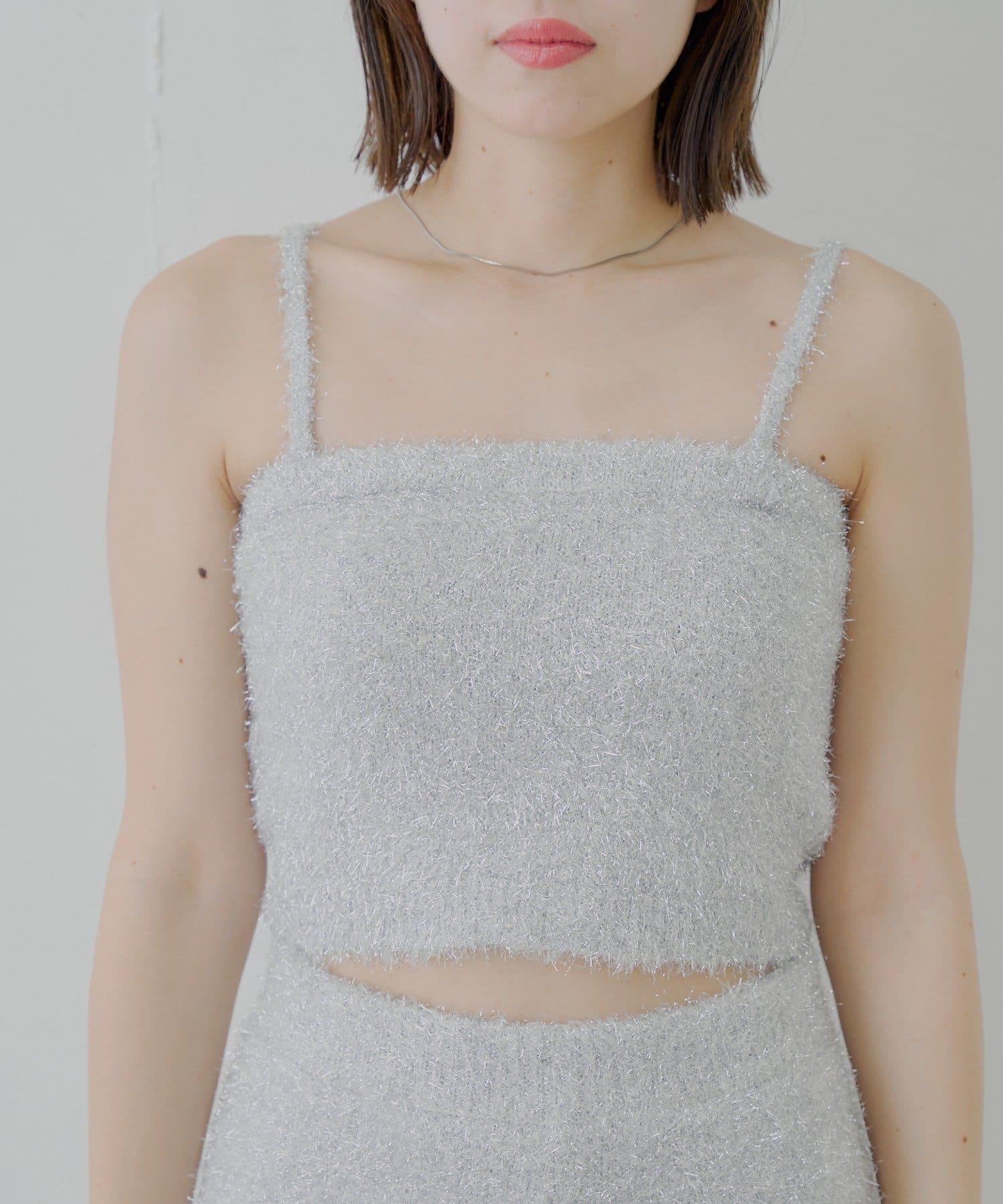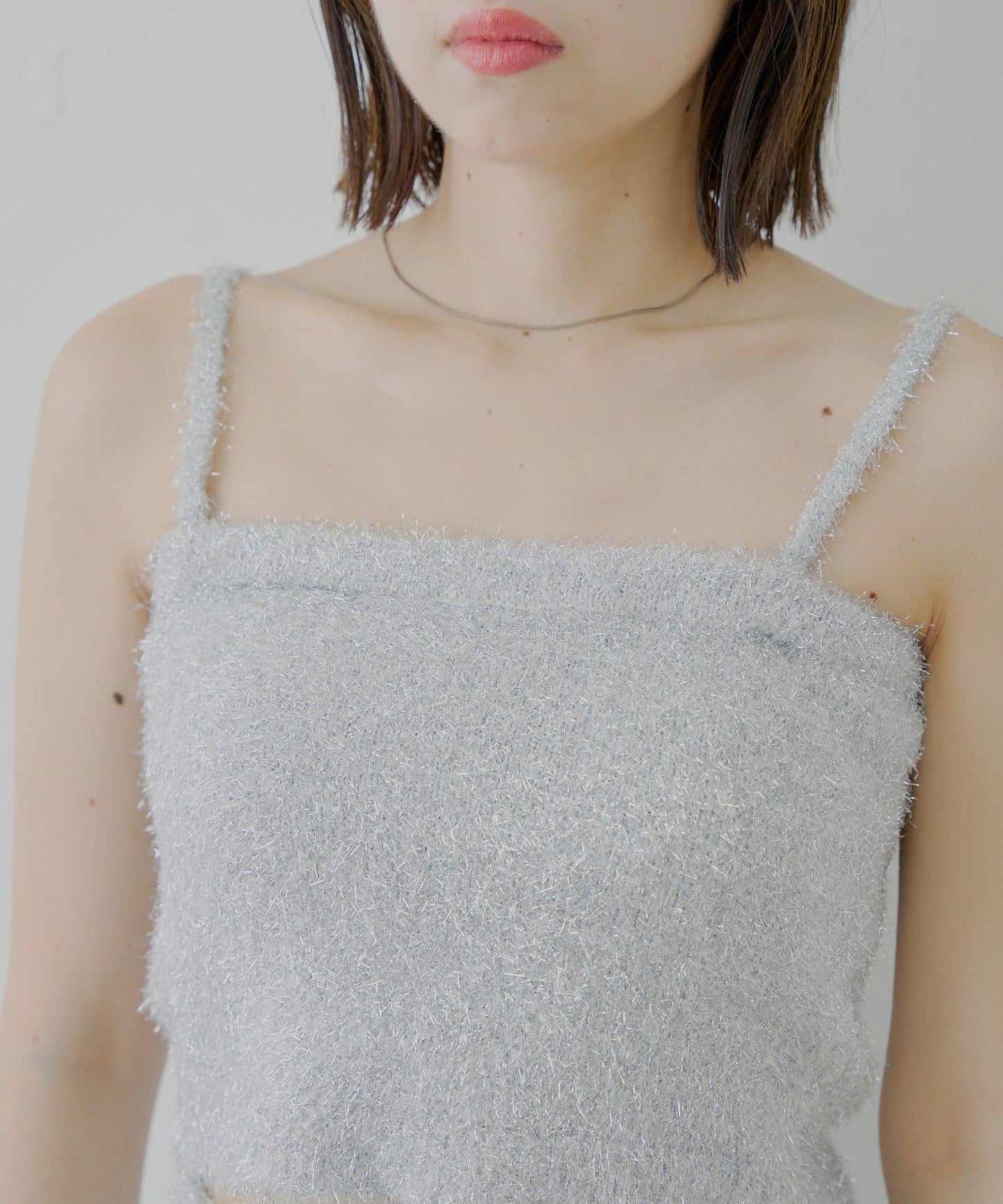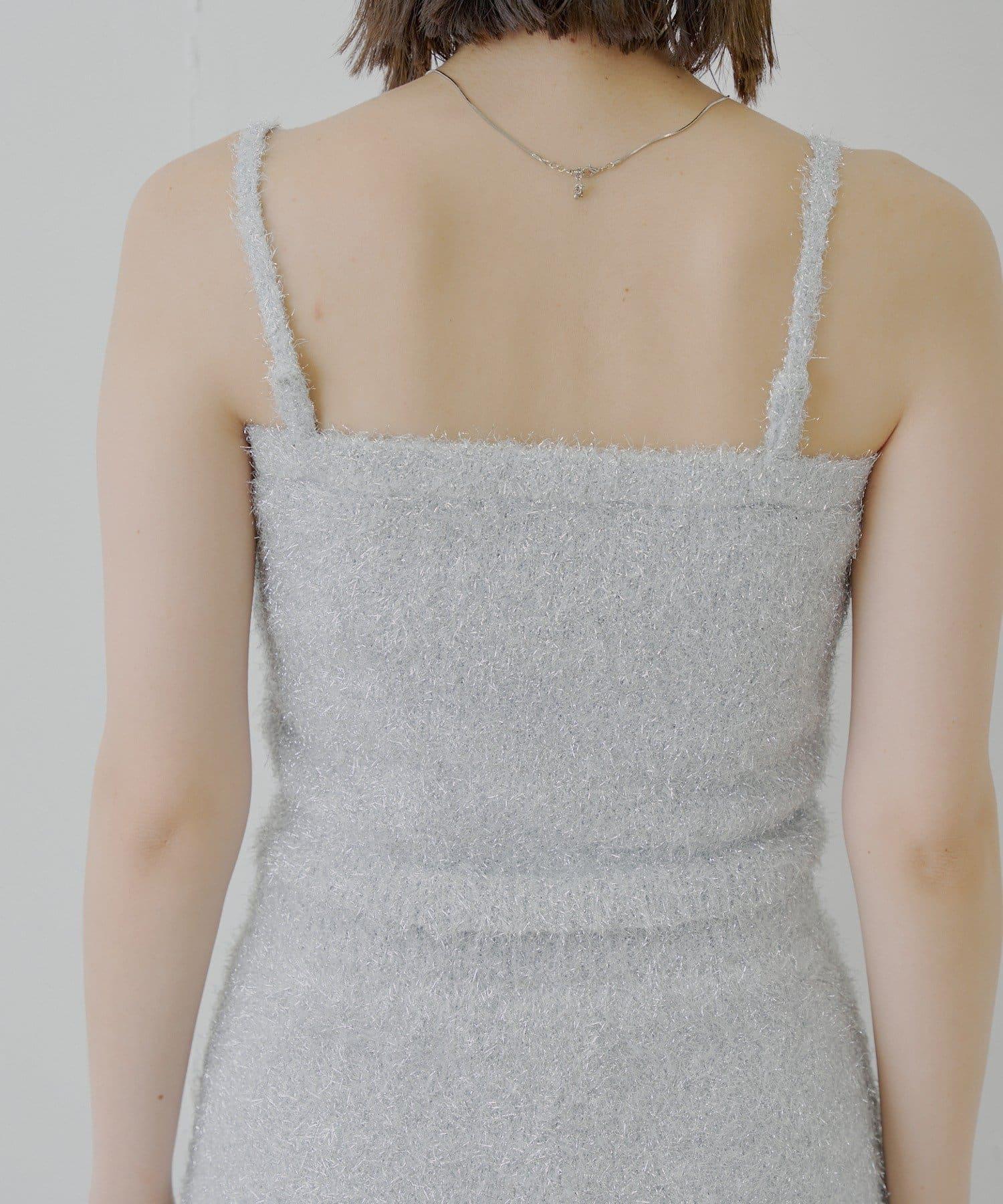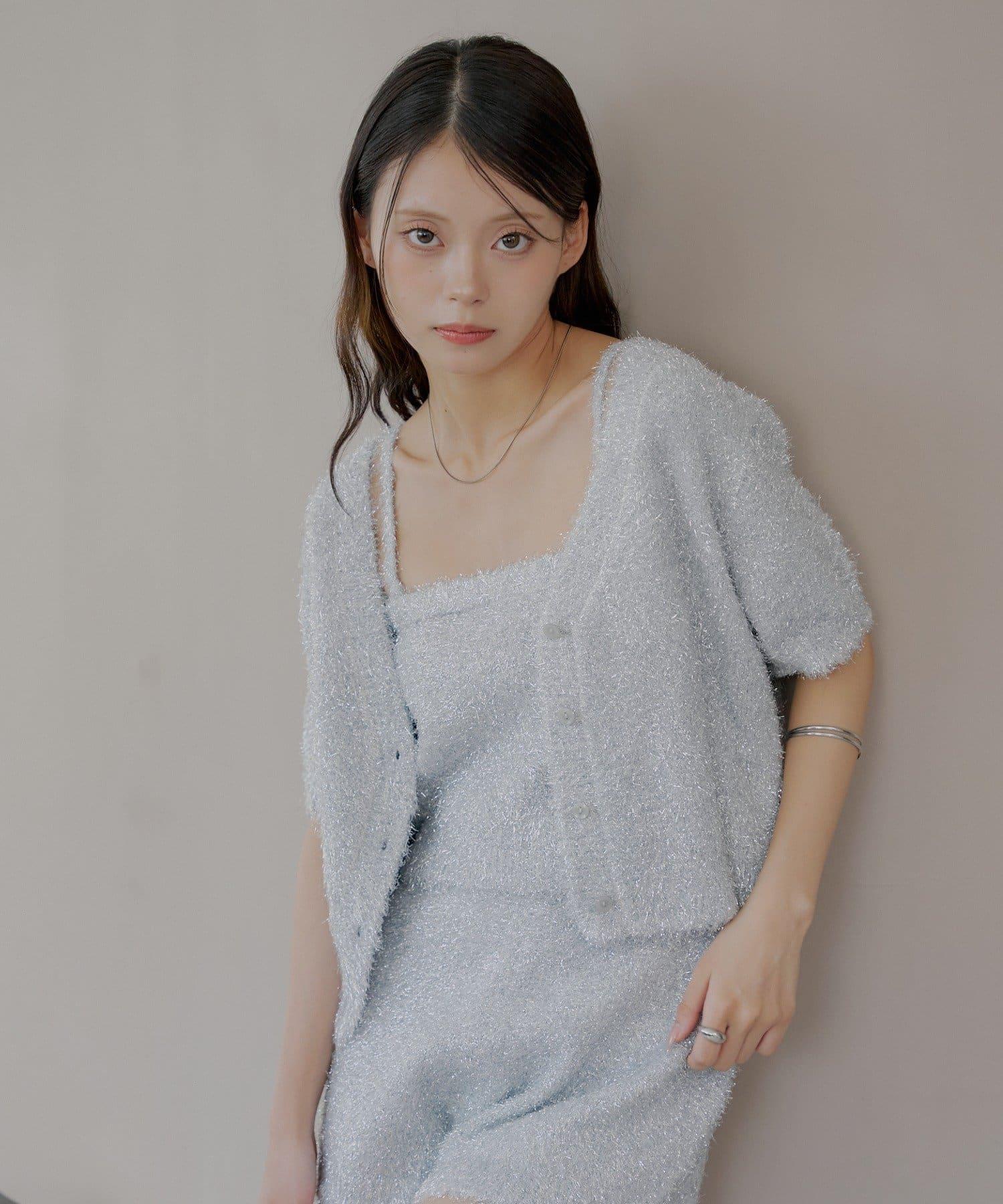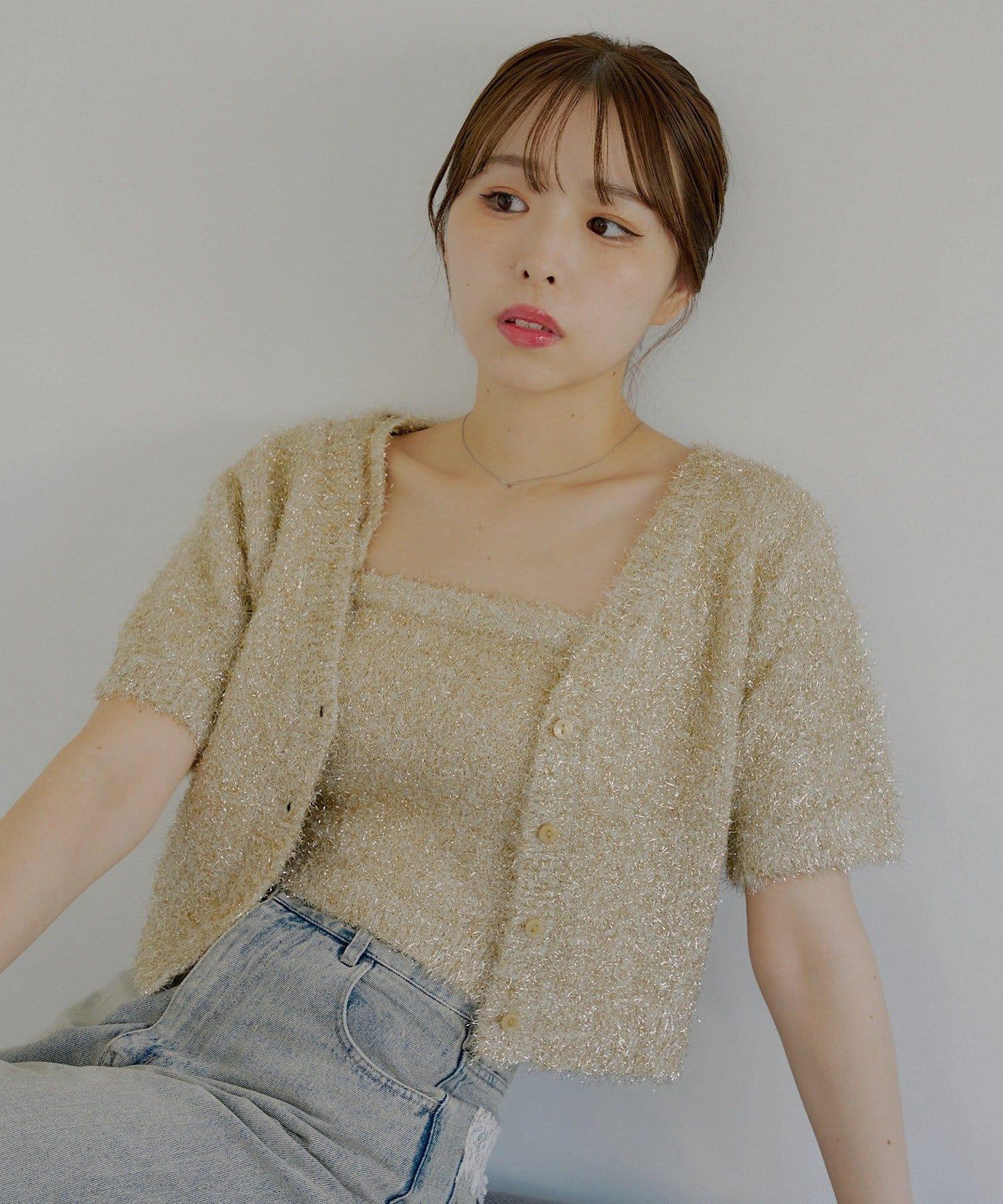 【Chico】亮片長毛針織開衫+抹胸吊帶套裝