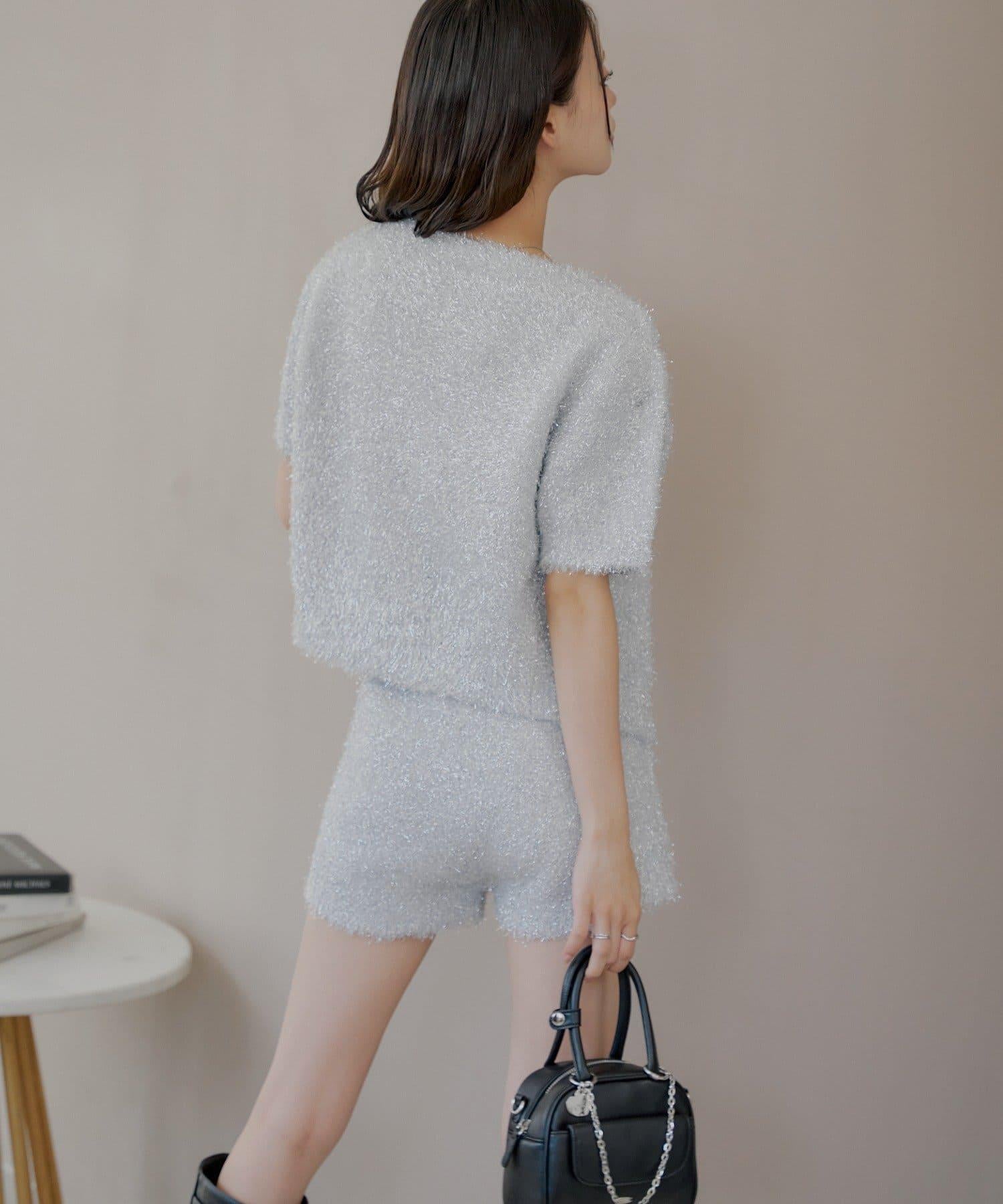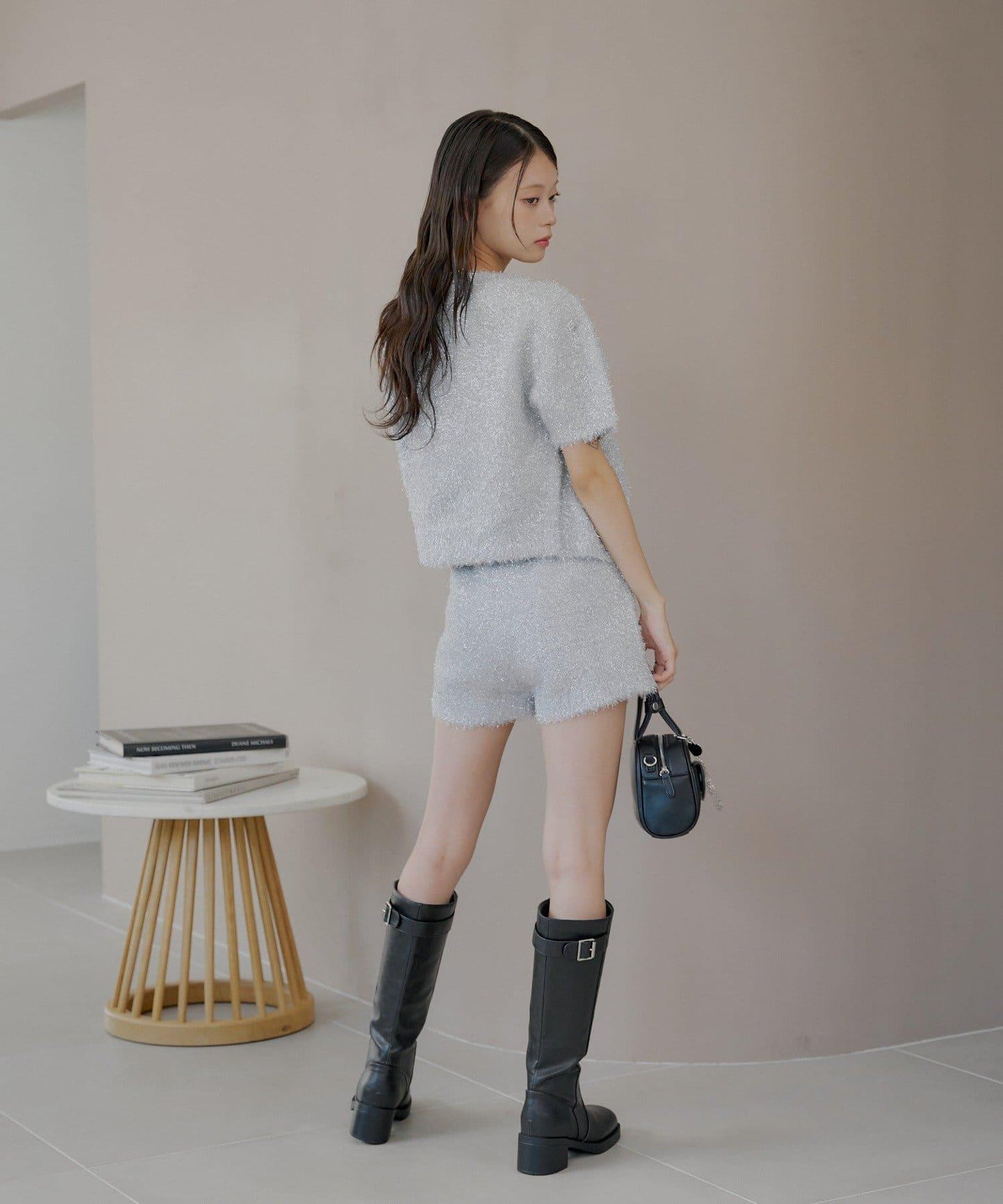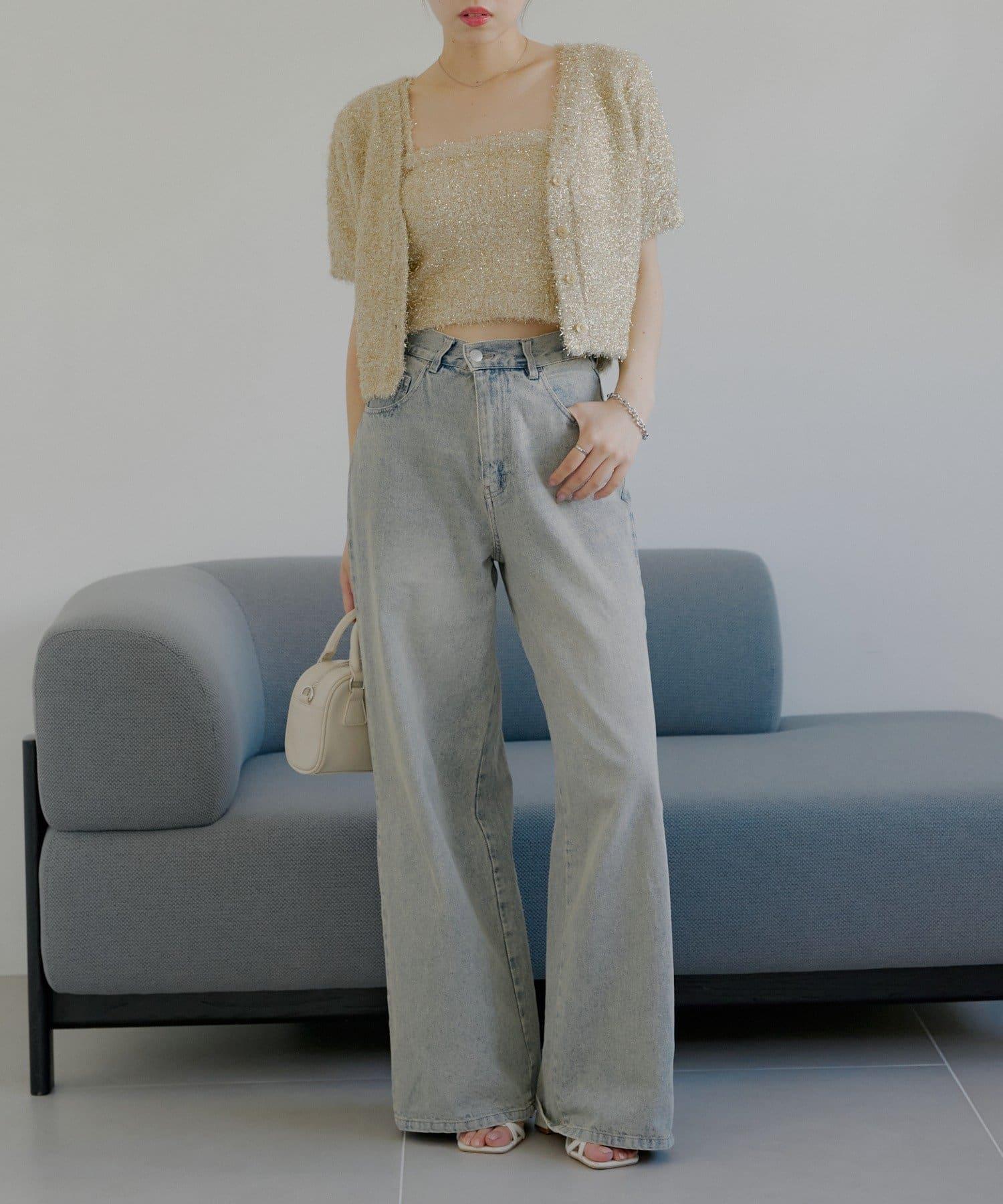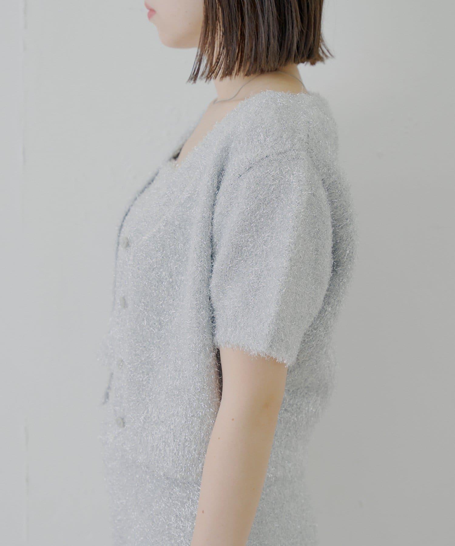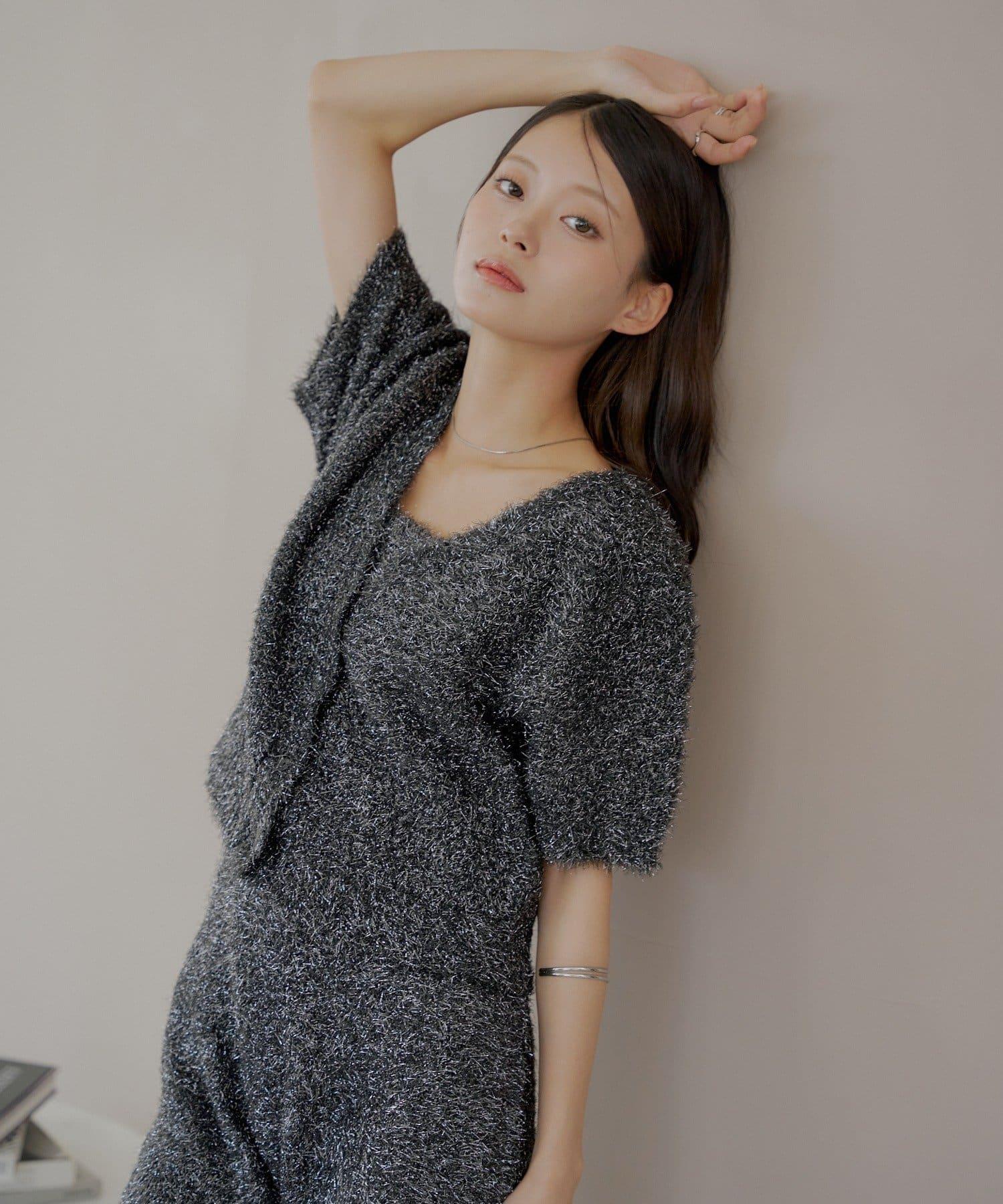 【Chico】亮片長毛針織開衫+抹胸吊帶套裝