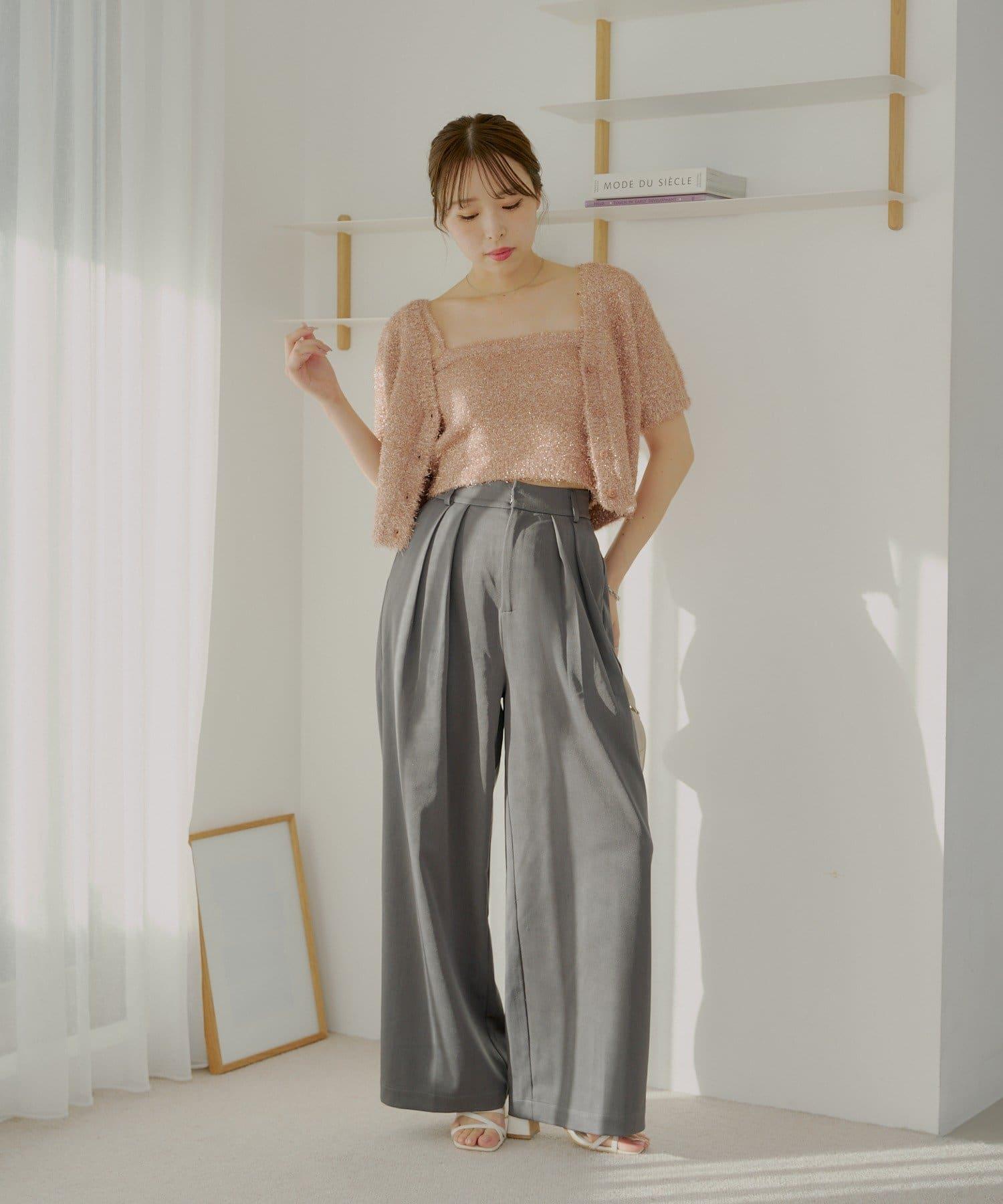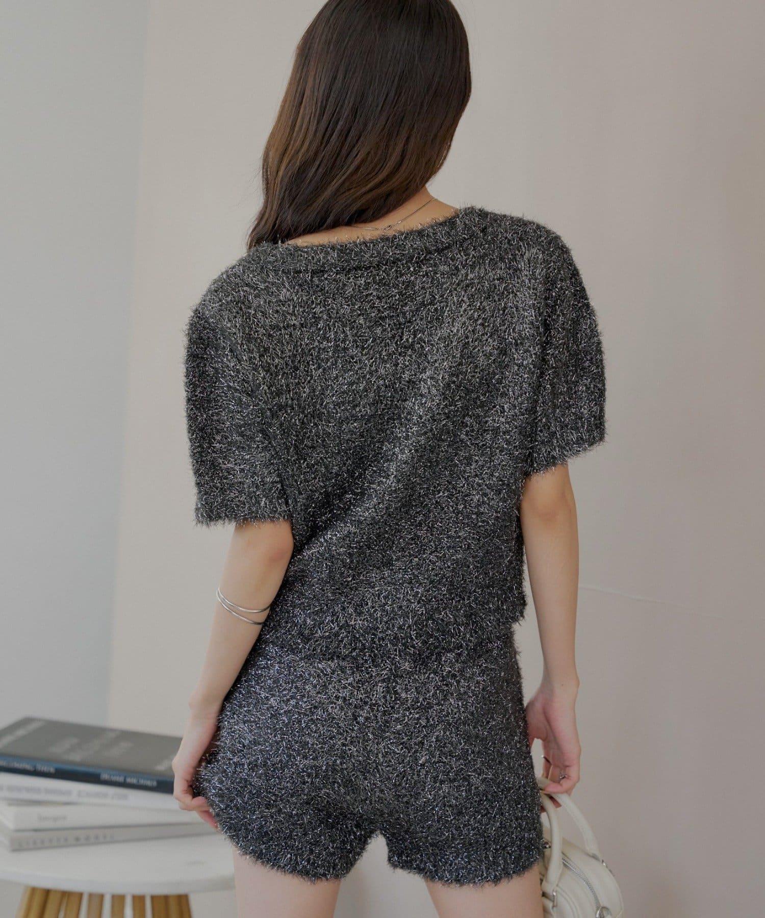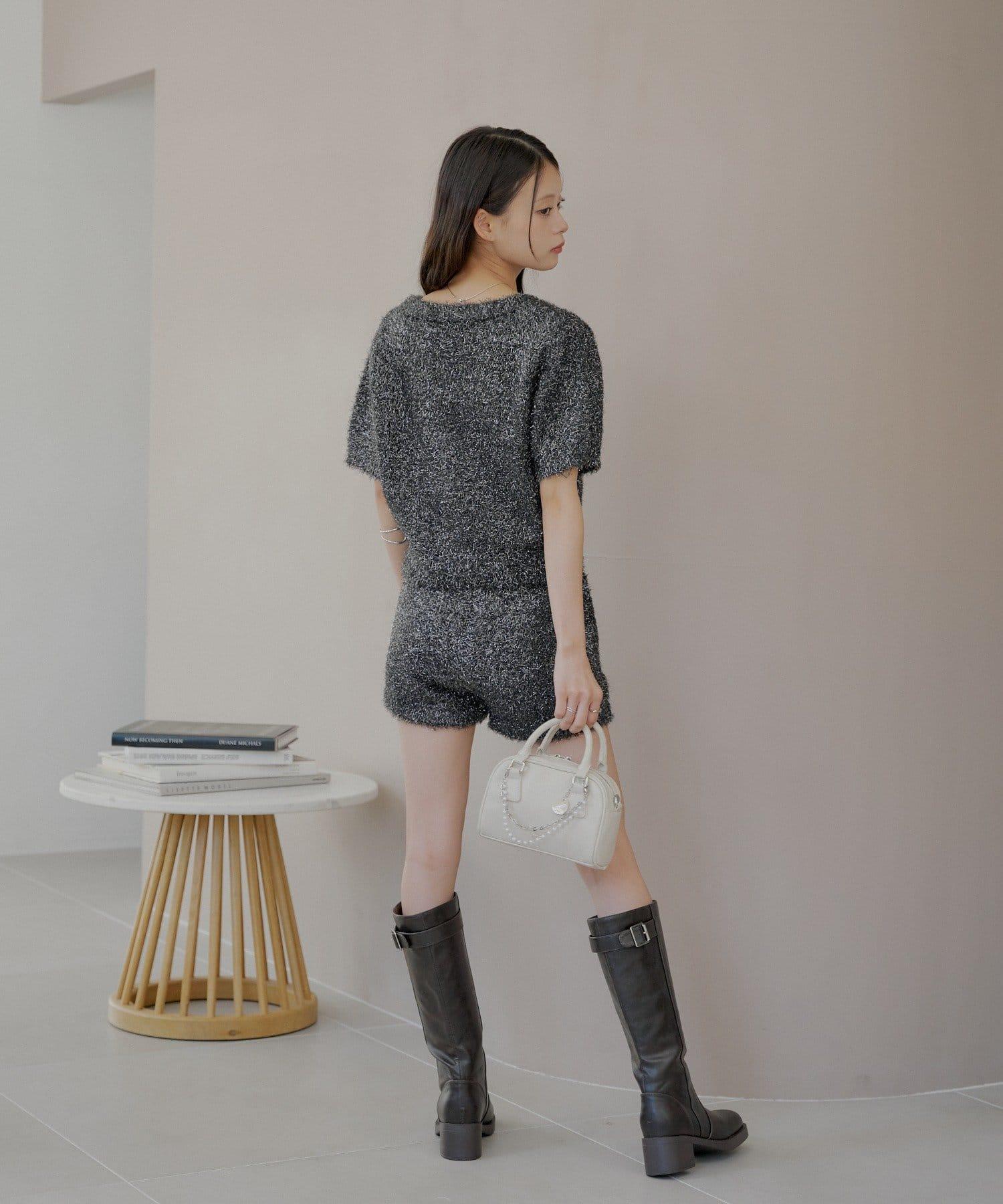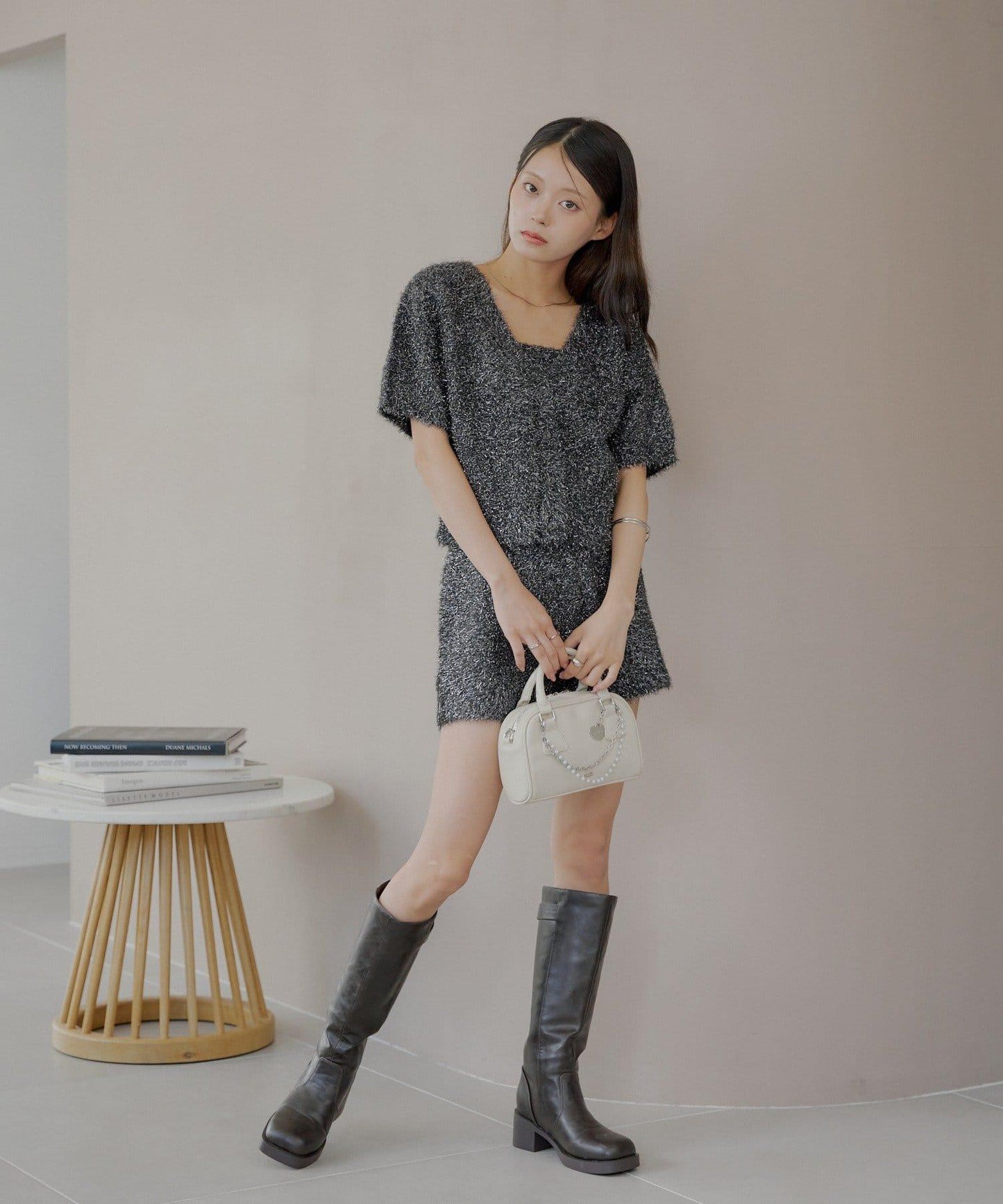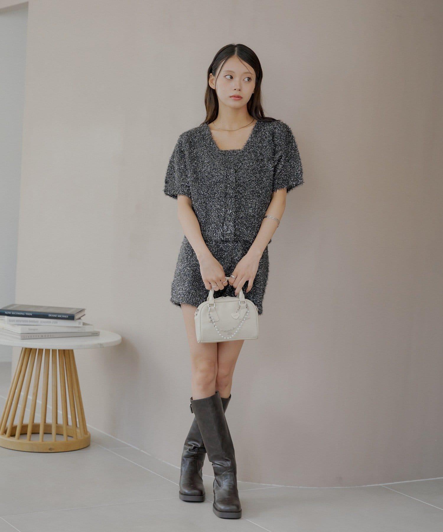 【Chico】亮片長毛針織開衫+抹胸吊帶套裝