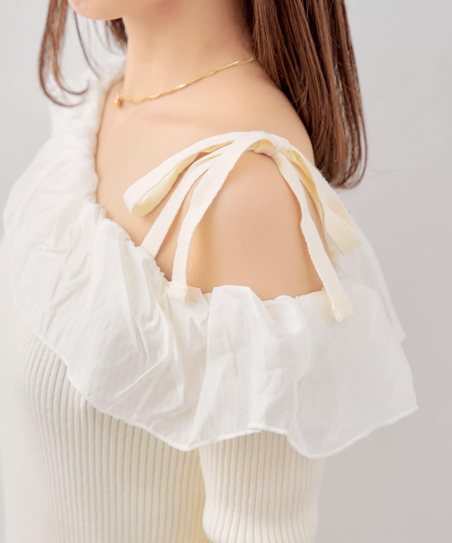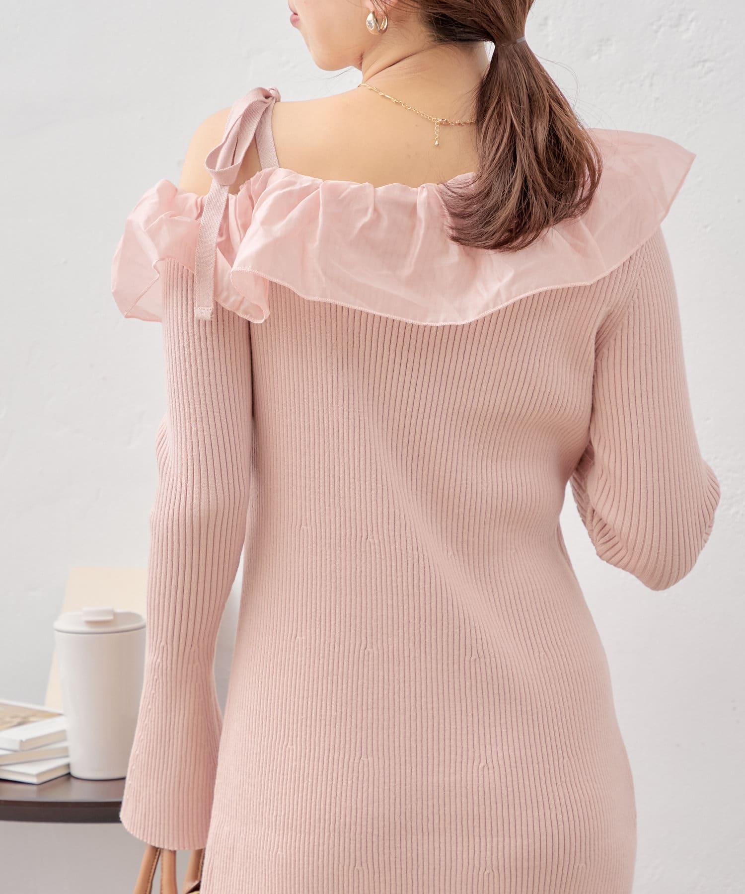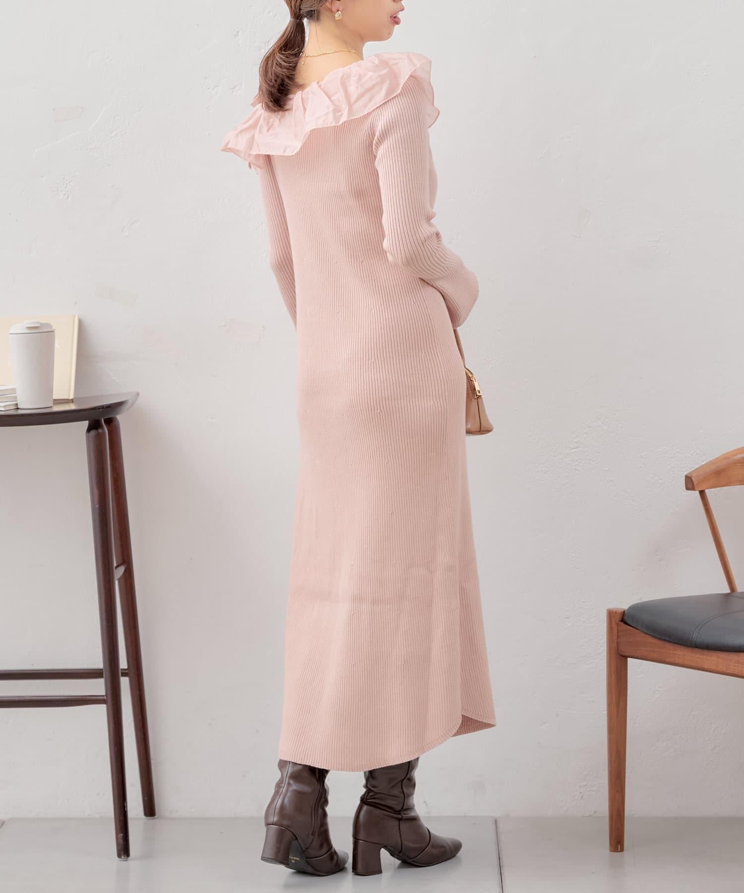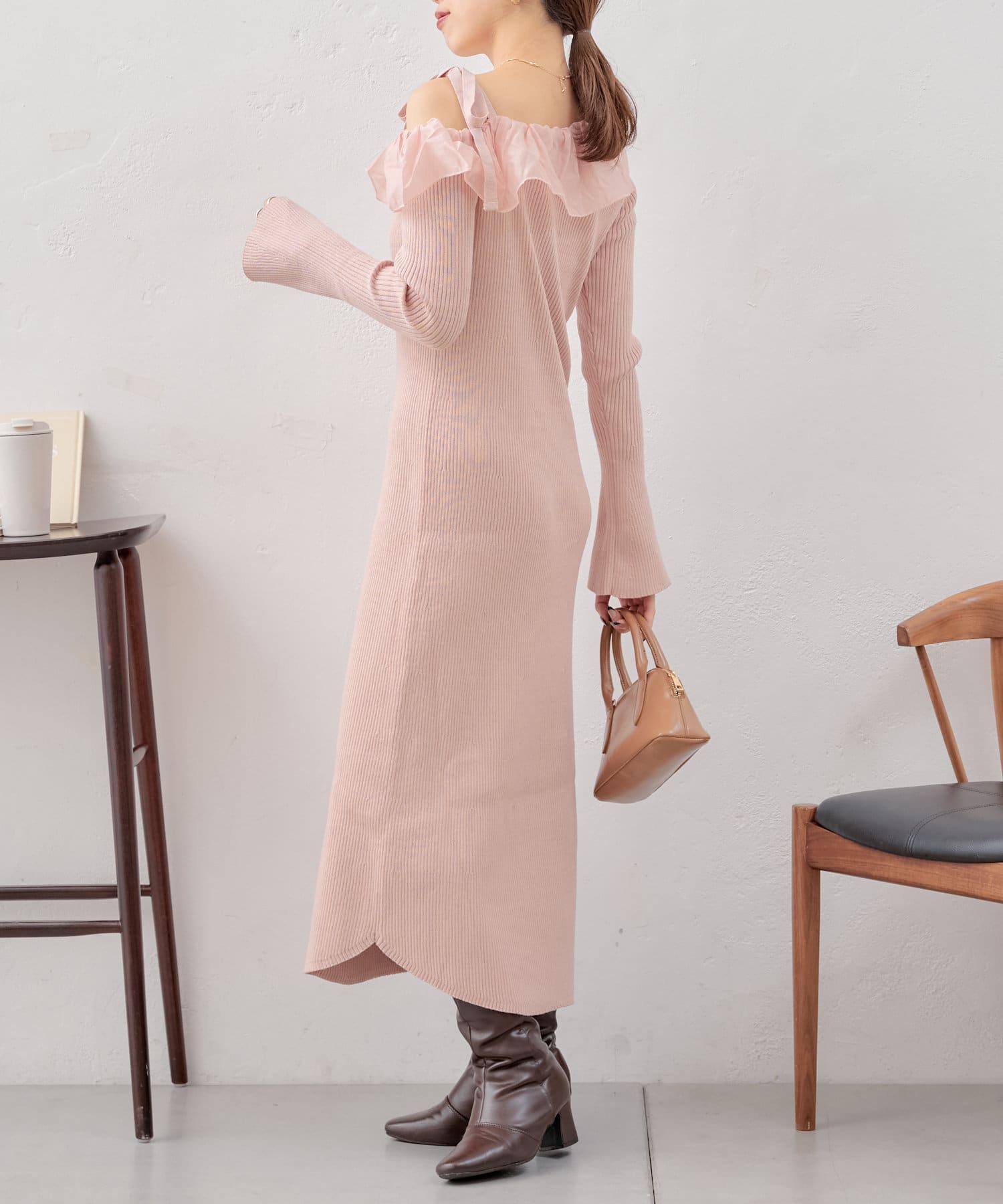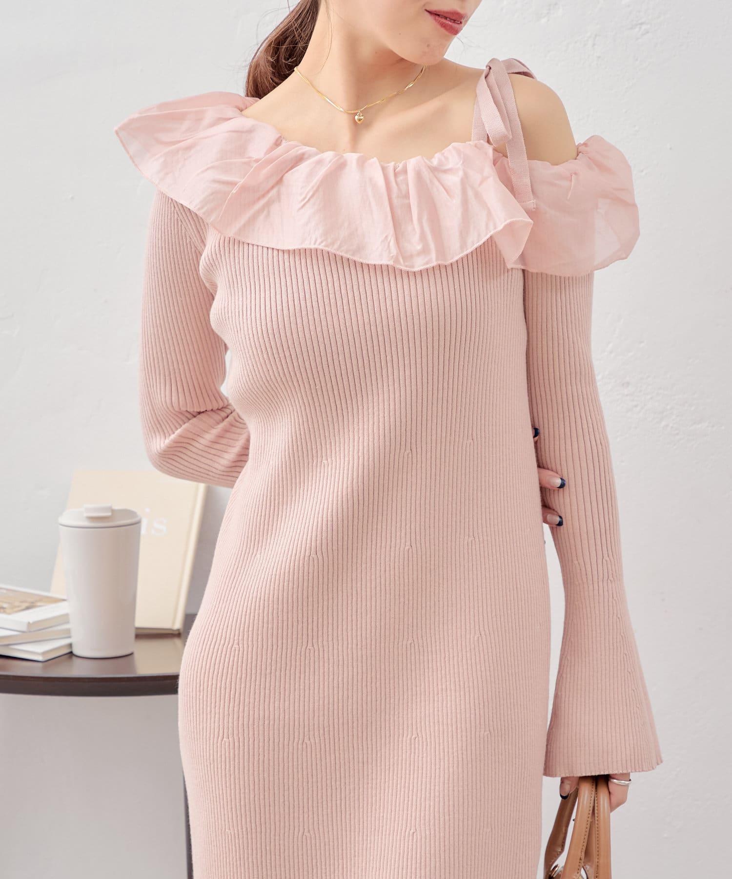 【Chico】單肩荷葉邊肩帶蝴蝶結長款連衣裙