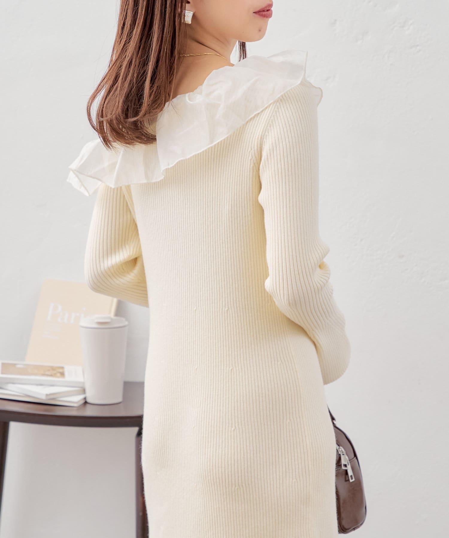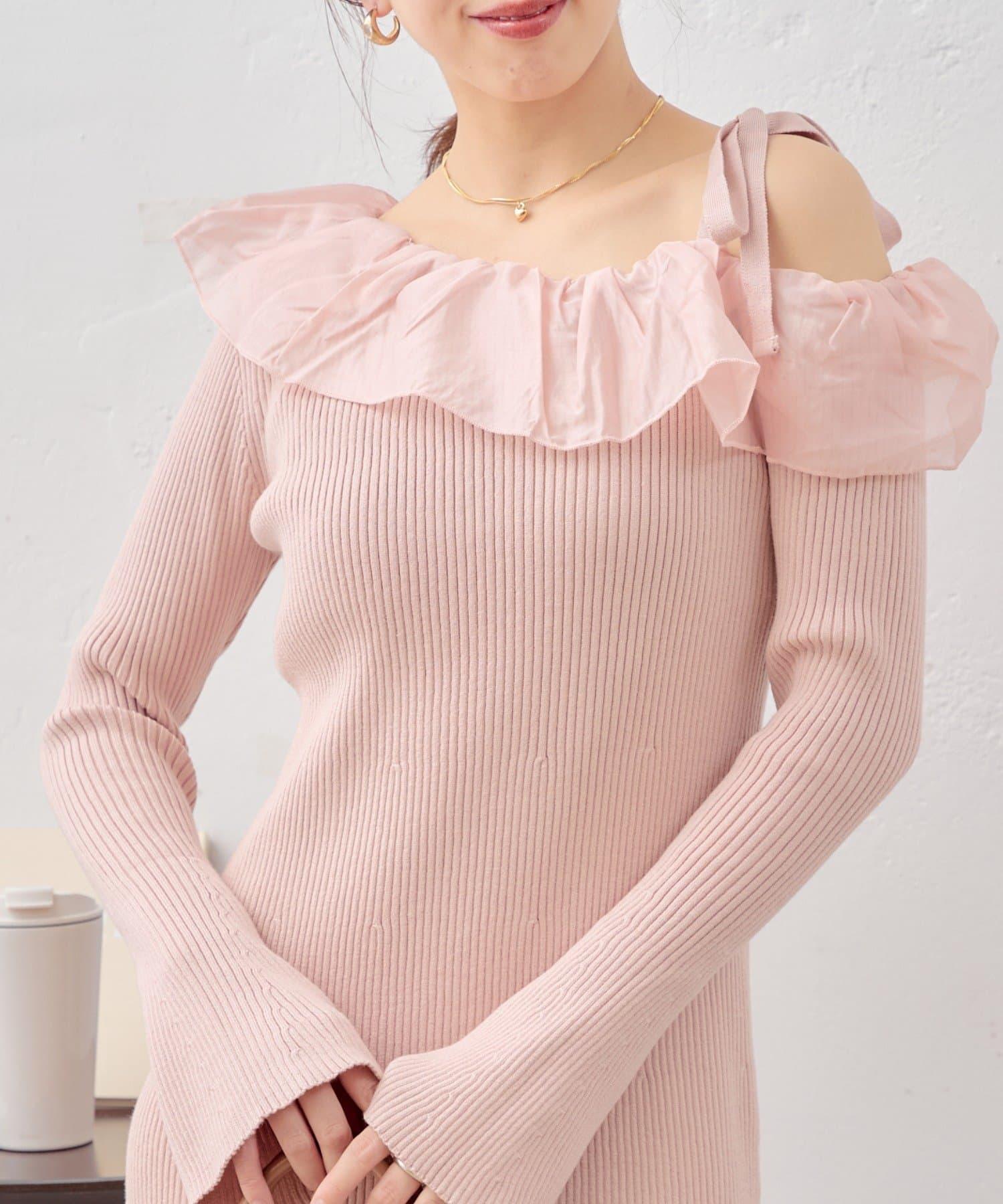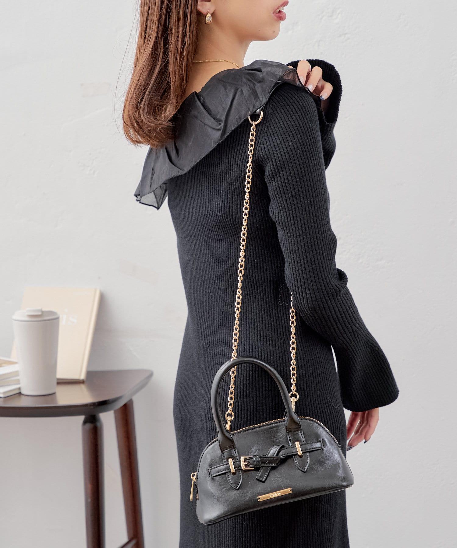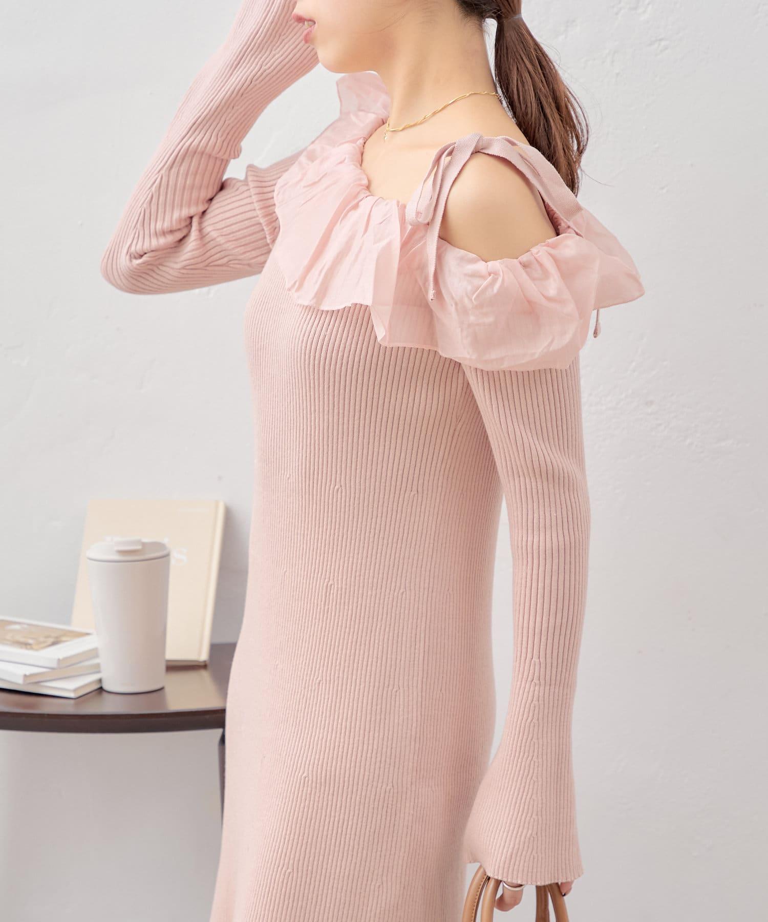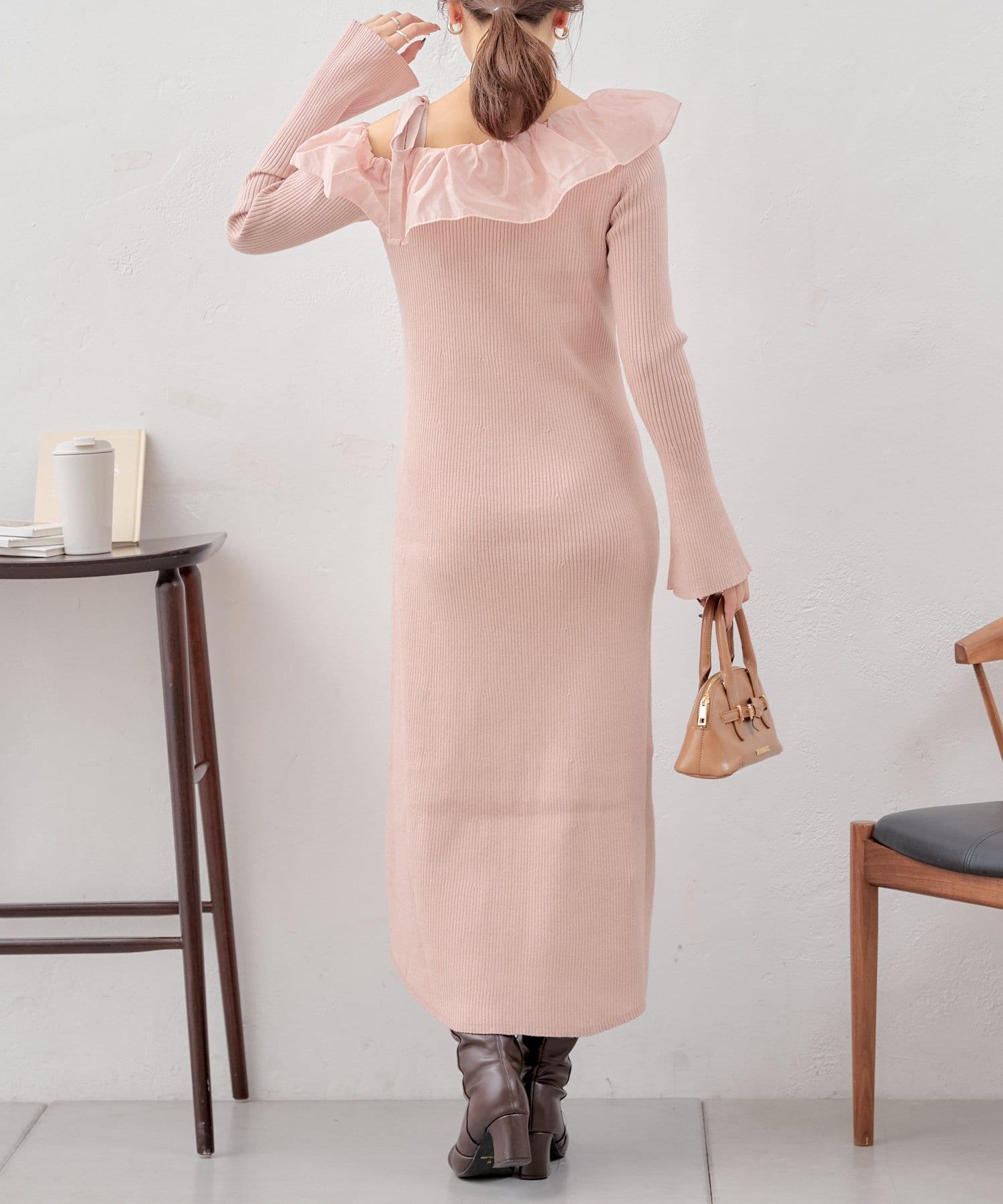 【Chico】單肩荷葉邊肩帶蝴蝶結長款連衣裙