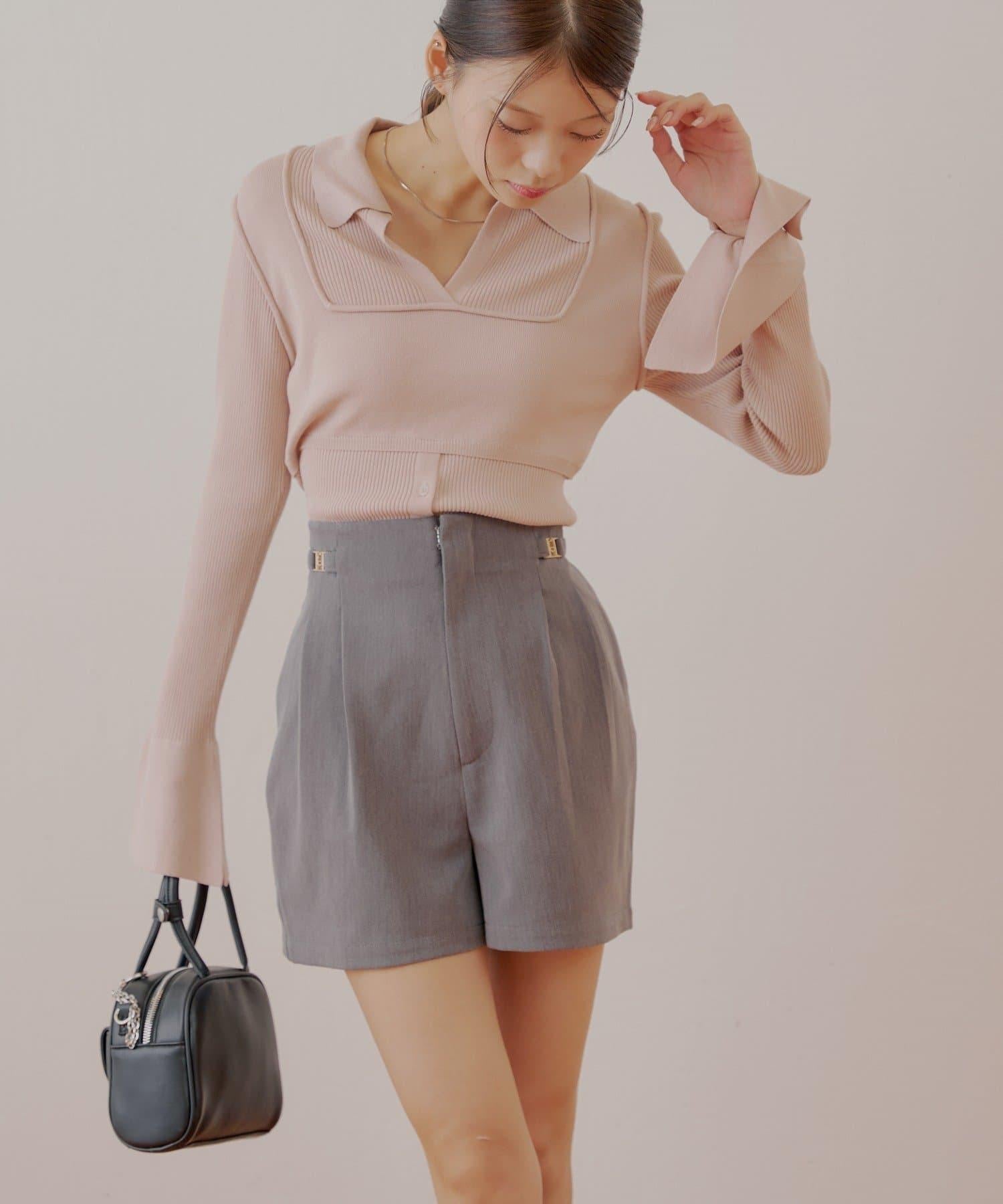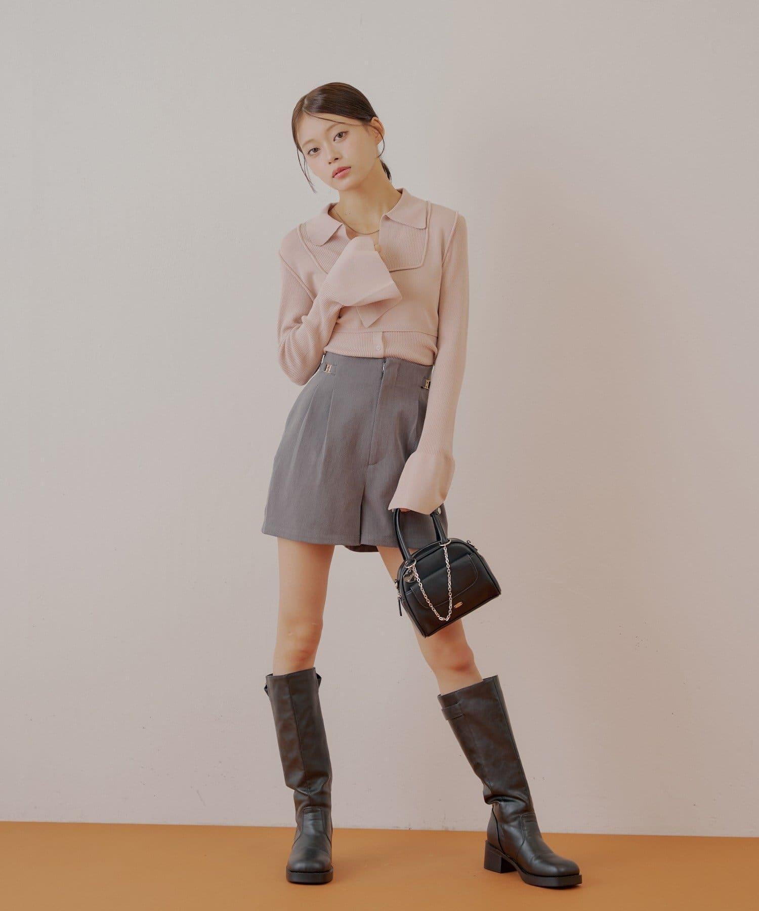 褶襉短褲,飾有吊飾,盡顯優雅氣質!