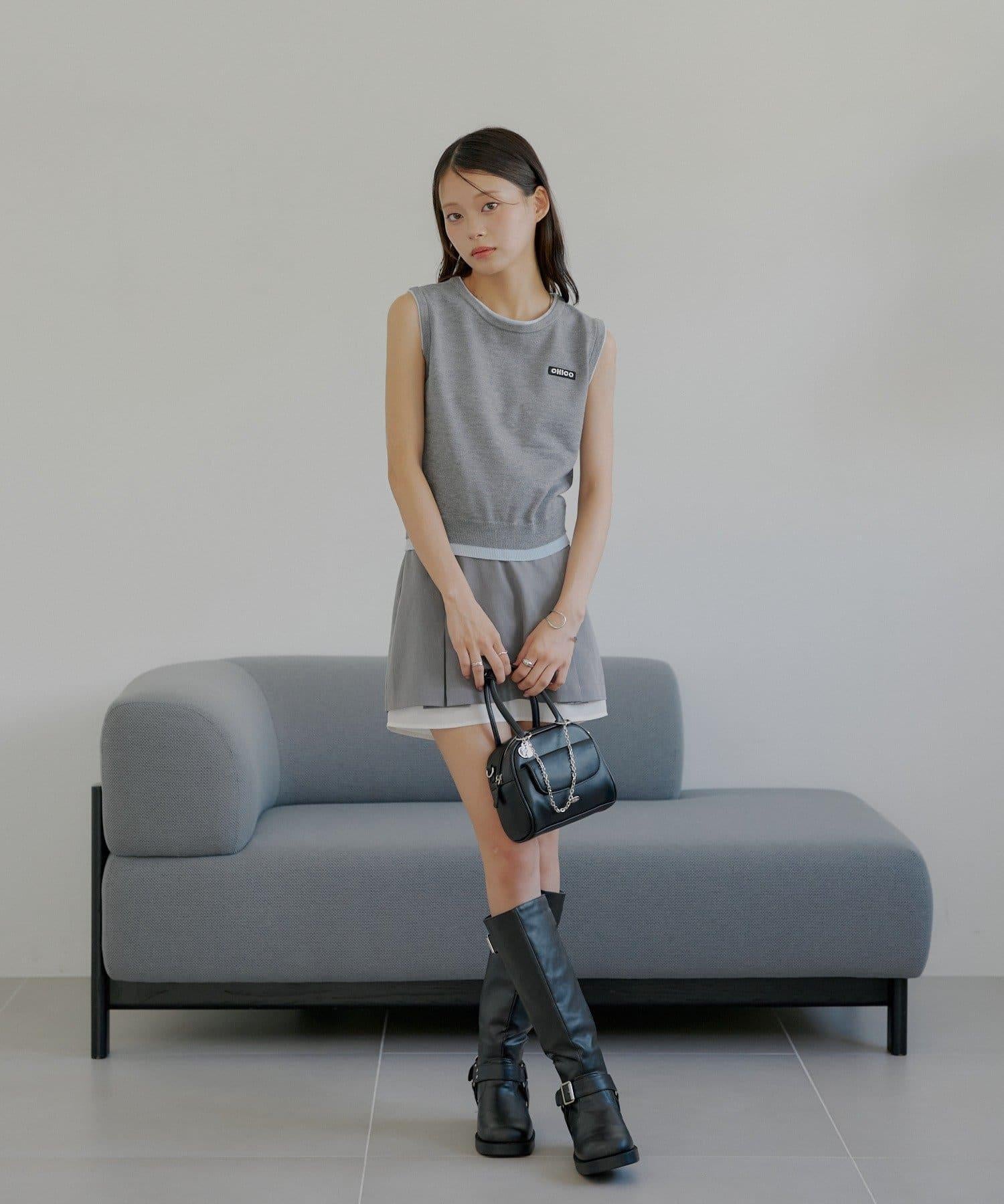 這款單品可搭配同色系迷你裙,打造可愛的套裝造型。