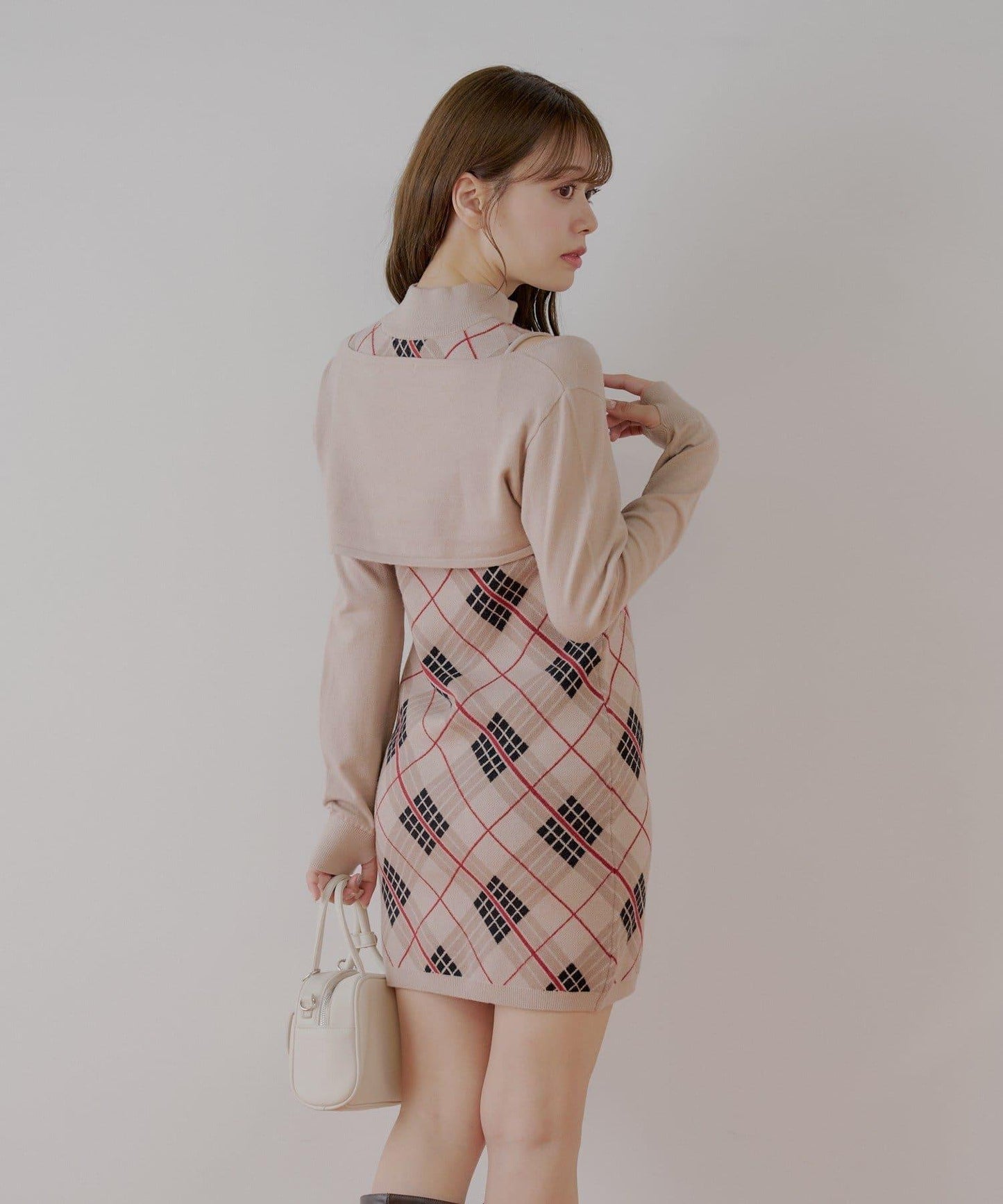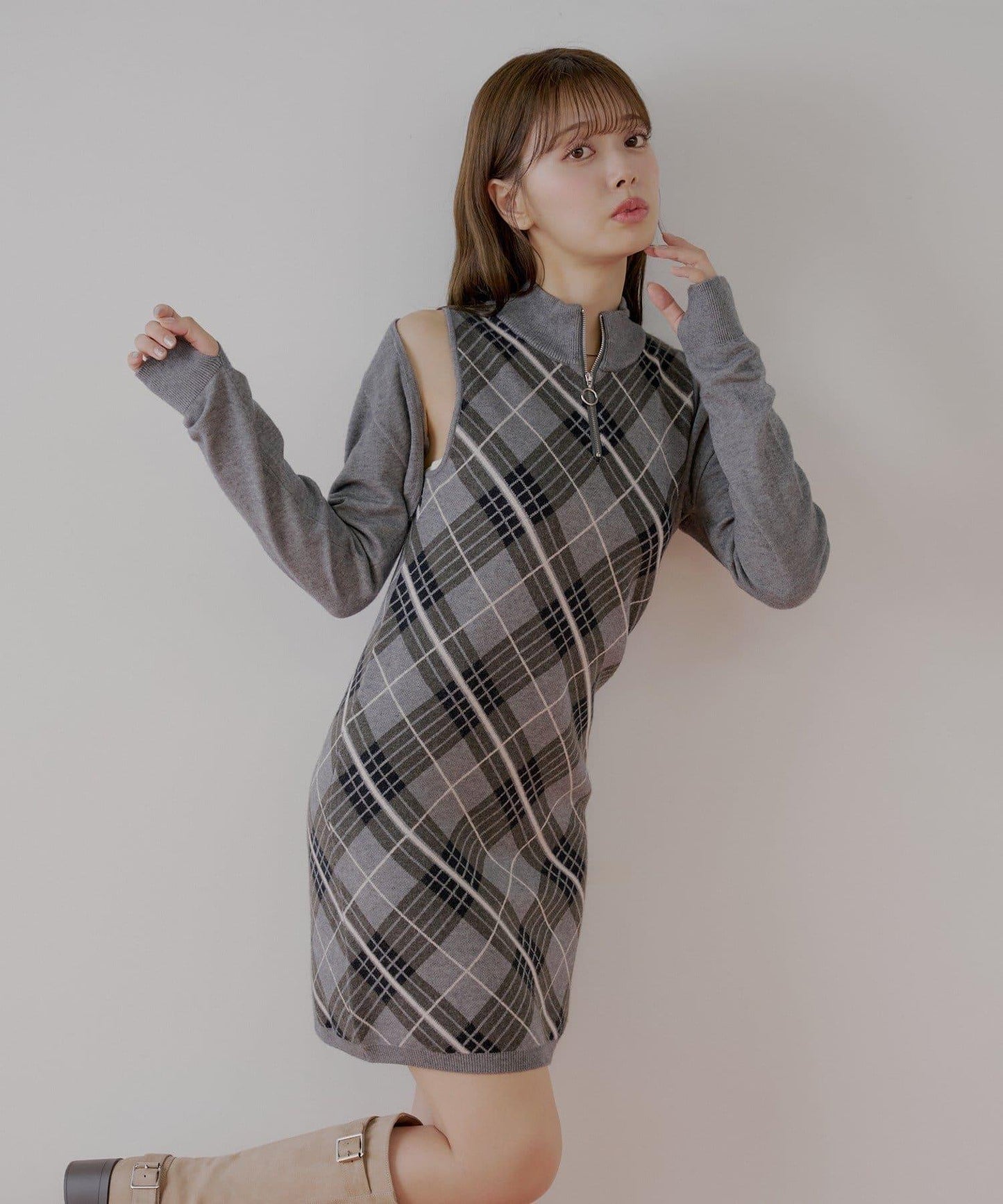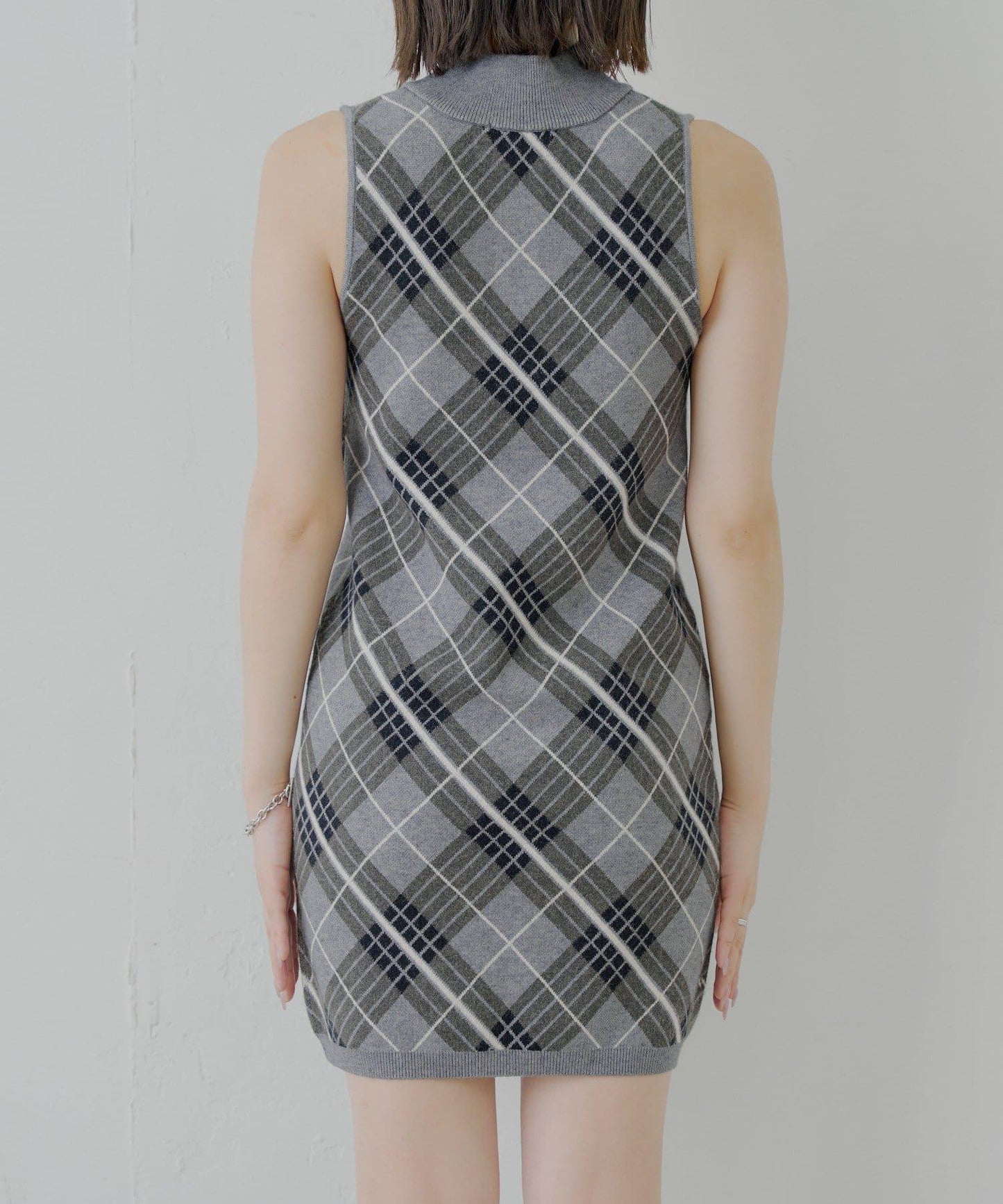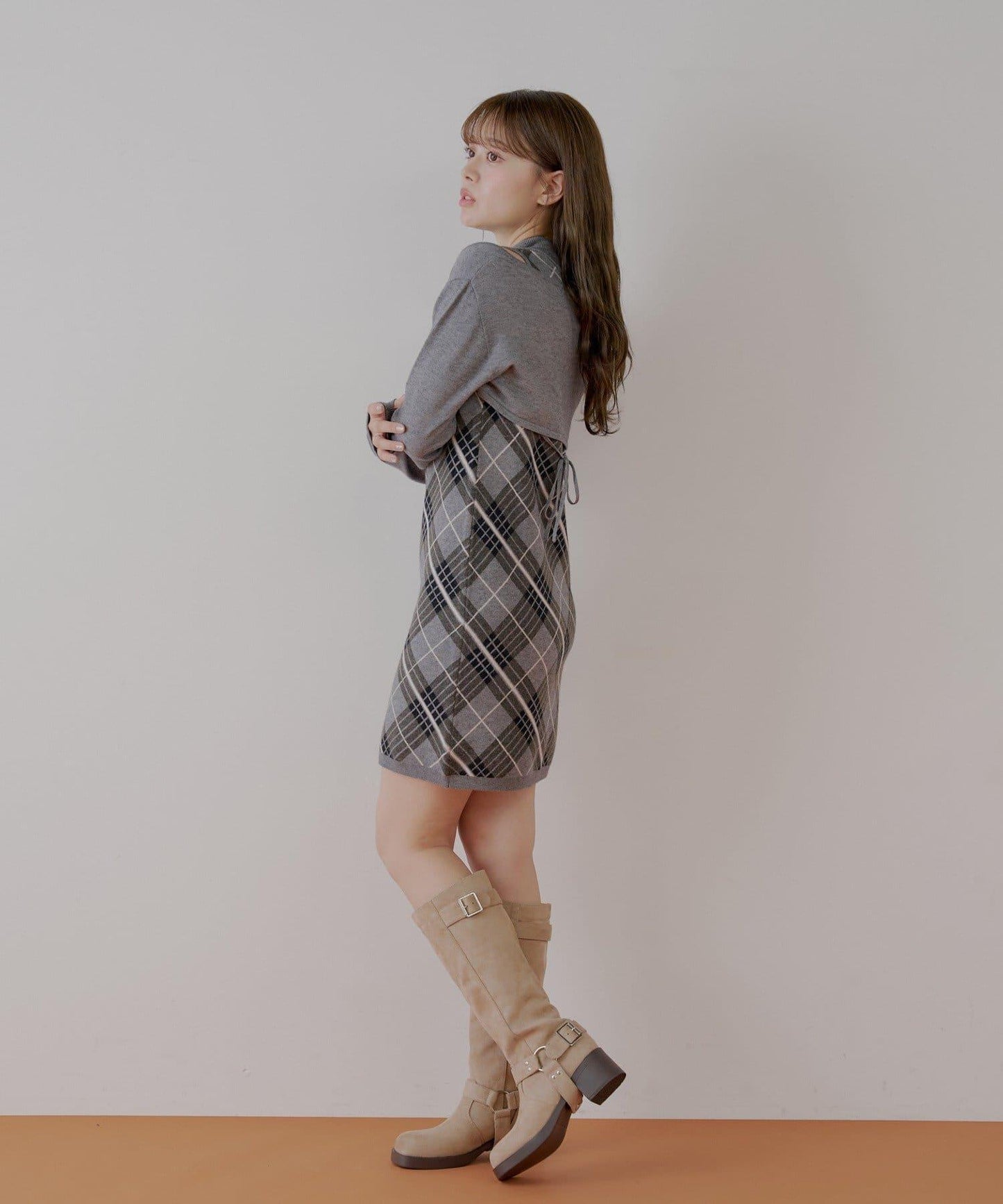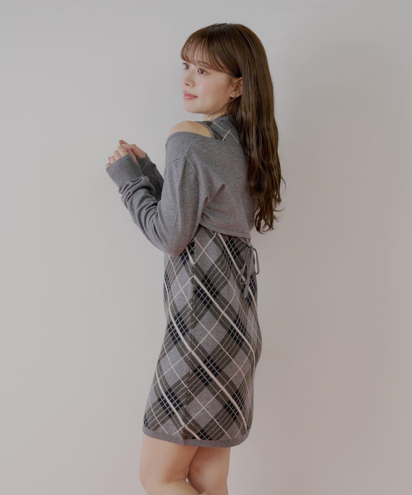 【Chico】格子無袖迷你連衣裙配短外套套裝