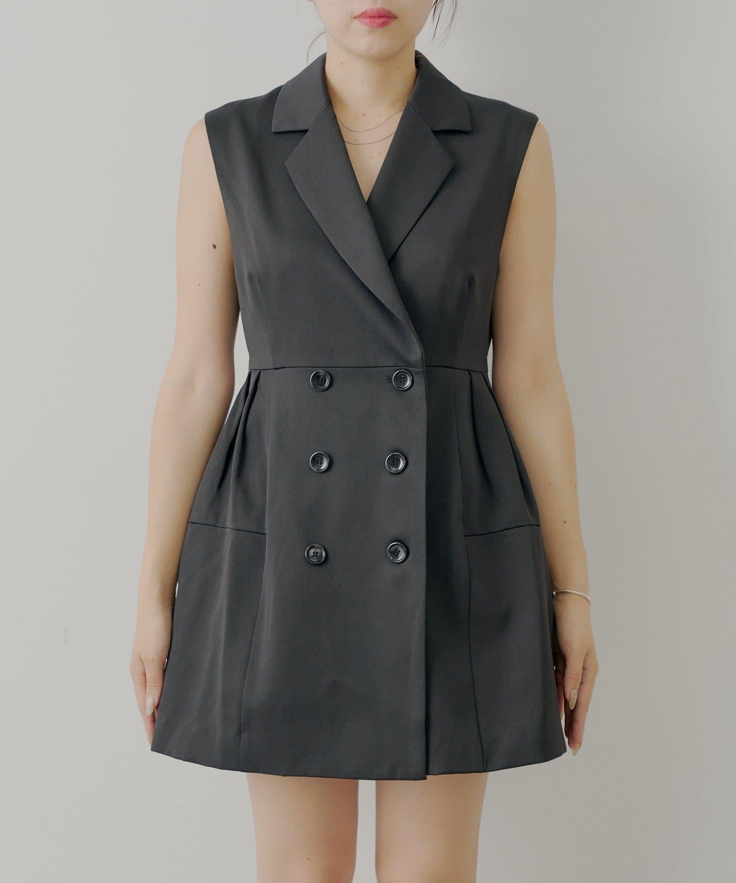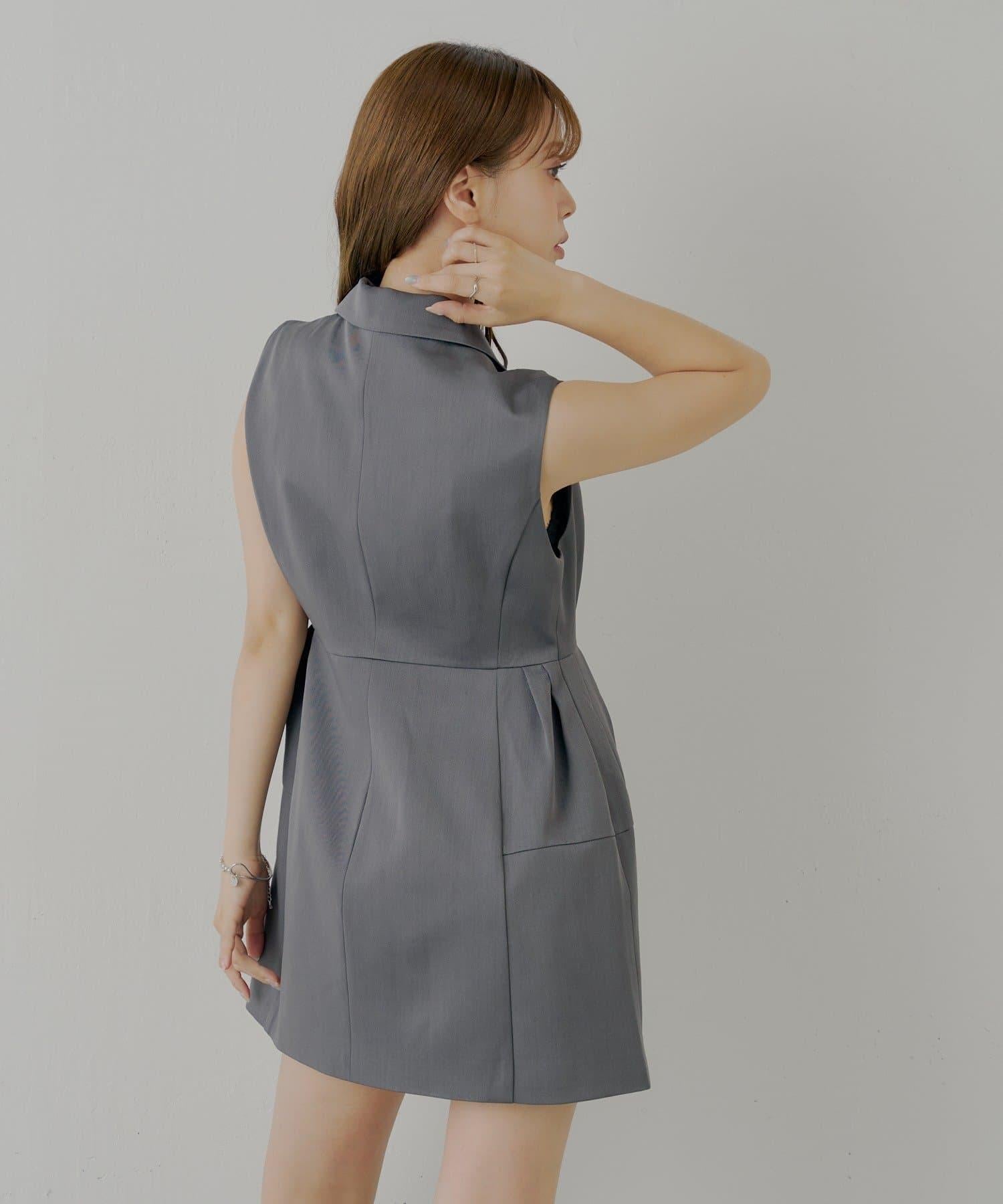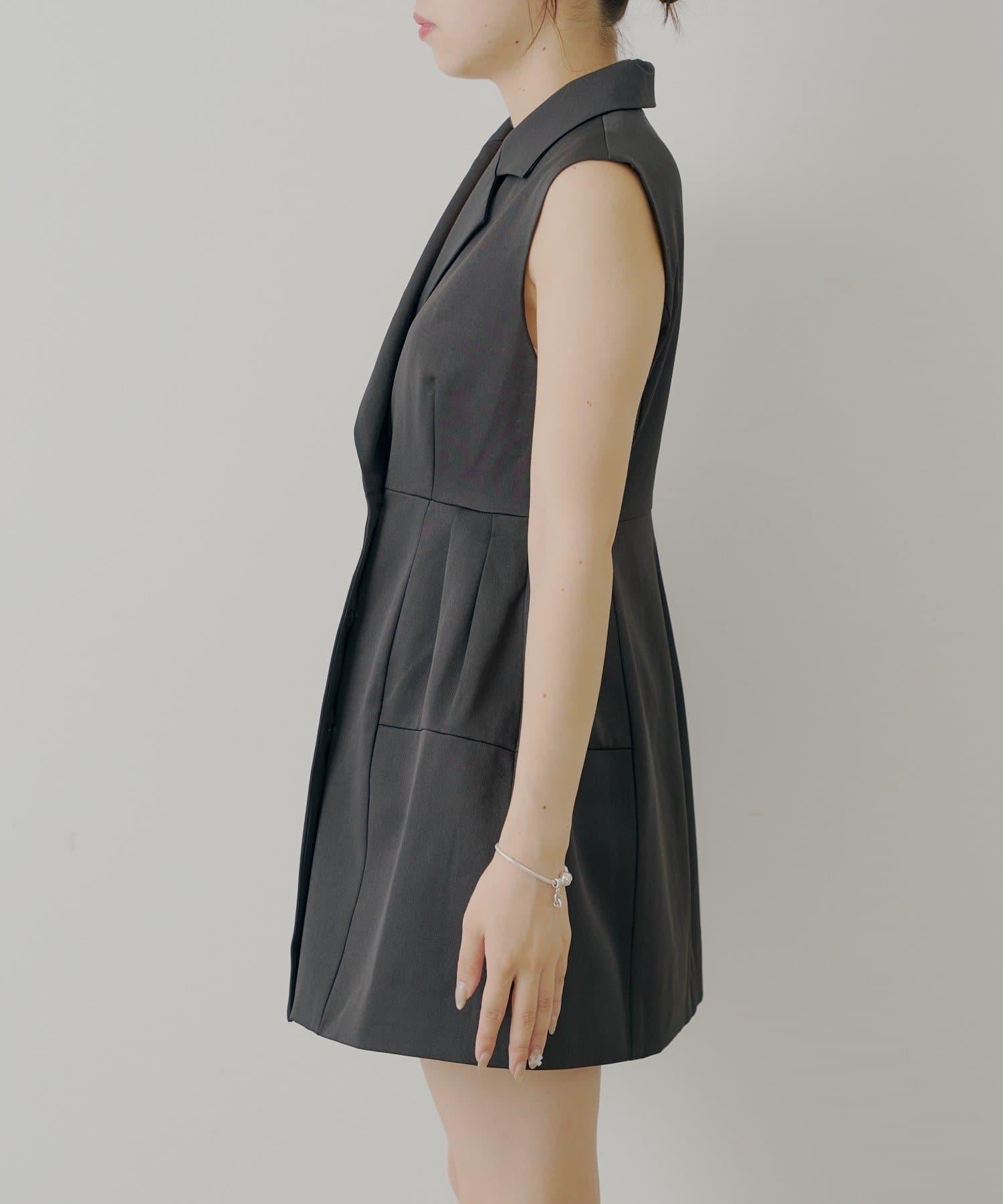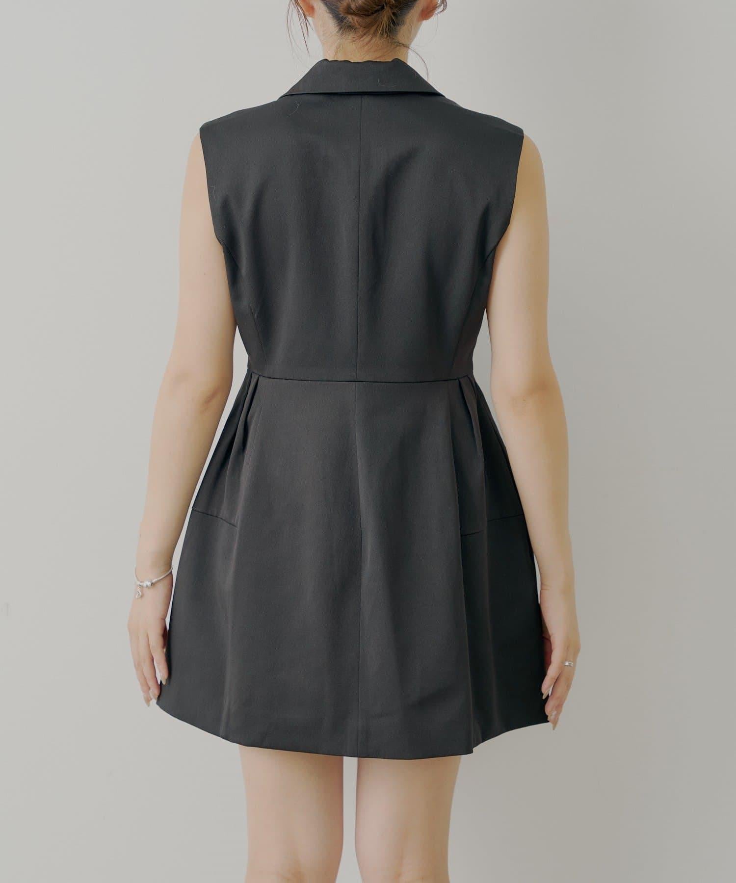 【Chico】立體剪裁蓬鬆荷葉邊西裝迷你連衣裙