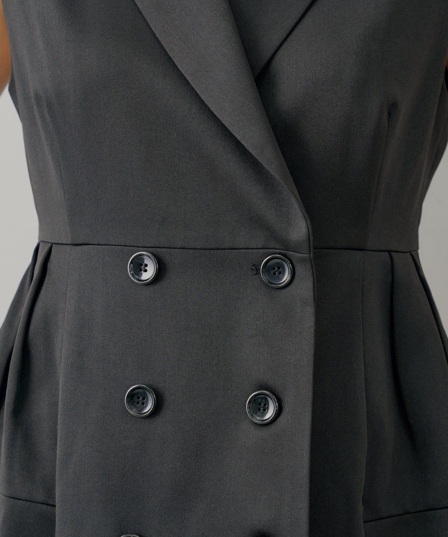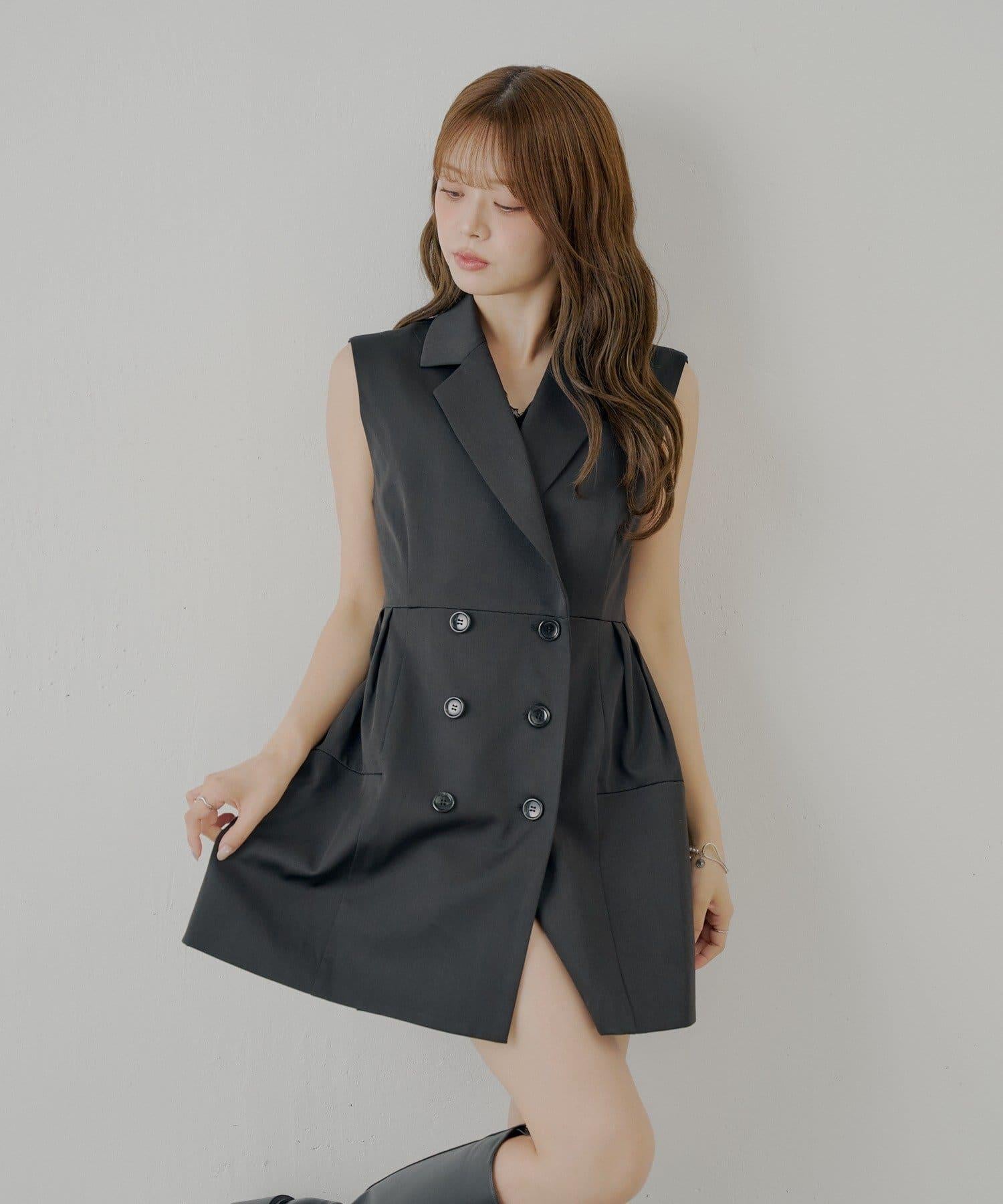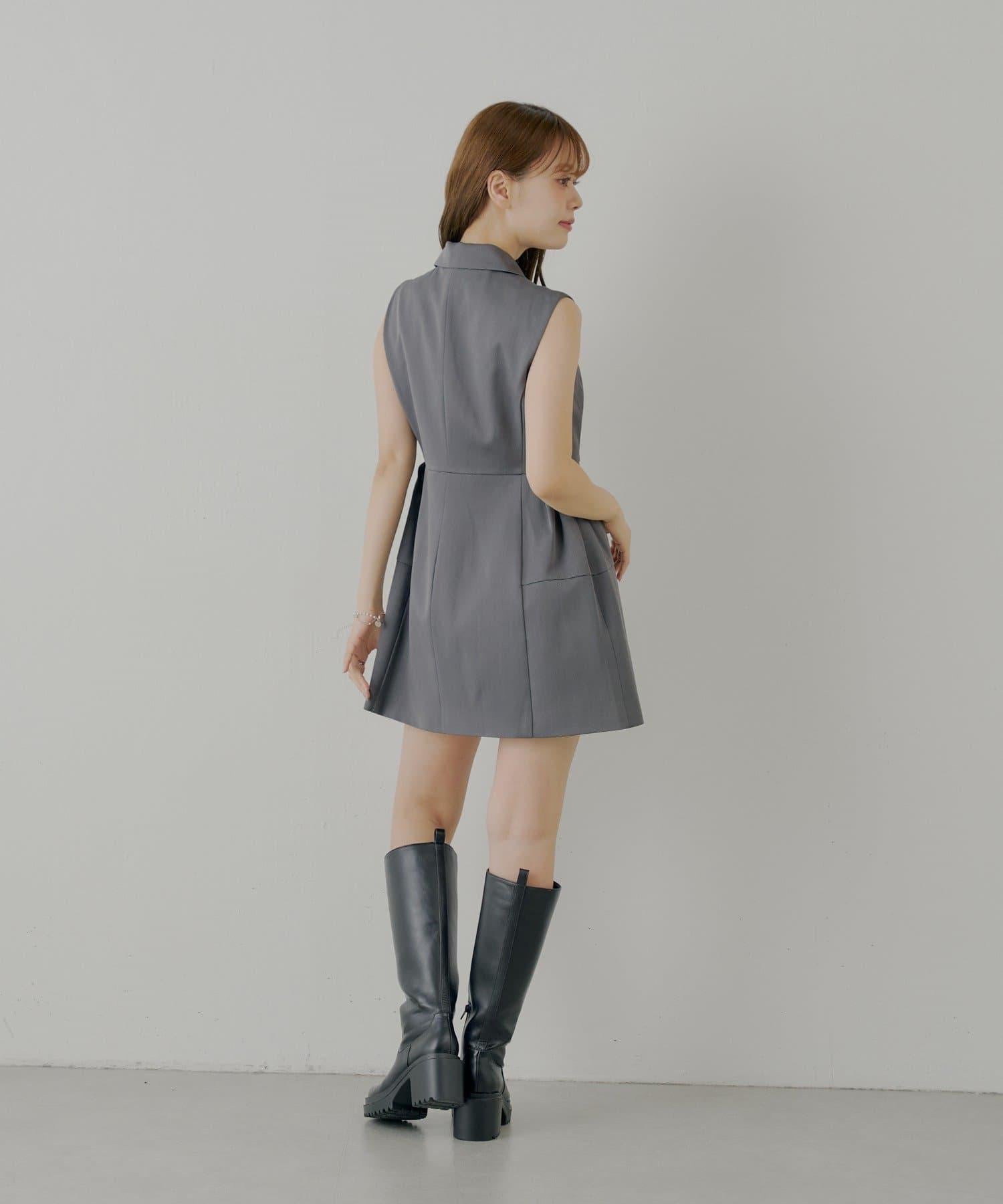 【Chico】立體剪裁蓬鬆荷葉邊西裝迷你連衣裙