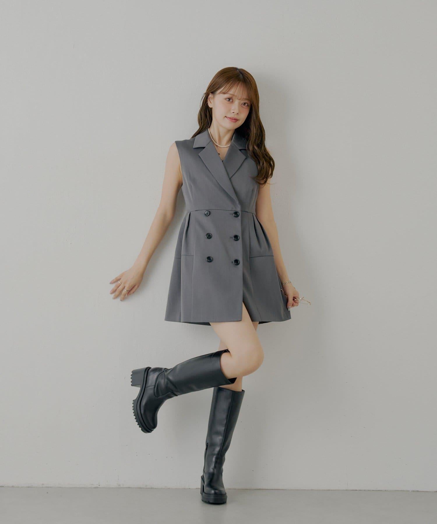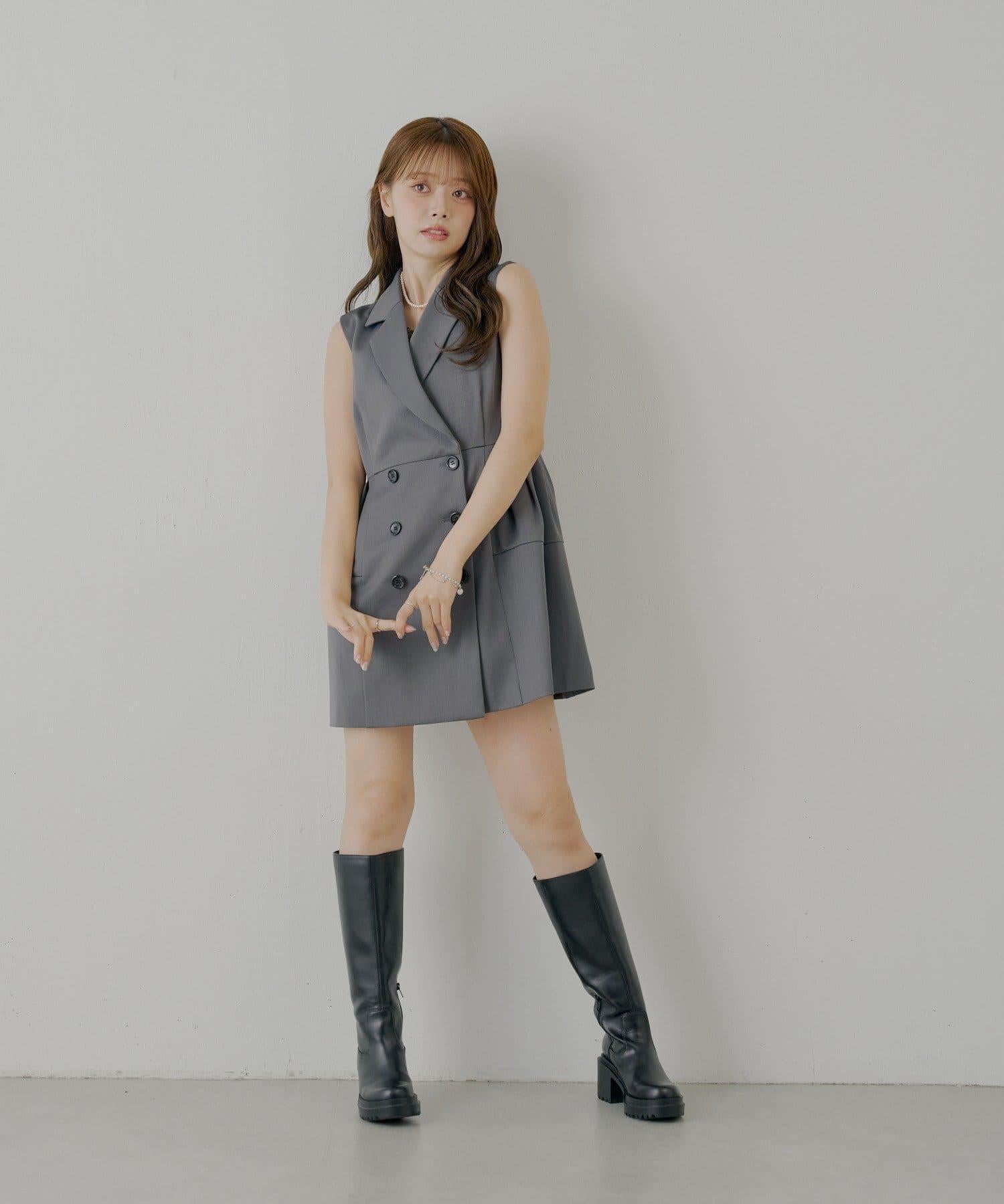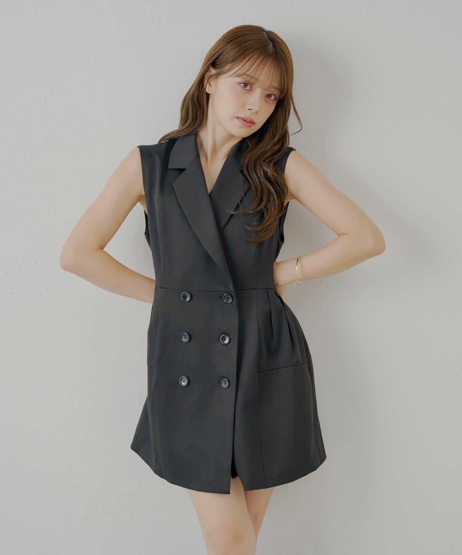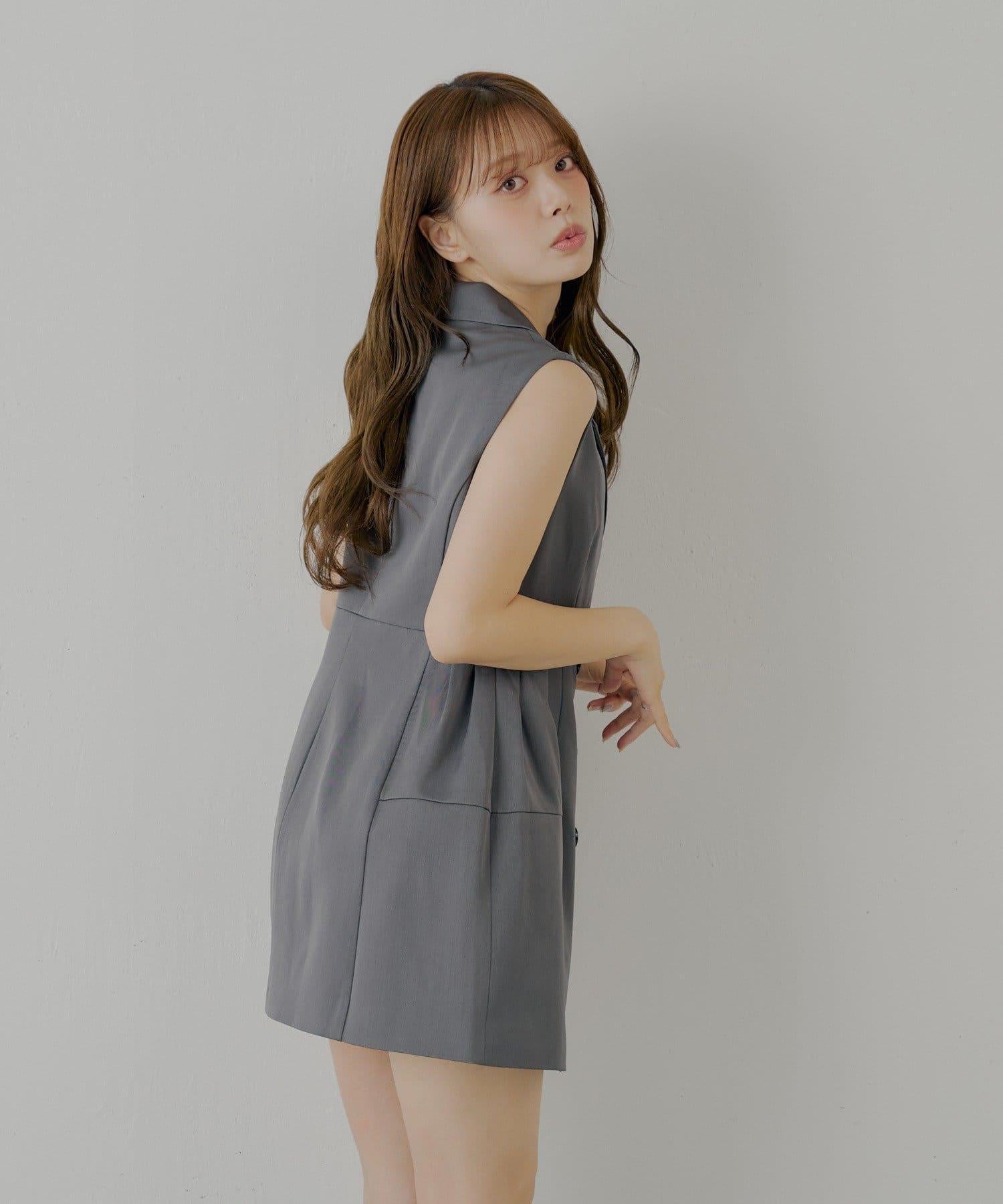 【Chico】立體剪裁蓬鬆荷葉邊西裝迷你連衣裙