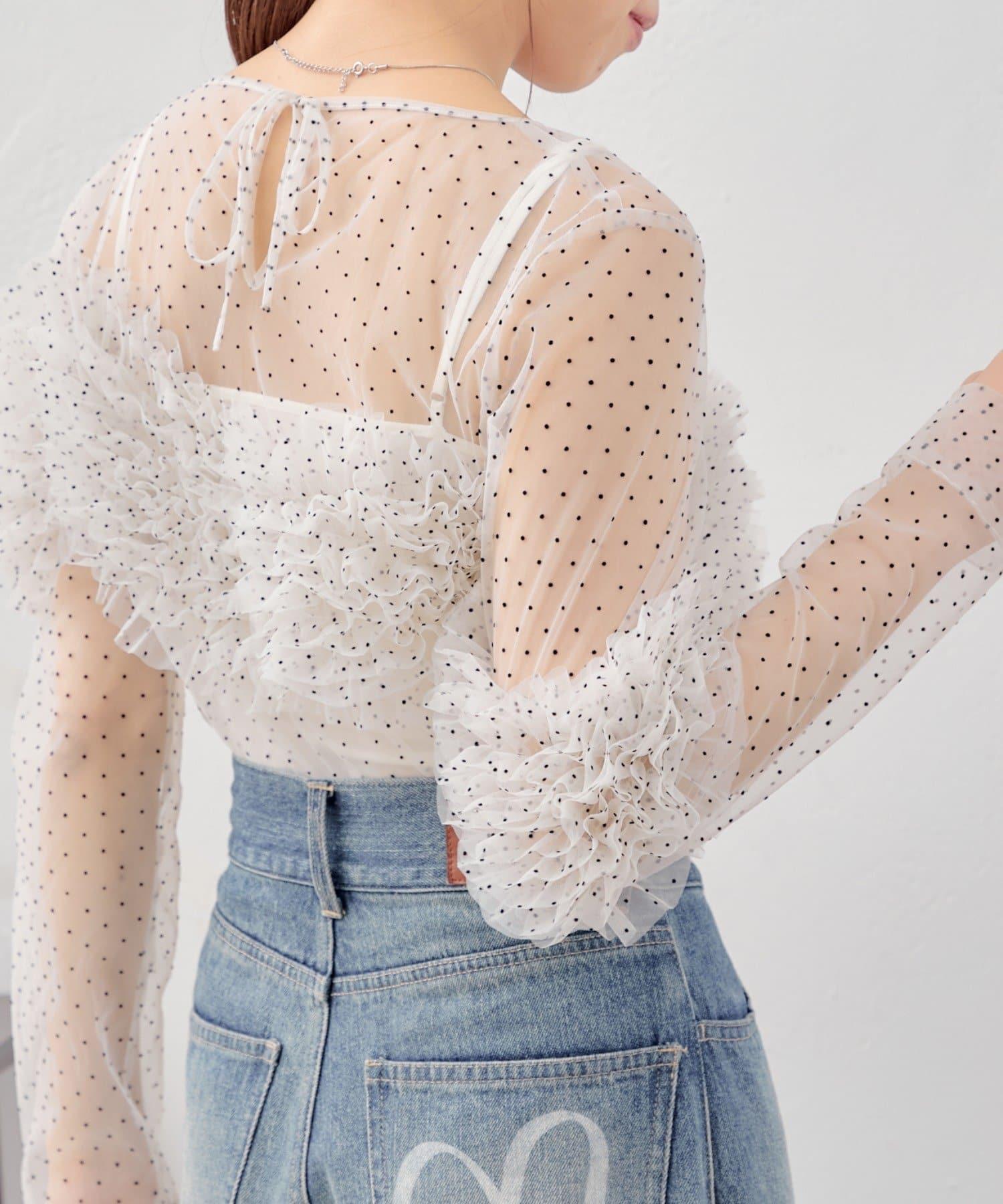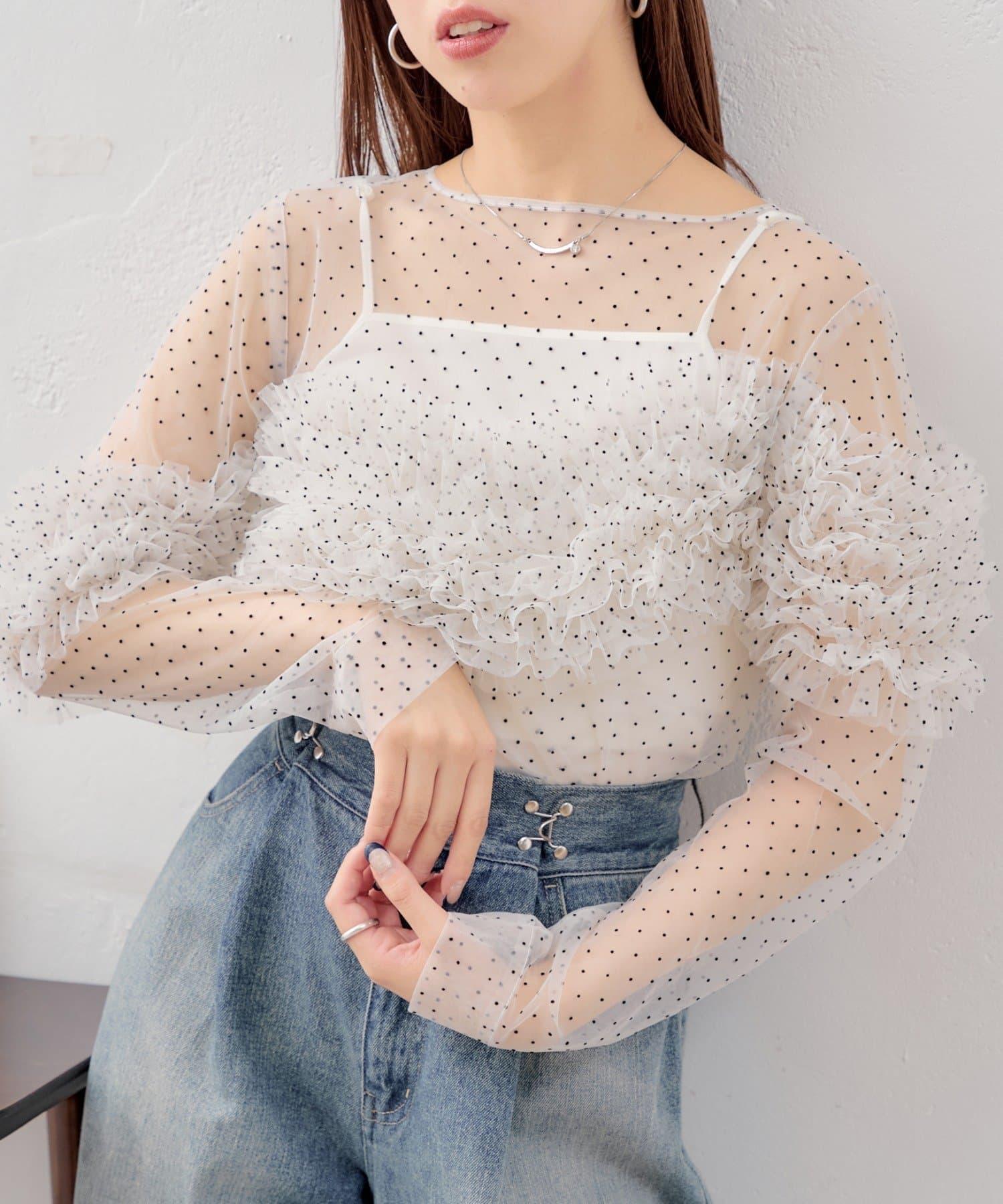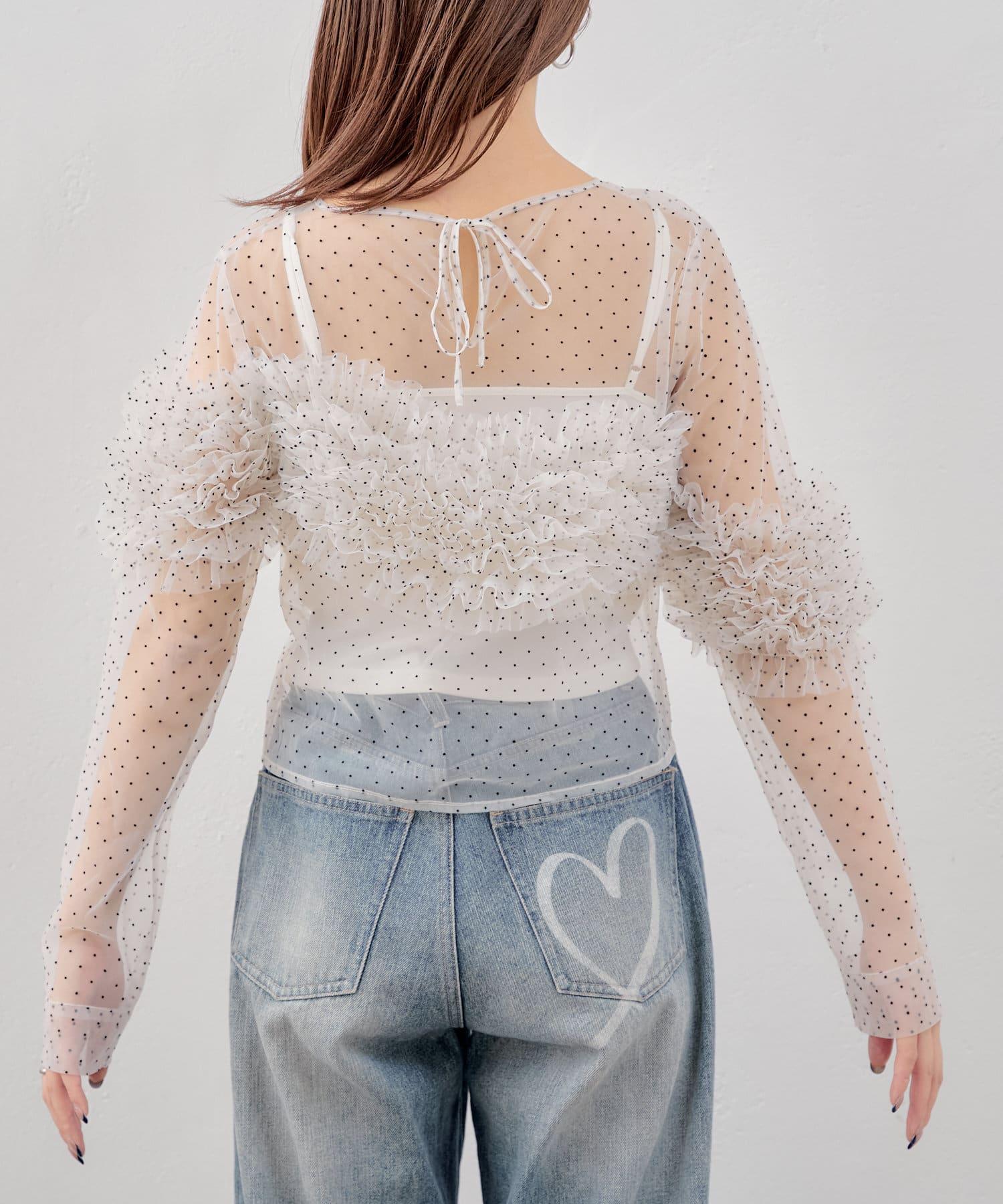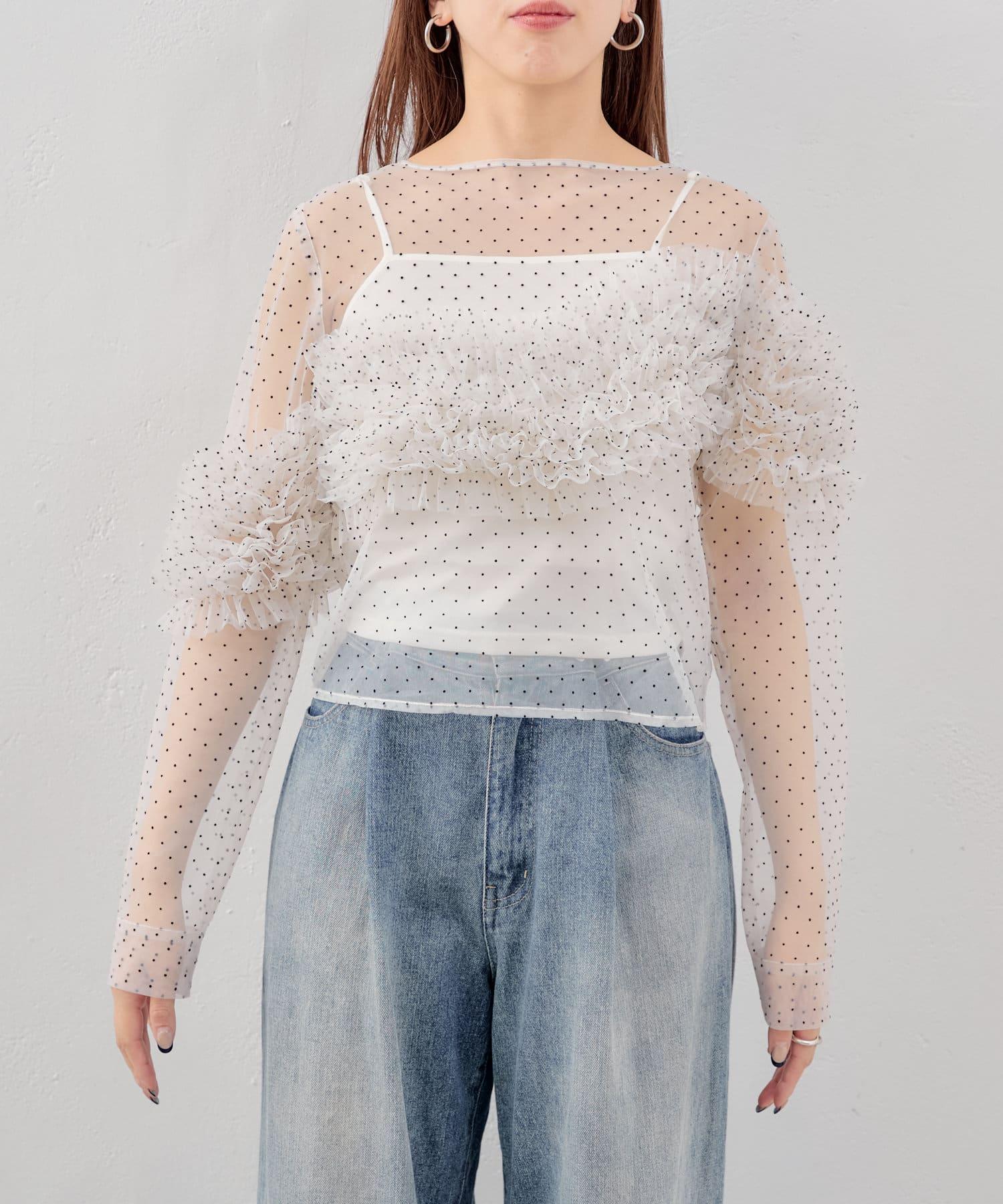 多用途薄紗上衣,帶有點狀圖案,適合多種疊穿風格